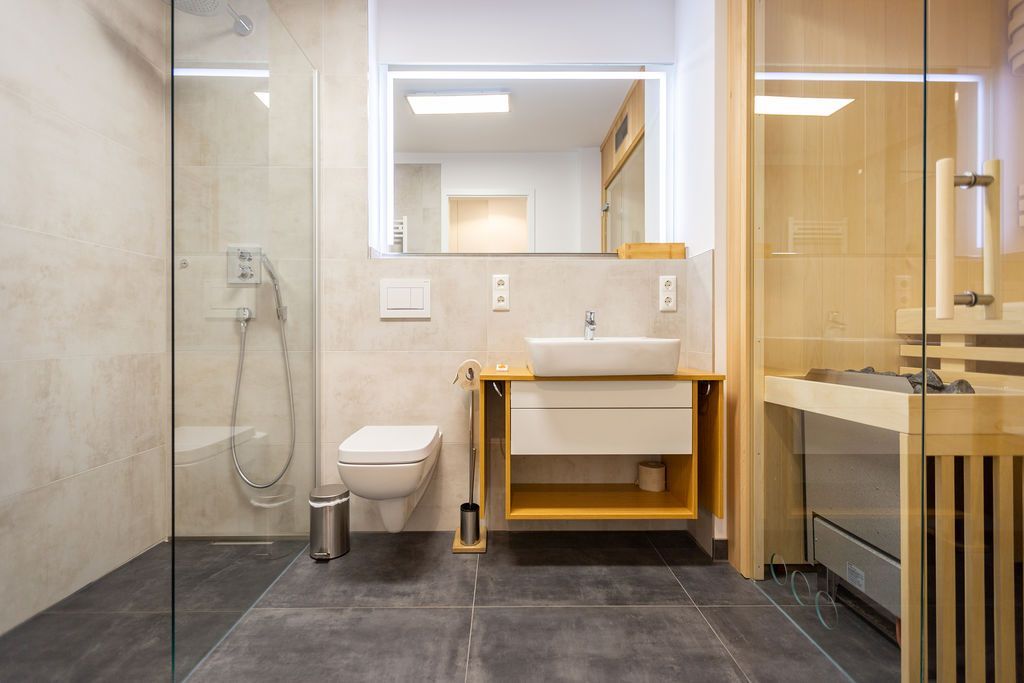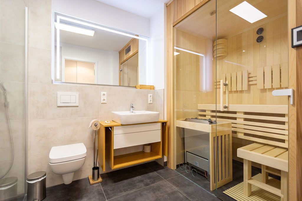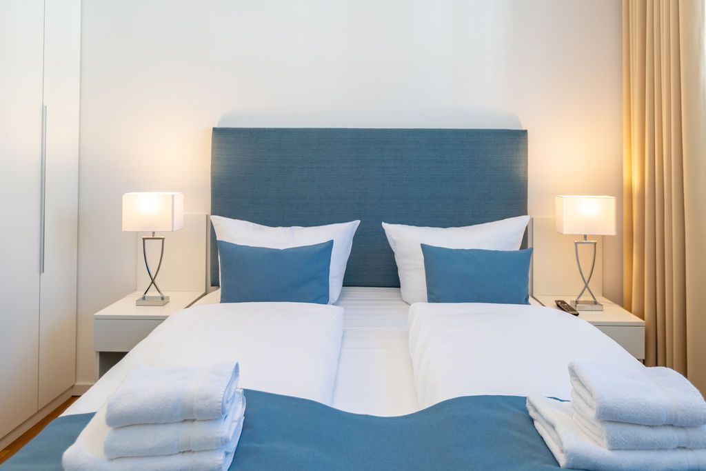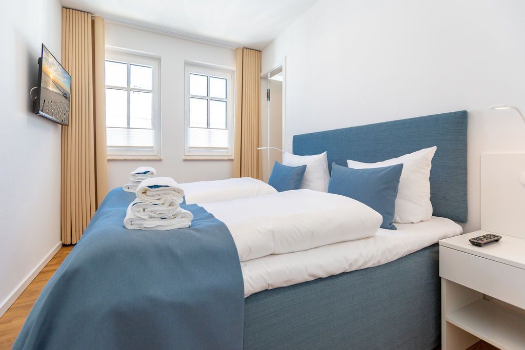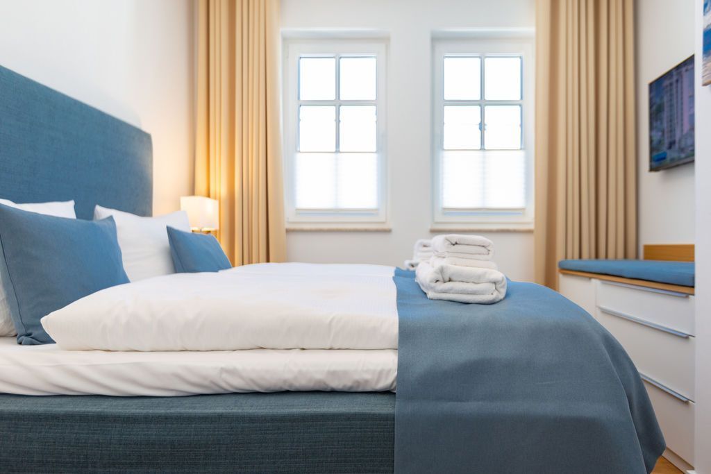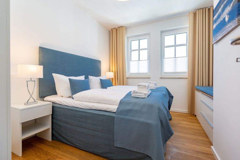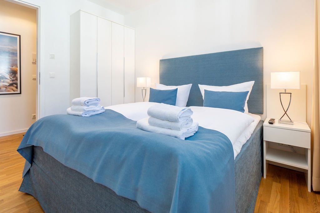 Blau macht glücklich. Denn Blau ist die Farbe der Ostsee, die Sie vom Balkon dieses wunderschönen Drei-Zimmer-Appartements aus im 2. Obergeschoss des Strandhauses sehen können. Einmal tief einatmen und die Sorgen von der lauen Ostseebrise mit hinaus aufs Meer mitnehmen lassen. Denn Ihr Urlaubsdomizil schenkt Ihnen auf 74 geräumigen Quadratmetern viel Erholung und Behaglichkeit für bis zu vier Personen. Blau ist hier nicht nur die Farbe, die bis an den Horizont reicht. Das maritime Flair durchzieht auch den großen und offenen Wohn-Essbereich und die beiden Schlafzimmer. Und die Sonne Usedoms überflutet dank der großen Fenster die gesamte Wohnung. Eine gemütliche Sitzlandschaft sorgt im Wohnzimmer für viel Fläche zum Relaxen. Es ist zudem mit einem Gaskamin und einem Flat-TV ausgestattet. Genießen und zusammensitzen können Sie auch am schönen Esstisch mit bequemen Polsterstühlen. Ein kleiner Balkon (10 Quadratmeter) offeriert einen Blick ins Grüne, auf die Ahlbecker Kirche und wie erwähnt auf die nahe Ostsee. Eine komplett ausgestattete Küche ist in den Wohnbereich integriert. Die Geräte sind allesamt hochwertige Markengeräte. Es gibt einen Induktionsherd, eine Mikrowelle, einen Geschirrspüler, einen Kühlschrank mit Gefrierfach, eine Kaffeemaschine, einen Toaster und einen Wasserkocher. In den Schränken finden Sie Töpfe und ein Geschirr-Set. Die beiden Schlafzimmer sind mit je einem komfortablen Boxspringdoppelbett (1,80 m x 2,00 m), einem Schrank und einem Flat-TV ausgestattet. Die beiden Bäder der Wohnung sind wunderbar modern. Beide haben einen Waschtisch und ein WC. Beide Bäder besitzen eine Dusche bei einem der Bäder ist die Dusche in der Badewanne. Das Masterbad beherbergt sogar eine kleine Wellness-Oase. Freuen Sie sich an kühlen Tagen oder Abenden auf die wohlige Wärme der Finnischen Sauna. Handtücher liegen bereit und auch die Betten sind bei Ihrer Anreise bezogen. Eine Waschmaschine ist ebenfalls vorhanden. Das WLAN können Sie kostenfrei nutzen. In der Tiefgarage ist der Stellplatz 08 für Sie reserviert. Gegen eine Gebühr besteht die Möglichkeit, an einer Wallbox ein Elektroauto zu laden.
