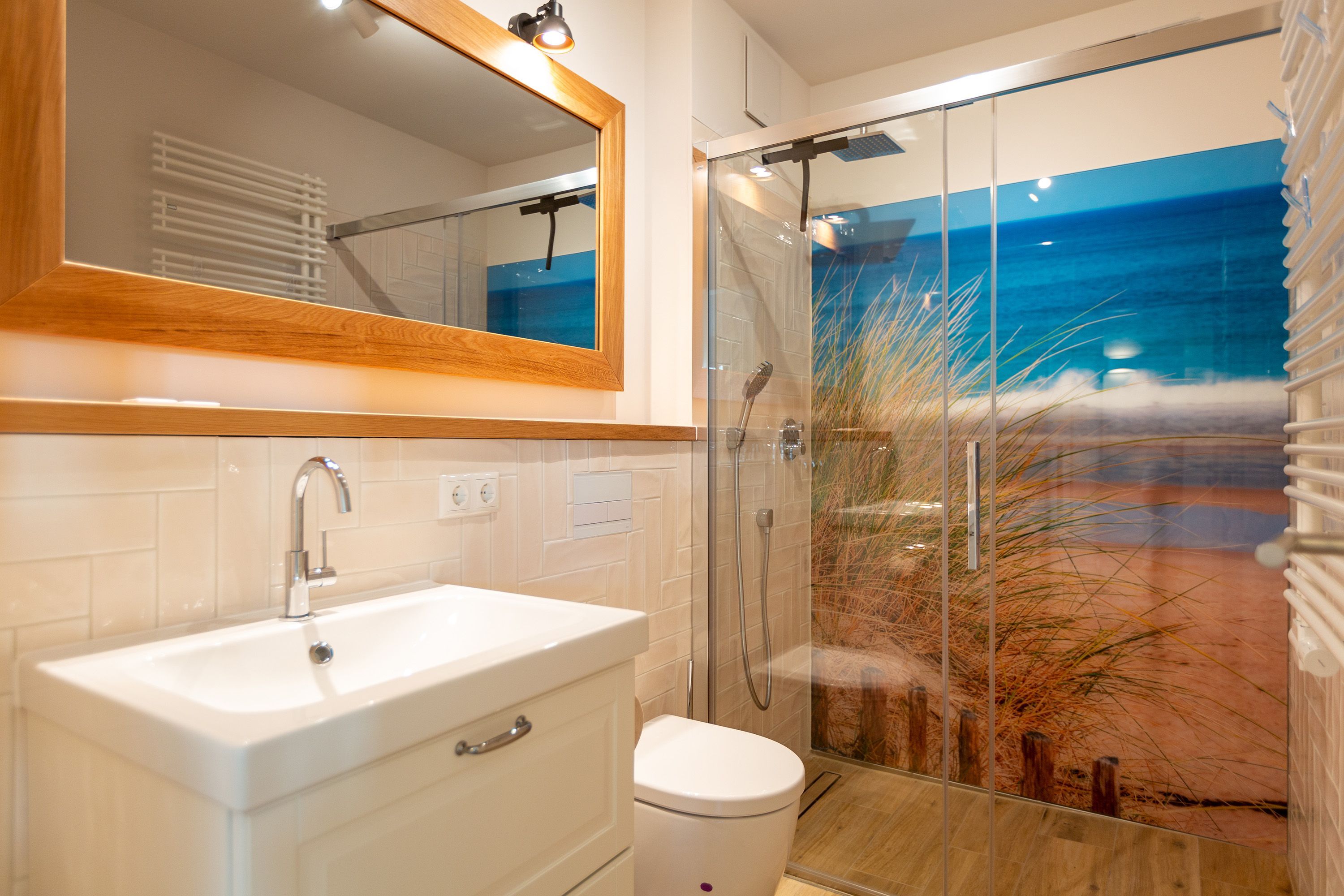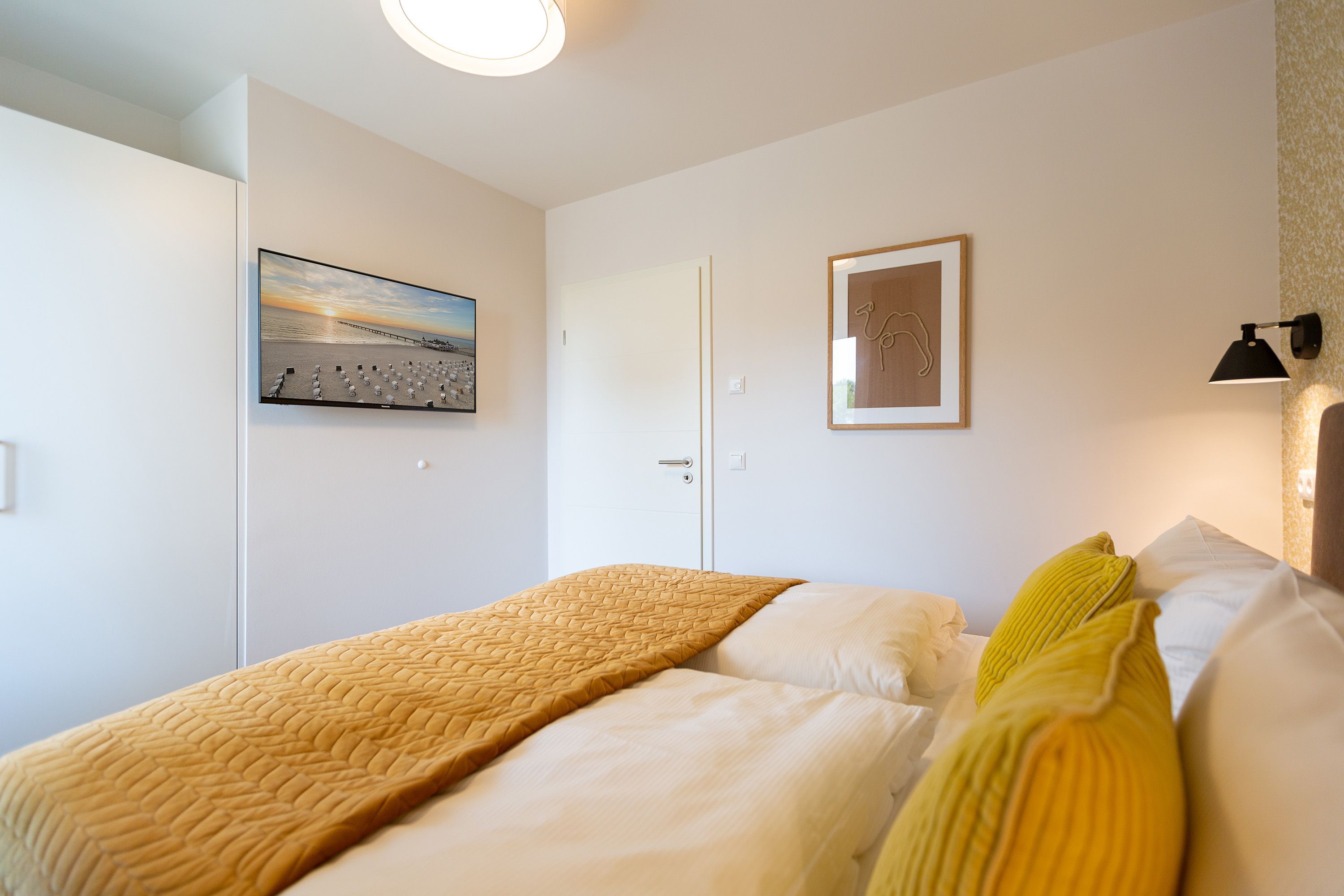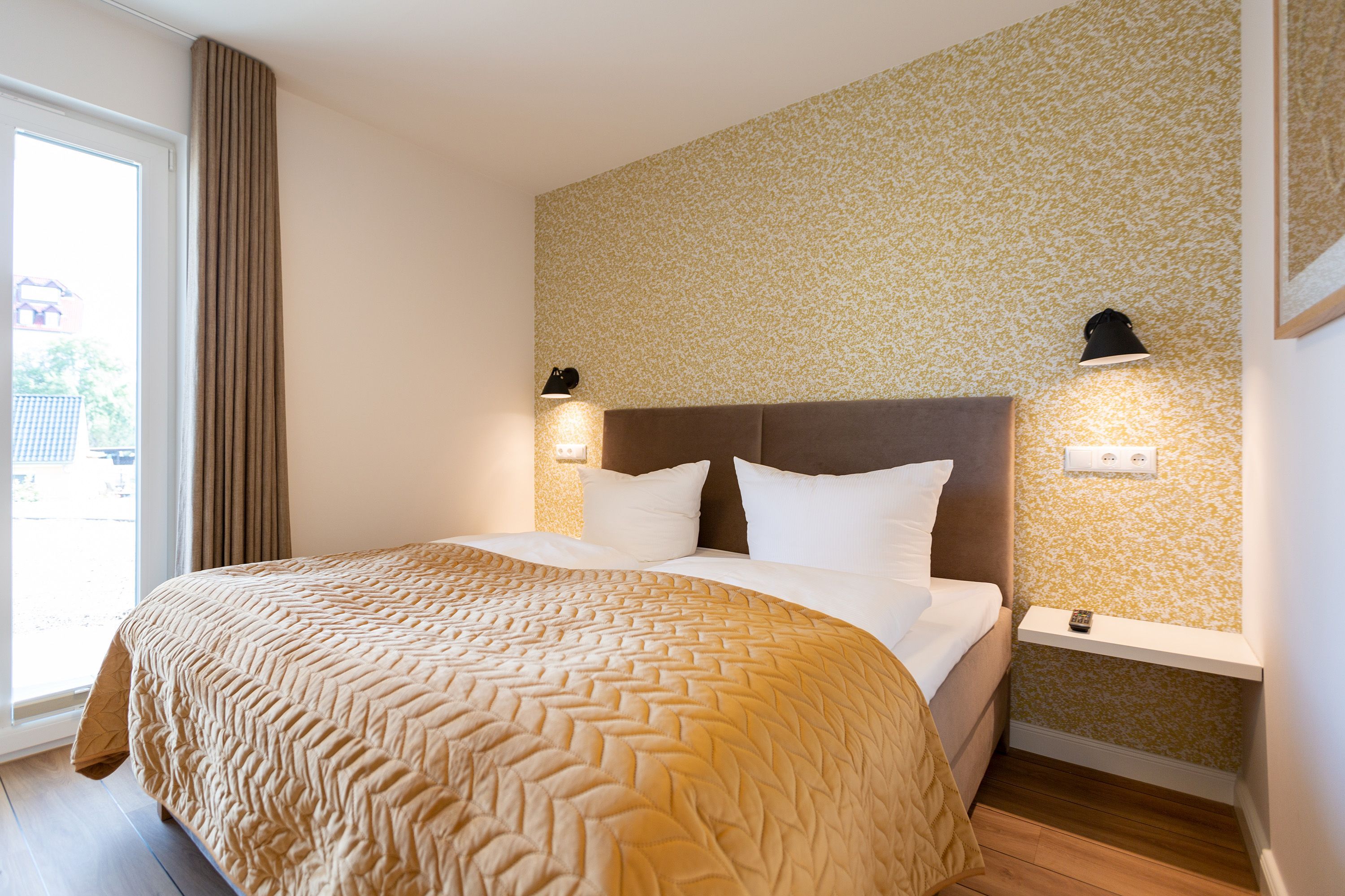 Modernes Design und ein perfekt abgestimmtes Farbkonzept erwarten Sie in diesem Drei-Zimmer-Feriendomizil für bis zu vier Personen im Gartengeschoss. Auf den 84qm begrüßen Sie helle Farbtöne in Kombination mit einem dezenten maritimen Look. Der offen gestaltete Wohn-Ess-Bereich besticht durch seine gemütliche Atmosphäre und seine Großzügigkeit. In der voll ausgestatteten Küche mit hochwertigen Siemens-Geräten ist für jeden Komfort beim Zubereiten Ihrer Speisen gesorgt. Eine Granit-Arbeitsplatte sorgt zudem für einfaches Sauberhalten und einen edlen Look. Genießen Sie gemeinsame Fernsehabende vor dem Flat-TV mit Soundsystem und hören Sie dem Knistern des dreiseitigen Gaskamins zu, der vom Wohn- und Essbereich aus für eine wohlige Stimmung sorgt. Den perfekten Start in den Tag können Sie sich auf der 25qm großen Nord-Terrasse gönnen, während Sie den ersten Morgenkaffee genießen. In komfortablen Boxspringbetten (1,80m x 2,00m) lässt es sich am besten von Ihren Urlaubserlebnissen träumen. Und bei richtiger Windrichtung und Wellengang können Sie sich sogar das Meeresrauschen über die Terrassentüren in Ihr Appartement holen. Zwei barrierefreie Regenduschen, beheizte Spiegel und eine Saunalandschaft im Masterbad sorgen für ein erholsames Spa-Erlebnis. Kostenfreies W-Lan und ein Stellplatz in der hauseigenen Tiefgarage runden Ihren perfekten Urlaub auf der Insel Usedom ab.