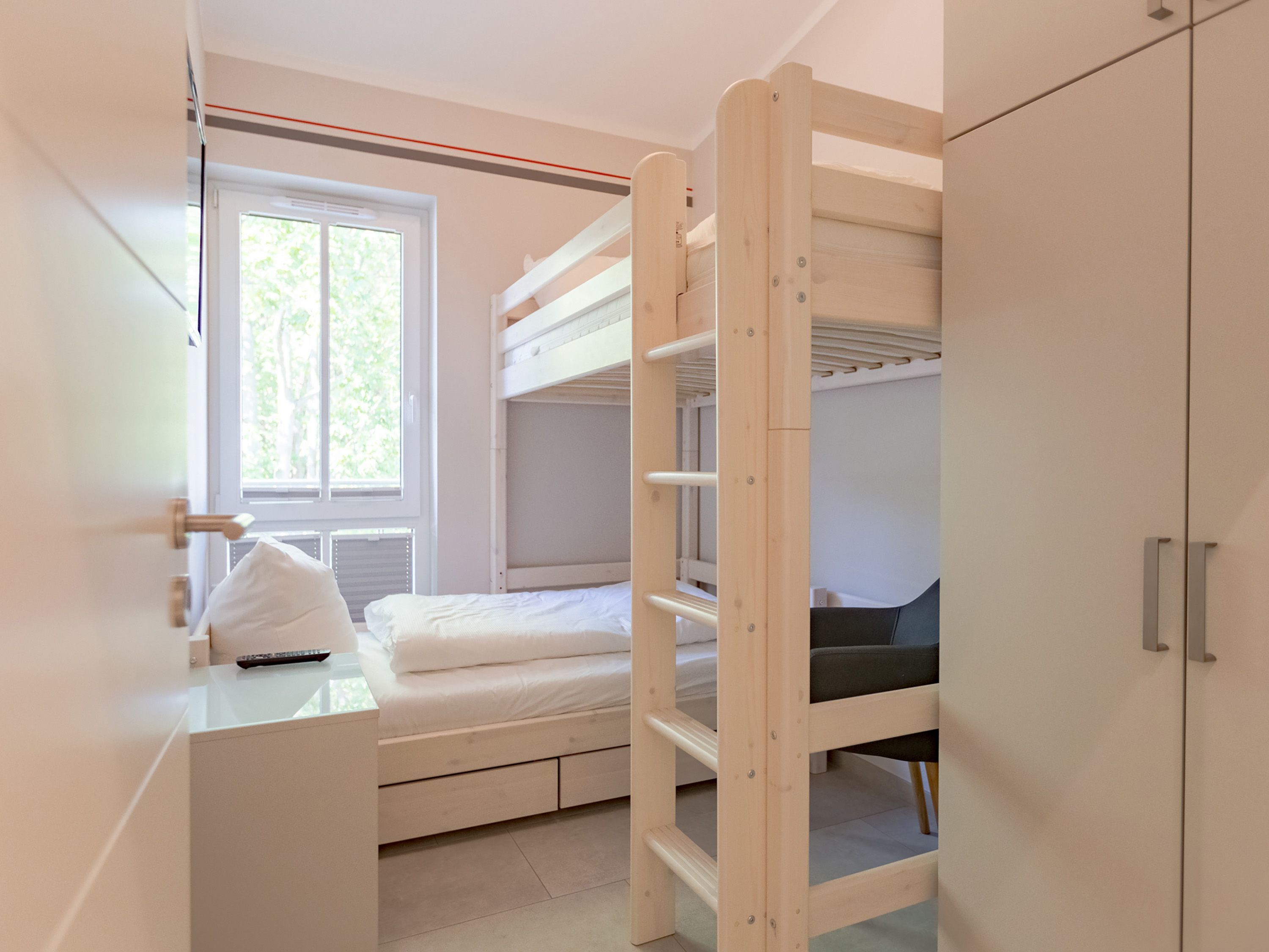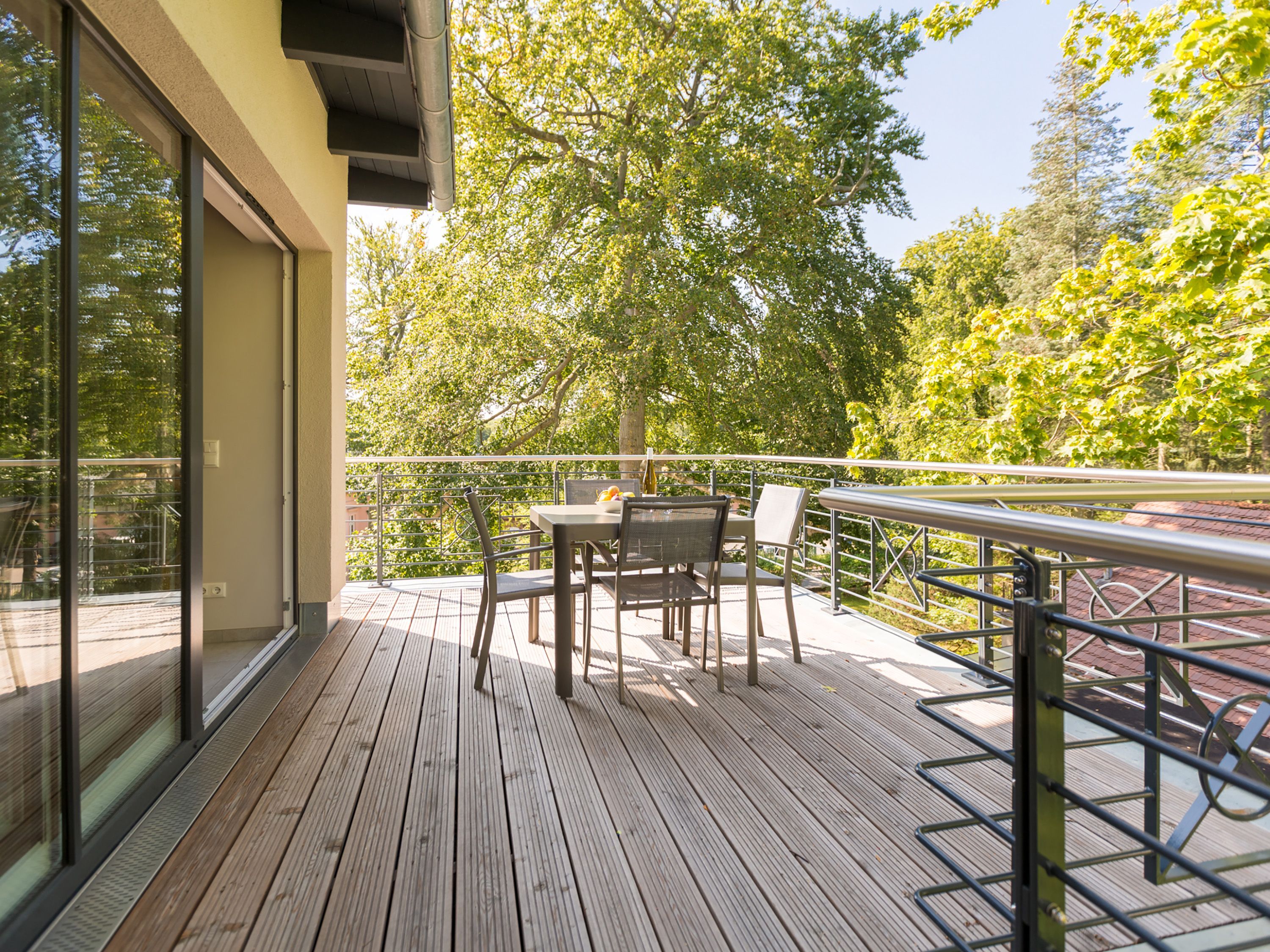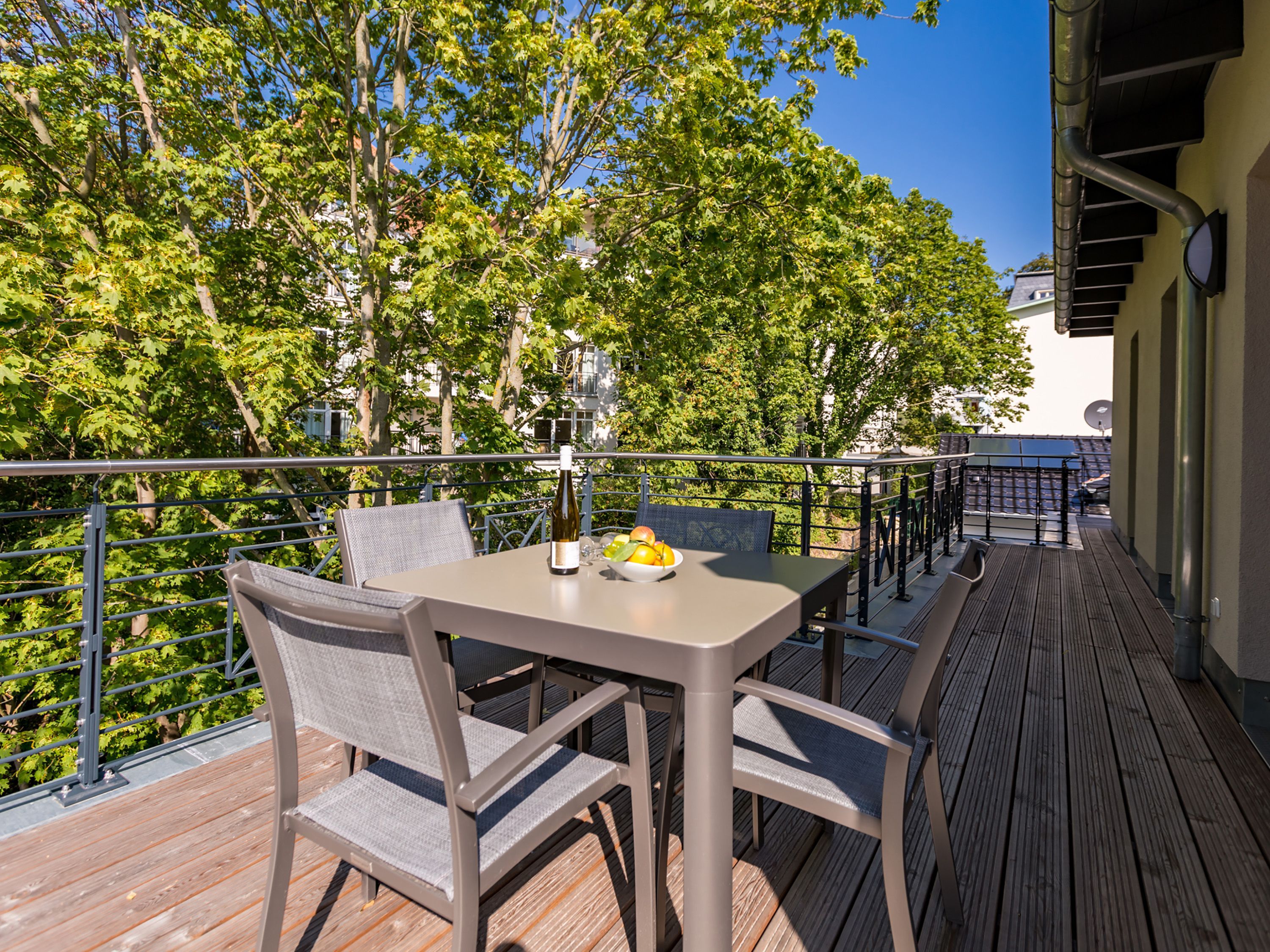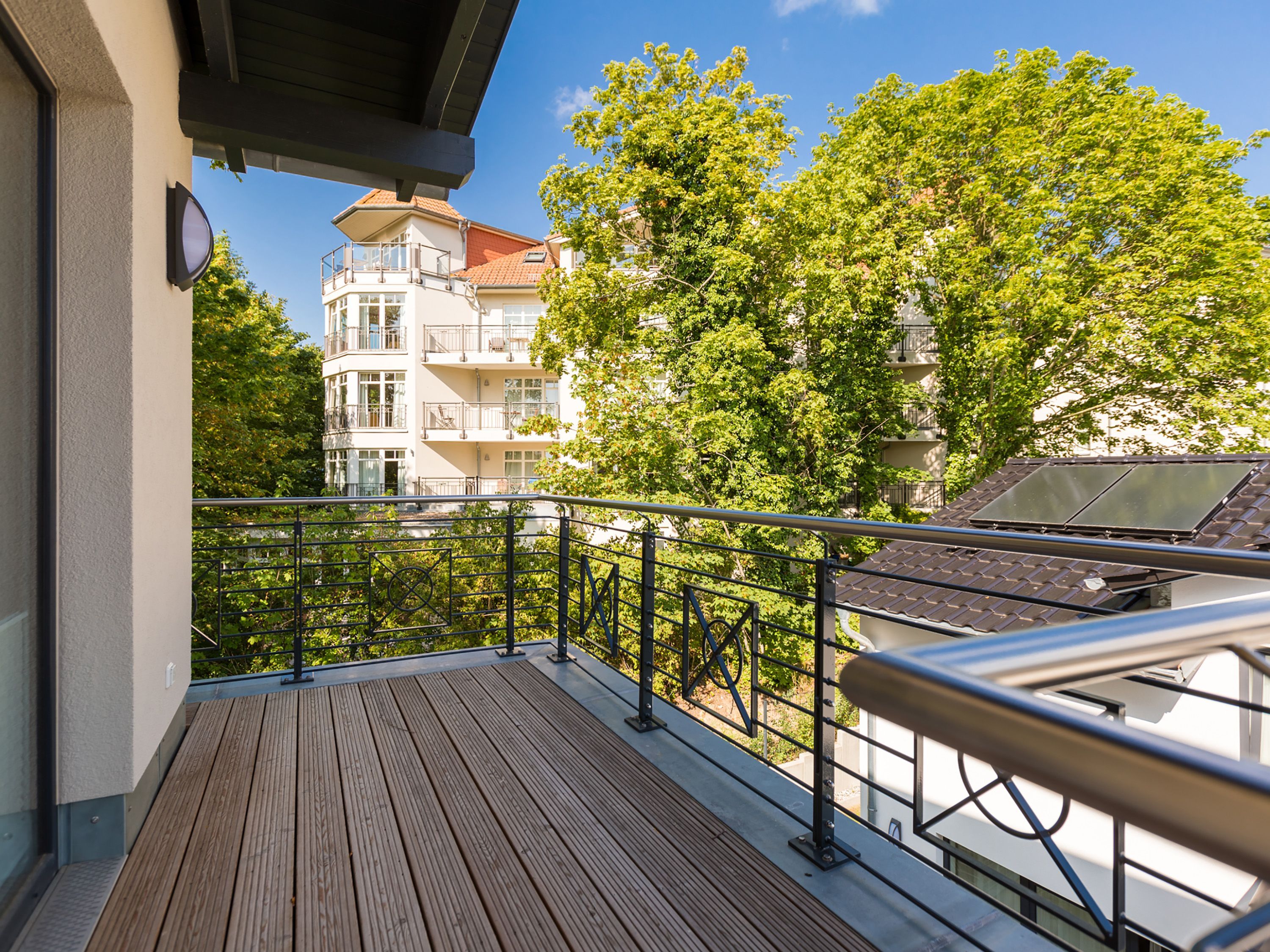 Ideal für Familien macht das 74 Quadratmeter große Appartement direkt unter dem Dach die gemeinsame Auszeit an der Ostsee zu einem unvergesslichen Urlaubserlebnis. Bis zu drei Erwachsenen und einem Kind bis 15 Jahre bietet es ausreichend Platz, den Stress und die Hektik des Alltags einfach mal loszulassen und sich fallenzulassen ins süße Nichtstun in einer angenehmen und entspannenden Atmosphäre. Die drei Räume sind stilvoll und stylisch modern eingerichtet. Es ist alles zu finden, was man sich für einen Urlaub nur wünscht. Inklusive großer Sonnenterrasse. Die ist mit ihren 58 Quadratmetern und der Ausrichtung nach Süd-Ost und Süd-West ein absoluter Traum für Sonnenanbeter. Das Wohn-Esszimmer ist geräumig und strahlt durch den hohen offenen Dachstuhl eine luftig leichte Atmosphäre aus. Ob Kaminofen, Flat-TV, gemütliches Schlafsofa oder bequemer Sessel Wohnkomfort der Extra-Klasse erwartet Sie. Zum Wohnzimmer gehören eine offene Küche und ein schöner Essplatz, an dem die ganze Familie Platz findet. Die Küche ist zudem mit hochwertigen Geräten wie einem Induktionsherd oder einer Geschirrspülmaschine und edlem Geschirr voll ausgestattet. Zwei Schlafzimmer wollen erholungshungrige Auszeitler mit schönen Träumen verwöhnen. Ein Schlafzimmer beherbergt ein komfortables Boxspringdoppelbett (1,80 m x 2,00 m), einen Flat-TV und einen großen Schrank für die Urlaubsgarderobe. Das zweite Schlafzimmer verfügt über ein Hochbett (1x 0,90m x 1,90m sowie 1x 0,90m 2,00m), hat ebenfalls einen Flat-TV und einen Schrank und ist mit einem kleinen Schreibtisch eingerichtet. Da schreiben sich die Urlaubsgrüße gleich noch einmal so schön. Das Tageslichtbad hat eine geräumige Regendusche, einen Waschtisch, ein WC und einen Wasch-Trockner. An kühlen Tagen und Abenden wird dieser Raum garantiert Ihr Lieblingsraum werden. Denn er besitzt eine eigene, kleine Finnische Sauna. Das verspricht kuschelige Entspannung. Das Appartement verfügt außerdem über ein separates Gäste-WC. Für einen rundum entspannten Urlaub sind die Betten bei der Ankunft bezogen und Handtücher liegen für Sie bereit. In der Tiefgarage ist ein Stellplatz reserviert.