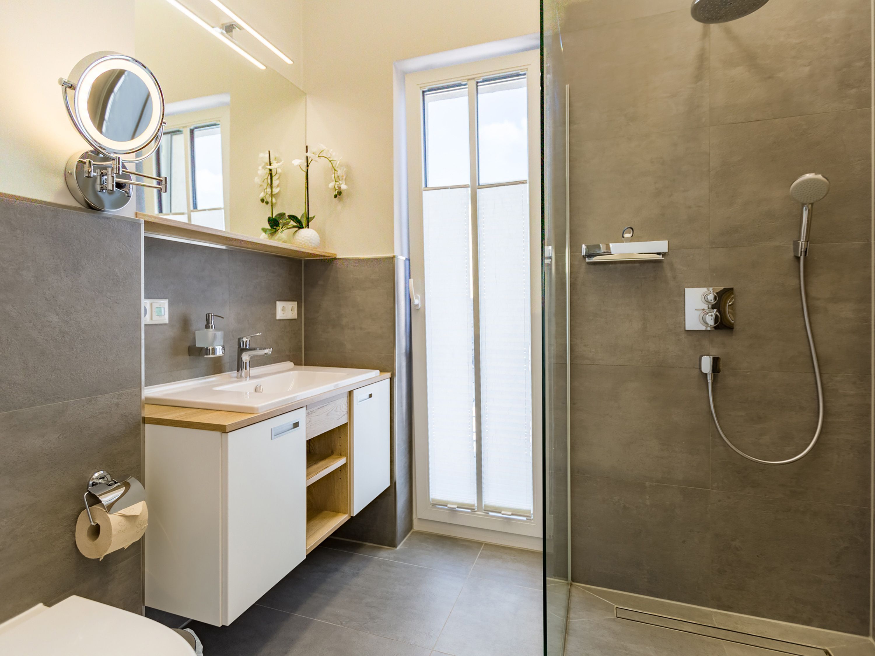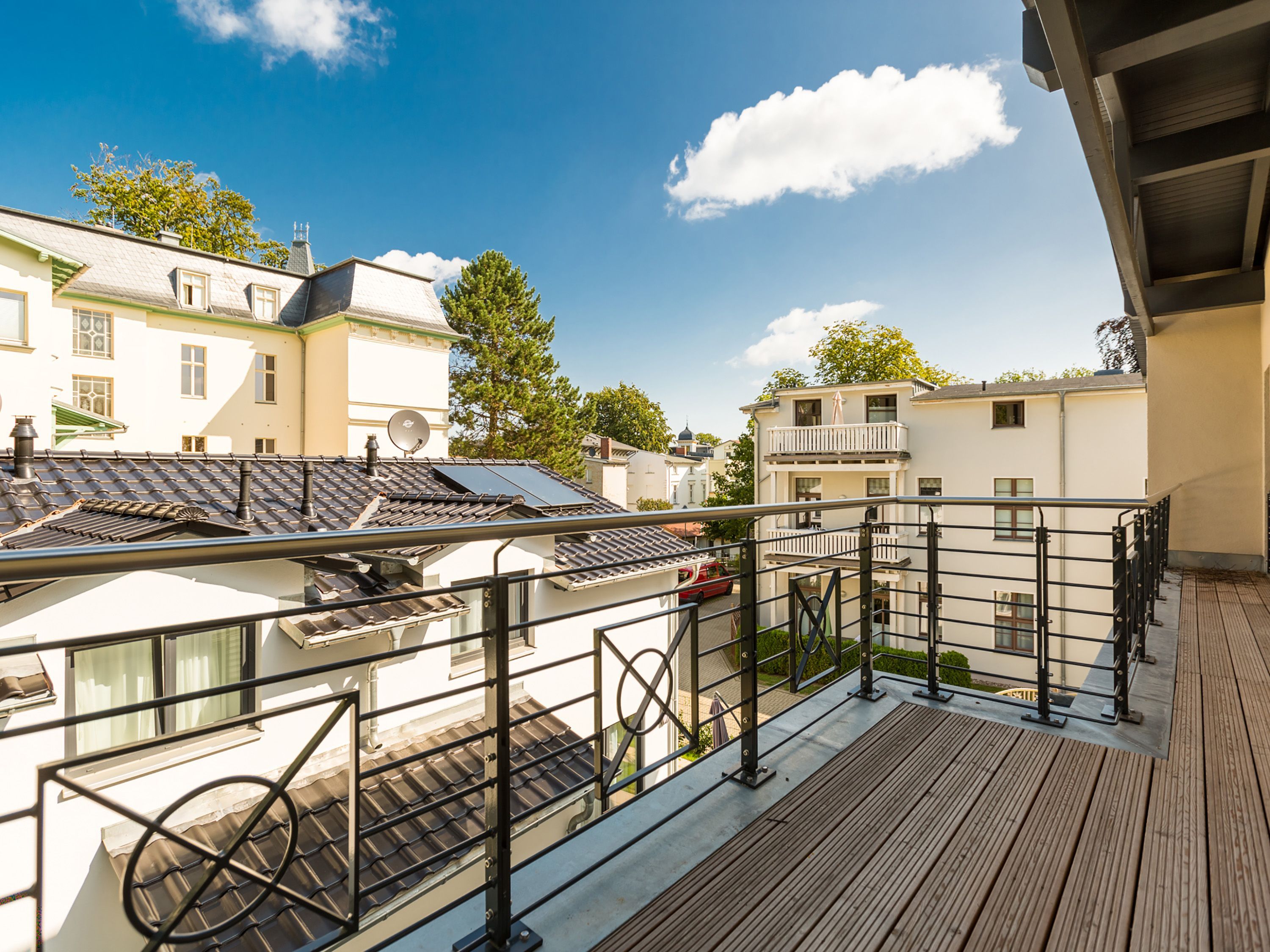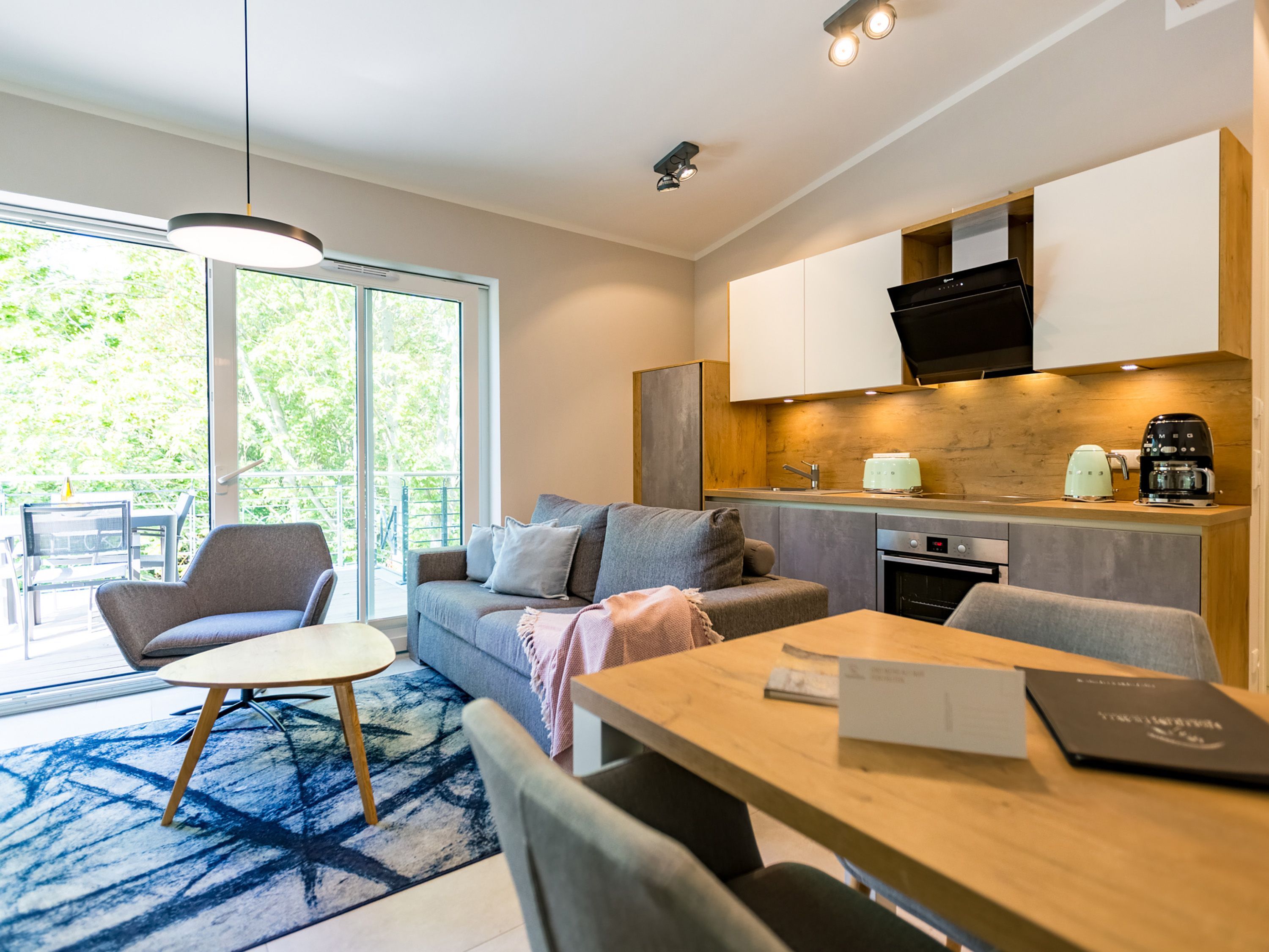 Hier schlägt das Herz des Kaiserbades. Umgeben vom Charme der alten Bädervillen können Ostseeliebhaber eintauchen ins mondäne und schon zu Kaiserzeiten beliebte Heringsdorf. Urlaub in ganz besonderer Atmosphäre. Anders als die umliegenden Häuser ist das Quartier am Waldschloss jedoch ein absolut modernes Kleinod mit stylischem Wohnkomfort. Das erst 2018 neu gebaute Haus empfängt seine Gäste in den Zwei- und Drei-Zimmer-Appartements mit viel Stil und Exklusivität. Es fehlt an nichts. Eine elegante, harmonisch aufeinander abgestimmte und gemütliche Einrichtung, eine hochwertige Küchen-Ausstattung, Kaminöfen, in jedem Appartement eine eigene Finnische Sauna, Balkone oder sonnenüberflutete Terrassen: Wohlfühlen der Extraklasse ist hier angesagt. Mit dem Aufzug gehts in die oberen Etagen. Und für Ihr Auto gibt es einen für Sie reservierten Tiefgaragen-Stellplatz (Einfahrthöhe max. 2,00 m, Stellplatzbreite max. 2,30m, eingeschränkte Wendemöglichkeit). Und die Ostsee ist auch nur wenige Gehminuten entfernt. Wenn Sie das Besondere im Urlaub lieben, sind Sie im Quartier am Waldschloss genau richtig.
