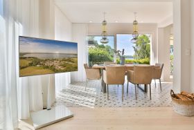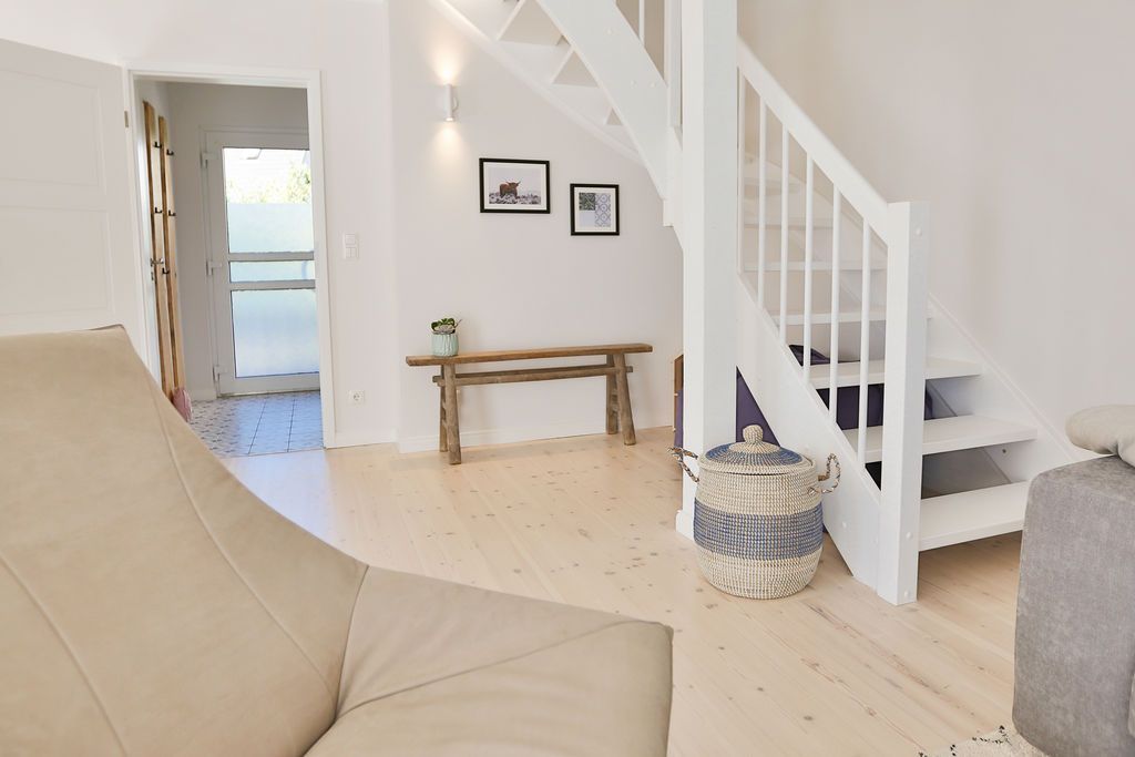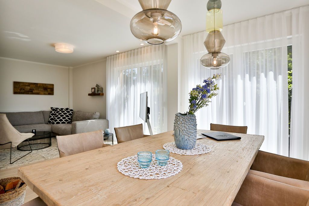 „Hygge“ - das ist der dänische Inbegriff für Idylle, für Gemütlichkeit, für Atmosphäre und Wohlgefühl. Ein stilvolles Ambiente ist ebenso Hygge wie das gemeinsame Zusammensein von Freunden oder der Familie, ein mit Liebe zubereitetes Essen ebenso wie die kleinen Details, die ein Haus heimelig machen - eben hyggelig. Dieses wunderschöne Ferienhaus ganz in der Nähe des Schmollensees in Sellin vereint all das, was Hygge ausmacht. Es ist ein kleines Paradies inmitten einer urig idyllischen Umgebung, ein Rückzugsort für jeden, der einmal raus aus der Hektik der Zeit kommen will. Mit traumhaftem Ausblick auf den See bietet das 100 Quadratmeter große Feriendomizil Platz für fünf Personen und ein Kleinkind bis zwei Jahre (im Kinderreisebett). Auch der geliebte Vierbeiner darf hier mit. Über zwei Etagen erstreckt sich das liebevoll eingerichtete Hygge Hus. Viel Platz für jeden zum Entspannen und Wohlfühlen. Durch die großen, bodentiefen Fenster ist das Haus licht und hell. Naturtöne und viel Weiß geben dem Ambiente eine luftige Atmosphäre. Modernes Wohn-Design im skandinavischen Landhausstil sorgt für die typisch hyggelige Gemütlichkeit. Im Erdgeschoss befindet sich ein geräumiges Wohn-Esszimmer. Ob Flat-TV oder knisterndes Feuer im Kamin-Ofen - Sie haben die Wahl. Romantisch wirds auf jeden Fall auf der kuscheligen Sofalandschaft. Eine kleine Spielecke befindet sich unter der Treppe zum Obergeschoss. Der Mittelpunkt eines Hauses ist jedoch oftmals der Esstisch. Er ist der Treffpunkt für die ganze Familie, ein Ort, an dem gegessen, getrunken, gelacht und erzählt wird. Genießen Sie die Mahlzeiten am schönen Echtholztisch mit Blick in den Garten und auf den See. Die Vintage-Fliesen, ein extravagantes Lampen-Design und die Accessoires verleihen diesem Platz noch zusätzlich Flair. Vom Wohnzimmer aus können Sie hinaus auf die Sonnenterrasse treten. Hier lässt es sich wunderbar aushalten. Auch zum Grillen. Denn im Garten steht ein Holzkohlegrill. Zum Wohnzimmer hin öffnet sich die Küche - abgeteilt durch eine kleine Theke mit stylischen Charles Ghost Barhockern, auf denen man das Gefühl hat zu schweben. Hier finden Sie alles, was das Köcheherz begehrt. Modernste Markengeräte wie ein Induktionsherd, eine Geschirrspülmaschine, eine Kaffeemaschine (Nespresso) und vieles mehr erleichtert jeden Handgriff. Edles Geschirr steht in den Schränken. Ausgleichend und detailverliebt geht es auch im Obergeschoss zu. Hier befinden sich zwei gemütliche Schlafzimmer - beide mit einem Boxspringdoppelbett (1,80 m x 2,00 m und 1,60 m x 2,00 m) ausgestattet. In einem der beiden Schlafzimmer befindet sich außerdem ein Boxspringeinzelbett (0,90 m x 2,00 m) für die fünfte Person. Ob Schaukelstuhl mit Blick auf den Schmollensee oder die vielen schönen Accessoires - hier fühlt man sich sofort wohl. Einbauschränke bieten viel Ablagefläche. Aus einem der beiden Schlafzimmer haben Sie Zugang zu einem urigen, kleinen Balkon. Das großzügig geschnittene Tageslichtbad hat eine Badewanne, einen Waschtisch und WC. Im Erdgeschoss gibt es ein weiteres Badezimmer mit Dusche und WC. Zum Haus gehört ein Fahrradschuppen und ein Pkw-Stellplatz. Bei Ihrer Anreise sind die Betten bezogen und Handtücher liegen bereit. 1 PKW-Stellplatz befindet sich auf dem Grundstück. Damit der Strand auch noch in greifbare Nähe rückt, kann ein kostenloser Stellplatz in Heringsdorf (Neuer Weg) genutzt werden.