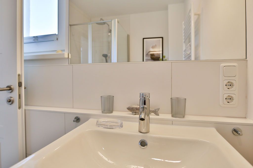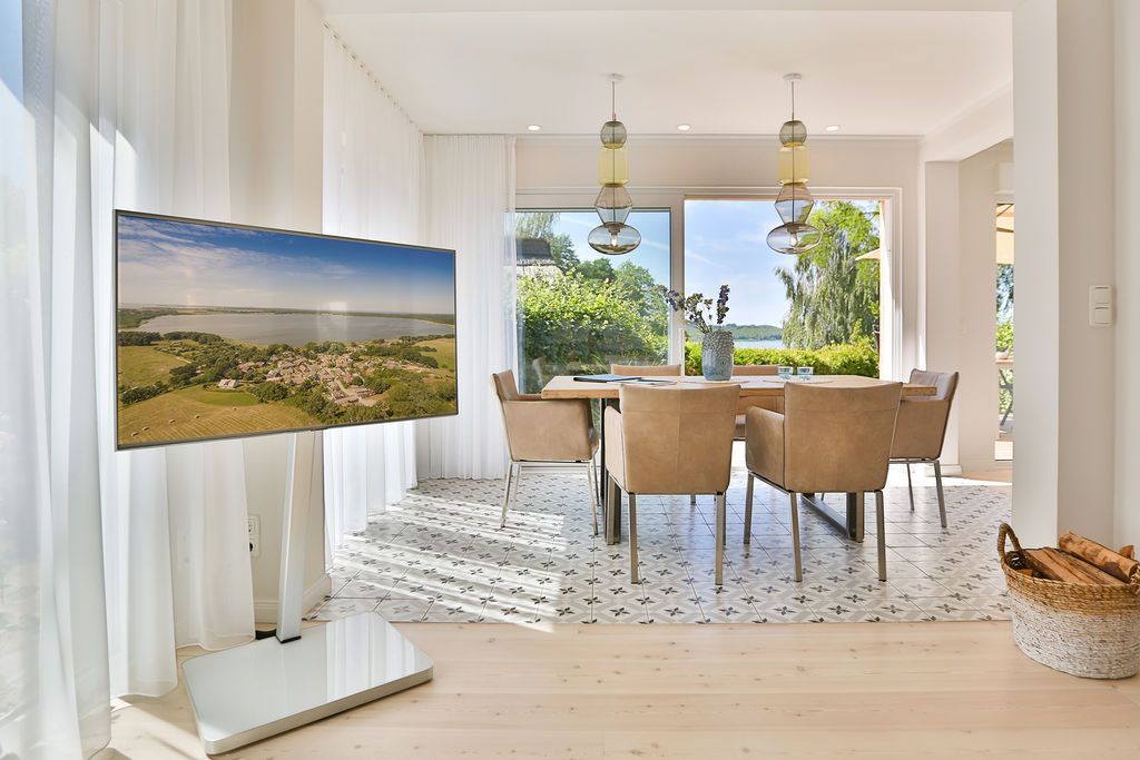 Hygge - das ist der dänische Inbegriff für Idylle, für Gemütlichkeit, für Atmosphäre und Wohlgefühl. Ein stilvolles Ambiente ist ebenso Hygge wie das gemeinsame Zusammensein von Freunden oder der Familie, ein mit Liebe zubereitetes Essen ebenso wie die kleinen Details, die ein Haus heimelig machen - eben hyggelig. Dieses wunderschöne Ferienhaus ganz in der Nähe des Schmollensees in Sellin vereint all das, was Hygge ausmacht. Es ist ein kleines Paradies inmitten einer urig idyllischen Umgebung, ein Rückzugsort für jeden, der einmal raus aus der Hektik der Zeit kommen will. Mit traumhaftem Ausblick auf den See bietet das 100 Quadratmeter große Feriendomizil Platz für fünf Personen und ein Kleinkind bis zwei Jahre (im Kinderreisebett). Auch der geliebte Vierbeiner darf hier mit. Über zwei Etagen erstreckt sich das liebevoll eingerichtete Hygge Hus. Viel Platz für jeden zum Entspannen und Wohlfühlen. Durch die großen, bodentiefen Fenster ist das Haus licht und hell. Naturtöne und viel Weiß geben dem Ambiente eine luftige Atmosphäre. Modernes Wohn-Design im skandinavischen Landhausstil sorgt für die typisch hyggelige Gemütlichkeit. Im Erdgeschoss befindet sich ein geräumiges Wohn-Esszimmer. Ob Flat-TV oder knisterndes Feuer im Kamin-Ofen - Sie haben die Wahl. Romantisch wirds auf jeden Fall auf der kuscheligen Sofalandschaft. Eine kleine Spielecke befindet sich unter der Treppe zum Obergeschoss. Der Mittelpunkt eines Hauses ist jedoch oftmals der Esstisch. Er ist der Treffpunkt für die ganze Familie, ein Ort, an dem gegessen, getrunken, gelacht und erzählt wird. Genießen Sie die Mahlzeiten am schönen Echtholztisch mit Blick in den Garten und auf den See. Die Vintage-Fliesen, ein extravagantes Lampen-Design und die Accessoires verleihen diesem Platz noch zusätzlich Flair. Vom Wohnzimmer aus können Sie hinaus auf die Sonnenterrasse treten. Hier lässt es sich wunderbar aushalten. Auch zum Grillen. Denn im Garten steht ein Holzkohlegrill. Zum Wohnzimmer hin öffnet sich die Küche - abgeteilt durch eine kleine Theke mit stylischen Charles Ghost Barhockern, auf denen man das Gefühl hat zu schweben. Hier finden Sie alles, was das Köcheherz begehrt. Modernste Markengeräte wie ein Induktionsherd, eine Geschirrspülmaschine, eine Kaffeemaschine (Nespresso) und vieles mehr erleichtert jeden Handgriff. Edles Geschirr steht in den Schränken. Ausgleichend und detailverliebt geht es auch im Obergeschoss zu. Hier befinden sich zwei gemütliche Schlafzimmer - beide mit einem Boxspringdoppelbett (1,80 m x 2,00 m und 1,60 m x 2,00 m) ausgestattet. In einem der beiden Schlafzimmer befindet sich außerdem ein Boxspringeinzelbett (0,90 m x 2,00 m) für die fünfte Person. Ob Schaukelstuhl mit Blick auf den Schmollensee oder die vielen schönen Accessoires - hier fühlt man sich sofort wohl. Einbauschränke bieten viel Ablagefläche. Aus einem der beiden Schlafzimmer haben Sie Zugang zu einem urigen, kleinen Balkon. Das großzügig geschnittene Tageslichtbad hat eine Badewanne, einen Waschtisch und WC. Im Erdgeschoss gibt es ein weiteres Badezimmer mit Dusche und WC. Zum Haus gehört ein Fahrradschuppen und ein Pkw-Stellplatz. Bei Ihrer Anreise sind die Betten bezogen und Handtücher liegen bereit. 1 PKW-Stellplatz befindet sich auf dem Grundstück. Damit der Strand auch noch in greifbare Nähe rückt, kann ein kostenloser Stellplatz in Heringsdorf (Neuer Weg) genutzt werden.
