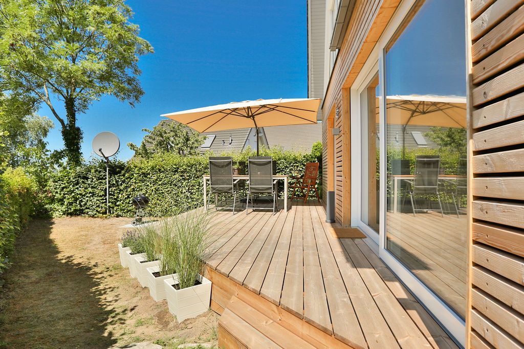 Willkommen im Hygge Hus in Sellin - gemütlich Urlauben mit traumhaftem Blick auf den Schmollensee. Das Ferienhaus mit 100 qm hat Platz für bis zu 5 Personen & 1 Kleinkind. Die überwiegend bodentiefen Fenster geben viel Licht in den offenen Wohn- und Essbereich im Erdgeschoss und man hat gleichzeitig einen schönen Blick auf den See und in den Garten. Beide Schlafzimmer befinden sich im Obergeschoss, sowie ein schönes Wannenbad und der West-Balkon. Ein PKW kann direkt auf dem Grundstück parken. Nun heißt es nur noch - ankommen und wohlfühlen...
