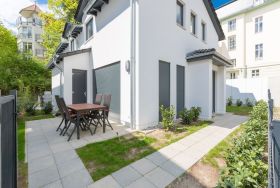 Hier schlägt das Herz des Kaiserbades. Umgeben vom Charme der alten Bädervillen können Ostseeliebhaber eintauchen ins mondäne und schon zu Kaiserzeiten beliebte Heringsdorf. Urlaub in ganz besonderer Atmosphäre. Anders als die umliegenden Häuser ist das Gartenhaus am Waldschloss, wie das Quartier am Waldschloss jedoch ein absolut modernes Kleinod mit stylischem Wohnkomfort. Das erst 2018 neu gebaute Gartenhaus am Waldschloss empfängt seine Gäste in den beiden Drei- und Vier-Zimmer-Appartements mit viel Stil und Exklusivität. Es fehlt an nichts. Eine elegante, harmonisch aufeinander abgestimmte und gemütliche Einrichtung, eine hochwertige Küchen-Ausstattung, Kaminöfen, in einem Appartement eine eigene Elektro-Sauna sowie Terrassen: Wohlfühlen der Extraklasse ist hier angesagt. Und die Ostsee ist auch nur wenige Gehminuten entfernt. Wenn Sie das Besondere im Urlaub lieben, sind Sie im Gartenhaus am Waldschloss genau richtig.
