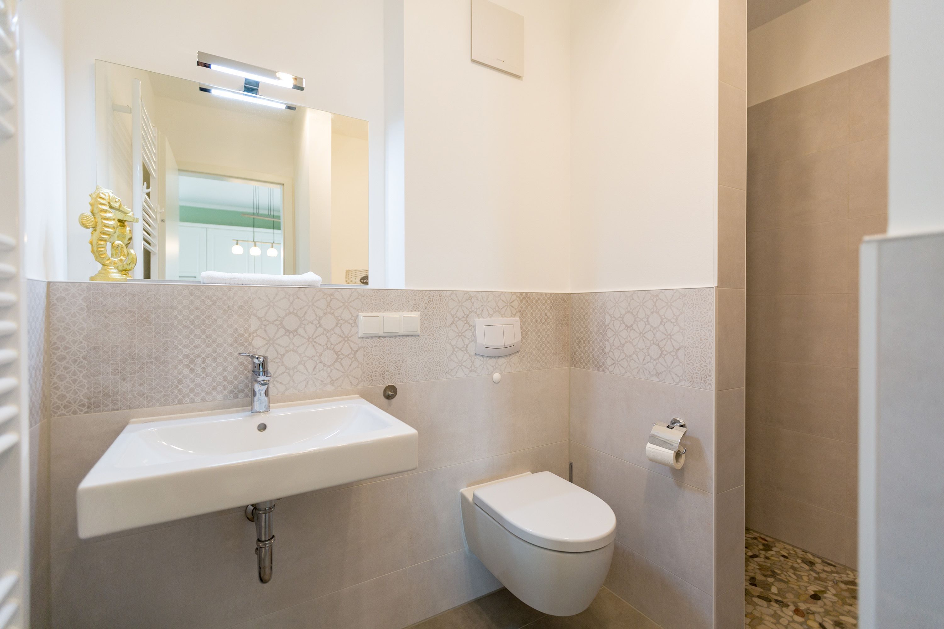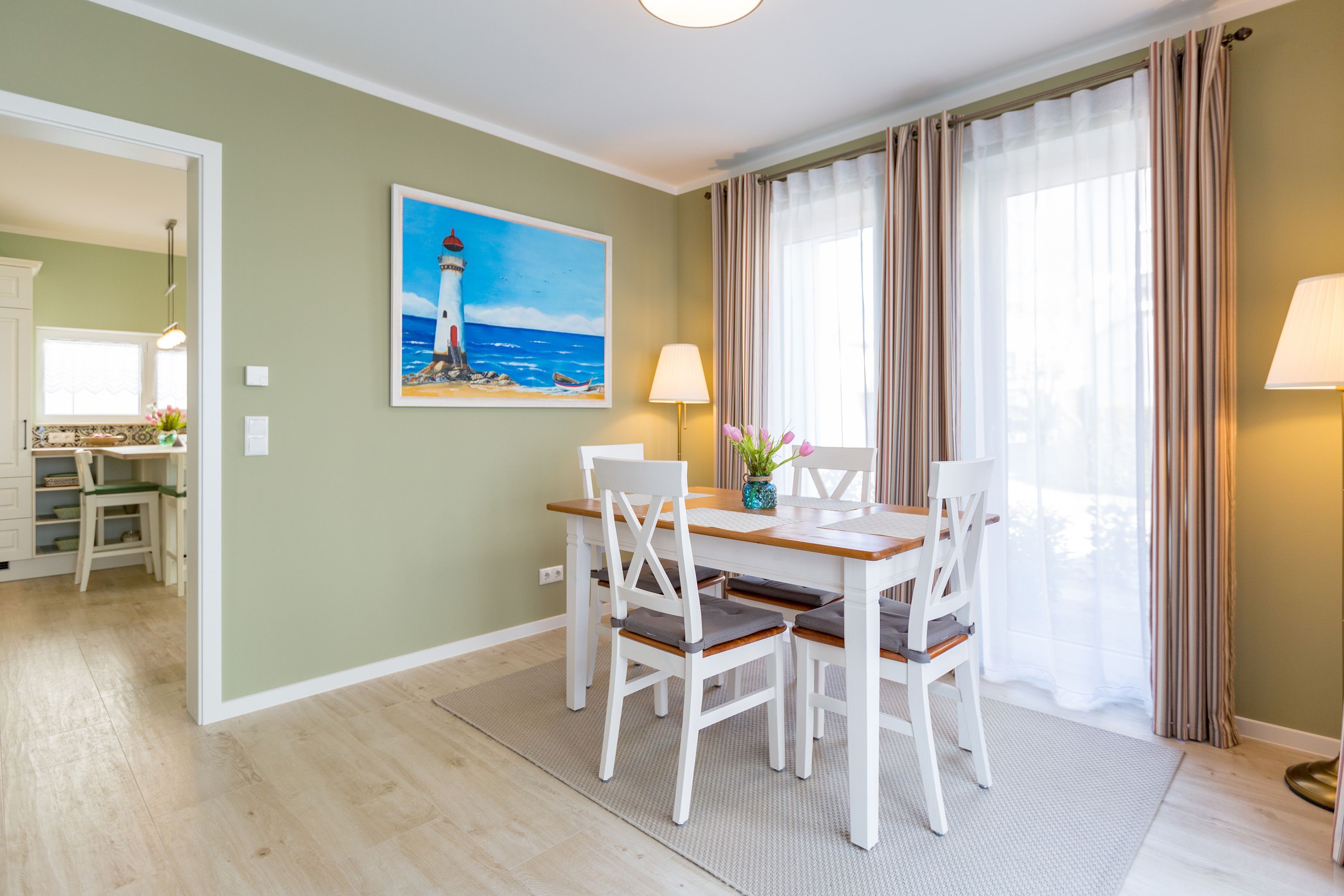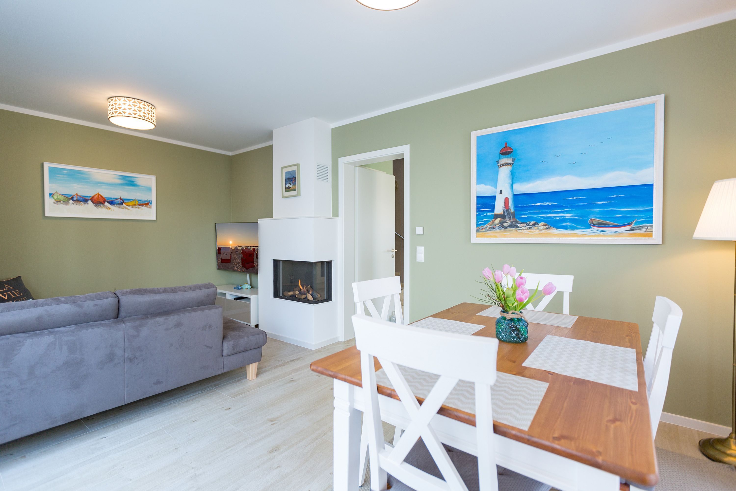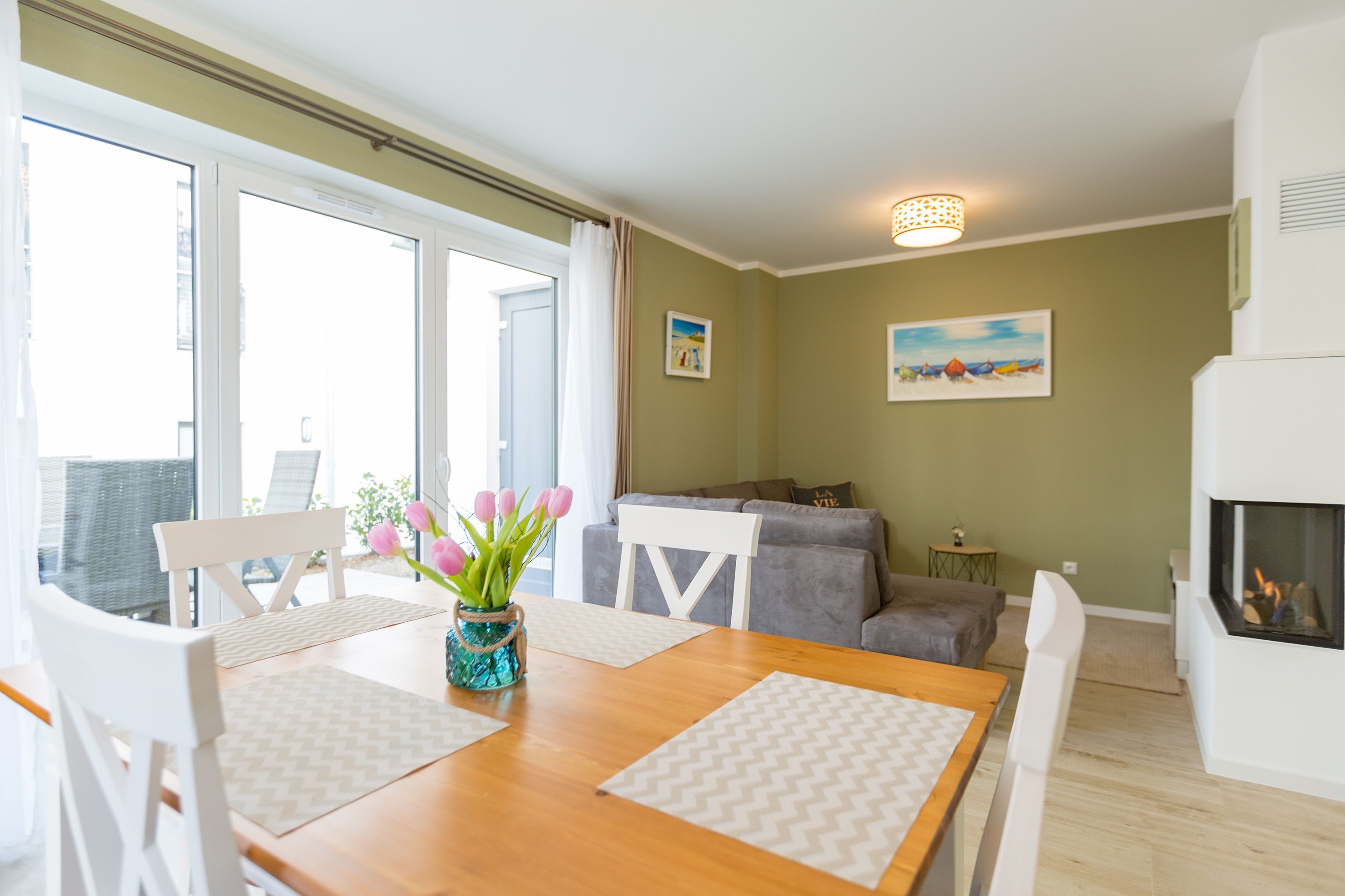 Inmitten des Urlaubstrubels der Kaiserbäder ist das komplett abgeschlossene Appartement Nummer 2 im Gartenhaus des Quartiers am Waldschloss ein exklusives Ruhereich über zwei Etagen. Auf seinen 82 Quadratmetern bietet es Platz für bis zu 5 Personen. Ein Kleinkind bis 2 Jahre kann im Kinderreisebett ebenfalls aufgebettet werden. Hier darf getrost auch der geliebte Vierbeiner mitgebracht werden, das Grundstück ist komplett eingezäunt. So wird der Urlaub an der Ostsee ein rundum gelungenes Erlebnis für Familien und Freunde. Eine wunderschöne, große Küche empfängt Sie gleich beim Eintreten. Vintage-Fliesen und viel weißes Holz im skandinavischen Landhaus-Stil geben Ihnen vom ersten Moment an das Gefühl, genau am richtigen Ort Urlaub zu machen. Hier finden Sie übrigens alle Geräte wie Herd, Spülmaschine, Gefrierschrank, die Sie für gemeinsame Mahlzeiten brauchen können. Inklusive einer urigen Theke für den kleinen Plausch zwischendurch. Von der Küche aus geht es in das helle und großzügige Wohn-Ess-Zimmer. Hier wartet eine große und komfortable Sofalandschaft nur darauf, dass Sie sich fallen lassen und ausgiebig relaxen. Dabei können Sie den Blick auf das Flammenspiel des Gas-Kamins oder aber einen spannenden Film auf dem großen Flat-TV genießen. Die Einrichtung strahlt viel Gemütlichkeit aus. An einem schönen Holztisch können Sie die Mahlzeiten gemeinsam einnehmen. Oder sie setzen sich nach draußen auf die Terrasse. Im Erdgeschoss befindet sich zudem ein separates WC mit Waschbecken, Dusche und Waschmaschine. Zum Schlafen gehts eine Etage nach oben. Zwei Schlafzimmer mit komfortablen Boxspringdoppelbetten ( 1,60m x 2,00m), davon eines mit Flat-TV und Kleiderschrank sowie ein drittes Schlafzimmer mit einer Sofa-Sitzgruppe, die zu einer Schlafcouch ( 1,80m x 2,00m) für eine 5. Person umfunktioniert werden kann sorgen für erholsames Schlafvergnügen. Ein lichtdurchflutetes Badezimmer mit Eckdusche, Waschbecken und WC ist Ihr kleiner Wellness-Bereich. Handtücher liegen für Sie bereit. Und natürlich sind die Betten bei Ankunft ebenfalls bezogen. Und für Ihr Auto gibt es einen für Sie reservierten Tiefgaragen-Stellplatz Nr. 11 a / WE 2 im Nachbarhaus (Einfahrthöhe max. 2,00 m, Stellplatzbreite max. 2,30m, eingeschränkte Wendemöglichkeit).
