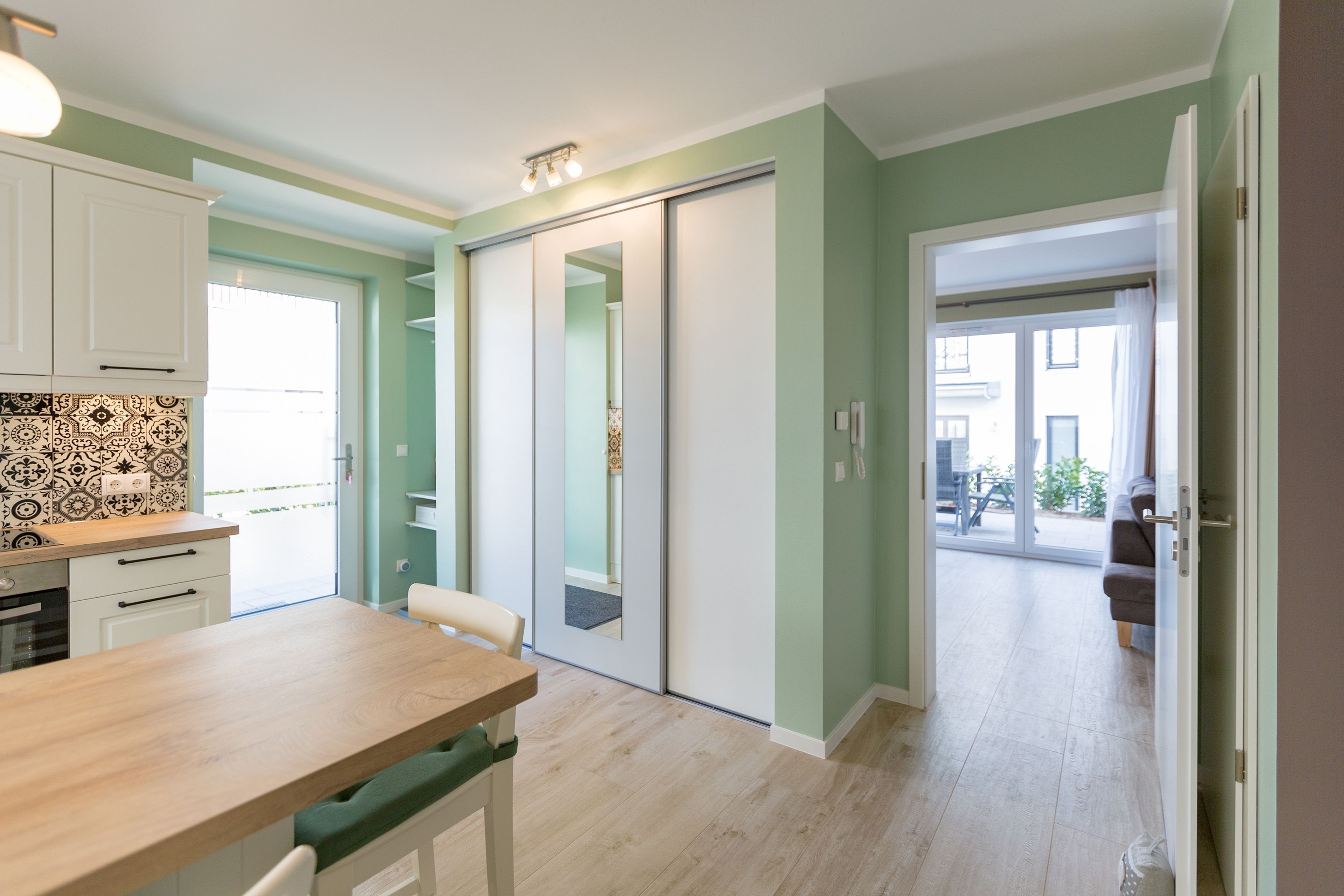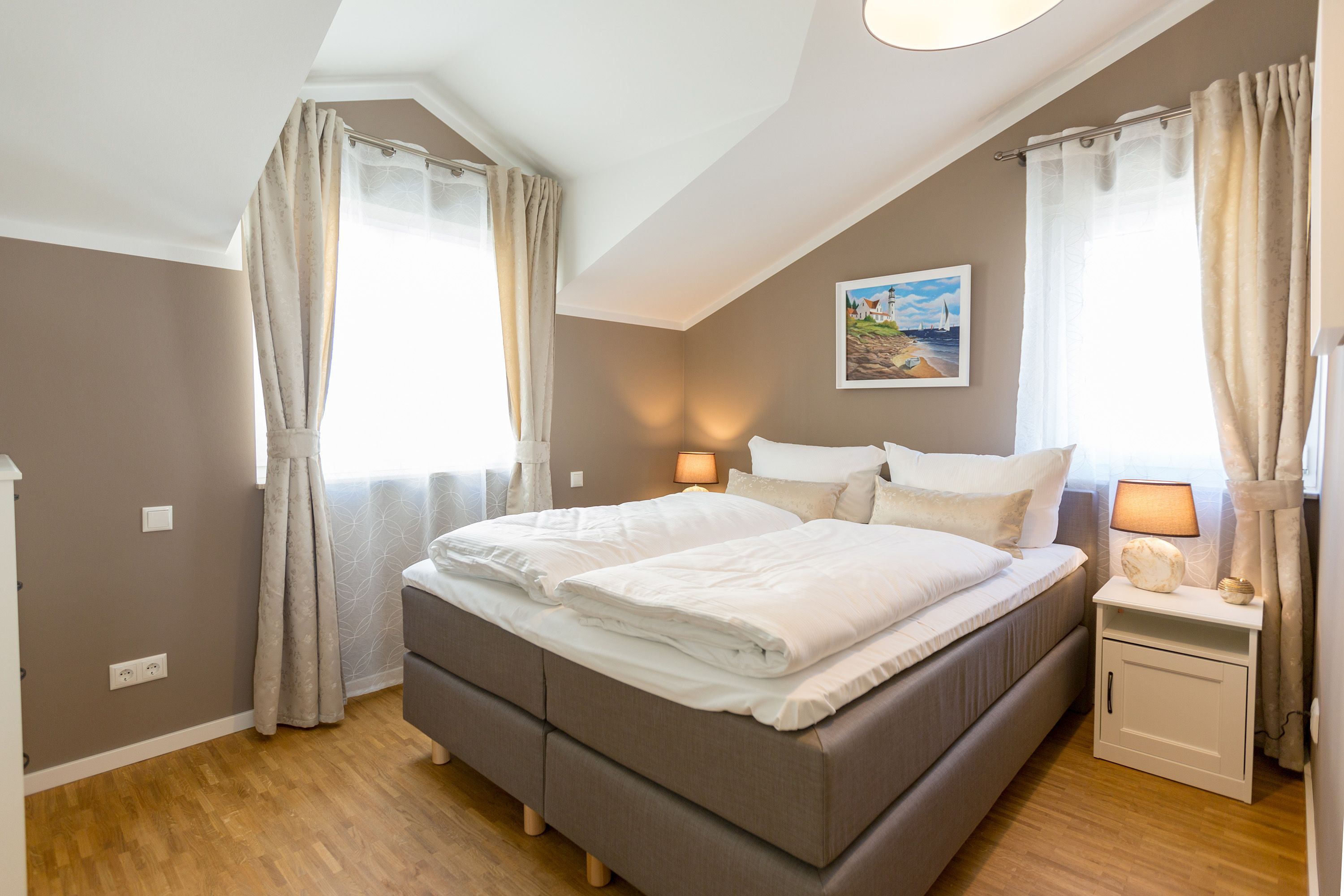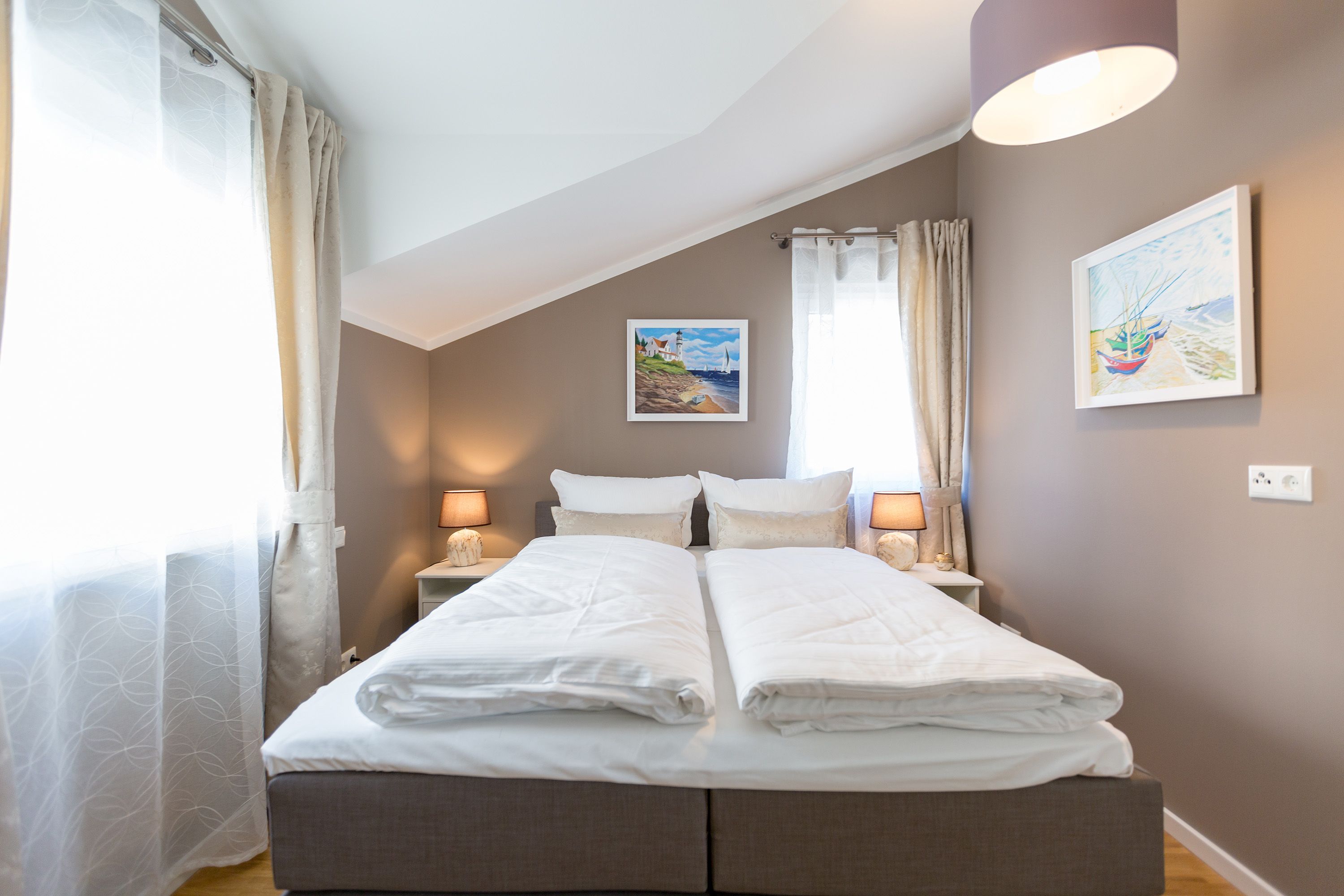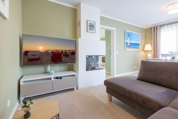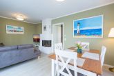 Inmitten des Urlaubstrubels der Kaiserbäder ist das komplett abgeschlossene Appartement Nummer 2 im Gartenhaus des Quartiers am Waldschloss ein exklusives Ruhereich über zwei Etagen. Auf seinen 82 Quadratmetern bietet es Platz für bis zu 5 Personen. Ein Kleinkind bis 2 Jahre kann im Kinderreisebett ebenfalls aufgebettet werden. Hier darf getrost auch der geliebte Vierbeiner mitgebracht werden, das Grundstück ist komplett eingezäunt. So wird der Urlaub an der Ostsee ein rundum gelungenes Erlebnis für Familien und Freunde. Eine wunderschöne, große Küche empfängt Sie gleich beim Eintreten. Vintage-Fliesen und viel weißes Holz im skandinavischen Landhaus-Stil geben Ihnen vom ersten Moment an das Gefühl, genau am richtigen Ort Urlaub zu machen. Hier finden Sie übrigens alle Geräte wie Herd, Spülmaschine, Gefrierschrank, die Sie für gemeinsame Mahlzeiten brauchen können. Inklusive einer urigen Theke für den kleinen Plausch zwischendurch. Von der Küche aus geht es in das helle und großzügige Wohn-Ess-Zimmer. Hier wartet eine große und komfortable Sofalandschaft nur darauf, dass Sie sich fallen lassen und ausgiebig relaxen. Dabei können Sie den Blick auf das Flammenspiel des Gas-Kamins oder aber einen spannenden Film auf dem großen Flat-TV genießen. Die Einrichtung strahlt viel Gemütlichkeit aus. An einem schönen Holztisch können Sie die Mahlzeiten gemeinsam einnehmen. Oder sie setzen sich nach draußen auf die Terrasse. Im Erdgeschoss befindet sich zudem ein separates WC mit Waschbecken, Dusche und Waschmaschine. Zum Schlafen gehts eine Etage nach oben. Zwei Schlafzimmer mit komfortablen Boxspringdoppelbetten ( 1,60m x 2,00m), davon eines mit Flat-TV und Kleiderschrank sowie ein drittes Schlafzimmer mit einer Sofa-Sitzgruppe, die zu einer Schlafcouch ( 1,80m x 2,00m) für eine 5. Person umfunktioniert werden kann sorgen für erholsames Schlafvergnügen. Ein lichtdurchflutetes Badezimmer mit Eckdusche, Waschbecken und WC ist Ihr kleiner Wellness-Bereich. Handtücher liegen für Sie bereit. Und natürlich sind die Betten bei Ankunft ebenfalls bezogen. Und für Ihr Auto gibt es einen für Sie reservierten Tiefgaragen-Stellplatz Nr. 11 a / WE 2 im Nachbarhaus (Einfahrthöhe max. 2,00 m, Stellplatzbreite max. 2,30m, eingeschränkte Wendemöglichkeit).