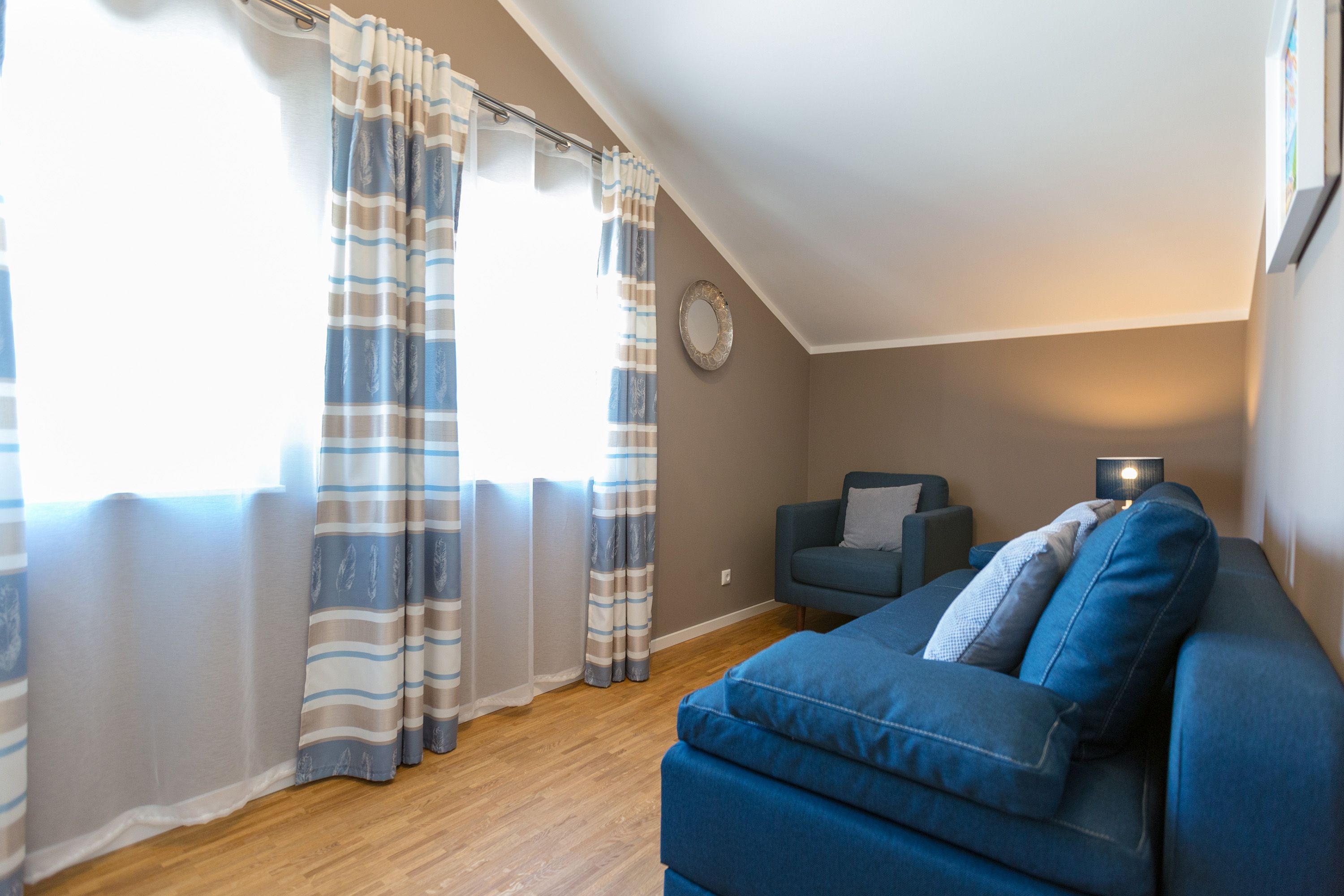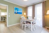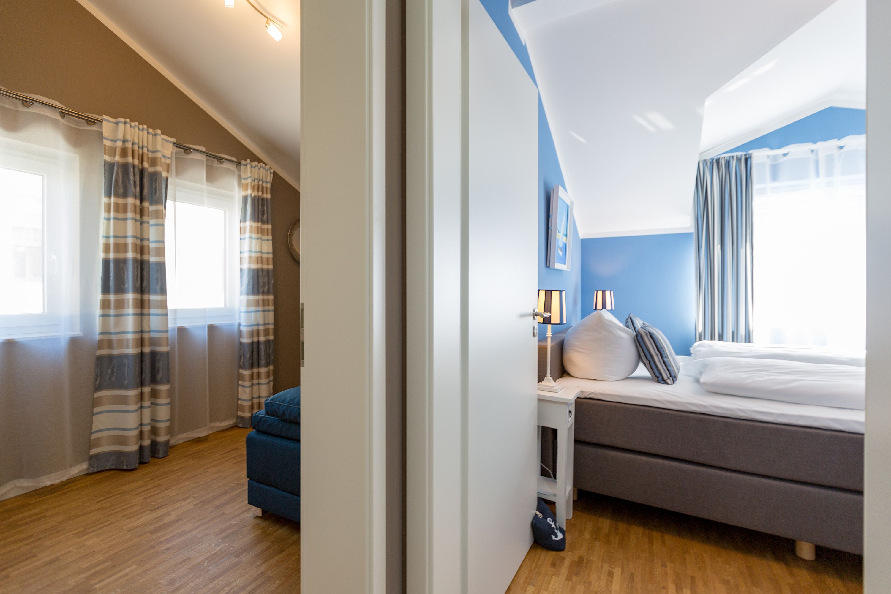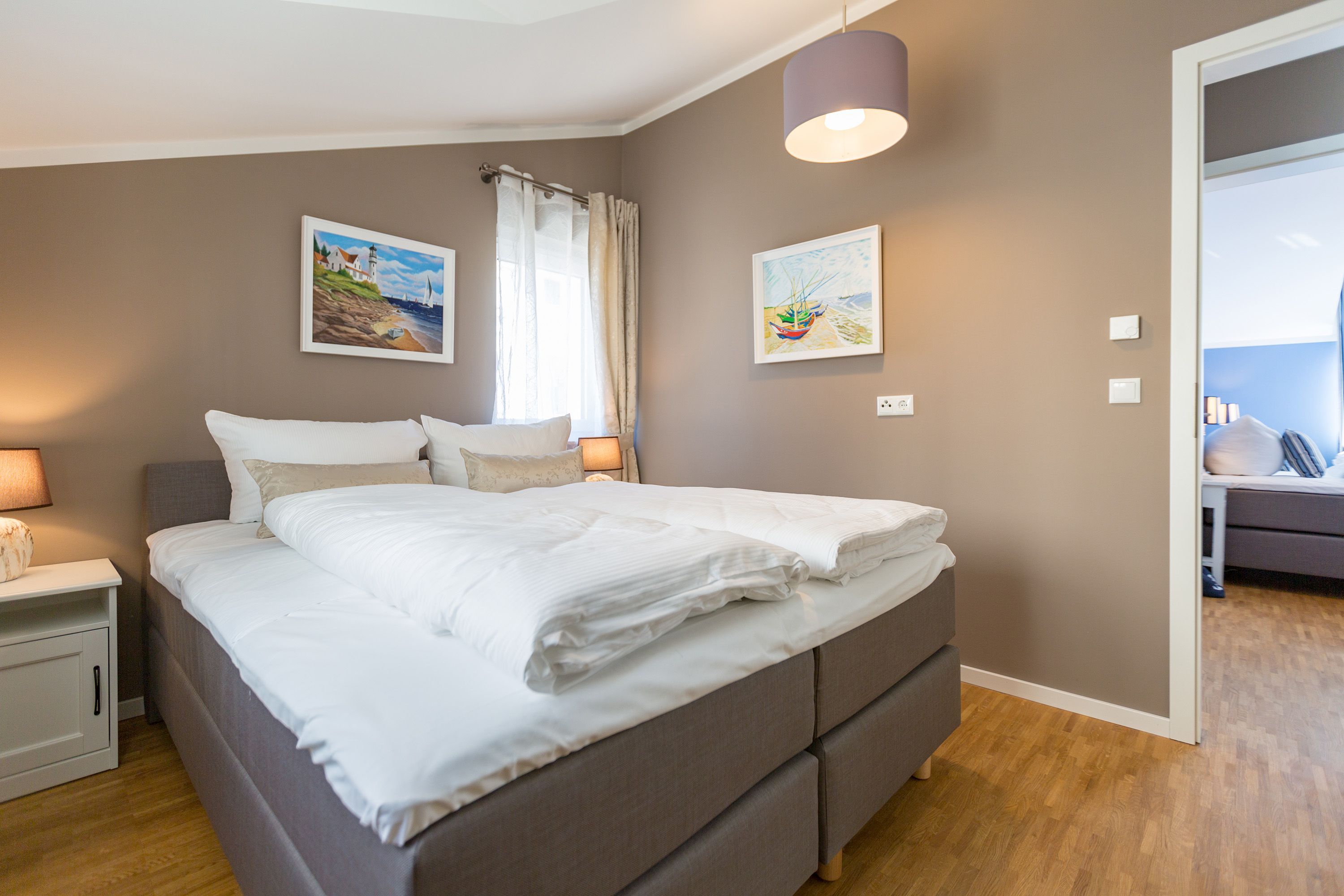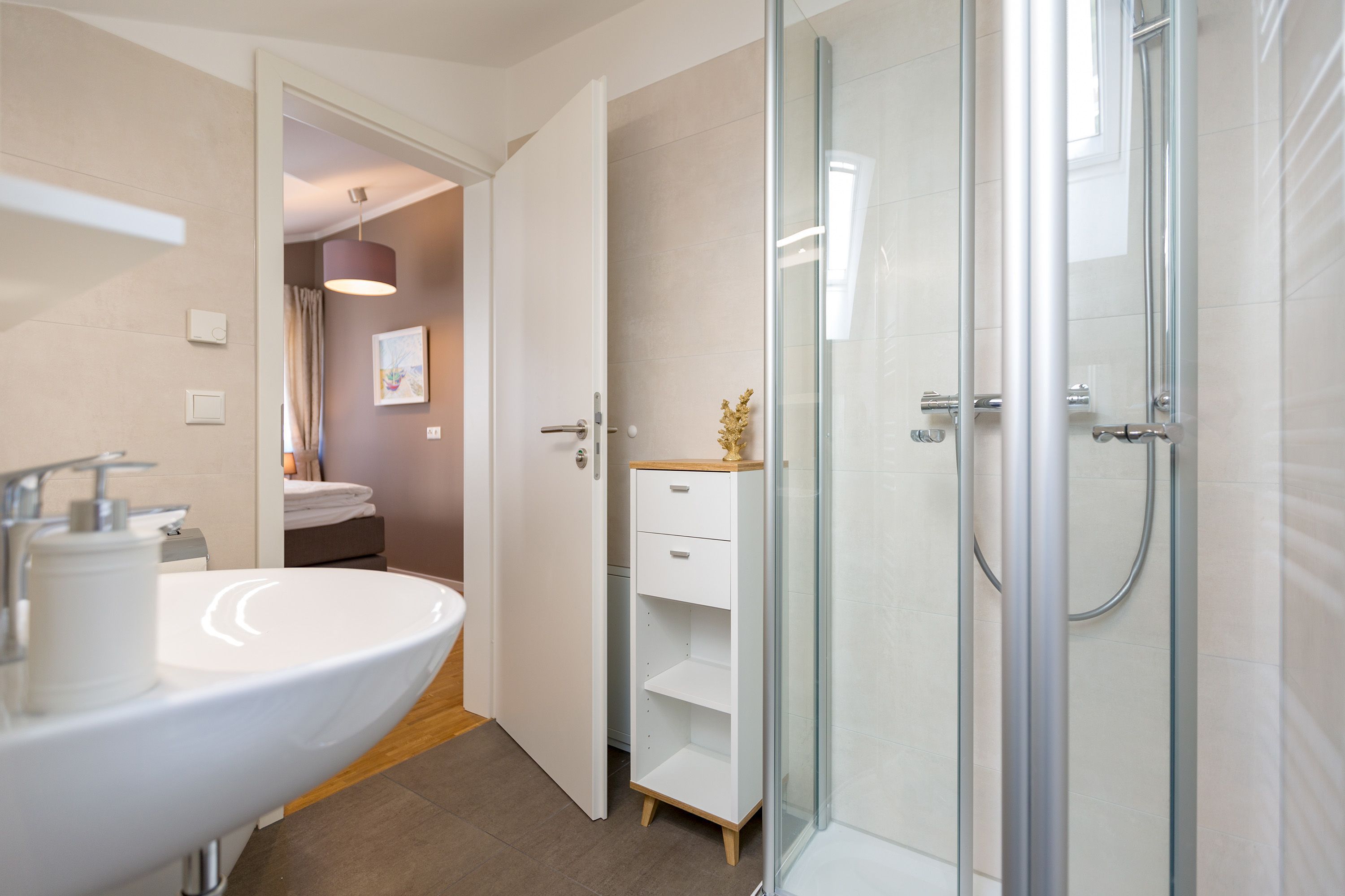 Inmitten des Urlaubstrubels der Kaiserbäder ist das komplett abgeschlossene Appartement Nummer 2 im Gartenhaus des Quartiers am Waldschloss ein exklusives Ruhereich über zwei Etagen. Auf seinen 82 Quadratmetern bietet es Platz für bis zu 5 Personen. Ein Kleinkind bis 2 Jahre kann im Kinderreisebett ebenfalls aufgebettet werden. Hier darf getrost auch der geliebte Vierbeiner mitgebracht werden, das Grundstück ist komplett eingezäunt. So wird der Urlaub an der Ostsee ein rundum gelungenes Erlebnis für Familien und Freunde. Eine wunderschöne, große Küche empfängt Sie gleich beim Eintreten. Vintage-Fliesen und viel weißes Holz im skandinavischen Landhaus-Stil geben Ihnen vom ersten Moment an das Gefühl, genau am richtigen Ort Urlaub zu machen. Hier finden Sie übrigens alle Geräte wie Herd, Spülmaschine, Gefrierschrank, die Sie für gemeinsame Mahlzeiten brauchen können. Inklusive einer urigen Theke für den kleinen Plausch zwischendurch. Von der Küche aus geht es in das helle und großzügige Wohn-Ess-Zimmer. Hier wartet eine große und komfortable Sofalandschaft nur darauf, dass Sie sich fallen lassen und ausgiebig relaxen. Dabei können Sie den Blick auf das Flammenspiel des Gas-Kamins oder aber einen spannenden Film auf dem großen Flat-TV genießen. Die Einrichtung strahlt viel Gemütlichkeit aus. An einem schönen Holztisch können Sie die Mahlzeiten gemeinsam einnehmen. Oder sie setzen sich nach draußen auf die Terrasse. Im Erdgeschoss befindet sich zudem ein separates WC mit Waschbecken, Dusche und Waschmaschine. Zum Schlafen gehts eine Etage nach oben. Zwei Schlafzimmer mit komfortablen Boxspringdoppelbetten ( 1,60m x 2,00m), davon eines mit Flat-TV und Kleiderschrank sowie ein drittes Schlafzimmer mit einer Sofa-Sitzgruppe, die zu einer Schlafcouch ( 1,80m x 2,00m) für eine 5. Person umfunktioniert werden kann sorgen für erholsames Schlafvergnügen. Ein lichtdurchflutetes Badezimmer mit Eckdusche, Waschbecken und WC ist Ihr kleiner Wellness-Bereich. Handtücher liegen für Sie bereit. Und natürlich sind die Betten bei Ankunft ebenfalls bezogen. Und für Ihr Auto gibt es einen für Sie reservierten Tiefgaragen-Stellplatz Nr. 11 a / WE 2 im Nachbarhaus (Einfahrthöhe max. 2,00 m, Stellplatzbreite max. 2,30m, eingeschränkte Wendemöglichkeit).