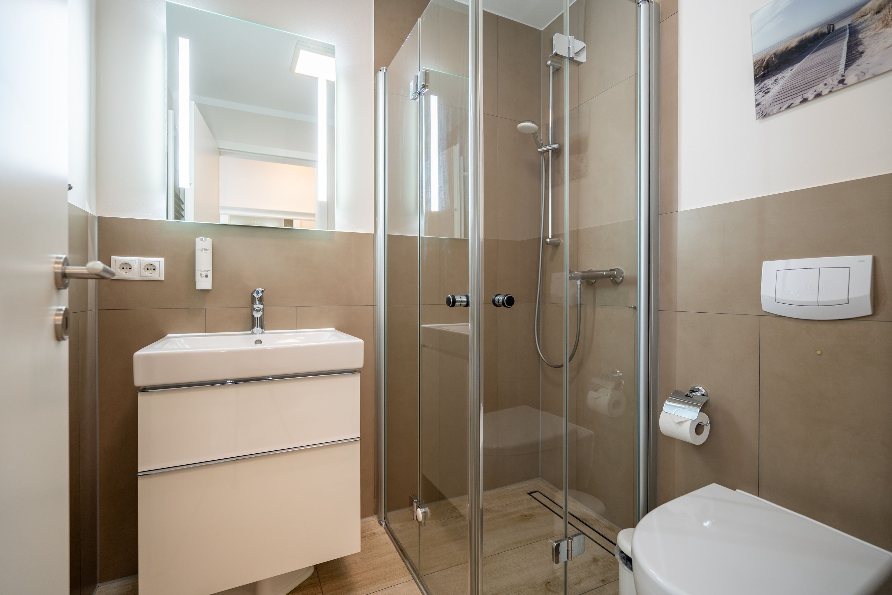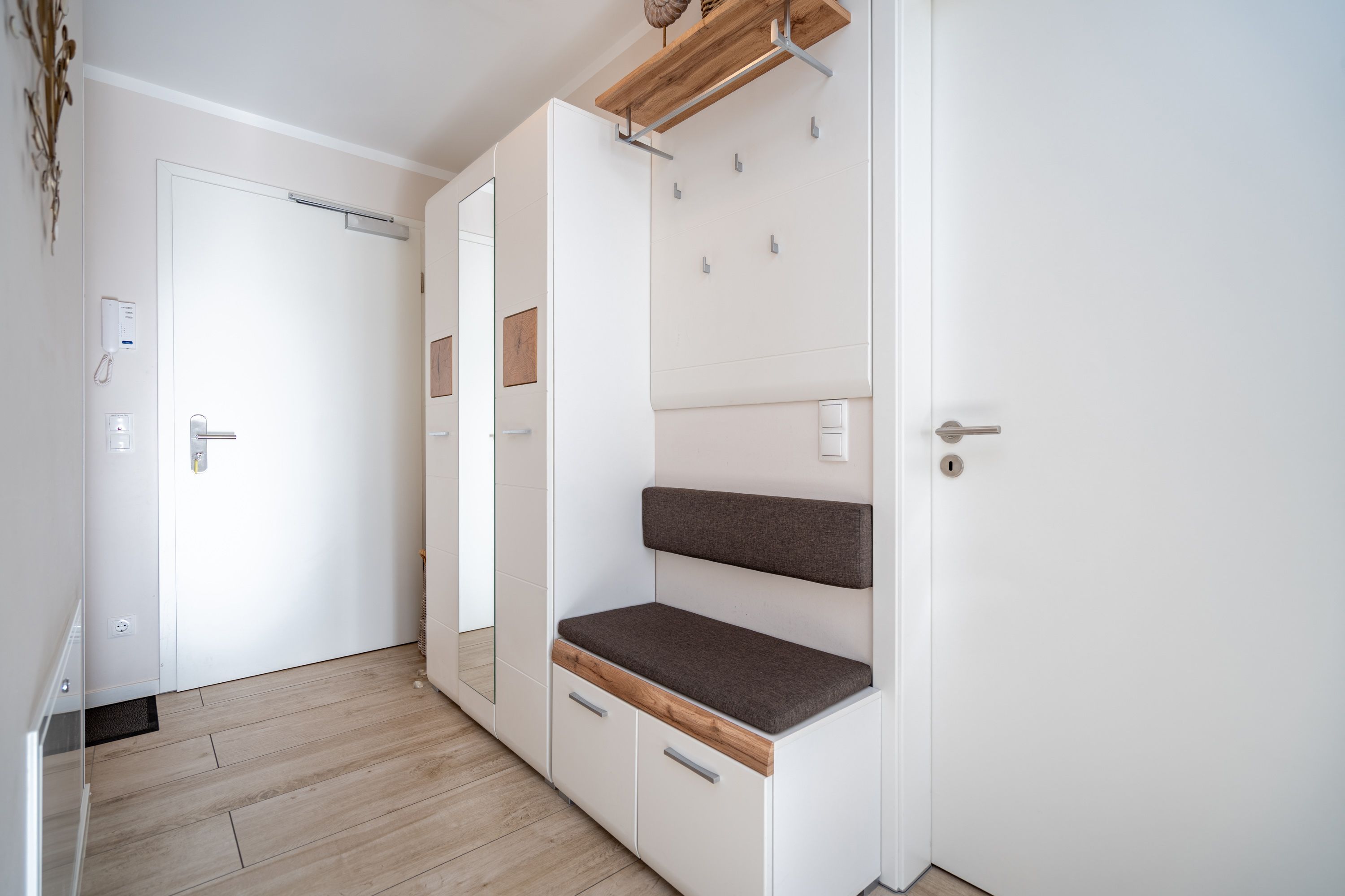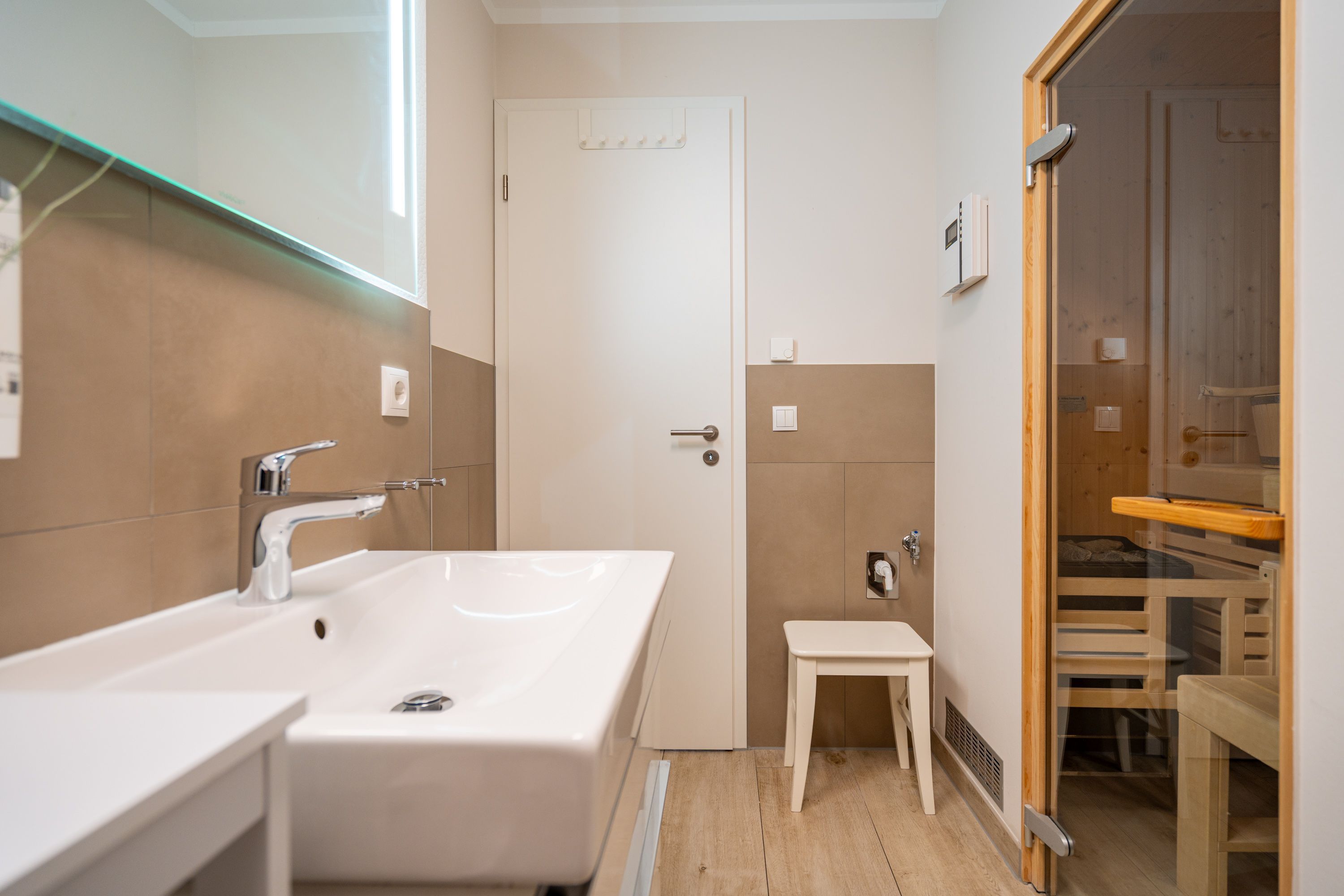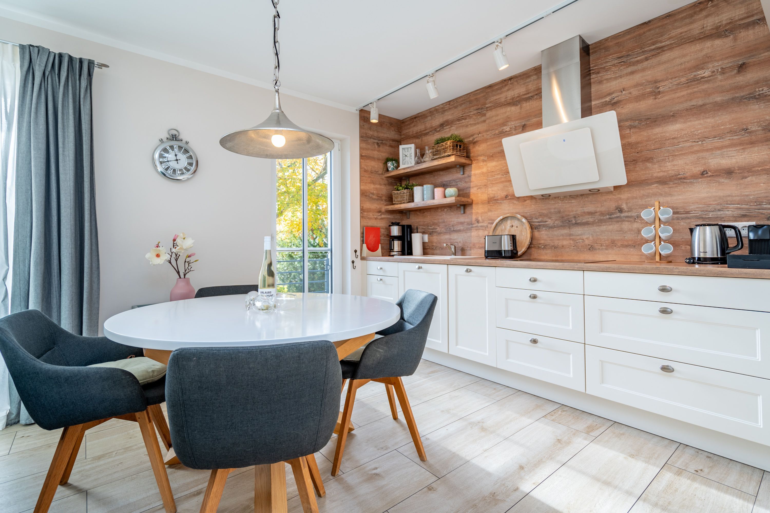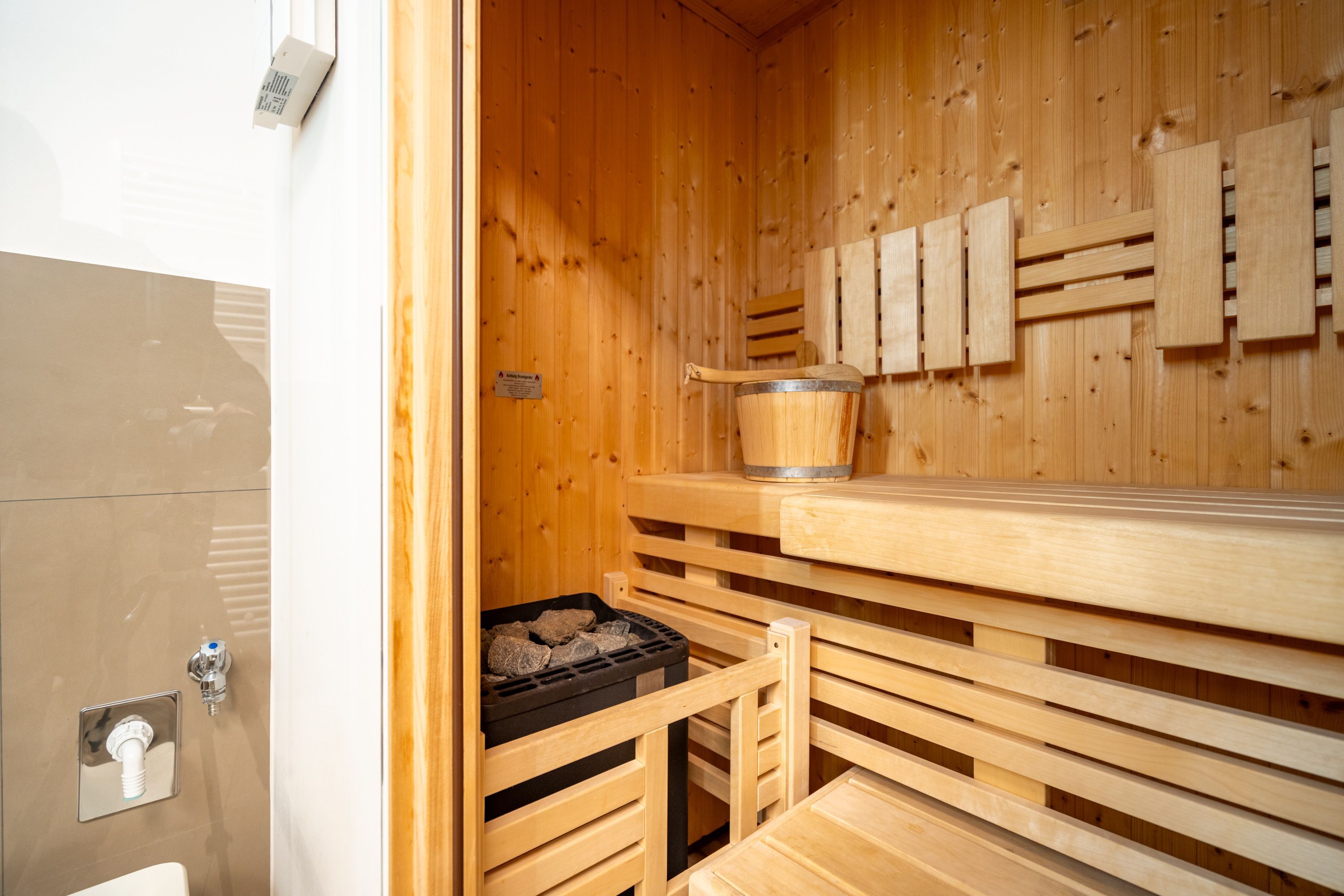 Auf 73 Quadratmetern bietet das Drei-Zimmer-Appartement Nummer 3 im 1. Obergeschoss alles, was man sich für einen entspannten Urlaub an der Ostsee nur wünschen kann. Viel Platz und eine Einrichtung zum Pudelwohlfühlen ein kleines Paradies für bis zu vier Personen wartet auf Sie. Das helle und geräumige Wohn-Esszimmer ist mit viel Geschmack und Zeitgeist eingerichtet. Hier spürt man die Liebe zum Interieur und zum Detail. Nordisches Landhaus-Design durchzieht jeden Raum. Naturmaterialien, ausgesuchte Accessoires und viel Komfort bestimmen die Ausstattung. Ob Sofa, Ohrensessel oder uriger Korbstuhl lassen Sie sich fallen und entspannen Sie einfach mal drauf los. Hier wird es Ihnen sicher leicht fallen. Vom Wohnzimmer gehts auf einen schönen Süd-Balkon. Sonnenhungrige können hier neue Energie tanken. Ob Großer Flat-TV, hochwertige Musikanlage oder Kamin Unterhaltung wird hier zur puren Entspannung. Das offene Wohn-Esszimmer bietet mit seinem großen, runden Tisch und den bequemen Stühlen einen schönen Essplatz für genüssliche und gesellige Stunden. Die offene Küche ist mit allem ausgestattet, das Sie zum Kochen, Braten oder Backen brauchen. Hochwertige Markengeräte sind Ihnen fleißige Küchenhelfer. Vom Backofen, über den Geschirrspüler bis hin zur Kaffeemaschine ist alles da. Zwei Schlafzimmer schenken echtes Schlafvergnügen mit ihren komfortablen Boxspringdoppelbetten (1,80 m x 2,00 m). Ein zweiter Balkon in Ostausrichtung ist von beiden Zimmern aus begehbar. Genießen Sie hier schon morgens die aufgehende Sonne. In jedem Schlafzimmer gibt es einen Flat-TV. Viel Ablagefläche bieten die geräumigen Schränke. Ebenfalls zweifach vorhanden, ist das Badezimmer. Dusche, Waschtisch und WC gehören zur Ausstattung in beiden Räumen. Im Masterbad erwartet Sie darüber hinaus eine Finnische Sauna, in der Sie nach Herzenslust bei kuschelig warmen Temperaturen entspannen können. Handtücher liegen bei Anreise bereit und die Betten sind frisch bezogen. In der Tiefgarage ist für Sie ein Stellplatz reserviert. In dieser Wohnung sind Haustiere nicht erlaubt - jedoch ist diese nicht garantiert allergikerfreundlich.