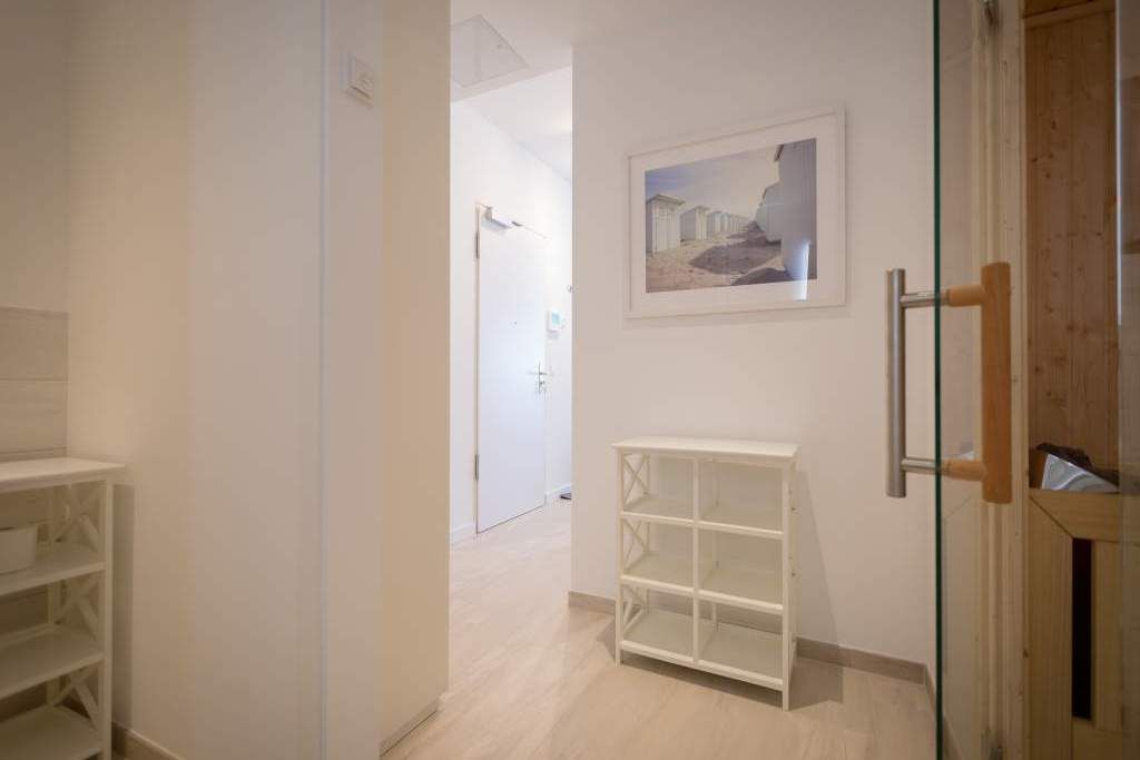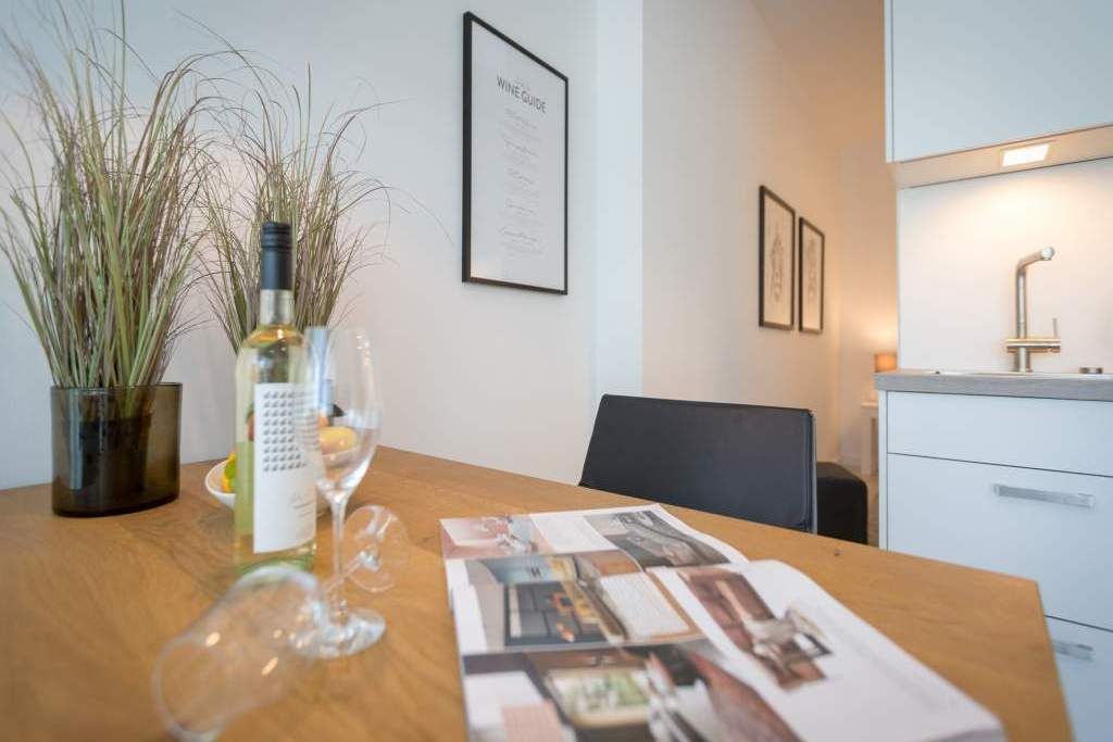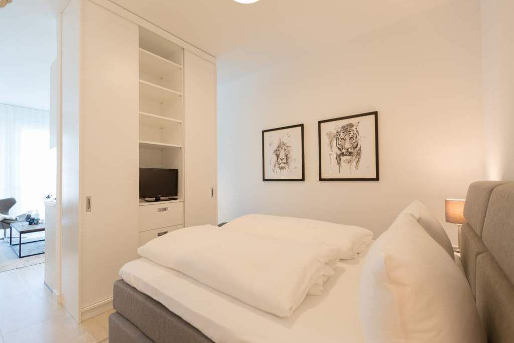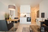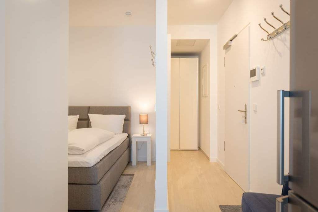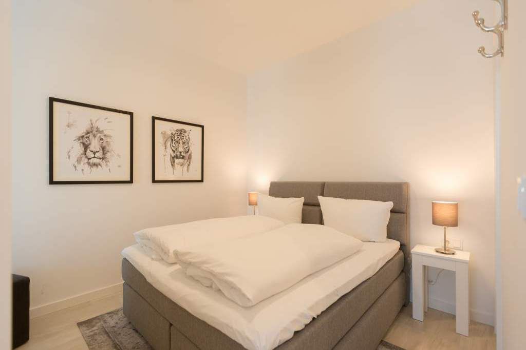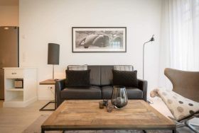Ein kühles Getränk in der Hand, den lauen Sommerabend auf der Terrasse genießen. Unweit der Promenade mit Zugang zur Ostsee weht eine leichte Brise. Urlaubsgenuss pur mit einem Hauch von Salz in der Luft und jeder Menge Wohn-Style. Das Ein-Zimmer-Appartement Nummer 1 im Erdgeschoss des Westendpalais empfängt Sie mit einer eleganten und modernen Einrichtung. Zu zweit mit kleinem Kind bis zu drei Jahren im Kinderreisebett oder Ihrem geliebten Vierbeiner können Sie hier eine kuschelige und entspannte Auszeit am Meer erleben. Das helle und luftige Wohn-Esszimmer bietet allen Komfort, den man sich nur wünschen kann. Flat-TV, bequeme Sitz- und Relax-Möbel, einen schönen Essbereich, eine offene Küche, ausgestattet mit hochwertigen Geräten und Geschirr, eine kleine Terrasse mit seitlichem Blick in Richtung Meer hier dürfen Sie einfach ankommen. Schalten Sie ab und tanken Sie neue Energie. Der Schlafbereich ist vom offenen Wohnzimmer ein wenig abgeteilt. Das große und komfortable Boxspringdoppelbett (1,80 m x 2,00 m) verspricht nicht nur Schlafvergnügen. Der passgenaue Einbauschrank bietet Ablagefläche und beherbergt einen weiteren Flat-TV. Das Badezimmer ist geräumig, hat eine ebenerdige Regen-Dusche, in der Sie sogar zu zweit genügend Platz haben und wartet mit einem echten Highlight auf. Eine Finnische Sauna heizt Ihnen an kühlen Tagen und Abenden ordentlich ein. Damit Ihnen kuschelig warm wird. Das Appartement verfügt über einen Pkw-Stellplatz in der Tiefgarage. Für Ihren uneingeschränkten Komfort sind die Betten bezogen und Handtücher liegen bereit. Die Nutzung des WLAN-Netzes ist kostenfrei.
