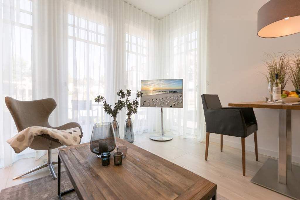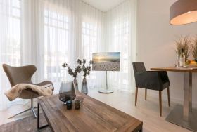 Nur einen Steinwurf von der Ostsee entfernt befindet sich das 2017 gebaute Westendpalais. Hier fängt der Urlaub schon beim Aufschließen der Wohnungstür an. Denn stilvoll und elegant eingerichtet lädt jedes der exklusiven Appartements zum ausgiebigen und erholsamen Entspannen ein. Für ein harmonisches und ausgleichendes Ambiente wurden nur hochwertige Materialien verwendet. Mit viel Liebe wurde jedes einzelne Appartement von Innendesignern konzipiert und eingerichtet. Hier heißt es ankommen und wohlfühlen. Denn Wohlfühlen stand bei den kreativen Inneneinrichtern an erster Stelle. Genießen Sie das Wohnen in einem stylischen und modernen Domizil, in dem alles, was Sie benötigen vorhanden ist und das Ihre Usedom-Auszeit mit den passenden „Vier Wände“ verschönert. Große Fenster lassen viel Licht in die Räume. Viele der Drei- oder Vier-Zimmer-Appartements sind mit einem Kamin, einem Balkon oder einer Terrasse und einer Sauna ausgestattet. Die offenen Küchen sind mit Markengeräten versehen und mit feinem ASA-Geschirr bestückt. Ein Fahrstuhl bringt Sie bis in die oberste Etage. In der zum Westendpalais gehörenden Tiefgarage ist für jede Wohnung ein Stellplatz reserviert.