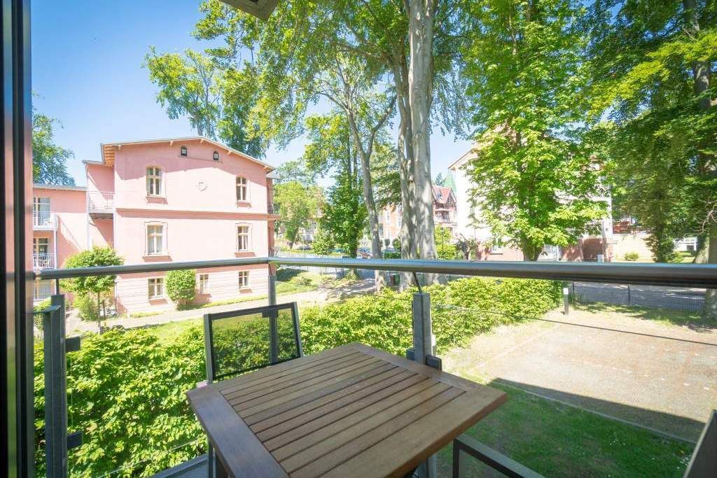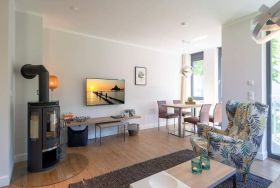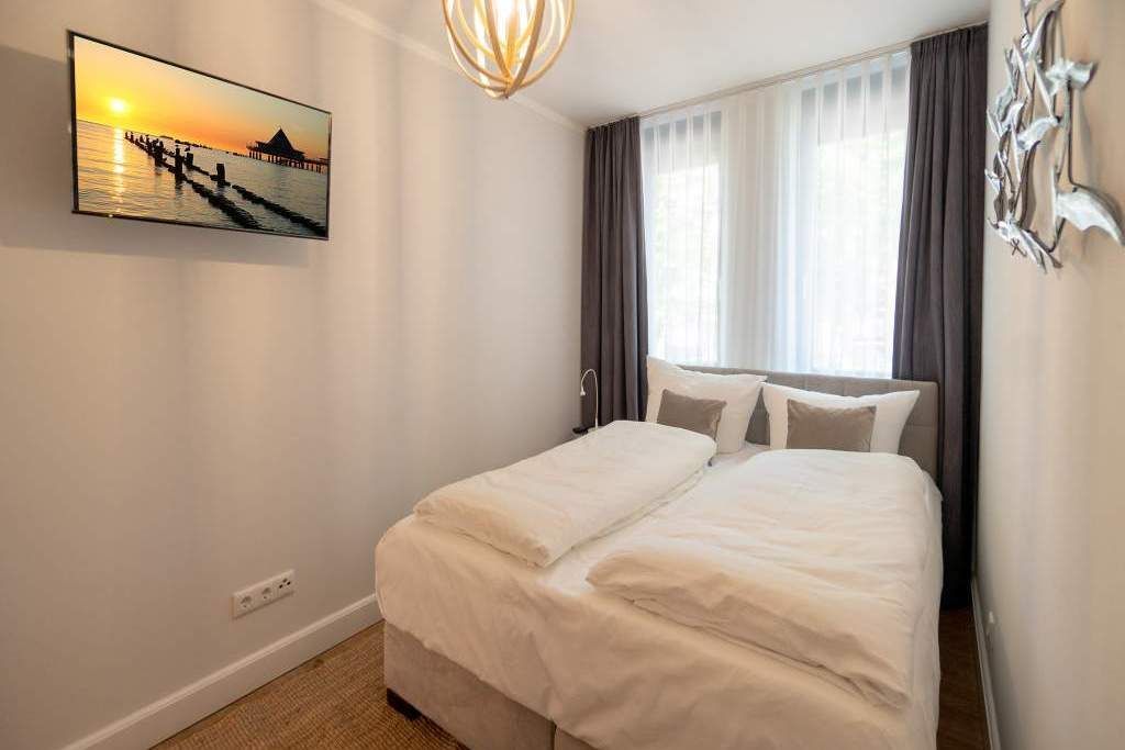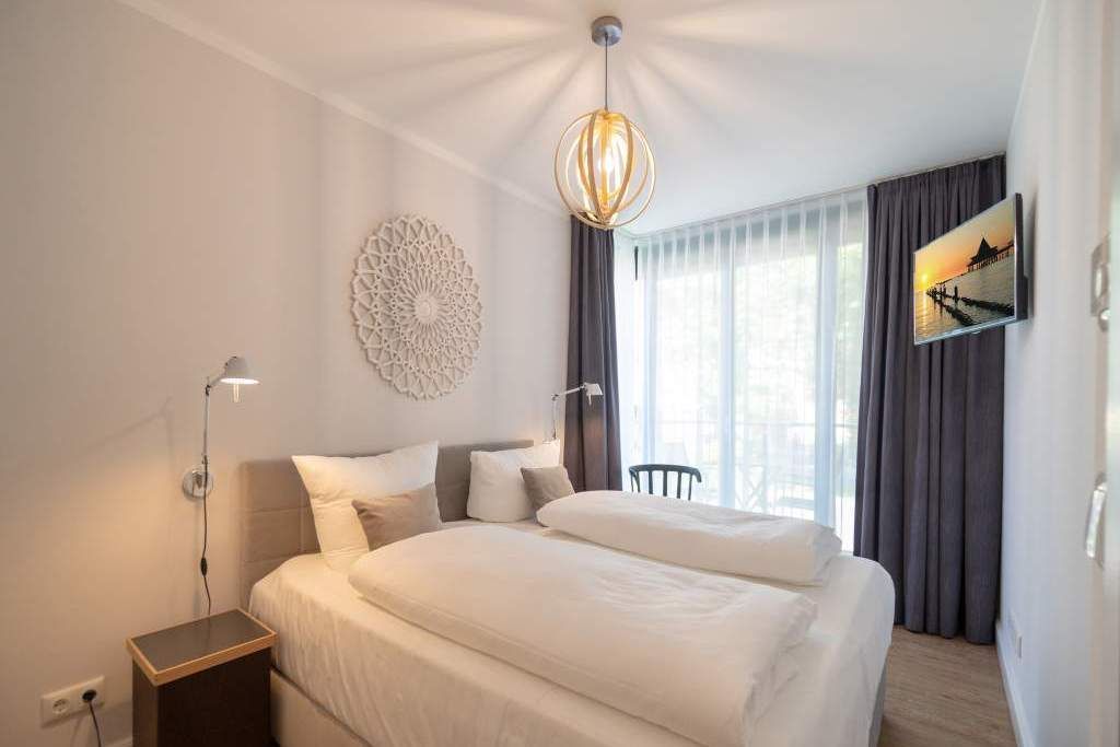 Sommer, Sonne, Strand und Meer... und dazu ein Urlaubsdomizil, das die Auszeit unvergesslich macht. Das Appartement Nummer 1 in der Villa Maxim macht diesen Urlaubstraum wahr. Und zwar nicht nur im Sommer, sondern das ganze Jahr hindurch. In der Hochparterre-Wohnung empfängt Sie auf 70 Quadratmetern Wohnkomfort vom Feinsten stylisch und modern und einfach zum Wohlfühlen. Bis ins Detail durchdacht, spürt man an jedem kleinen Accessoires die Liebe zum Innendesign. Die drei Räume sind hell und luftig gestaltet. Florale Muster und natürliche Materialien sorgen für eine besondere Atmosphäre. Ob vor dem urigen Kaminofen oder beim Schauen eines Spielfilms auf dem Flat-TV hier können Sie die Hektik des Alltags einmal komplett vergessen. Die schöne Wohnung lädt geradezu dazu ein. Vier Personen plus ein Kleinkind bis drei Jahre (im Kinderreisebett) werden sich hier fühlen wie im Paradies. Die Sitzgruppe im Wohn-Esszimmer bietet reichlich Platz und der in einem kleinen Erker befindliche Essplatz lädt zum gemütlichen Zusammensitzen, Essen und Erzählen ein. Die Küche ist offen und beherbergt alles Notwendige zum Kochen. Kühlschrank, Herd, Mikrowelle, Kaffeemaschine und erlesenes Design-Geschirr alles ist da. Ein echtes Highlight ist der lichte Südbalkon vor dem Wohnzimmer. Genießen Sie hier das Bad in der Sonne oder den erfrischenden Sundowner. Auch der erholsame Schlaf gehört zu einem entspannten Urlaub dazu. Diesen finden Sie ganz sicher in einem der beiden Schlafzimmer. Ein Schlafzimmer ist mit einem großen Boxspringdoppelbett (1,80 m x 2,00 m), Flat-TV, geräumigem Kleiderschrank und einem eigenen, kleinen Balkon ausgestattet. Das zweite Schlafzimmer verfügt ebenfalls über ein Boxspringdoppelbett (1,60 m x 2,00 m), einen Flat-TV und einen Kleiderschrank. Auch das Badezimmer bietet ausreichend Raum zum Frischmachen und Wohlfühlen. Das Duschen wird hier zu einem Vergnügen. Denn die ebenerdige Regendusche sorgt für ein Duschgefühl wie unter einem warmen Tropenregenguss. Im Erdgeschoss der Villa gibt es einen eigenen kleinen SPA-Bereich mit zwei Saunen, Dusche und einem Relax Raum mit Flat-TV. Da werden selbst ungemütlich kalte Tage zur wohligen Wellness-Auszeit. Ihnen steht kostenfreies WLAN zur Verfügung und ein Außenstellplatz für Ihren Pkw. Bei Anreise sind die Betten bezogen und Handtücher liegen bereit.