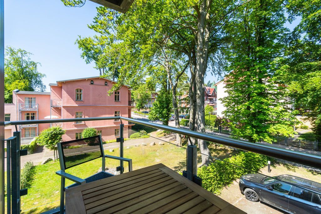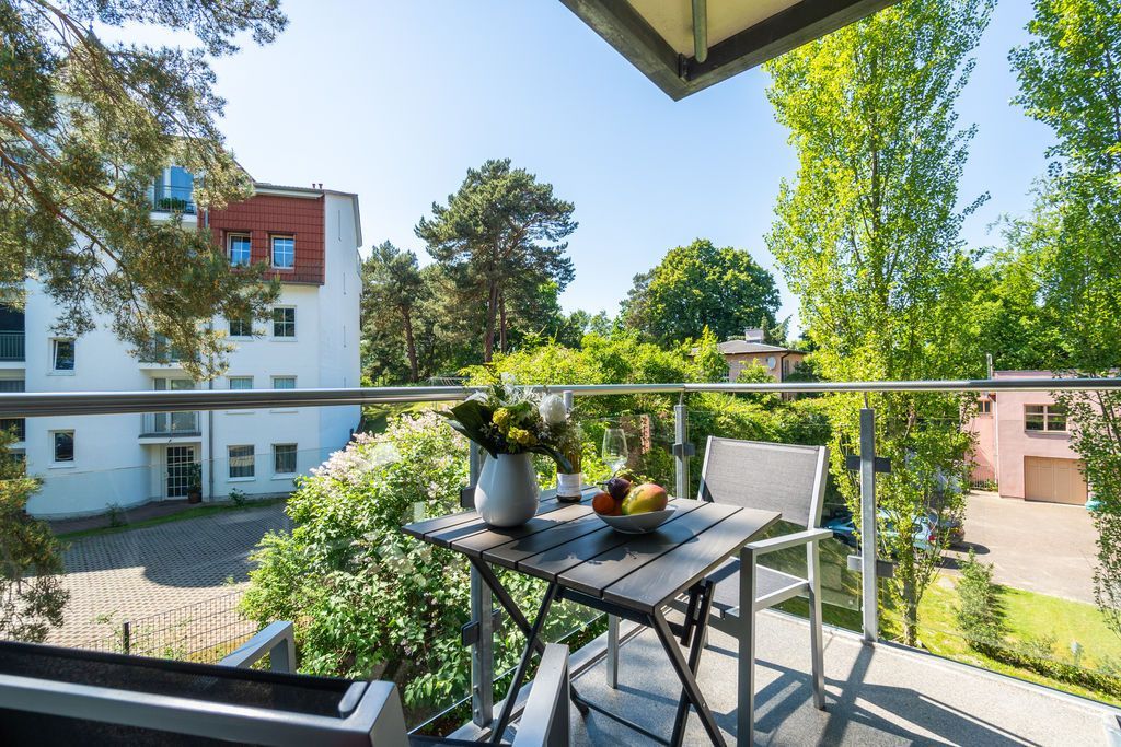 Die Villa Maxim finden Sie in schöner Lage, in der Maxim-Gorki-Straße in Heringsdorf. Fast schon idyllisch, hinter der Promenade in zweiter Reihe gelegen, offeriert Ihnen das Haus besten Wohnkomfort. Die geschmackvoll designten 3-Raum-Appartements mit je 2 Balkonen und Kamin versprechen einen angenehmen Urlaub. Im Untergeschoss gibt es für alle Gäste eine Finnische Sauna mit Flat-TV im Relax-Bereich. Außerdem können Sie eine Waschmaschine & Trockner ( mit kostenfreien Marken) nutzen. Für jede Wohnung steht 1 Pkw-Stellplatz vor dem Haus zur Verfügung. Das WLAN- Netz im Haus ist kostenfrei nutzbar.