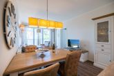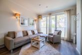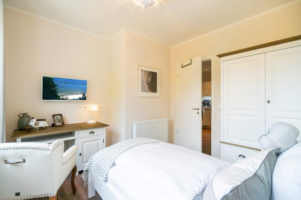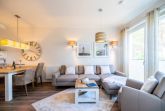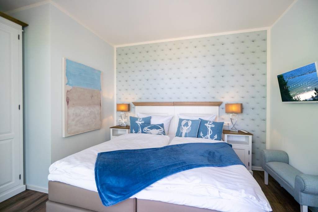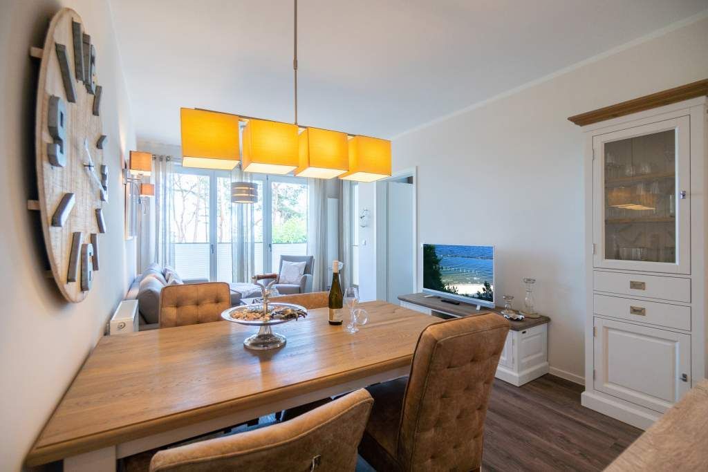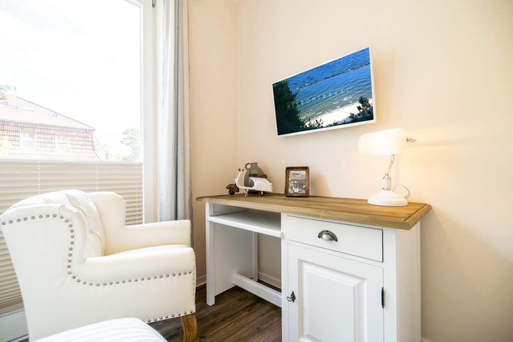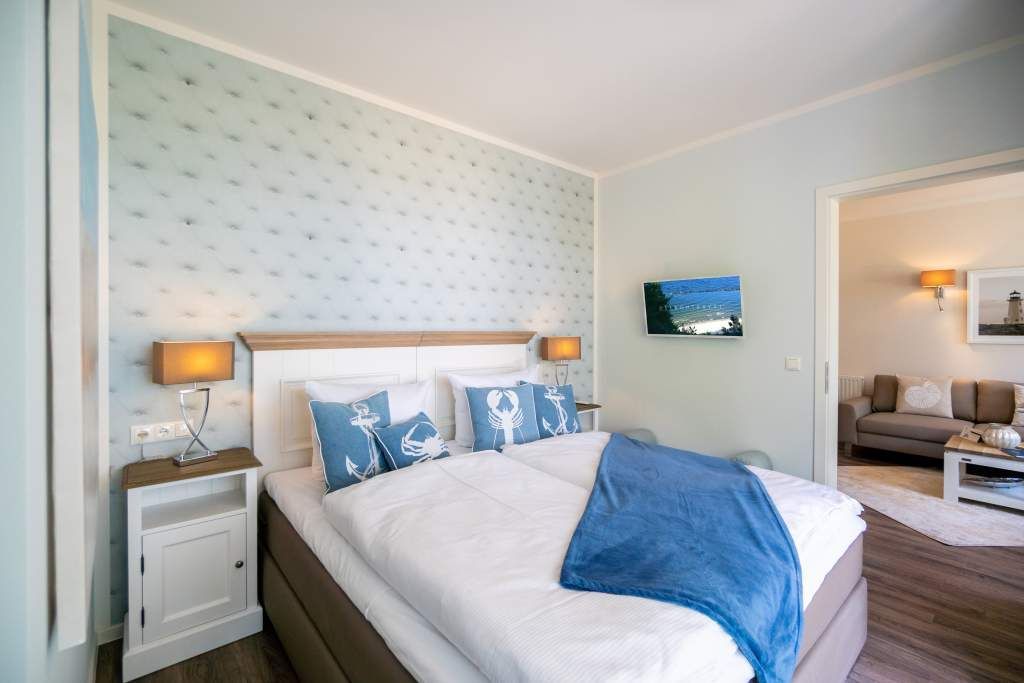 Strandresidenz der Name des Hauses ist Programm. Der feine, weiße Ostseestrand ist so dicht, dass Sie das Meer in Ihrem Urlaubsdomizil riechen, hören und sehen können. Und das fast aus der gesamten Wohnung. Es gibt nichts Entspannenderes als vom sanften Rauschen der Wellen in den Schlaf getragen zu werden und des Morgens davon wieder geweckt zu werden. Vor allem, wenn man direkt nach dem Aufstehen auf den Balkon hinaustritt und die Nähe der Ostsee unmittelbar spüren kann. Das 65 Quadratmeter große Appartement in der ersten Etage, das bis zu drei Erwachsenen (keine Kleinkinder) Platz bietet, ist hell und modern eingerichtet. Stilvolle Möbel sorgen für eine Wohlfühlatmosphäre. Das offene Wohn-Esszimmer mit Echtleder-Sofa lädt zum Relaxen vor dem Flat-TV ein. Die Küchenzeile ist mit hochwertigen Geräten wie Herd, Backofen, Kühlschrank mit Gefriermöglichkeit, Spülmaschine und Mikrowelle ausgestattet. Geschirr finden Sie in den Schränken. Am schönen Essplatz mit Tisch und Stühlen lässt es sich nicht nur wunderbar dinieren. Plaudern, spielen, diskutieren er ist ein Garant für gemütliche Stunden. Die Wohnung verfügt über zwei Schlafzimmer. Eines besitzt ein komfortables Boxspringdoppelbett (1,80 m x 2,00 m), einen Flat-TV und einen großen Kleiderschrank. Im zweiten Zimmer stehen ein Einzelbett (1,00 m x 2,00 m) und ebenfalls ein Flat-TV. Außerdem bietet auch hier ein Schrank genügend Ablagefläche. Für kleine Schreibtätigkeiten steht in diesem Schlafzimmer auch ein Schreibtisch zur Verfügung. Das Badezimmer ist modern gestaltet und mit Regen-Dusche, Waschtisch und WC ausgestattet. Für den rundum sorglosen Urlaubskomfort sind die Betten bezogen und Handtücher liegen für Sie bereit. Zum Appartement gehört ein Tiefgaragenstellplatz. Tiefgarage mit Doppelparker, Fahrzeughöhe max. 1,90 m