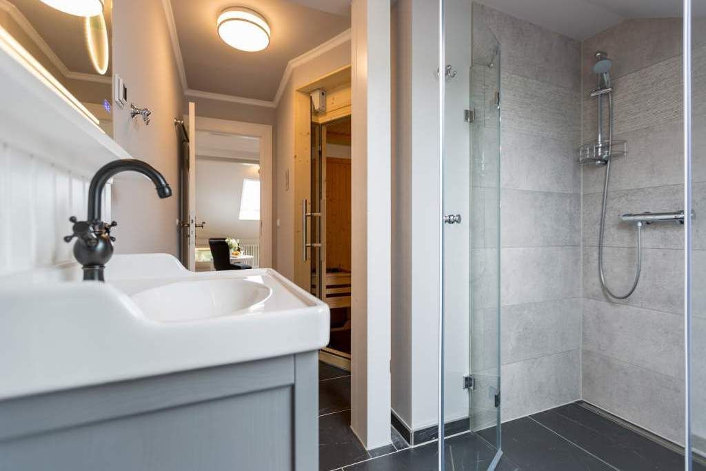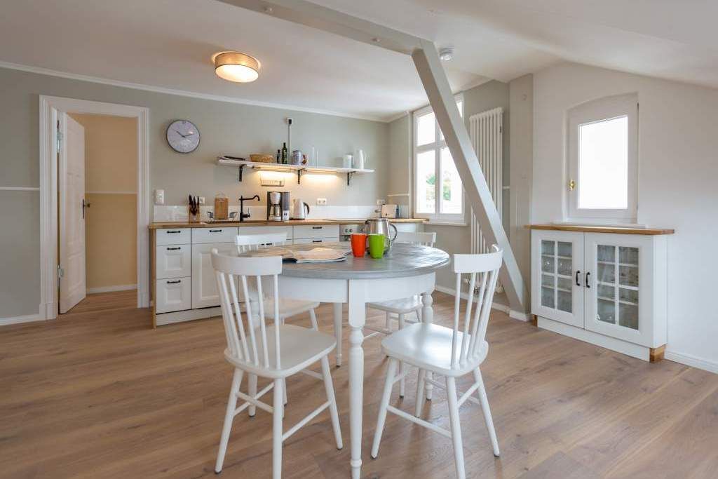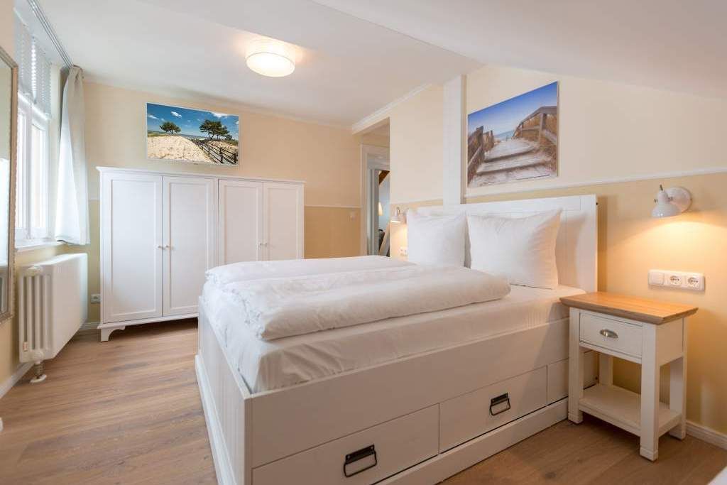 Großzügig und absolut strandnah, stylisch und absolut gemütlich die Wohnung 11 mit Meerblick im Dachgeschoss der wunderschön sanierten Bädervilla Saphira verspricht Urlaub der Extraklasse. In den drei Räumen ist Platz; viel Platz für bis zu 5 Personen und ein Kleinkind (bis 3 Jahren im Kinderreisebett). Der lichtdurchflutete Erker ist Küche und Ess-Zimmer in einem. Voll ausgestattet mit Herd, Kühlschrank, Spülmaschine, Kaffeemaschine, Toaster und Wasserkocher ist sie der ideale Ort zum Kochen und Beisammensein. Der stylische runde Tisch ist groß genug für alle auszeithungrigen Esser. Das offene Wohnzimmer ist groß und stilvoll eingerichtet. Die bequeme Sofa-Sitzgruppe eignet sich bestens zum Fernsehschauen. In der Wohnung 11 stehen Ihnen zwei Schlafzimmer zur Verfügung. Alle zwei sind hell und freundlich, haben einen Flat-TV und einen Kleiderschrank. Maritimes Flair durchzieht die Räume. Schlafzimmer eins ist mit einem Doppelbett (1,80 m x 2,00 m) ausgestattet und hat einen Zugang zum Südbalkon (ca.5 qm). Schlafzimmer zwei verfügt über ein Doppelbett (1,60 m x 2,00 m) und ein Einzelbett (0,80 m x 2,00 m). Auf Wunsch stellen wir für unsere kleinen Gäste ein Kinderreisebett (ohne zusätzliche Matratze & Bettzeug) und einen Kinderhochstuhl ( gegen einen Aufpreis) zur Verfügung. Das moderne Bad mit Tageslicht verfügt über eine Dusche, Dampfsauna und ein WC. Kommen Sie an und schalten Sie ab. Denn Ihre Betten sind bereits bezogen und Handtücher liegen bereit. Der Pkw-Parkplatz (Nr.11) befindet sich am Haus. Das WLAN ist kostenfrei.