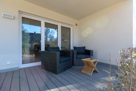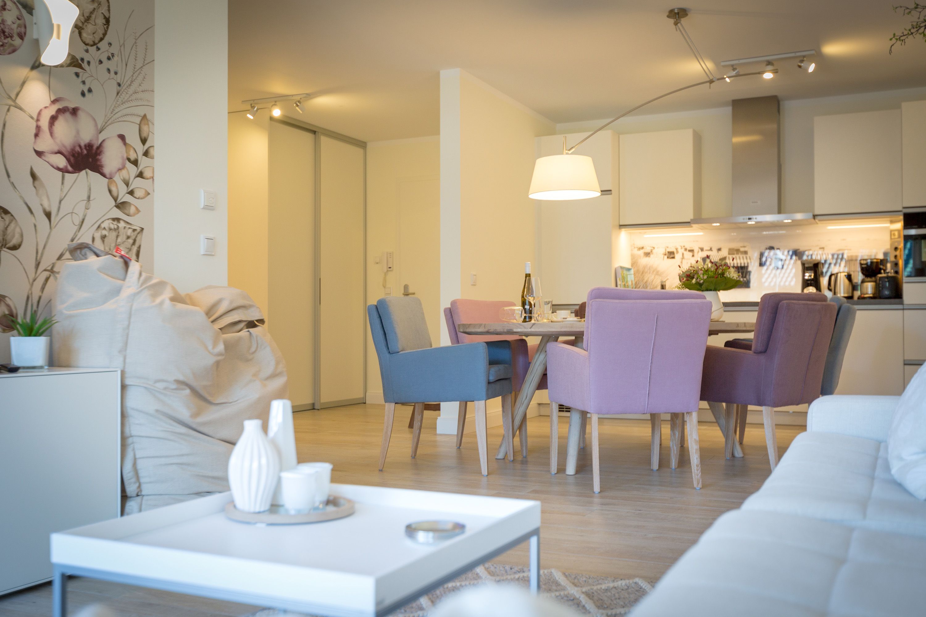 Ein Domizil für Anspruchsvolle und Genießer! Freuen Sie sich auf ein wunderschönes Urlaubsdomizil, denn die Dünenresidenz Heringsdorf verbindet den zeitgemäßen Komfort eines Neubaus mit einer strandnahen Lage. Eine Tiefgarage (max. Einfahrtshöhe 1,93 m) und ein Aufzug im Haus sind hier selbstverständlich. Helle, geschmackvoll designte 2- und 3-Raum-Appartements mit Balkonen oder Terrassen laden zum Erholen ein. Die Dachgeschosswohnungen überzeugen mit großzügigen Dachterrassen und schönen Ausblicken. Aus einigen Wohnungen kann man sogar durch die Dünenbepflanzung das Meer schimmern sehen. Als besonderes Highlight verfügen die Wohnungen über eine Sauna und/oder einen Elektrokamin, der per Knopfdruck Gemütlichkeit zaubert. Außerdem sind alle Appartements mit Fußbodenheizung und elektrische Rollläden ausgestattet.