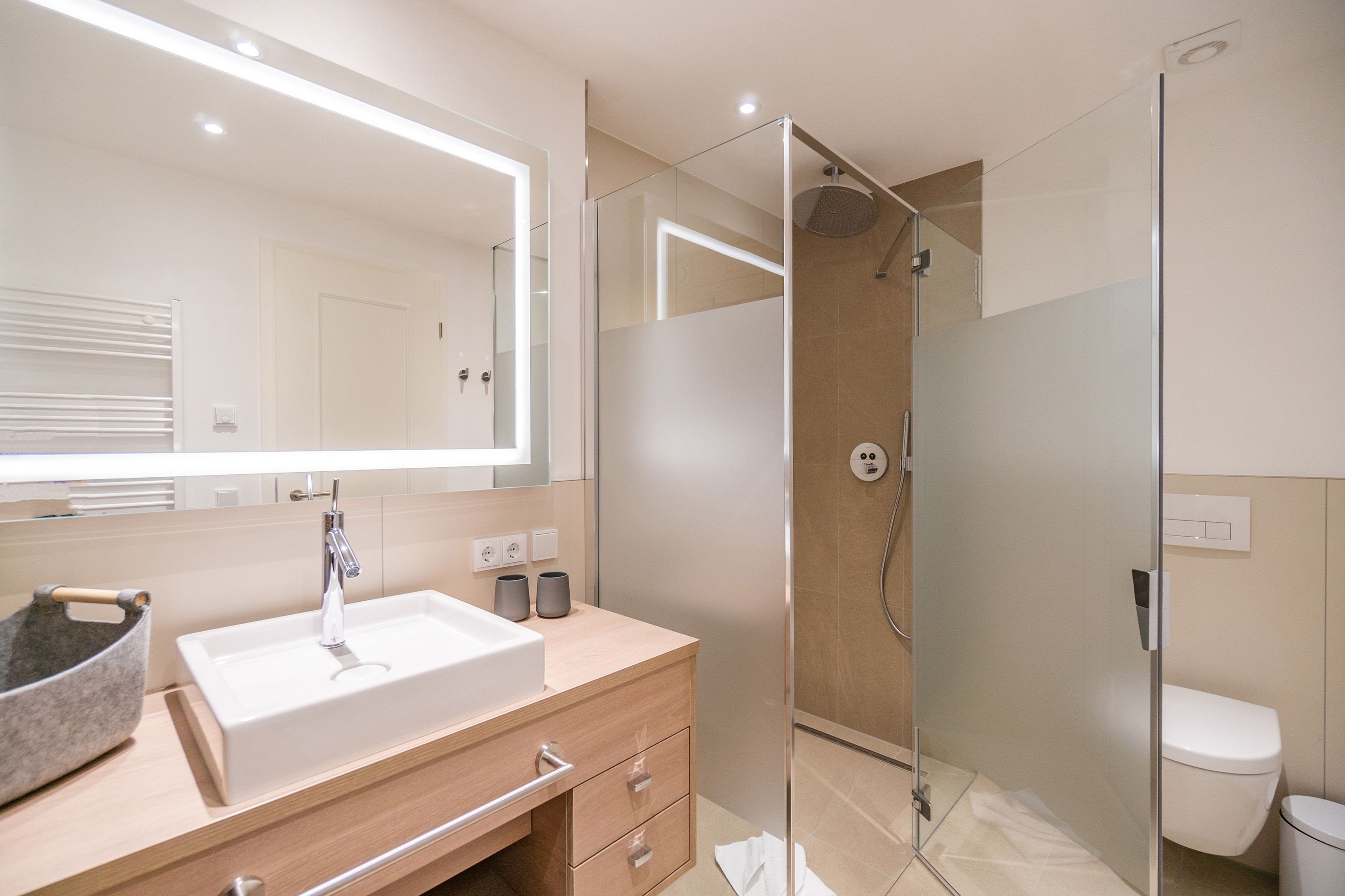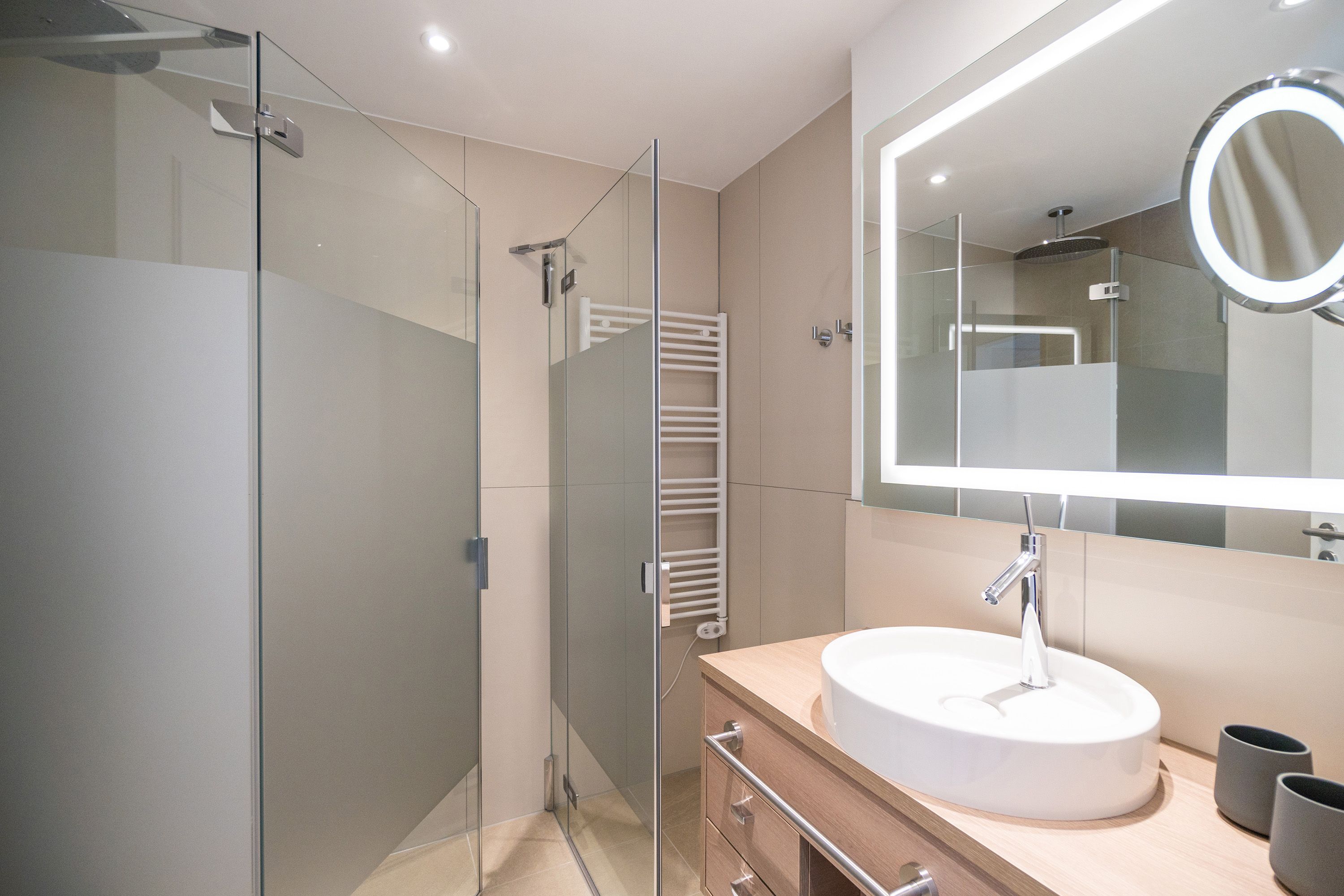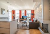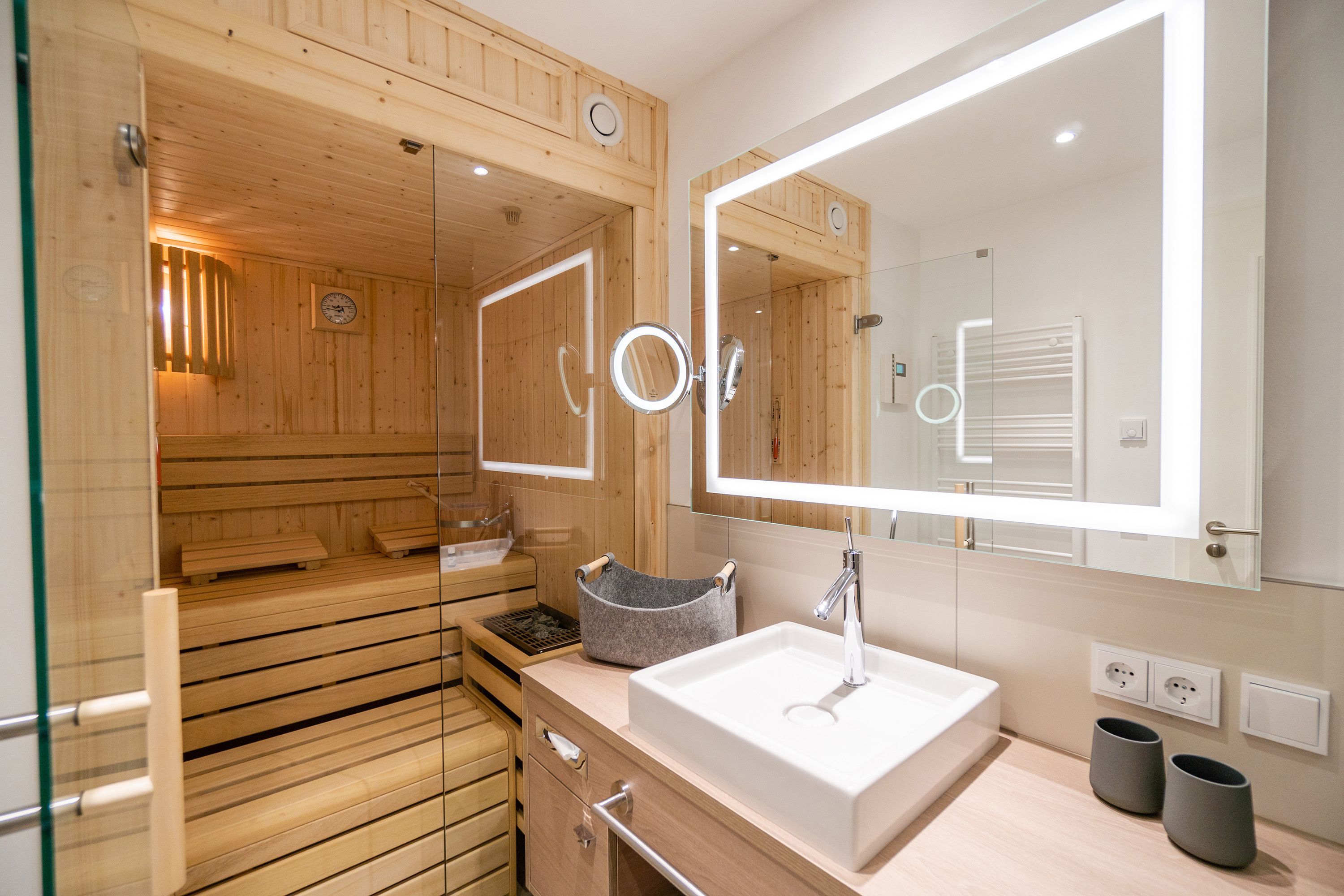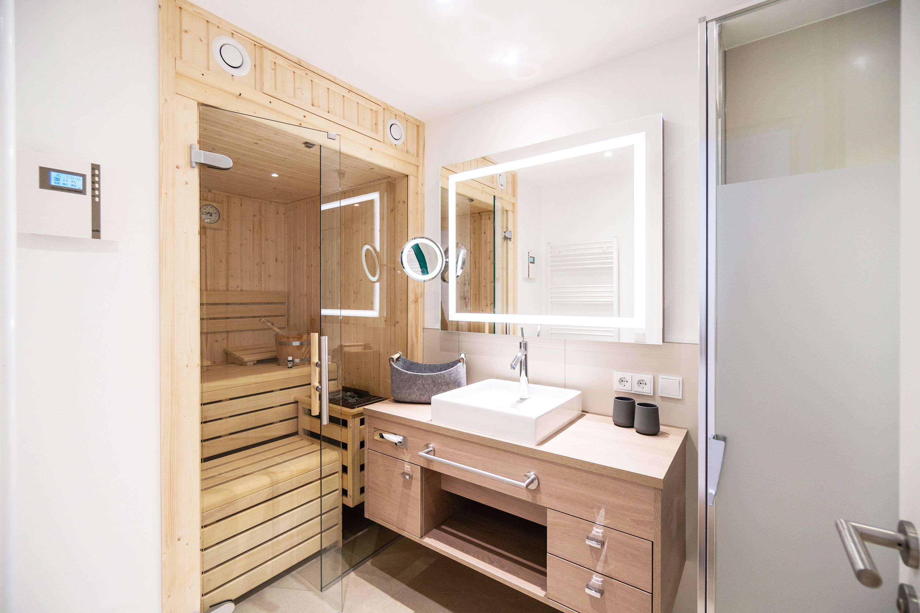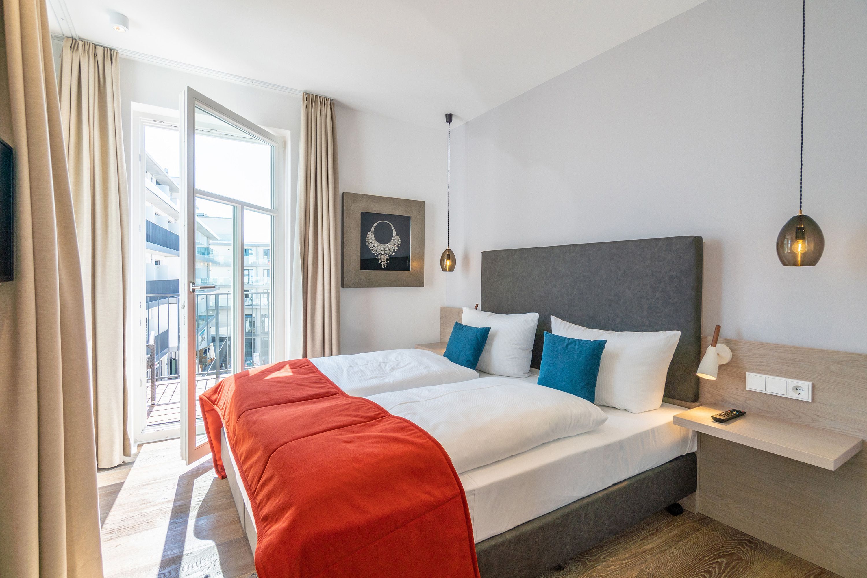 Ob mit der Familie oder mit Freunden auf diesen 69 Quadratmetern Urlaubsparadies wird Ihre Auszeit zu einem ganz besonderen Erlebnis. Allein der Blick vom Süd-Ost-Balkon über die endlose Weite der Ostsee ist Erholung pur. Tanken Sie hier schon morgens beim Frühstück Sonne satt. Bis zu vier Personen und ein Kleinkind bis drei Jahre (im Kinderreisebett) werden sich in den drei Räumen dieses stylischen Appartements pudelwohl fühlen. Erlesen und edel ist die Inneneinrichtung vom Innenarchitekten konzipiert und arrangiert. Ein geräumiges Wohn-Ess-Zimmer wartet nur darauf, Ihnen alle Annehmlichkeiten zu bieten, die Sie sich wünschen können: Vom Home-Entertainment des großen Flat-TVs und der Bose-Soundanlage, die Sie via Bluetooth mit Ihrem Handy bedienen können, über das bequeme Sofa zum Relaxen, den kuscheligen Gas-Kamin, der Gemütlichkeit auf Knopfdruck zaubert, bis hin zum edlen und schönen Esstisch, an dem Sie gemeinsam viele Muße- und Genussstunden verbringen können. Die Steinwand, die im Wohnzimmer einen absolut trendigen Akzent setzt, verleiht dem Raum durch ihre raue Naturstruktur das gewisse Etwas. Für kulinarische Urlaubsgenüsse sorgt die voll ausgestattete Küche. Kochen und vergnügen Sie sich an der freistehenden Kochinsel. Erlesenes Geschirr rundet die Gaumenfreuden mit optischem Pfiff ab. Wenn der Wunsch nach Rückzug aufkommt, bieten die beiden Schlafzimmer mit bequemen Boxspringdoppelbetten (einmal 1,80 m x 2,00 m und einmal 1,60 m x 2,00 m) die ideale Fläche für entspannende Stunden. Von beiden Schlafzimmern aus können Sie auf die Ostsee hinaus schauen. Von einem Schlafzimmer aus sogar via Balkon. Viel Ablageflächen finden Sie in den Schränken. Zwei Flat-TVs sorgen für digitale Unterhaltung. Das Appartement verfügt gar über zwei Badezimmer, die jeweils mit geräumiger Regendusche, großzügigem Waschtisch und WC ausgestattet sind. Zeigt die Ostsee einmal ihr stürmisch ungemütliches Gesicht, können Sie in der Finnischen Sauna, die zu der Wohnung gehört und direkt in eines der Bäder eingebaut ist, bei wohliger Wärme ausspannen und entspannen. Genießen Sie Ihren Urlaub! Wir kümmern uns um den Rest. So sind bei Ihrer Ankunft die Betten für Sie bezogen und Handtücher liegen bereit. In einem kleinen Hauswirtschaftsraum finden Sie einen Waschtrockner. Das WLAN ist natürlich kostenfrei. In der ultramodernen Parkgarage ist für Ihr Feriendomizil der Pkw-Stellplatz Nr. 22 reserviert.
