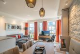 Im Erdgeschoss befindet sich neben einer Bäckerei auch das bekannte und belebte Fischrestaurant Gosch. Dieses bietet neben seinem gastronomischen Angebot auch Live-Veranstaltungen und Tanzabende. Balkone und Erker erlauben wunderschöne Ausblicke schon zum Sonnenaufgang und laden zum Relaxen ein. Stilvoll geht es auch im Inneren des Beachhouses zu. Innenarchitekten und Designer haben ein jedes Appartement mit Fingerspitzengefühl und viel Liebe zum Detail konzipiert. Verarbeitet wurden nur hochwertige Materialien. Die Farben sind in jeder Wohnung ganz individuell und harmonisch aufeinander abgestimmt. Alle Appartements verfügen über Fußbodenheizung sowie über eine eigene Sauna. Und das Schönste: Der Strand befindet sich direkt vor der Haustür! Für Ihren Pkw steht in der Tiefgarage (Einfahrtshöhe 2,00 m, untere Ebene 1,85 m), teilweise mit Doppelparker (max. Höhe 1,90) ein Stellplatz zur Verfügung. Sie brauchen also nur noch ankommen, abschalten und Ihre Auszeit in Bansin in einem Wohlfühlparadies genießen, aus dem Sie nicht wieder wegwollen. Natürlich müssen Sie auch nicht auf den Komfort eines Neubaus verzichten, Aufzug und kostenfreies WLAN sind hier selbstverständlich.