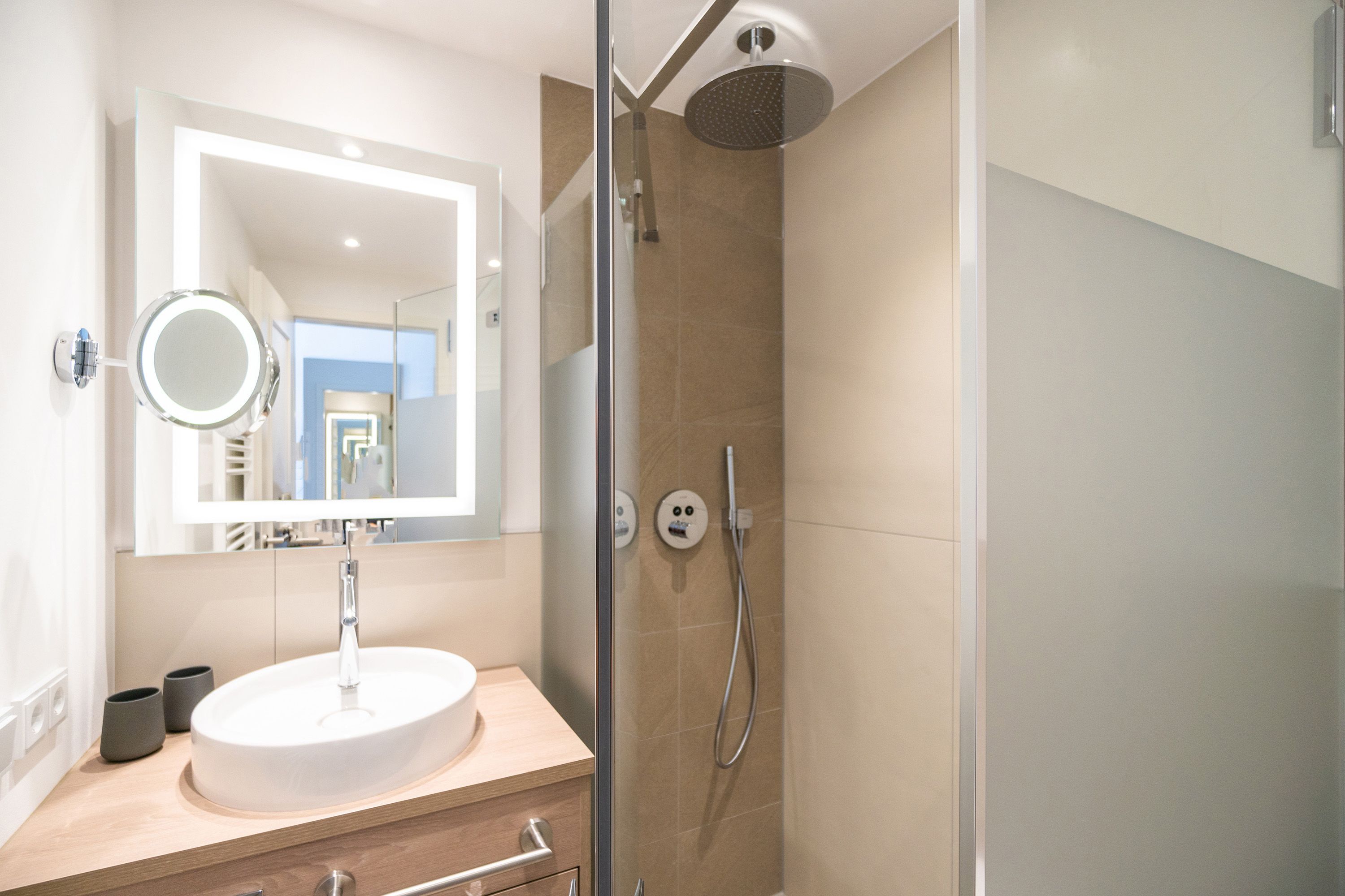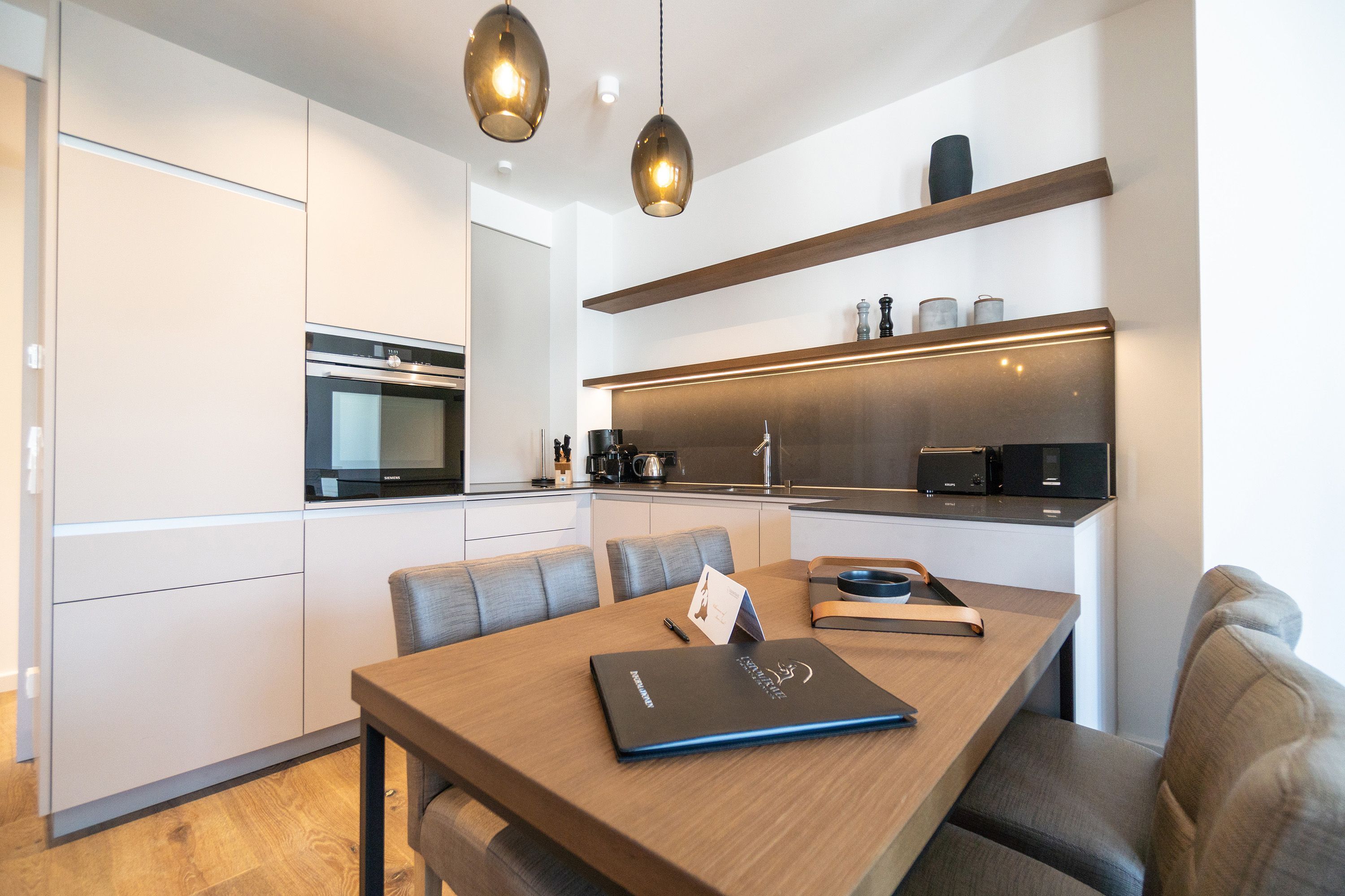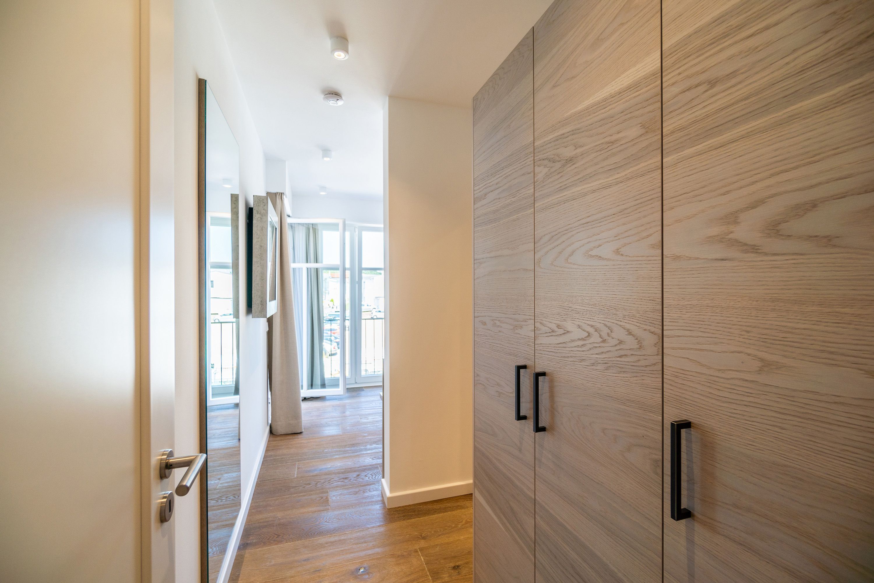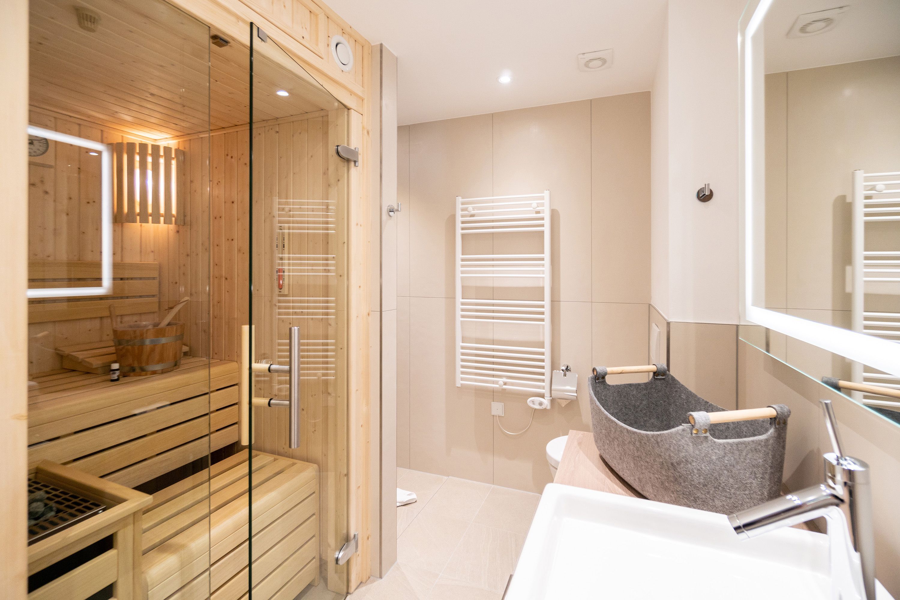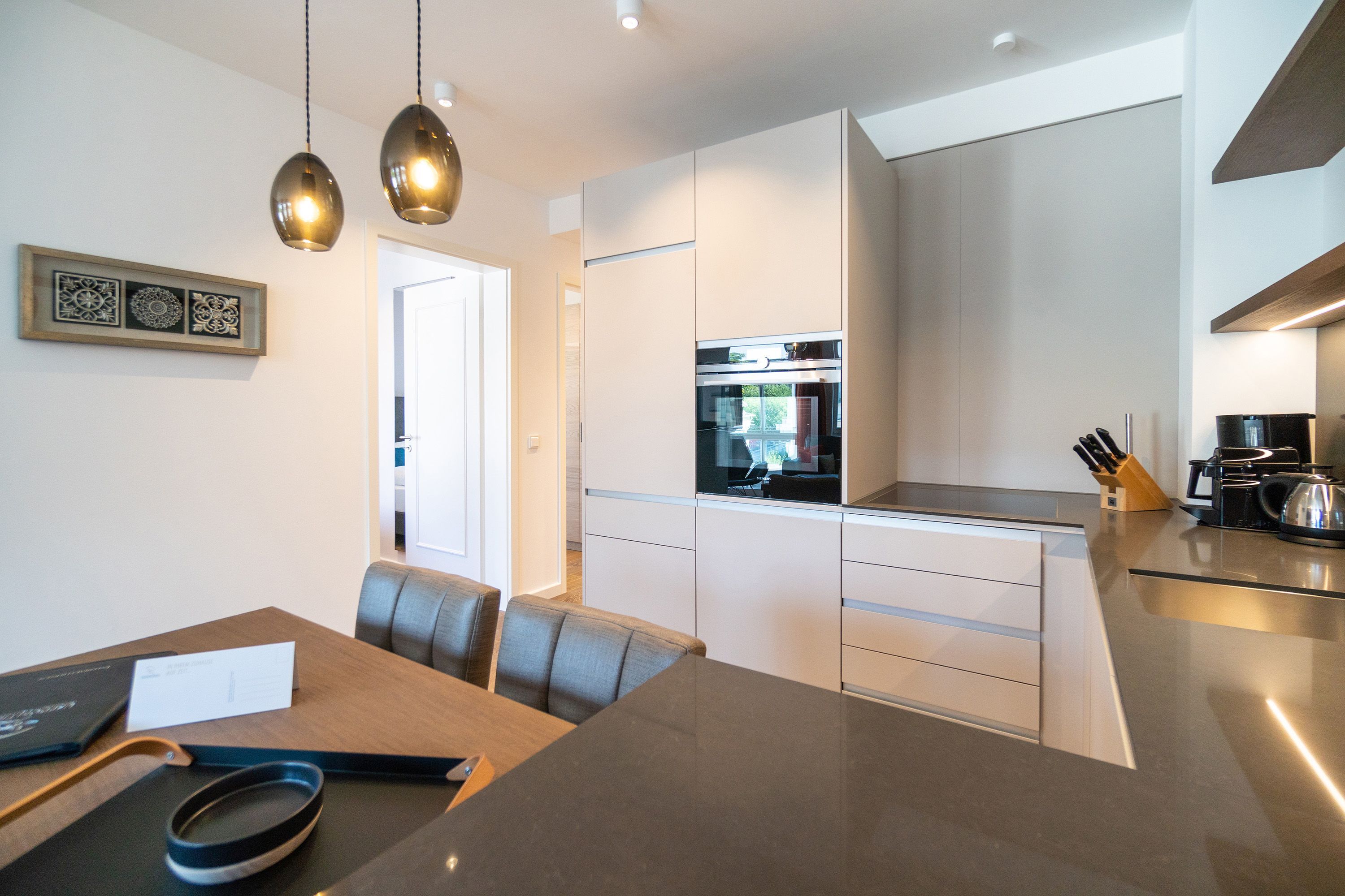 68 Quadratmeter groß ist dieses stylische Urlaubsparadies für vier Personen und ein Kleinkind bis drei Jahre (im Kinderreisebett). Ein Fahrstuhl bringt Sie bis in den dritten Stock. Wohnkomfort vom Feinsten, ausgesuchte und extra angefertigte Möbel, hochwertige Technik in diesen drei Zimmern wird Ihr Urlaub zu einer unvergesslich schönen Zeit. Mitten im Herzen des Kaiserbades Bansin und doch hier oben, im dritten Stock, hoch genug, um dem Trubel auch wieder zu entfliehen und eine erholsame Zeit in einem wunderschönen Ambiente zu verbringen. Von Designerhand konzipiert, erwartet Sie in diesem Appartement zeitlose Eleganz. Naturmaterialien wie Holz und Stein sowie ein angenehmes Farbkonzept sorgen für viel Harmonie. Entspannen Sie auf dem Sofa oder dem Schaukelstuhl vor dem Kamin, dessen Flammenspiel Sie per Knopfdruck steuern können. Große Flat-TVs in jedem Zimmer, eine Hi-Fi-Anlage mit Bluetooth-Funktion, kostenloses WLAN hier wird es Ihnen an Nichts fehlen. Die offene Wohnküche verspricht genussvolles Zubereiten und Essen. Denn sie ist mit sämtlichen Gerätschaften und dazu mit erlesenem Geschirr ausgestattet. Der schöne Esstisch ist für gesellige Stunden bestens geeignet. Jedes der drei Zimmer hat einen Zugang zum neun Quadratmeter großen Balkon in Süd-West-Ausrichtung, von dem aus Sie auf wunderschöne alte Bädervillen schauen. In den romantischsten Farben sind von hier aus die Sonnenuntergänge zu beobachten. Und auch die Ostsee haben Sie von hier immer im Blick. Zwei komfortable Boxspringdoppelbetten (1,80 m x 2,00 m) verhelfen Ihnen zu wahrem Schlafvergnügen. Große Schränke bieten viel Platz für den Kofferinhalt. Gleich mit zwei Bädern wartet Ihr Urlaubsdomizil auf. Beide verfügen über eine ebenerdige Regendusche, einen Waschtisch und ein WC. Darüber hinaus empfängt Sie im Masterbad eine Finnische Sauna. Hier können Sie es sich an tristen Tagen oder ungemütlichen Abenden so richtig gut gehen lassen. Ausspannen der Extra-Klasse. Für Handtücher ist gesorgt und die Betten sind bei Ihrer Ankunft bezogen. In einem kleinen Hauswirtschaftsraum steht ein Wasch-Trockner. Der Stellplatz Nr. 24 in der Tiefgarage gehört zur Wohnung Nummer 24.
