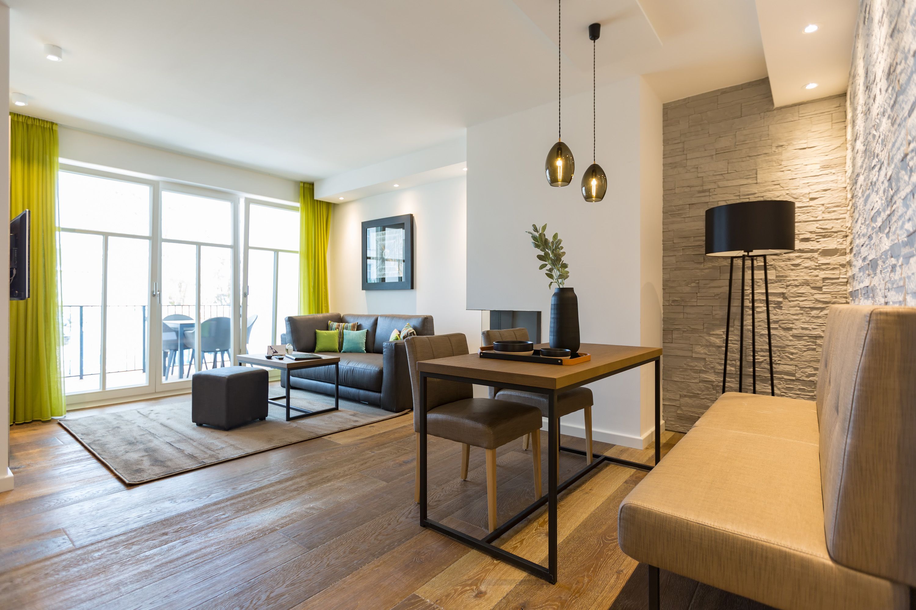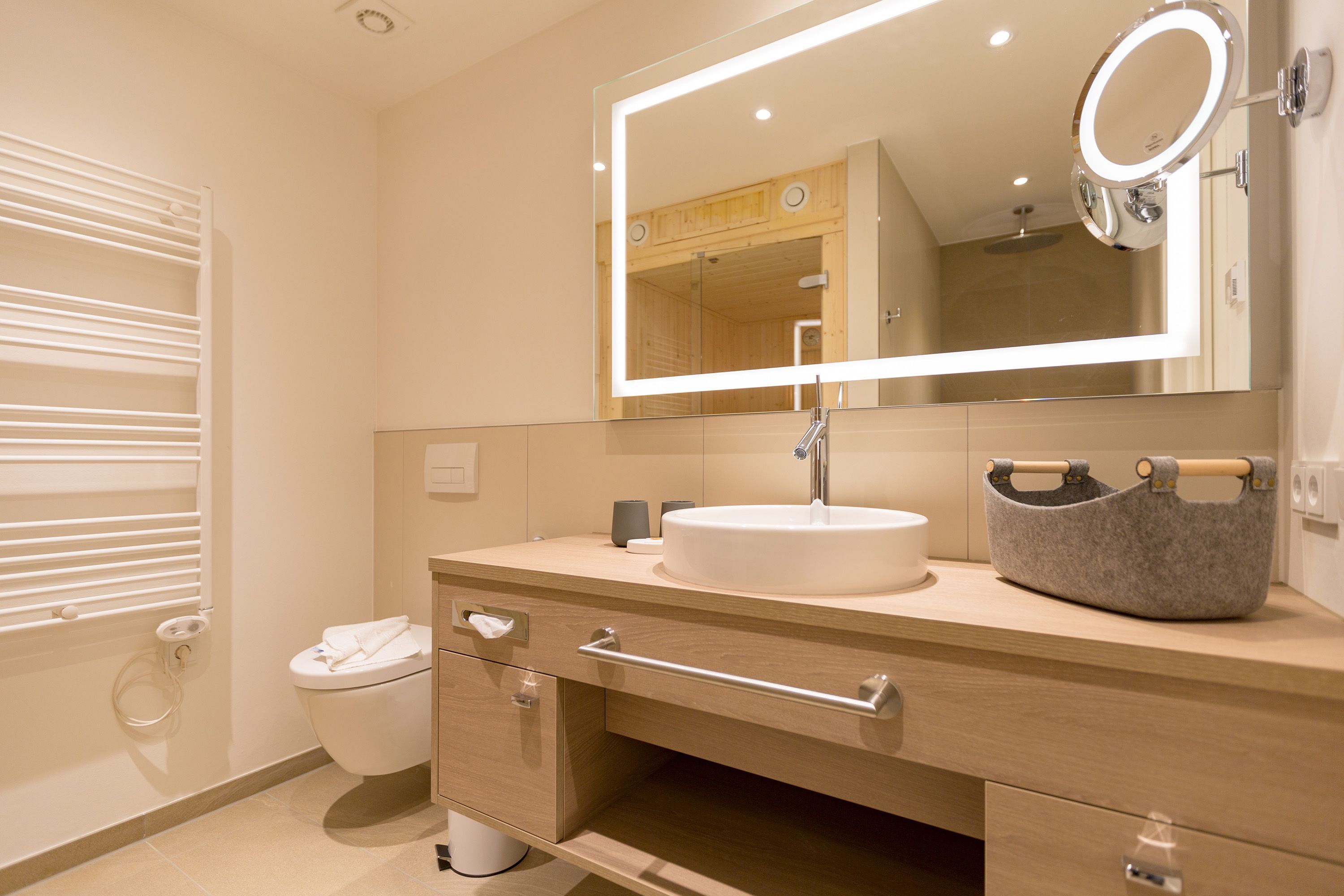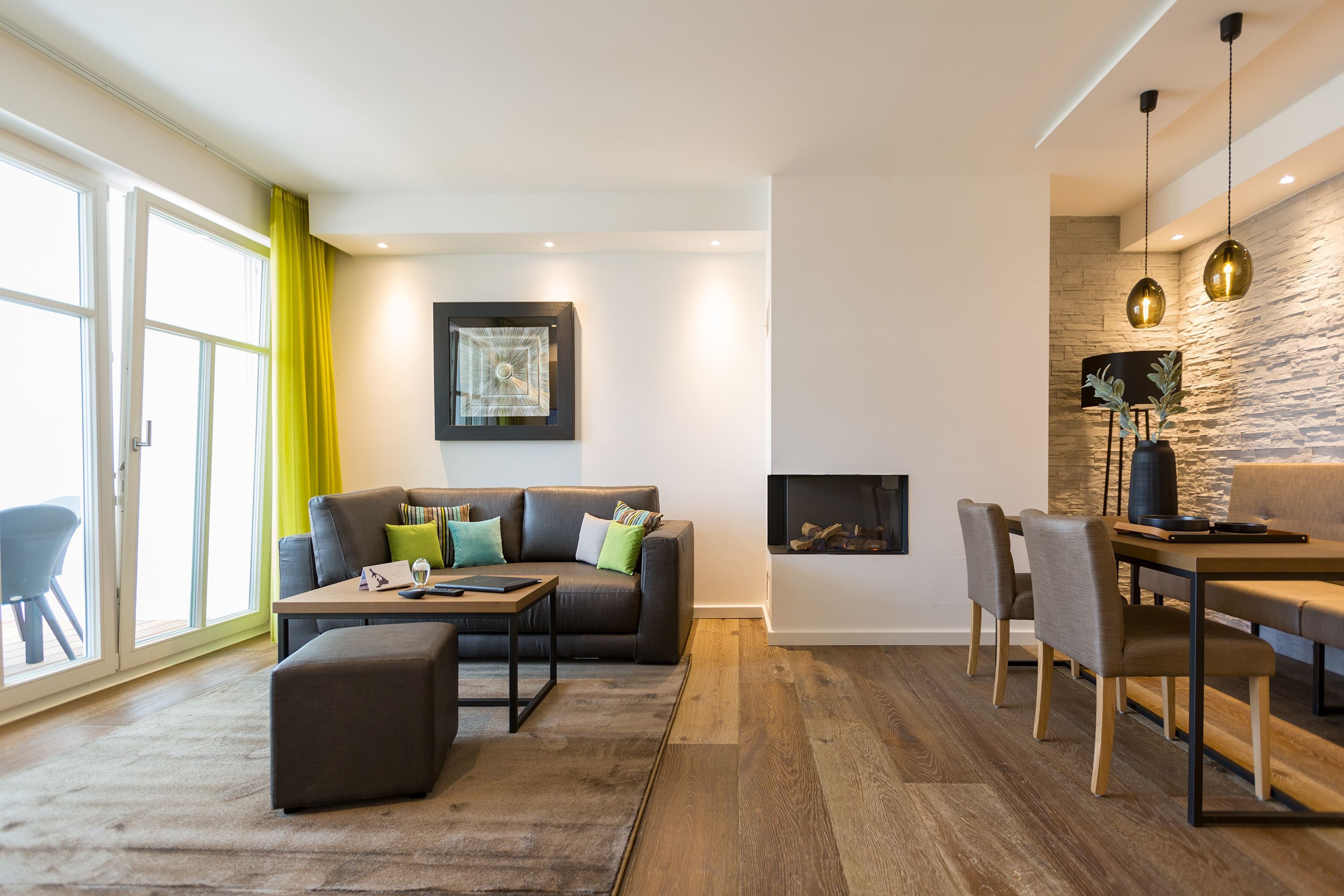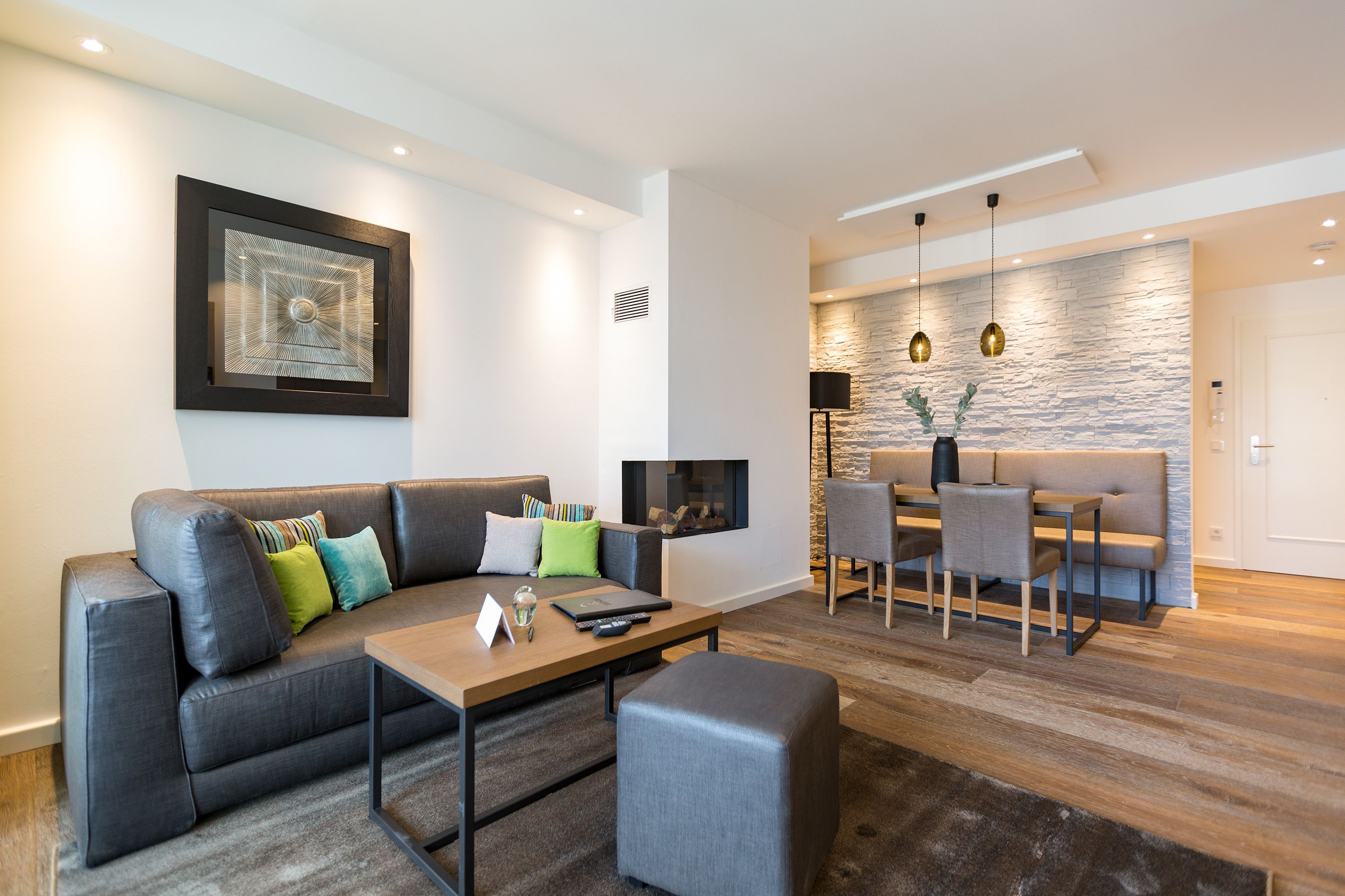 Modernes Design, exklusiver Wohnkomfort und die Ostsee vor der Haustür das Appartement Nummer 16 im 2. Stock bietet auf seinen 52 Quadratmetern für zwei Personen einen Urlaub der Extra-Klasse. Eine kuschelige Wohlfühlzone, die zum Entspannen einlädt. Zwei Zimmer, die Ihnen eine unvergesslich schöne Zeit bescheren. Reißen Sie die bodentiefen Fenster weit auf! Und lassen sie die frische Ostseebrise hinein. Atmen Sie die frische Luft, die vom nur ein paar Meter entfernten Strand zu Ihnen herüberweht, tief ein und genießen Sie den Blick über das endlos weite Blau vom Balkon (7 Quadratmeter groß), der mit seinen Möbeln auch zum entspannten Sitzen einlädt. Das Wohnzimmer ist hell und geräumig. Hier ist alles ins richtige Licht gerückt. Auch, wenn die Sonne hinter den schönen Bädervillen von Bansin verschwunden ist, spenden die ausgewählten Design-Lampen viel warmes Licht. Ein Gas-Kamin sorgt für Gemütlichkeit. Genauso wie das bequeme Sofa. Hier können Sie kuscheln, was das Zeug hält. Erlesene Naturmaterialien wie das Holz des Fußbodens oder der Stein der Wandverkleidung verleihen dem Ambiente einen warmen und natürlichen Grundton. Der schöne Esstisch mit den Stühlen und der urigen Bank eignet sich ideal zum Schlemmen und für gemeinsame Stunden. Eine offene Küche schließt sich dem Wohnzimmer unmittelbar an. Hier finden Sie alles, was für die Zubereitung eines feinen Essens, fürs ausgiebige Frühstück oder einen schnellen Snack zwischendurch benötigt wird. Die Geräte wie Herd, Backofen, Kaffeemaschine oder Geschirrspüler sind hochwertige Markengeräte. Edles Geschirr finden Sie in den dazugehörenden Schränken. Das große Boxspringdoppelbett (1,80 m x 2,00 m) im Schlafzimmer verführt zu wundervoll erholsamen Träumen. Ein geräumiger Schrank bietet viel Platz für die Urlaubsgarderobe. Sowohl vom Schlafzimmer als auch vom Wohnzimmer aus haben Sie Zugang zum Balkon. Die Wohnung ist elektronisch hochwertig ausgerüstet. Zwei Flat-TVs bieten Home-Entertainment vom Feinsten. Eine Bose-Soundanlage mit Bluetooth-Funktion bringt Ihre Lieblingsmusik mit sattem Sound zum Klingen. Das WLAN ist kostenfrei. Im Badezimmer erwartet Sie eine kleine Wellness-Oase mit einer Finnischen Sauna, einer Regendusche, einem Waschtisch und WC. Für den rundum sorglosen Urlaub haben wir die Betten für Sie bezogen und Handtücher bereit gelegt. In einem separaten Hauswirtschaftsraum können Sie Ihre Wäsche im Waschtrockner reinigen. In der modernen Tiefgarage ist für Sie der Stellplatz Nr. 16 im Doppelparker unten (max. Höhe 1,85 m, max. Länge 5,10 m, max. Breite 2,50 m, max. Last 2.600 kg) reserviert.