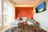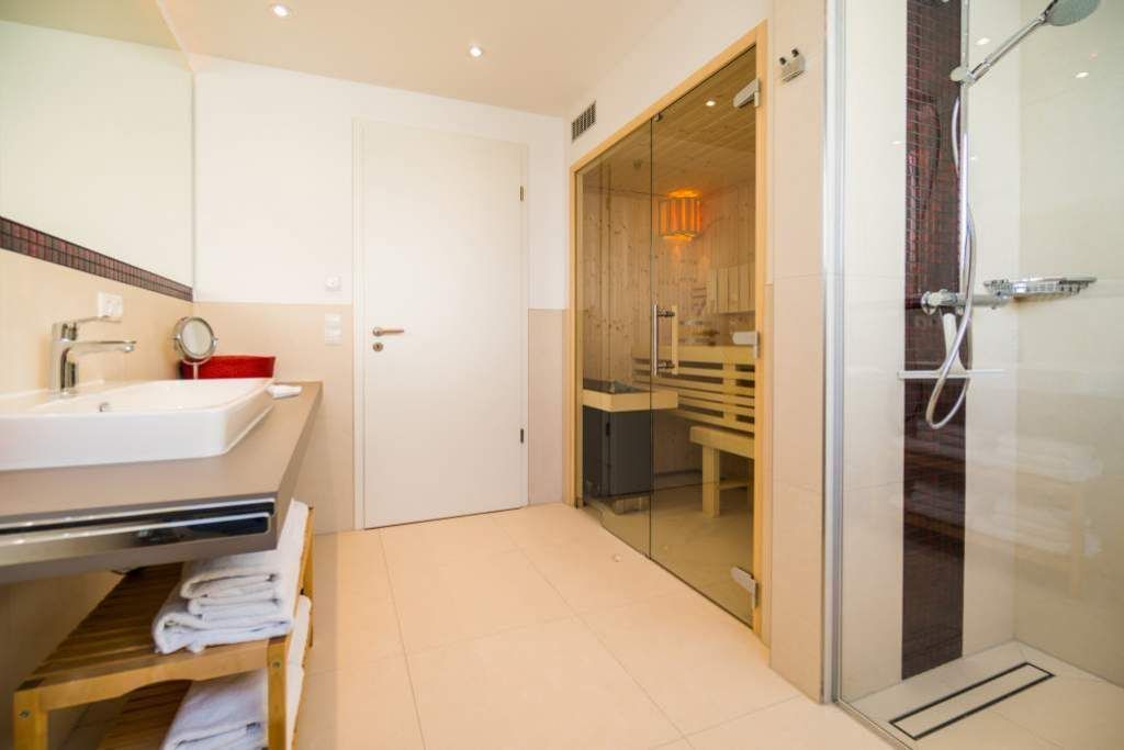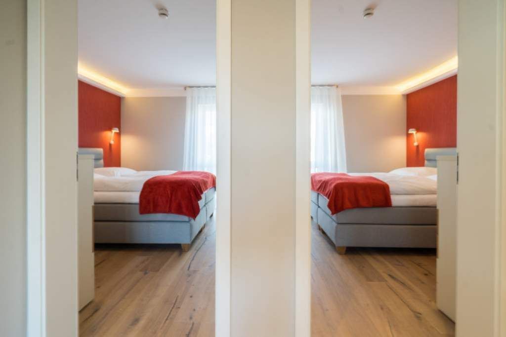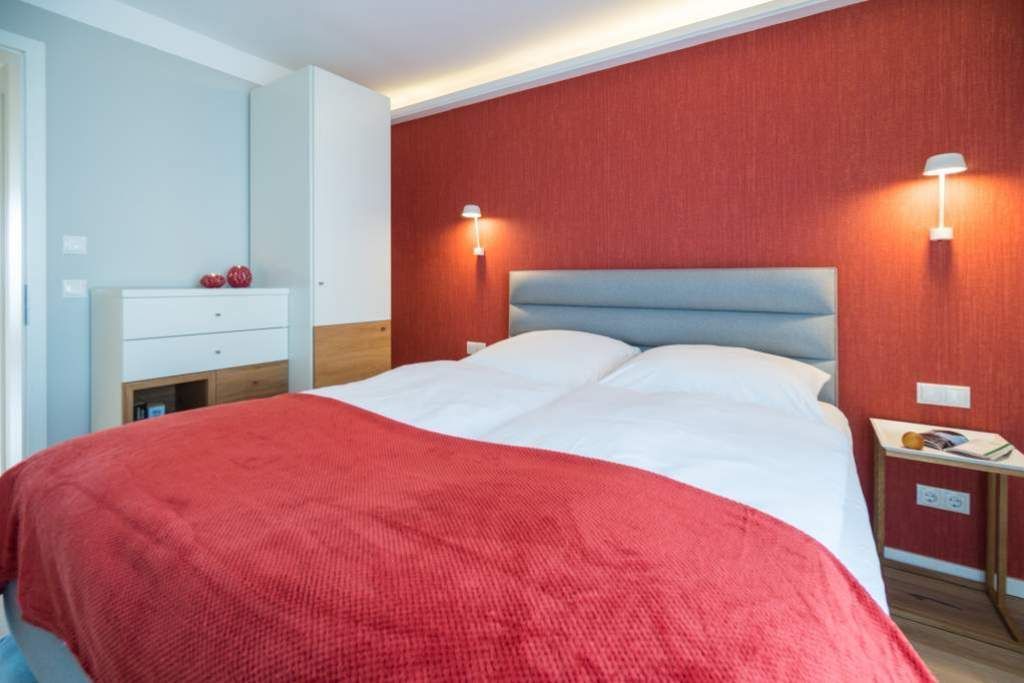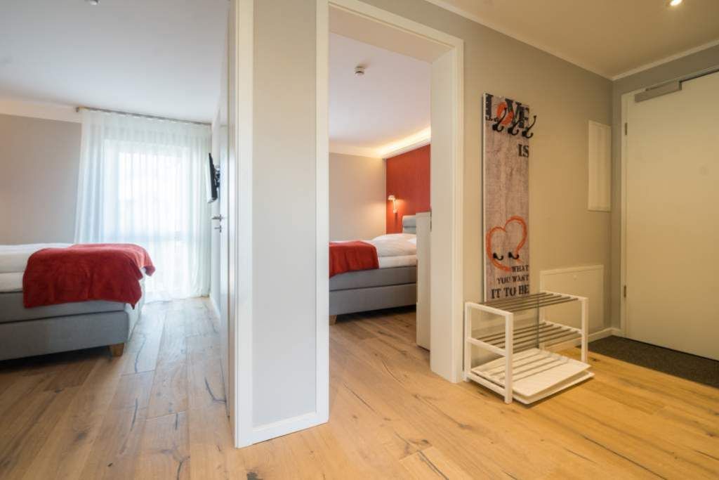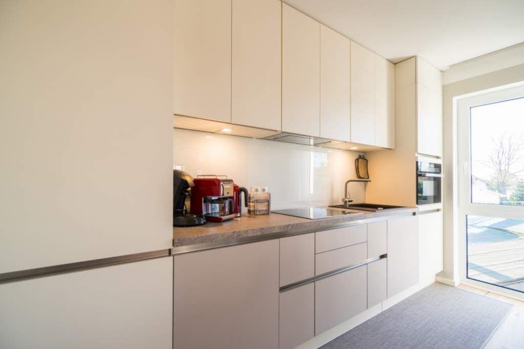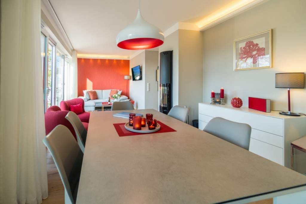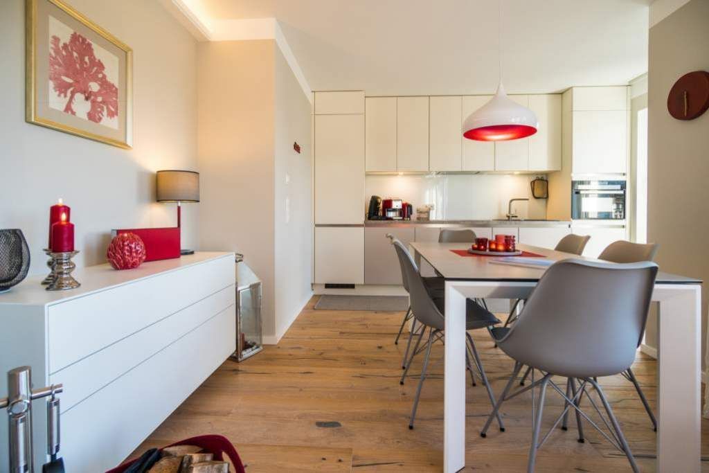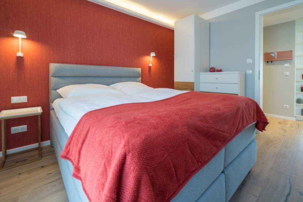 Sie lieben das Besondere und schätzen Design und Geschmack? Dann ist das zeitlos und noble Ferienappartement im Quartier am Fischerstrand Nummer 4 genau richtig für Sie, denn es ist von Innenarchitekten designt und lässt keine Wünsche offen. Bodentiefe, große Fenster lassen viel Licht in dieses Urlaubsdomizil für 4 Personen. Viel Weiß in Verbindung mit wohlgesetzten Farbakzenten in Orange und Rot bringen Leichtigkeit und Luftigkeit hinein. Hier können Sie tief durchatmen, sich wohlfühlen und ihren Urlaub in vollen Zügen genießen. Denn die 72 Quadratmeter sind geräumig, wunderbar hell und machen es zum idealen Urlauben, wo Sie Hektik und Stress schnell vergessen können. Vom großen Balkon aus vor Ihrem Wohnzimmer haben Sie einen weiten Blick über die Schönheit der alten Bädervillen von Heringsdorf. Genießen Sie von hier die frische Ostseebrise, relaxen Sie bei einem kühlen Getränk am Balkontisch oder auf der Sofalandschaft, die hinter den Glasscheiben nur darauf wartet, Ihnen entspannte Mußestunden zu schenken. An kühlen Tagen wärmt ein echter Kaminofen und verbreitet mit dem wohligen Knacken der brennenden Holzscheite urige Gemütlichkeit. Die offene Küche ist voll ausgestattet mit hochwertigen Geräten und Geschirr und verfügt über einen schönen großzügigen Essplatz. Zwei Schlafzimmer warten mit komfortablen Boxspring-Doppelbetten (beide 1,60 x 2,00 m) zum Schlafen und Kuscheln auf Sie. Schränke und Kommoden bieten viel Platz. Jedes Schlafzimmer besitzt wie auch das Wohnzimmer einen Flat-TV. Zur Wohnung gehört ein geräumiges Tageslichtbad mit einer großen geräumigen Dusche. Ein echtes Highlight an ungemütlichen Tagen ist die ins Bad integrierte Panoramasauna. Ein zweites Bad ist ebenfalls mit Dusche und WC ausgestattet. Für einen entspannten Urlaub haben wir Ihre Betten bereits bezogen. Handtücher liegen bereit. Zur Wohnung gehört ein Pkw-Stellplatz am Haus. Ein Abstellplatz für Ihre Fahrräder ist im Keller vorhanden. Das WLAN kann kostenfrei genutzt werden.