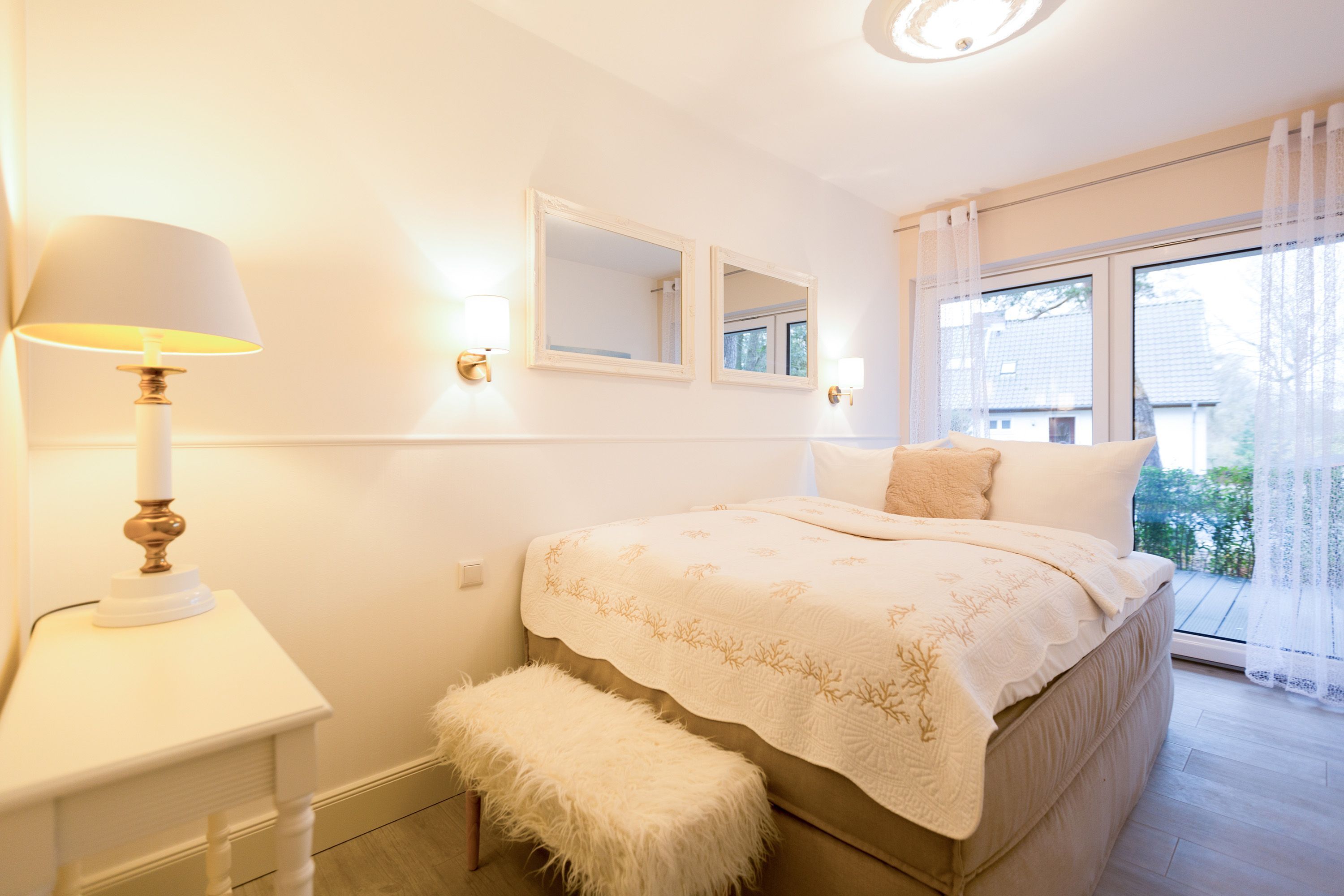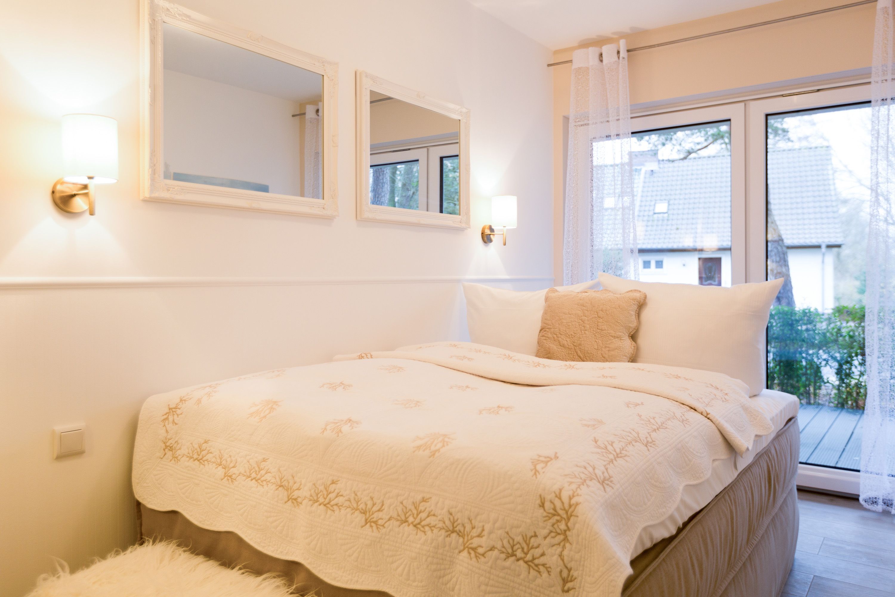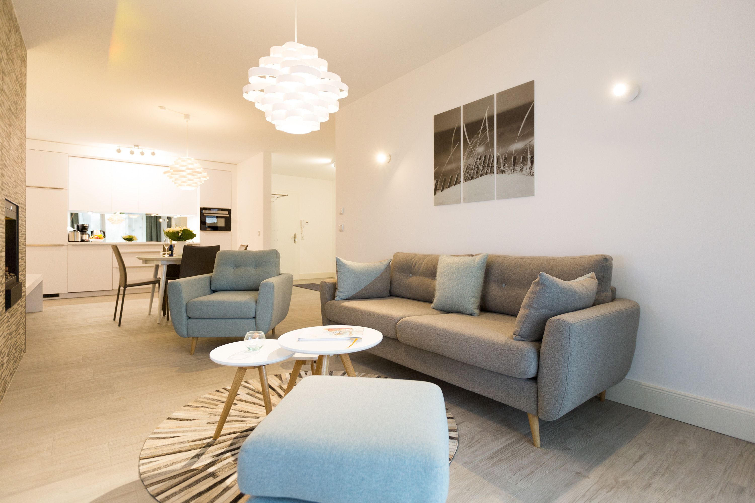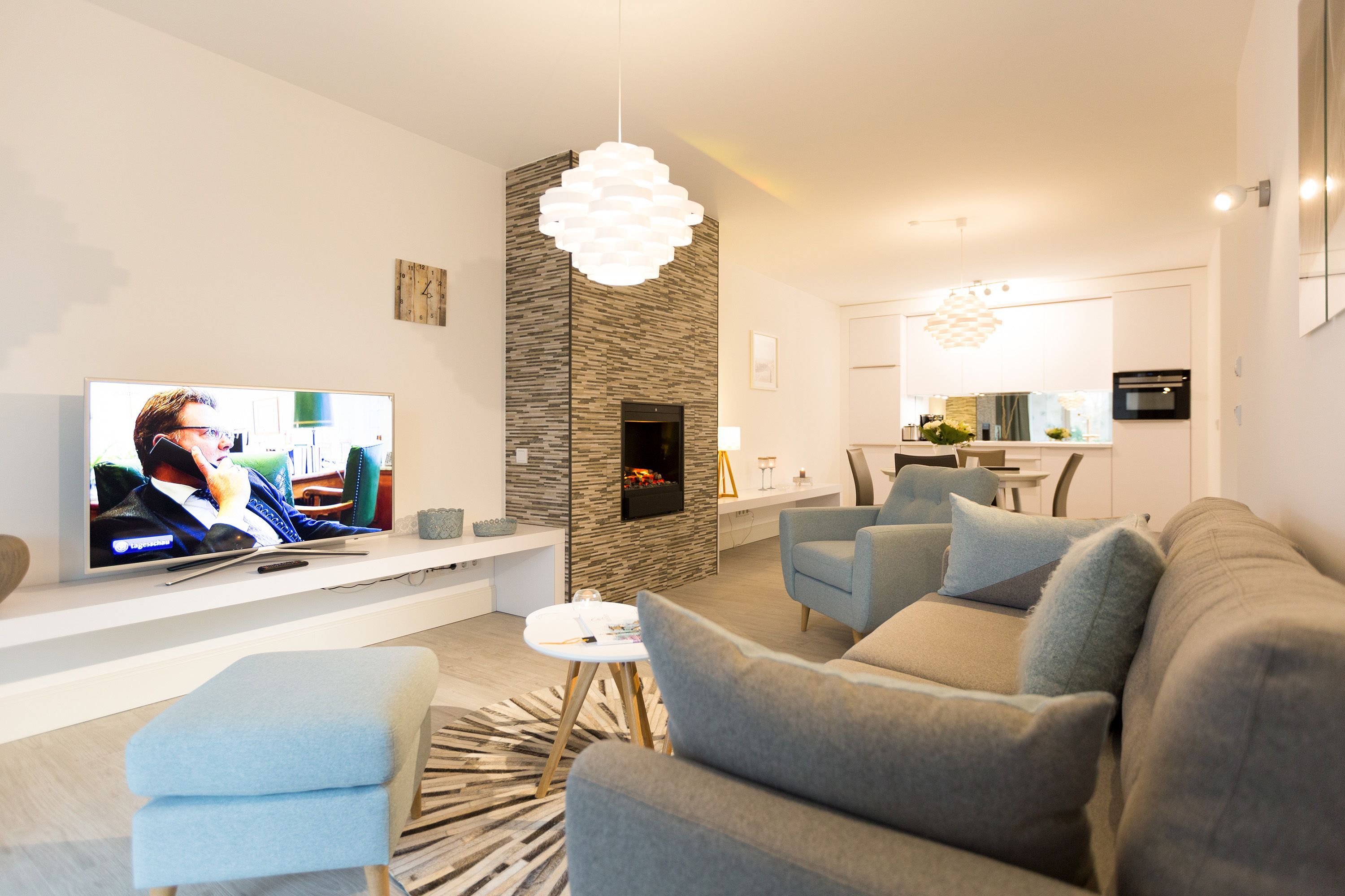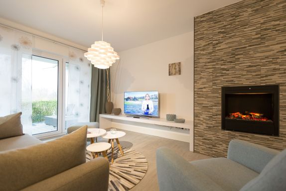 Er ist ein echter Hingucker schon beim Eintreten in dieses elegante und stilvolle Urlaubsappartement im Erdgeschoss der Dünenresidenz Heringsdorf der große, in Stein gefasste Elektro-Kamin. Sein warmes Licht sorgt nicht nur an kühlen Tagen für wohlige Behaglichkeit. Es wartet eine Wohlfühlwelt auf Sie, die auf 80 Quadratmetern reichlich Platz für bis zu vier Erwachsene bietet. Das gesamte Interieur ist harmonisch aufeinander abgestimmt. Stylisch sind auf alle Fälle die nordischen Design-Lampen. Abschalten und den Alltagsstress vergessen, lässt es sich auf der Sitzgruppe mit gemütlicher Couch und Blick auf den Kamin oder den großen Flat-TV wunderbar. Machen Sie die großen, bodentiefen Wohnzimmerfenster auf, lassen sie das Meeresrauschen vom nur 50 Meter entfernten Ostseestrand und die lichten Sonnenstrahlen in ihr Domizil oder entspannen Sie auf der 20 Quadratmeter großen Südterrasse. Zum Wohnbereich gehört eine helle, offene Küche mit großem Esstisch. Mit allem ausgestattet, was das Kochherz höher schlagen lässt, können Sie hier das gemütliche Zusammensitzen und Schlemmen wahrhaft zelebrieren. Haben Sie Spaß und einen erholsamen Schlaf in den beiden Schlafzimmern. Denn hier locken bequeme Doppelboxspringbetten (einmal 1,80 m x 2,00 m und einmal 1,60 m x 2,00 m), um Ihnen die Nächte zu versüßen. Das Badezimmer ist sehr geräumig und mit Waschtisch, WC und großer Echtglas-Dusche ausgestattet. Die Betten sind bezogen und Handtücher liegen bei Ankunft bereit. Zu der Wohnung gehört ein Pkw-Stellplatz in der Tiefgarage (max. Einfahrtshöhe 1,93 m).