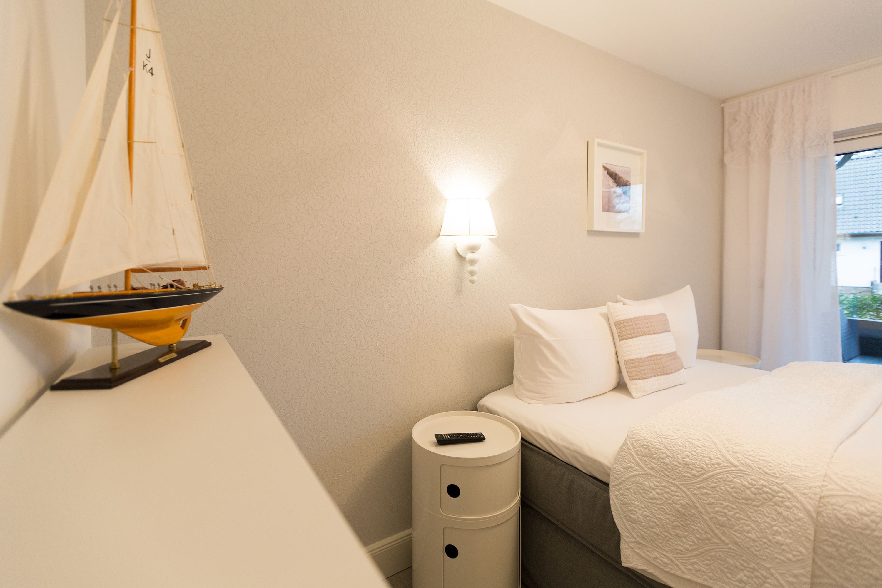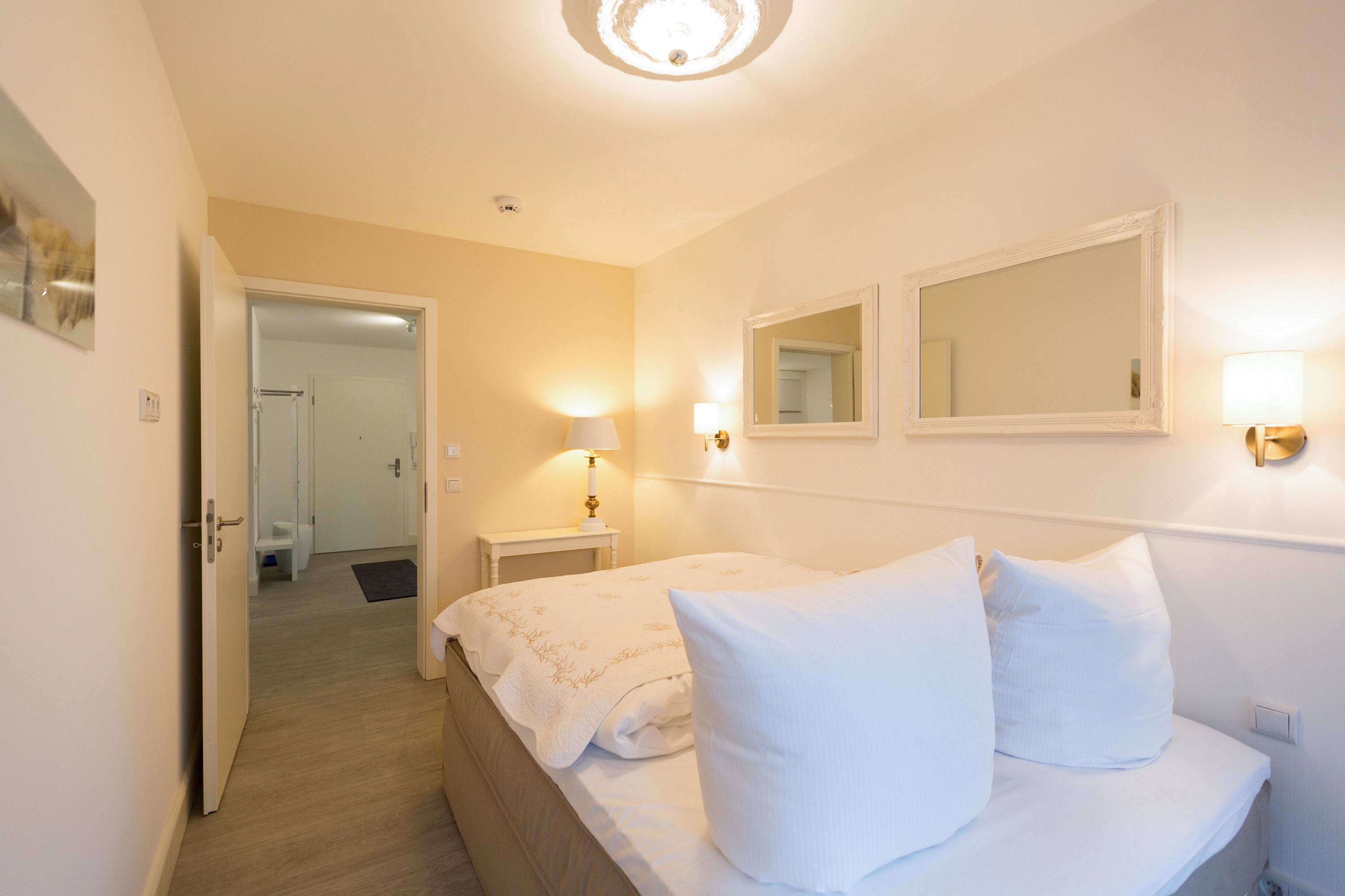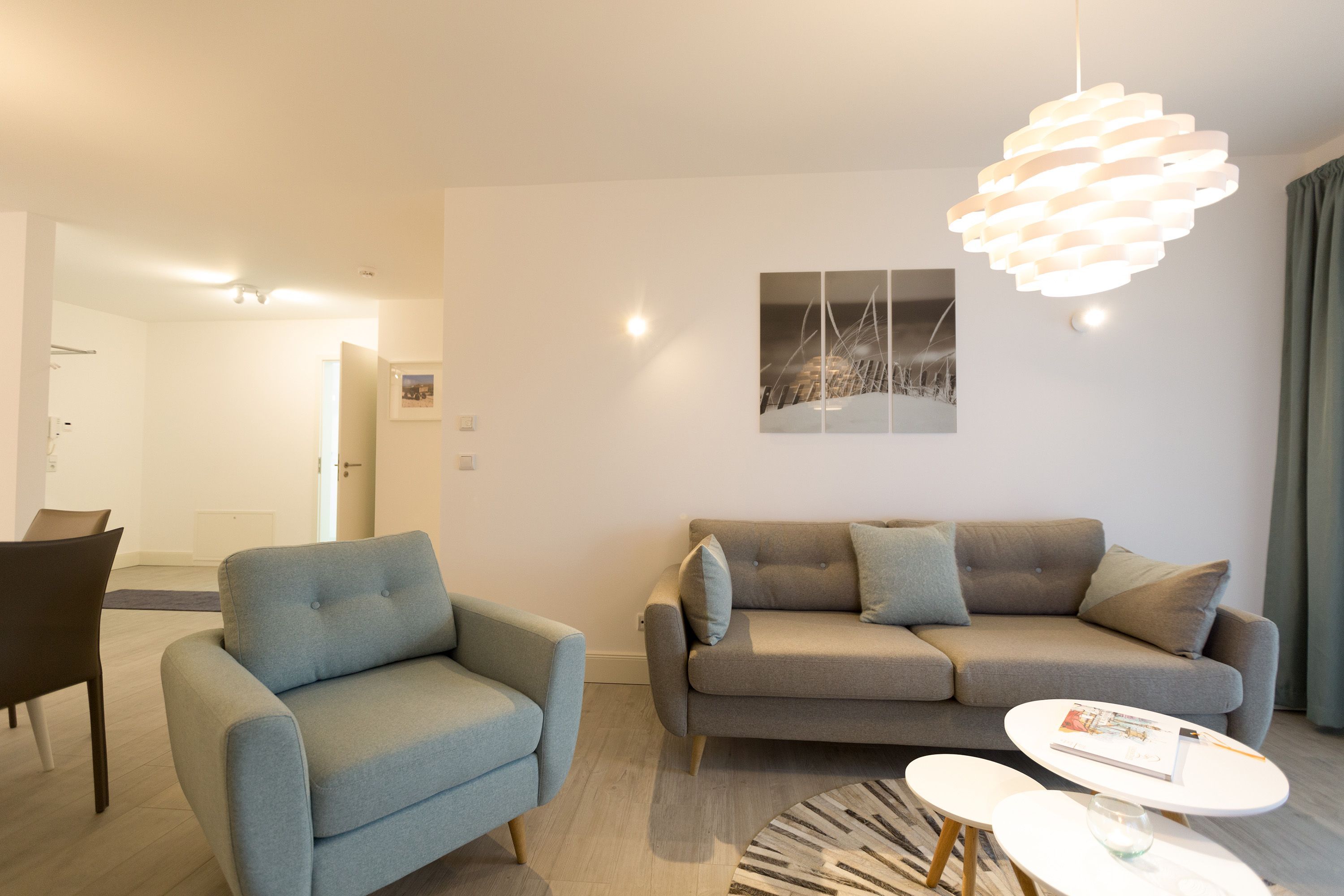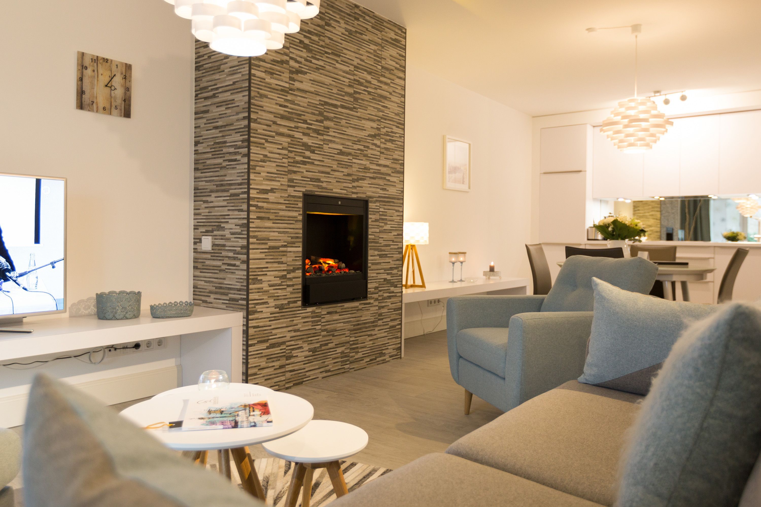 Er ist ein echter Hingucker schon beim Eintreten in dieses elegante und stilvolle Urlaubsappartement im Erdgeschoss der Dünenresidenz Heringsdorf der große, in Stein gefasste Elektro-Kamin. Sein warmes Licht sorgt nicht nur an kühlen Tagen für wohlige Behaglichkeit. Es wartet eine Wohlfühlwelt auf Sie, die auf 80 Quadratmetern reichlich Platz für bis zu vier Erwachsene bietet. Das gesamte Interieur ist harmonisch aufeinander abgestimmt. Stylisch sind auf alle Fälle die nordischen Design-Lampen. Abschalten und den Alltagsstress vergessen, lässt es sich auf der Sitzgruppe mit gemütlicher Couch und Blick auf den Kamin oder den großen Flat-TV wunderbar. Machen Sie die großen, bodentiefen Wohnzimmerfenster auf, lassen sie das Meeresrauschen vom nur 50 Meter entfernten Ostseestrand und die lichten Sonnenstrahlen in ihr Domizil oder entspannen Sie auf der 20 Quadratmeter großen Südterrasse. Zum Wohnbereich gehört eine helle, offene Küche mit großem Esstisch. Mit allem ausgestattet, was das Kochherz höher schlagen lässt, können Sie hier das gemütliche Zusammensitzen und Schlemmen wahrhaft zelebrieren. Haben Sie Spaß und einen erholsamen Schlaf in den beiden Schlafzimmern. Denn hier locken bequeme Doppelboxspringbetten (einmal 1,80 m x 2,00 m und einmal 1,60 m x 2,00 m), um Ihnen die Nächte zu versüßen. Das Badezimmer ist sehr geräumig und mit Waschtisch, WC und großer Echtglas-Dusche ausgestattet. Die Betten sind bezogen und Handtücher liegen bei Ankunft bereit. Zu der Wohnung gehört ein Pkw-Stellplatz in der Tiefgarage (max. Einfahrtshöhe 1,93 m).