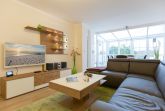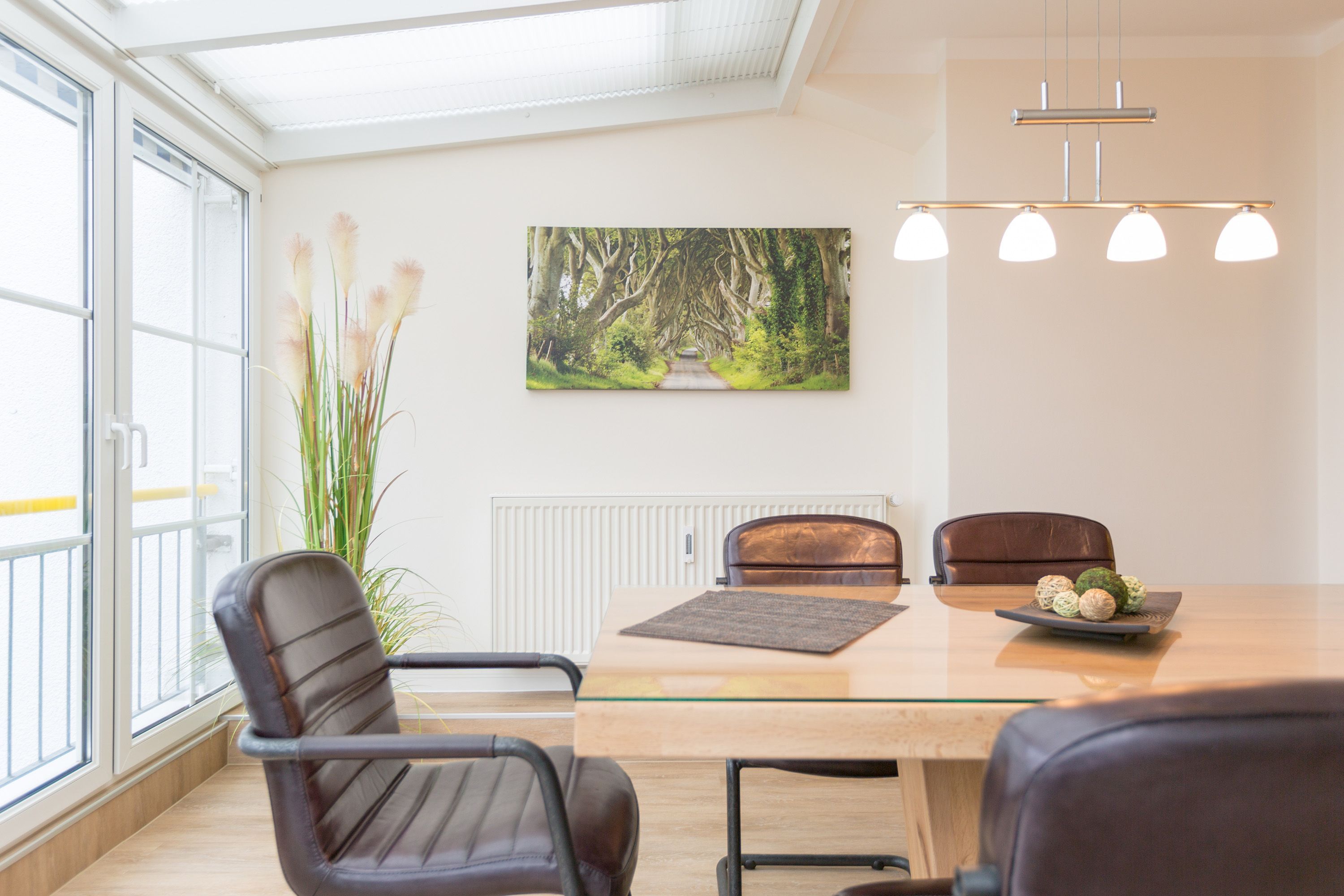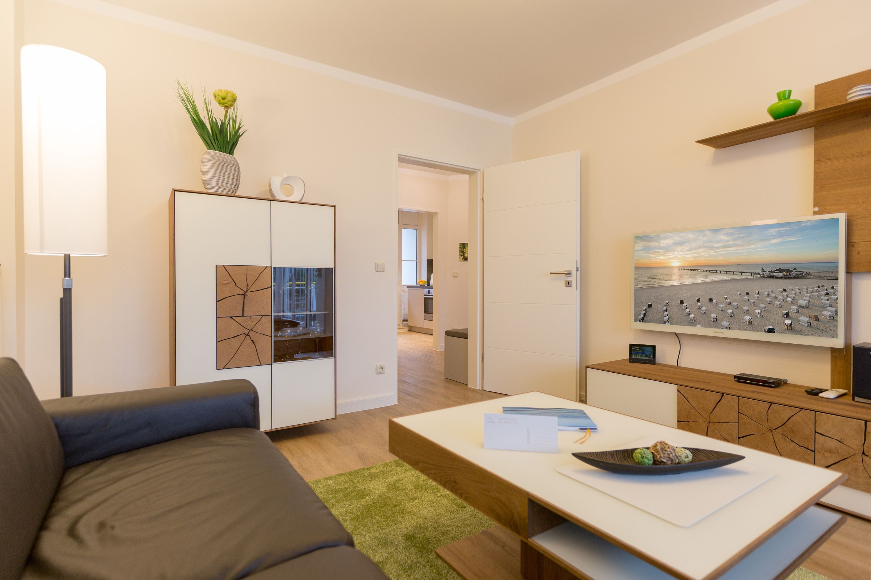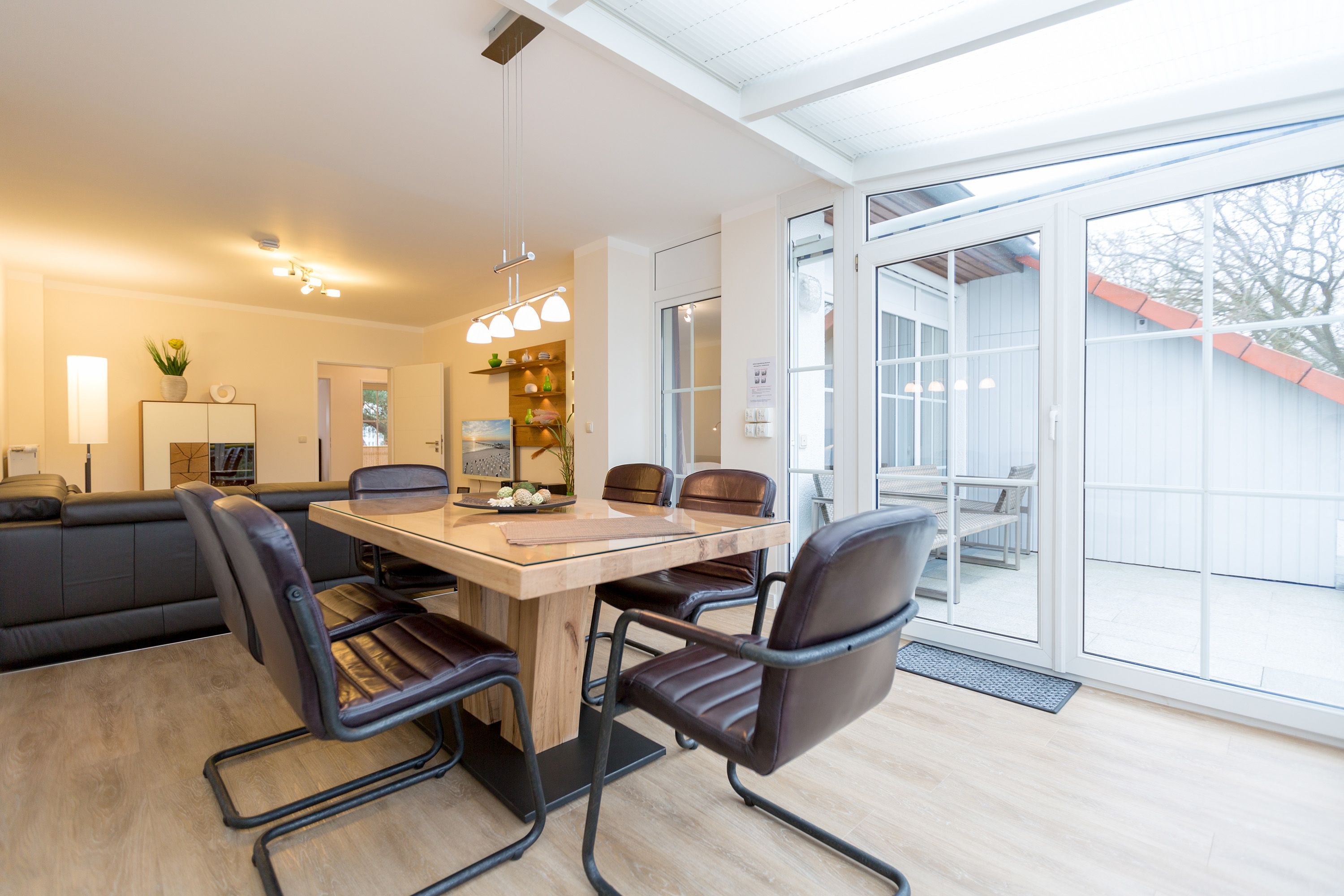 Ankommen und Wohlfühlen! Sie wohnen in ruhiger Lage in der Maxim Gorki Straße, nur wenige Schritte vom Strand und der Promenade entfernt. Im Dachgeschoss des Hauses empfängt Sie die moderne 3-Raum-Ferienwohnung (71 qm) für 4 Personen und ein Kleinkind ( bis 3 Jahre im Kinderreisebett). Das schöne Appartement glänzt in neuen Farben, denn es wurde erst kürzlich komplett renoviert und neu ausgestattet. Helle Farben, abgestimmte Stoffe und wertige Holzmöbel schaffen hier ein stimmiges Urlaubsdomizil. Im Wohnbereich auf der großen Ledersitzgruppe lässt es sich wunderbar Relaxen und TV schauen. Lichtdurchflutet und mit tollem Ausblick auf den Schloonsee schließt sich hier der Wintergarten an, in dem der schöne Essplatz integriert ist. Von hier aus hat man Zugang zum Balkon. Ein großzügiges Schlafzimmer mit einem hochwertigen Doppelboxspringbett (1,80 m x 2,00m ) und zusätzlichem Flat-TV sorgt für erholsame Nächte. Das zweite Schlafzimmer ist mit zwei bequemen Einzelboxspringbetten ( 0,90 m x 2,00 m) ausgestattet, ein idealer Rückzugort für zwischendrin. Die separate Küche ist selbstverständlich hochwertig eingerichtet. Ein modernes Duschbad mit WC ergänzt die Wohnung. Auf dem Westbalkon, der mit hochwertigen Loungemöbeln ausgestattet ist, tanken Sie Usedomer Sonne und genießen den Ausblick ins Grüne und auf den Schloonsee. Für die Wohnung steht ein PKW-Stellplatz in einer separaten Garage ( Höhe 2,10m, Breite 2,50m) zur Verfügung, für Fahrräder gibt es einen Abstellraum im Keller des Hauses. Waschmaschine und Trockner (im Untergeschoss) im Haus sind kostenfrei nutzbar, auch das Wlan-Netz ist kostenfrei verfügbar.