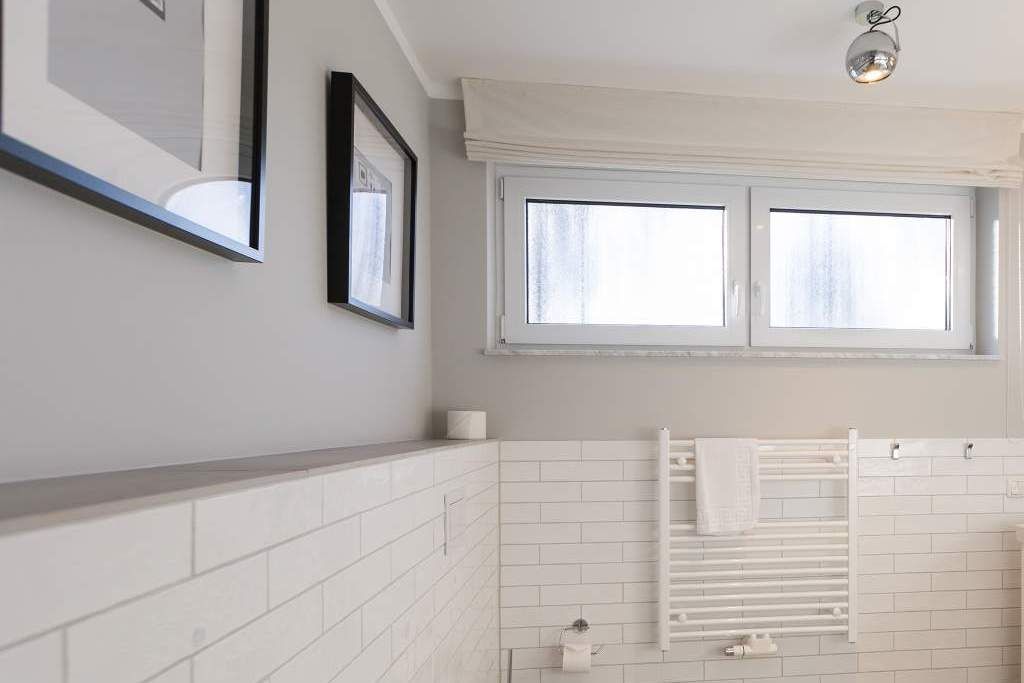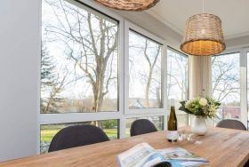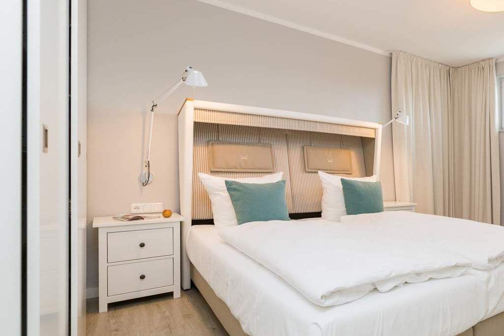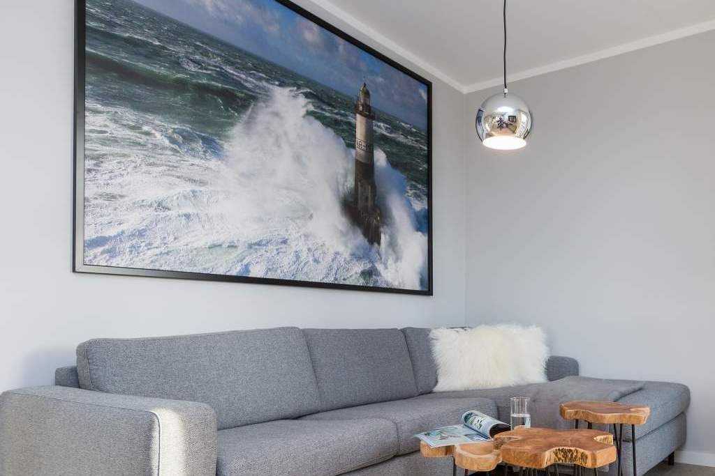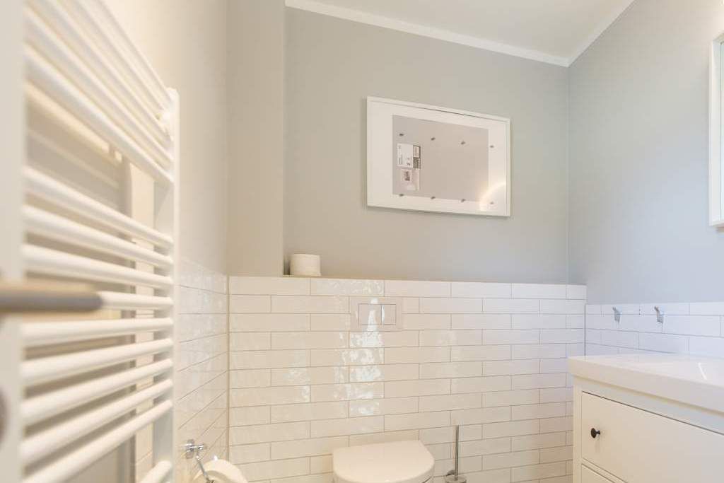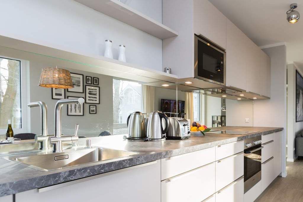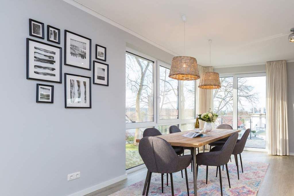 Von hier oben auf dem Heringsdorfer Hausberg Kulm, aus diesem wunderschönen modernen Appartement Nummer 8, haben Sie einen weiten Blick über die Dächer der alten Bädervillen. Hell scheint die Sonne durch die großen, bodentiefen Fenster in das stylische Wohnzimmer und offenbart eine exklusive Wohlfühloase auf 86 Quadratmetern. Interieur und Gestaltung passen harmonisch zueinander. Noble Designmöbel und helle Farben verströmen ein ausgewogenes und federleichtes Flair. Platz ist auf den zwei Etagen für 4 Personen und bis zu 2 Kleinkinder bis etwa drei Jahre im Kinderreisebett. Neben einem gemütlichen Wohnbereich mit 42 Zoll Flat-TV, einer großen Wohnlandschaft, einem urigen Ohrensessel und einem Gas-Kamin lädt die offene Küche zum geselligen Beisammensein ein. Ein schöner großer Echtholztisch eignet sich wunderbar für üppige Mahlzeiten zubereitet in der voll ausgestatteten und via Spiegelverglasung sehr stylischen Küche. Vor dem Wohnzimmer befindet sich ein Balkon (Hochterrasse), der mit seinem weiten Blick das Gefühl grenzenloser Freiheit zaubert. Gleich zwei Schlafzimmer mit komfortablen Boxspringdoppelbetten (1,80 m x 2,00 m) sorgen für jede Menge Schlafkomfort. Auch zum Duschen und Schickmachen gibts reichlich Platz. Die Wohnung verfügt über ein Gäste-WC sowie ein Bad mit Dusche und WC. Für einen entspannten Urlaub sind die Betten bei Ihrer Anreise bereits bezogen und Handtücher liegen bereit. Am Haus steht Ihnen ein Pkw-Stellplatz zur Verfügung.