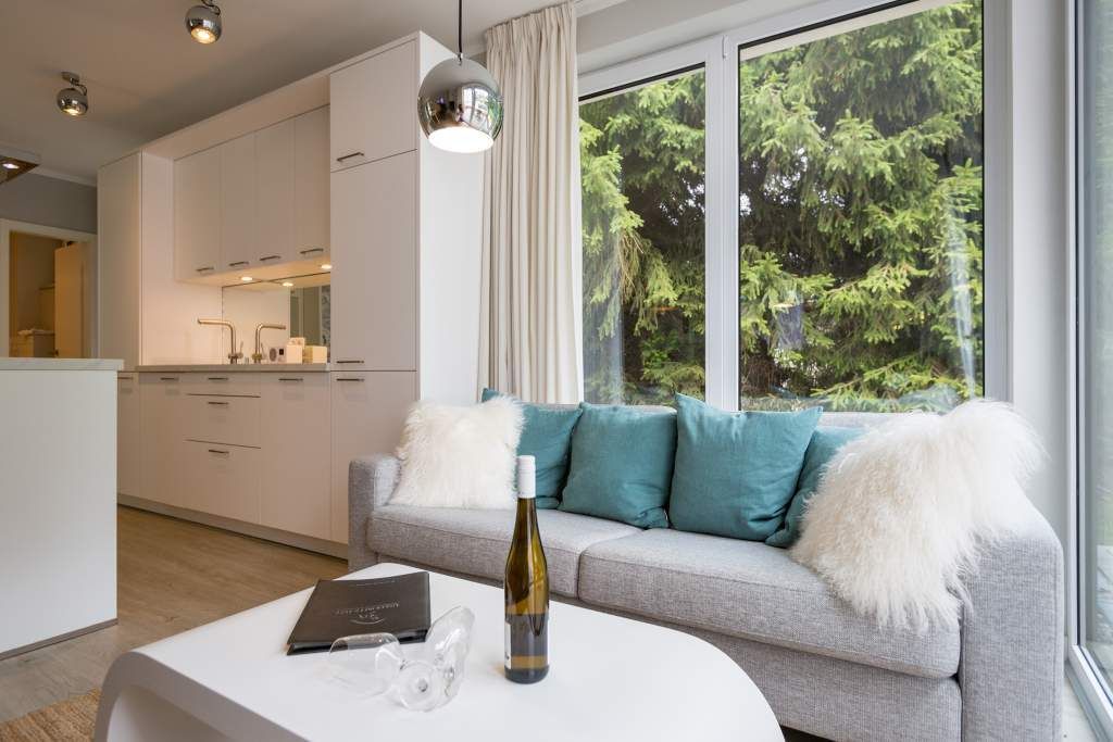 Willkommen in dieser modernen 2-Raum-Ferienwohnung, die mit 45 Quadratmetern ein stilvolles Zuhause für zwei Personen bietet. Gelegen im Erdgeschoss, besticht sie durch ein durchdachtes Wohnkonzept und eine warme, einladende Atmosphäre. Der offene Wohnbereich lädt mit einer gemütlichen Sitzgruppe, einem Flat-TV und einem stimmungsvollen Gaskamin zu entspannten Stunden ein. Von hier aus haben Sie direkten Zugang zur sonnigen Süd-Terrasse, die mit 10 Quadratmetern ausreichend Platz für erholsame Momente im Freien bietet. Angrenzend an den Wohnbereich befindet sich die offene Küche mit einem ansprechenden Essplatz. Sie ist komplett ausgestattet und bietet alles, was Sie für die Zubereitung köstlicher Mahlzeiten benötigen. Das Schlafzimmer sorgt mit einem komfortablen Boxspringdoppelbett (1,80 m x 2,00 m) für erholsame Nächte. Ein zusätzlicher Flat-TV rundet die hochwertige Ausstattung ab. Das moderne Duschbad mit WC bietet zeitgemäßen Komfort und lädt zu einer erfrischenden Auszeit ein. Ein Pkw-Stellplatz direkt am Haus sowie kostenfreies WLAN stehen Ihnen während Ihres Aufenthalts zur Verfügung. Freuen Sie sich auf eine entspannte und stilvolle Auszeit in dieser liebevoll gestalteten Ferienwohnung.