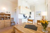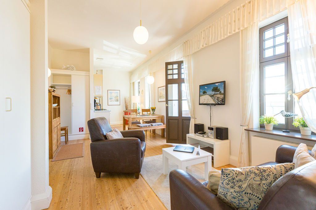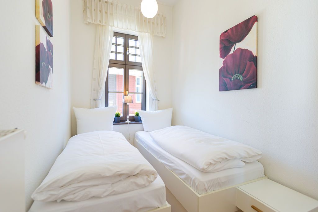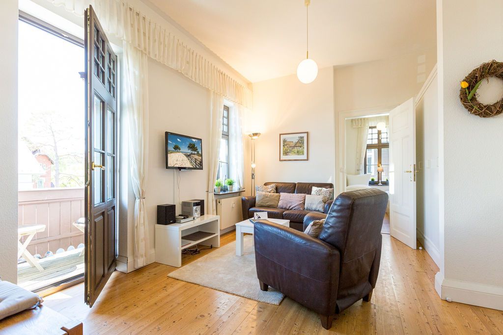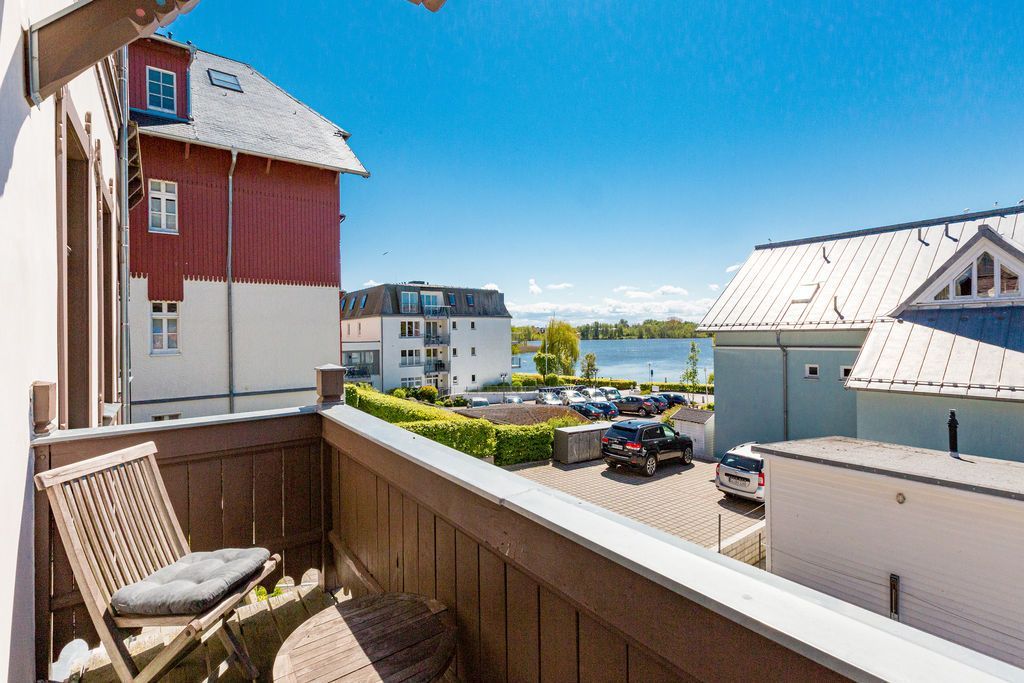 Die helle, freundliche 3-Raum-Ferienwohnung im 1. Obergeschoss der Strandklause bietet ein ideales Urlaubsziel für 4 Personen und ein Kleinkind (bis 3 Jahre). Moderner Komfort: ein Wohnzimmer mit kompletter Küchenzeile, ein Schlafzimmer mit Doppelbett und ein kleineres Schlafzimmer mit getrennten Betten. Geschmackvoll eingerichtet. Was Sie außerdem begeistern wird: die Südausrichtung mit viel Usedomer Sonne auf Ihren zwei Balkonen mit Blick auf den Schloonsee. Auf Wunsch stellen wir für unsere kleinen Gäste ein Kinderreisebett (ohne zusätzliche Matratze & Bettzeug) und einen Kinderhochstuhl ( gegen einen Aufpreis) zur Verfügung. Für Ihren Komfort sind die Betten bei der Anreise bezogen und Handtücher liegen bereit (Erstausstattung). Das WLAN-Netz ist kostenfrei nutzbar.