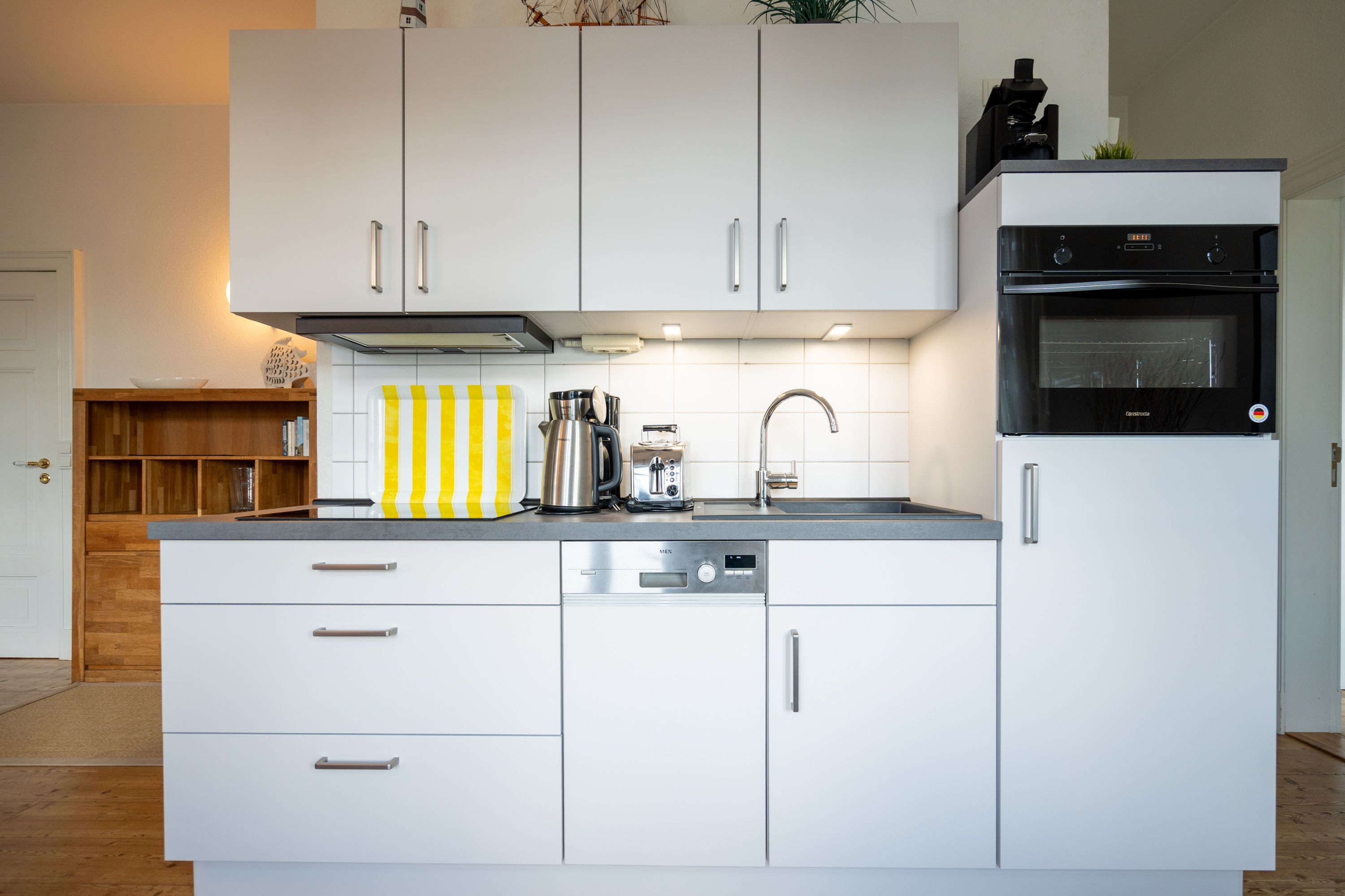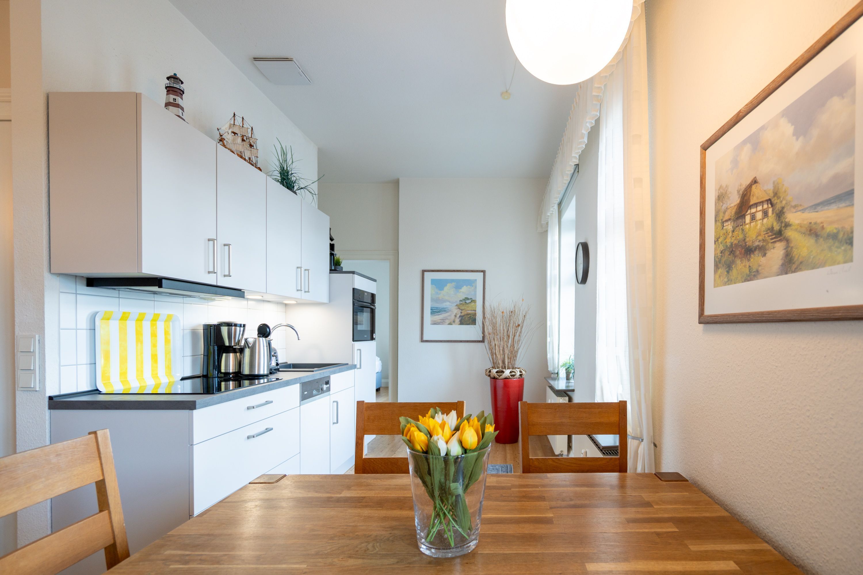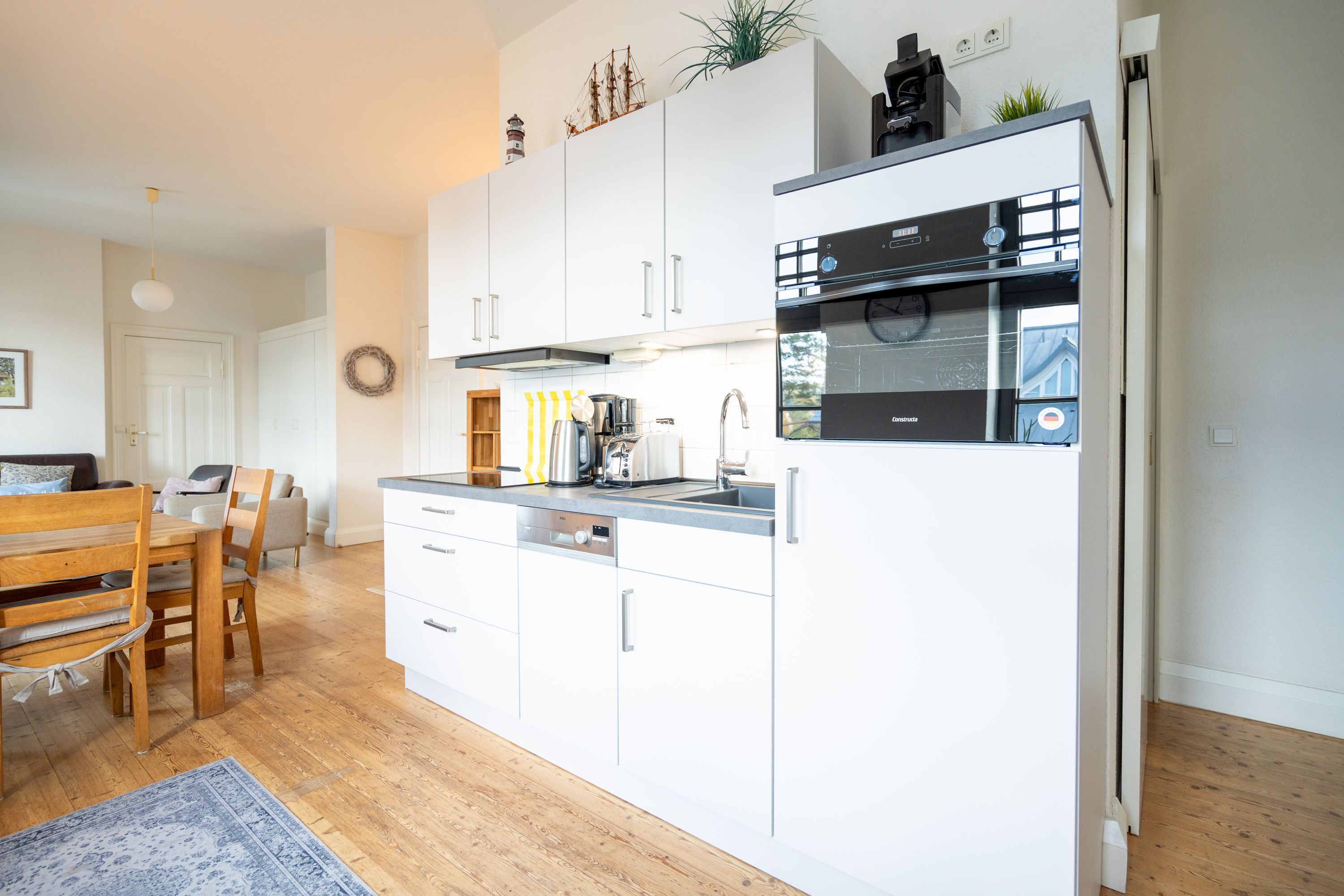 Die helle, freundliche 3-Raum-Ferienwohnung im 1. Obergeschoss der Strandklause bietet ein ideales Urlaubsziel für 4 Personen und ein Kleinkind (bis 3 Jahre). Moderner Komfort: ein Wohnzimmer mit kompletter Küchenzeile, ein Schlafzimmer mit Doppelbett und ein kleineres Schlafzimmer mit getrennten Betten. Geschmackvoll eingerichtet. Was Sie außerdem begeistern wird: die Südausrichtung mit viel Usedomer Sonne auf Ihren zwei Balkonen mit Blick auf den Schloonsee. Auf Wunsch stellen wir für unsere kleinen Gäste ein Kinderreisebett (ohne zusätzliche Matratze & Bettzeug) und einen Kinderhochstuhl ( gegen einen Aufpreis) zur Verfügung. Für Ihren Komfort sind die Betten bei der Anreise bezogen und Handtücher liegen bereit (Erstausstattung). Das WLAN-Netz ist kostenfrei nutzbar.
