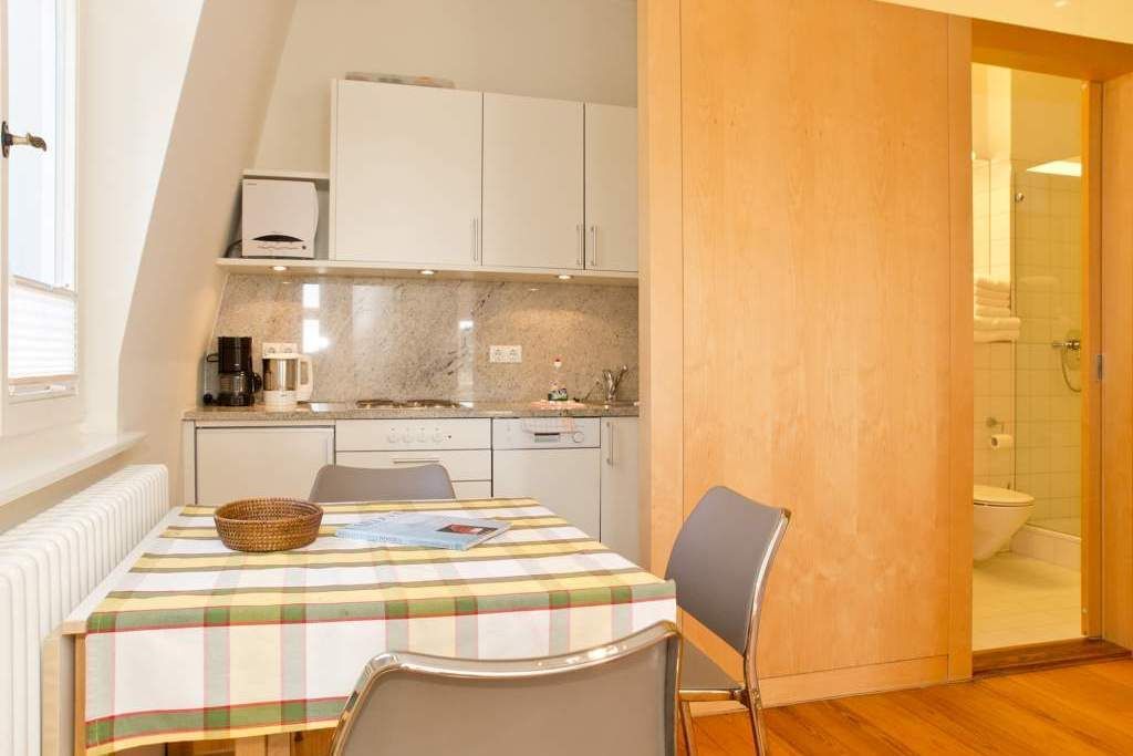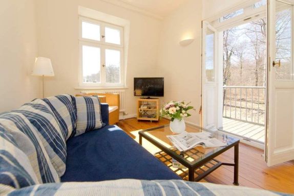 Auf Usedom rauscht nicht nur das Meer, sondern auch der Wald. Windgeschützt, in Südlage, haben die Waldsuiten einen Balkon bzw. eine Terrasse. Hier genießen Sie die Usedomer Sonne. Ein geräumiges Schlaf- und Arbeitszimmer sowie ein Wohnzimmer, von dem es auf den Balkon geht, schaffen eine für eine Ferienwohnung bemerkenswerte Atmosphäre. Wenn man nicht gleich draußen frühstücken will, so bietet ein Platz am Esstisch in der Küche ebenfalls den Blick in die Bäume. Ein DVD-Player kann Ihnen auf Anfrage zur Verfügung gestellt werden.