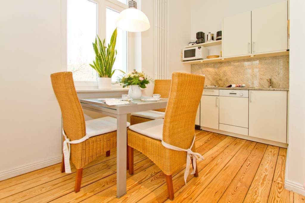 Auf Usedom rauscht nicht nur das Meer, sondern auch der Wald. Windgeschützt, in Südlage, haben die Waldsuiten einen Balkon bzw. eine Terrasse. Hier genießen Sie die Usedomer Sonne. Ein geräumiges Schlaf- und Arbeitszimmer sowie ein Wohnzimmer, von dem es auf den Balkon geht, schaffen eine für eine Ferienwohnung bemerkenswerte Atmosphäre. Wenn man nicht gleich draußen frühstücken will, so bietet ein Platz am Esstisch in der Küche ebenfalls den Blick in die Bäume. Ein DVD-Player kann Ihnen auf Anfrage zur Verfügung gestellt werden.
