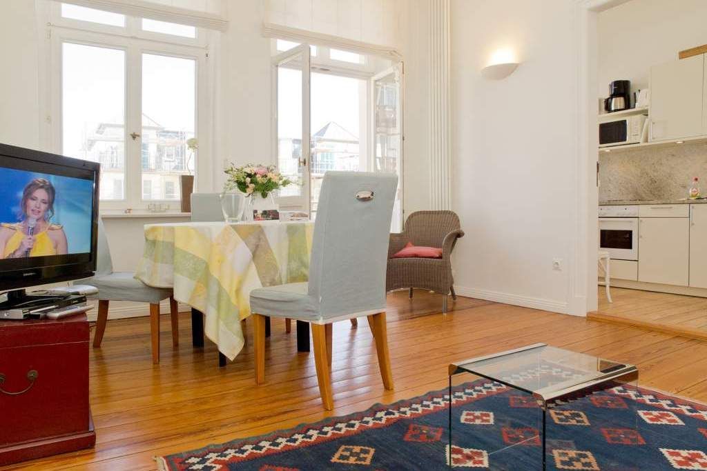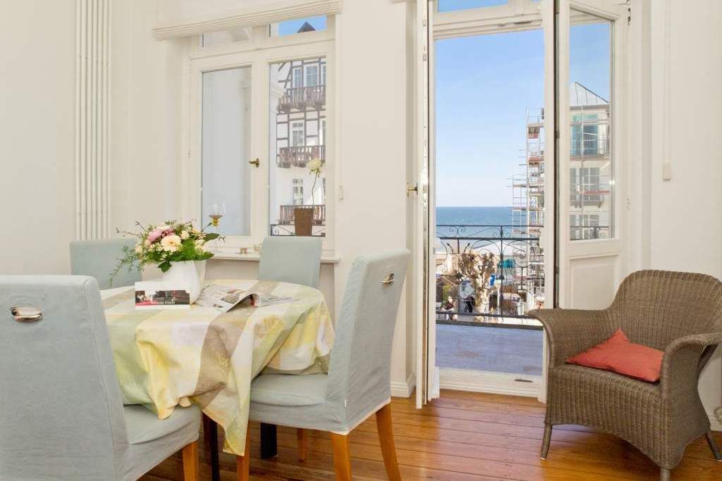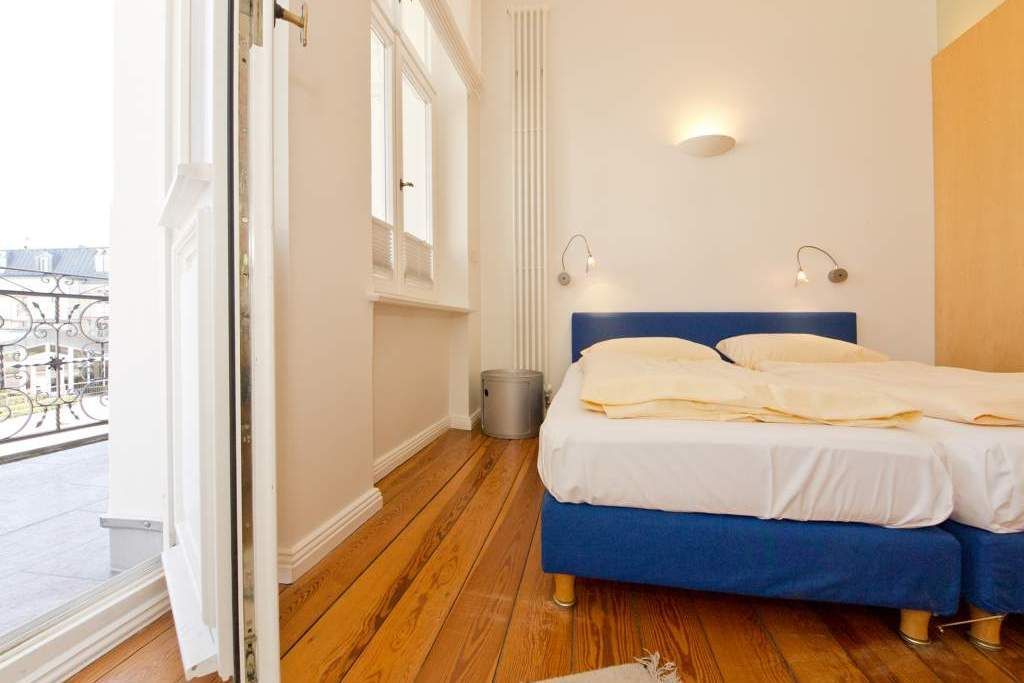 Logieren Sie in den großzügigen Balkonsuiten der Villa Astrid. Aus allen Räumlichkeiten und vom Balkon genießen Sie den schönen Blick auf die Ostsee. Der Wohnbereich mit Esstisch und Schlafcouch (für die dritte Person), das Schlafzimmer mit Doppelbett und die separate Küche bieten Platz für 2 Personen und 1 Kind bis 15 Jahre. Ein DVD-Player kann Ihnen auf Anfrage zur Verfügung gestellt werden.