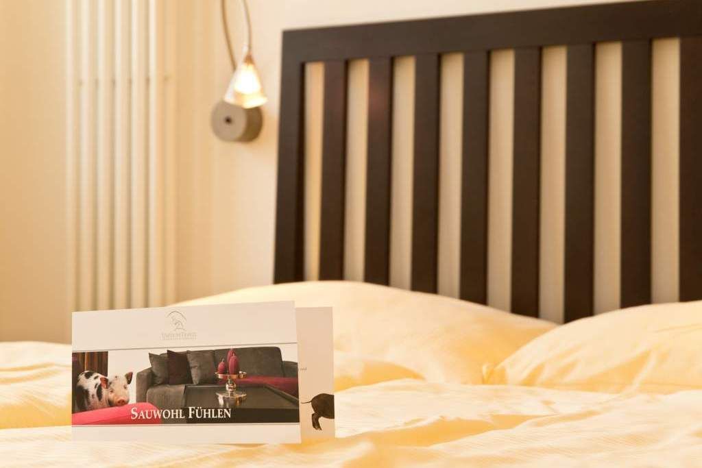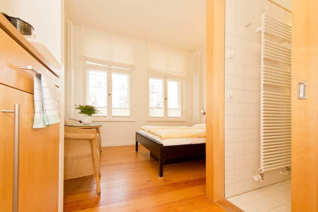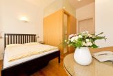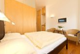 Diese kleinen, im Erdgeschoß gelegenen Zimmer eignen sich wunderbar für einen Kurzurlaub oder können bei Bedarf, zum Beispiel für die Schwiegermutter oder für größere Kinder, zu einer der anderen Wohnungen dazu gemietet werden. Sie verfügen über ein komplettes Bad mit Dusche und WC, zwei Betten, einen Einbauschrank, in dem ein integrierter Kühlschrank für kalte Getränke sorgt. Eine kleine Frühstücksgrundausstattung ( Tassen, Teller u. Besteck) sind vorhanden. Wer keinen Wert auf eine eigene Kochmöglichkeit legt, sondern sowieso lieber essen geht, findet hier eine günstige Alternative.