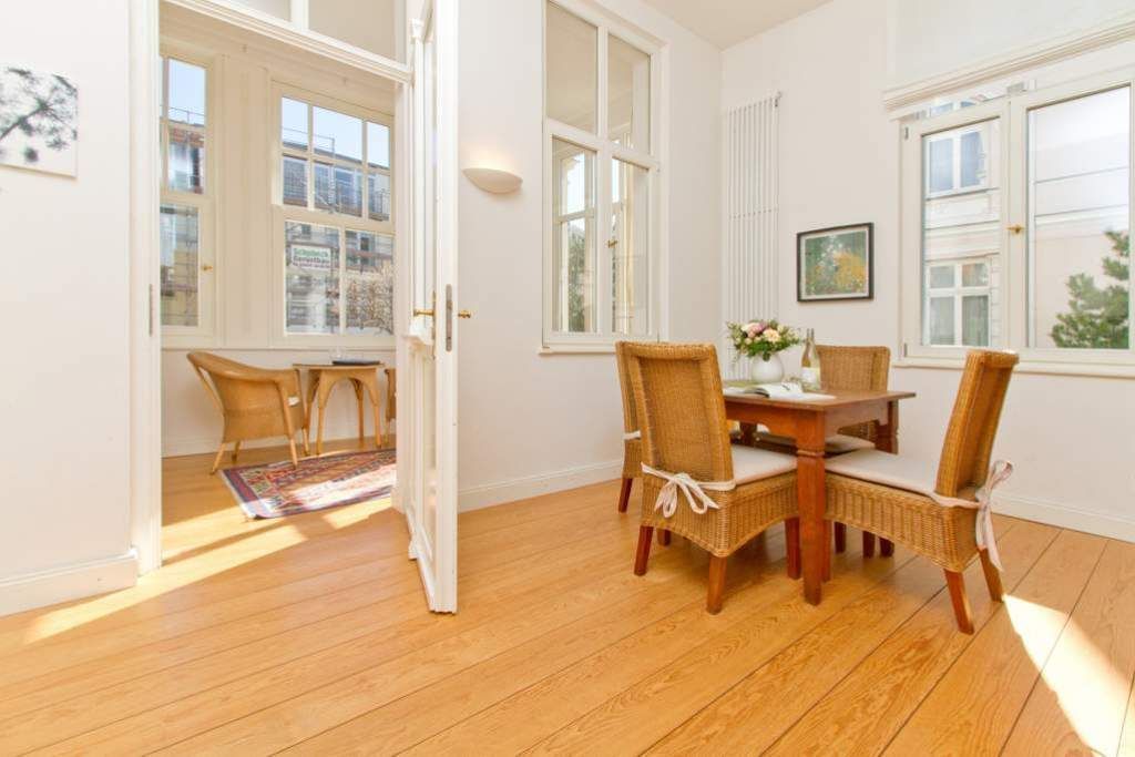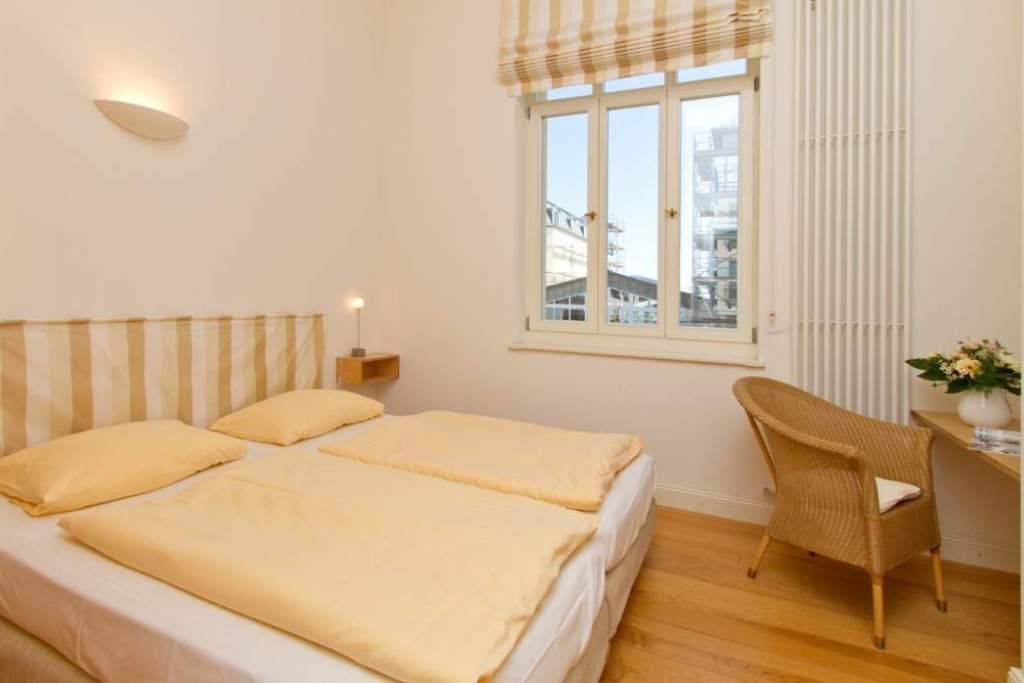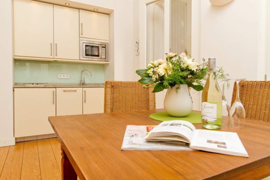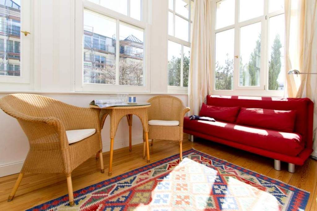 Die Ferienwohnung 3 in der Villa Artemis empfängt Sie im Hochparterre des Hauses und ist zur Seeseite gelegen. Auf 45 qm bietet Ihnen dieses 2-Raum-Appartement (für 2 Erwachsene & 1 Kind bis 15 Jahre) eine separate Küche mit Essbereich, einen Wohnbereich in der Licht durchfluteten, verglasten Veranda und ein Schlafzimmer mit Doppelbett. Klare Linien, hochwertige Materialien, von der Bulthaup Küche über helle Pitch-Pine-Böden bis hin zum Flachbild-Fernseher. Sie werden begeistert sein. Ein DVD-Player kann Ihnen auf Anfrage zur Verfügung gestellt werden.