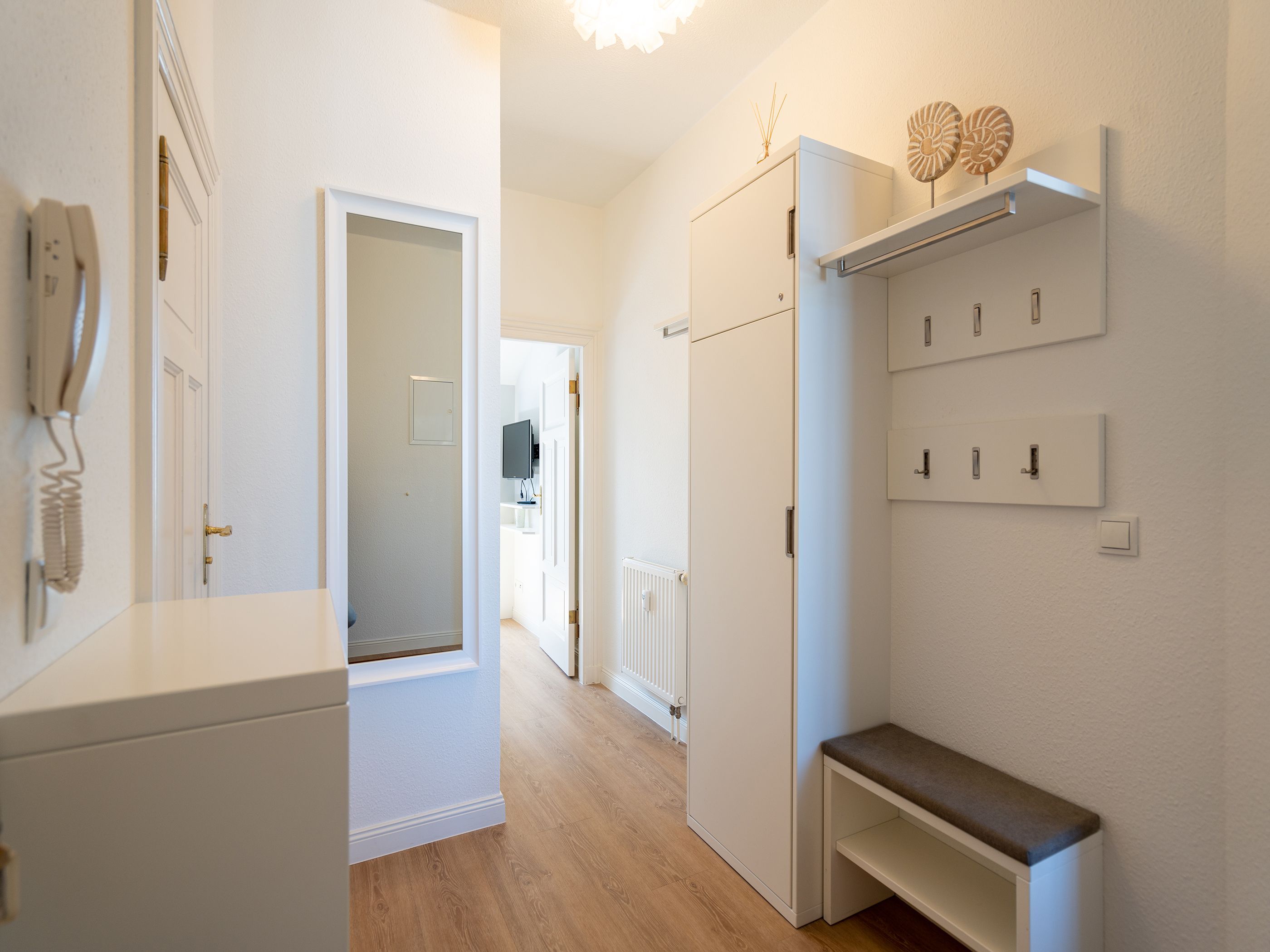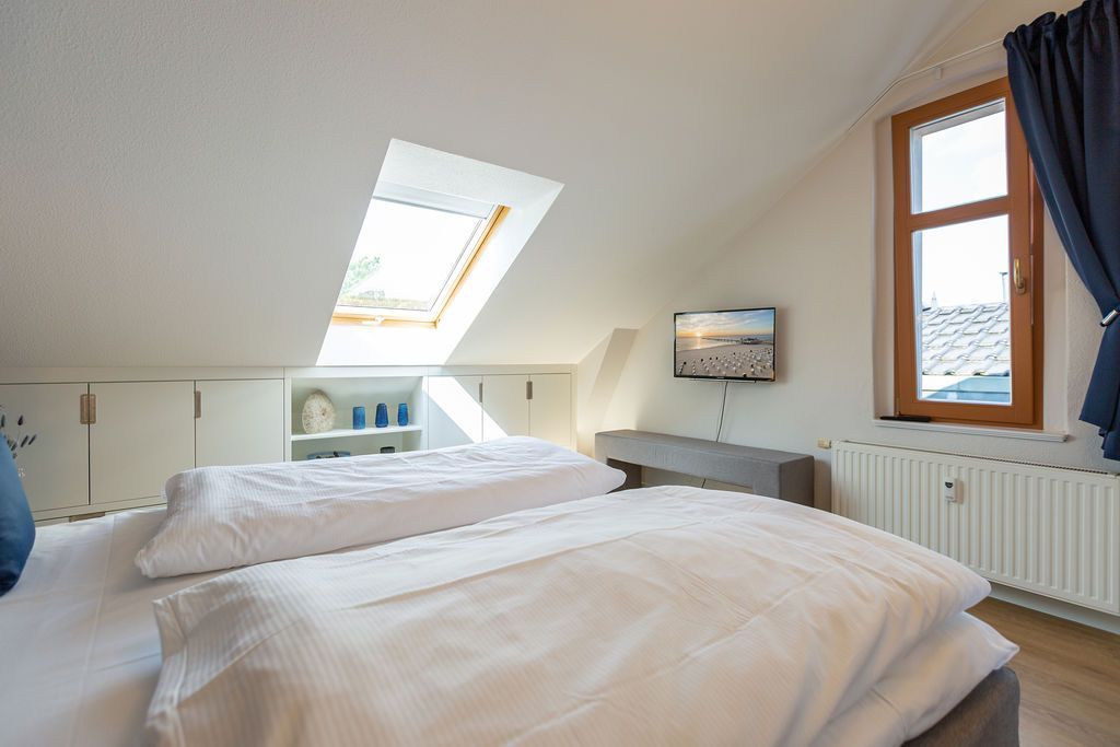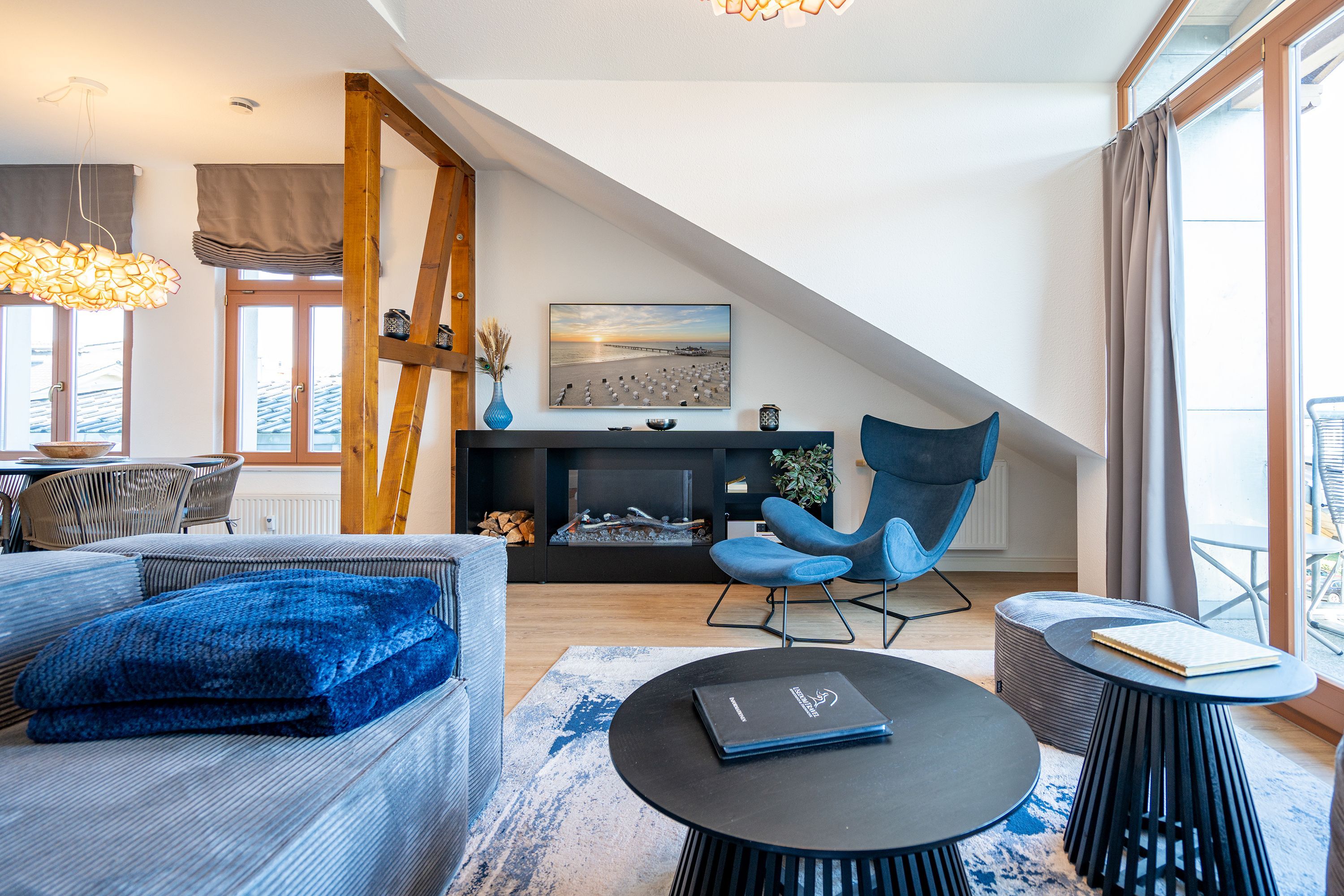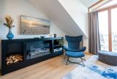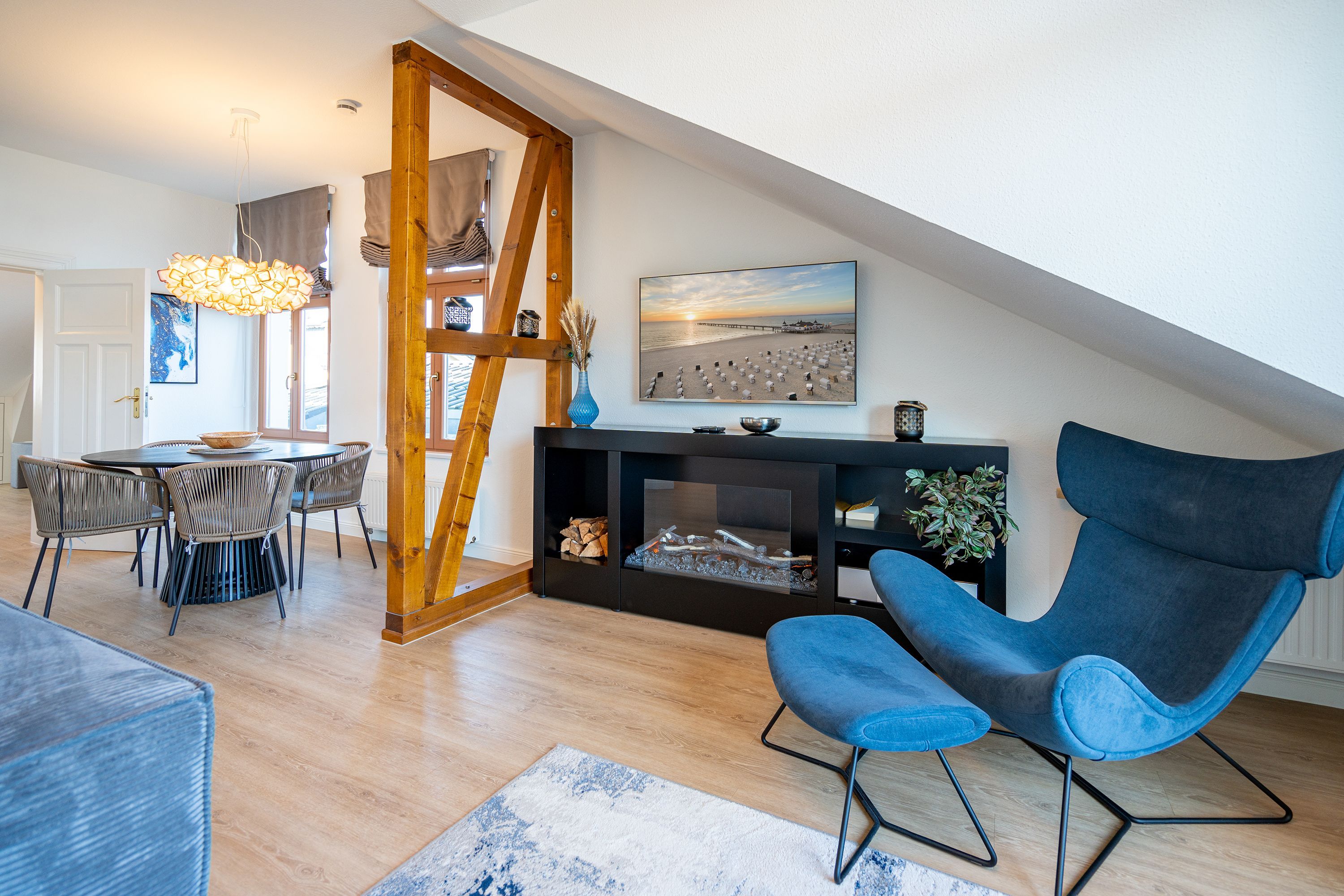 Verbringen Sie Ihren Urlaub im Obergeschoss der Villa Linquenda im Appartement 6 ( 72 qm) und lassen Sie sich von der bezaubernden Atmosphäre und der Usedomer Sonne verzaubern. Die Ferienwohnung bietet ausreichend Platz für 2 bis 4 Personen sowie ein Kleinkind (bis 3 Jahre). Die geschmackvolle und zeitlose Einrichtung sorgt für höchsten Wohnkomfort. Der große, offene Wohnbereich lädt zum Verweilen ein und bietet eine voll ausgestattete Küchenzeile sowie einen Essplatz für vier Personen. Entspannen Sie in der gemütlichen Sitzgruppe, genießen Sie Unterhaltung auf dem Flat-TV oder mit der Sonoro-Anlage oder lassen Sie den Abend vor dem Elektro-Kamin (mit Fernbedienung) ausklingen. Die zwei Schlafzimmer sind mit bequemen Boxspring-Doppelbetten (1,80 m x 2,00 m) ausgestattet und verfügen über zusätzliche Fernseher. Für Ihren Komfort sind die Betten bei Ihrer Ankunft bereits bezogen, und Handtücher liegen für Sie bereit (Erstausstattung). Für unsere kleinen Gäste stellen wir auf Wunsch ein Kinderreisebett (ohne zusätzliche Matratze und Bettzeug) und einen Kinderhochstuhl (gegen Aufpreis) zur Verfügung. Der große Balkon zur Meerseite bietet einen herrlichen Ausblick und Platz zum Entspannen. Das moderne Badezimmer ist mit einem Waschtisch, einer Dusche und einem WC mit Bidetbrause ausgestattet. Ein PKW-Stellplatz am Haus rundet das Angebot ab. Sie haben die Möglichkeit, ihre Fahrräder bequem in einem eigenen, abschließbaren Kellerabteil unterzustellen – perfekt für alle, die die Umgebung gern auf zwei Rädern erkunden!
