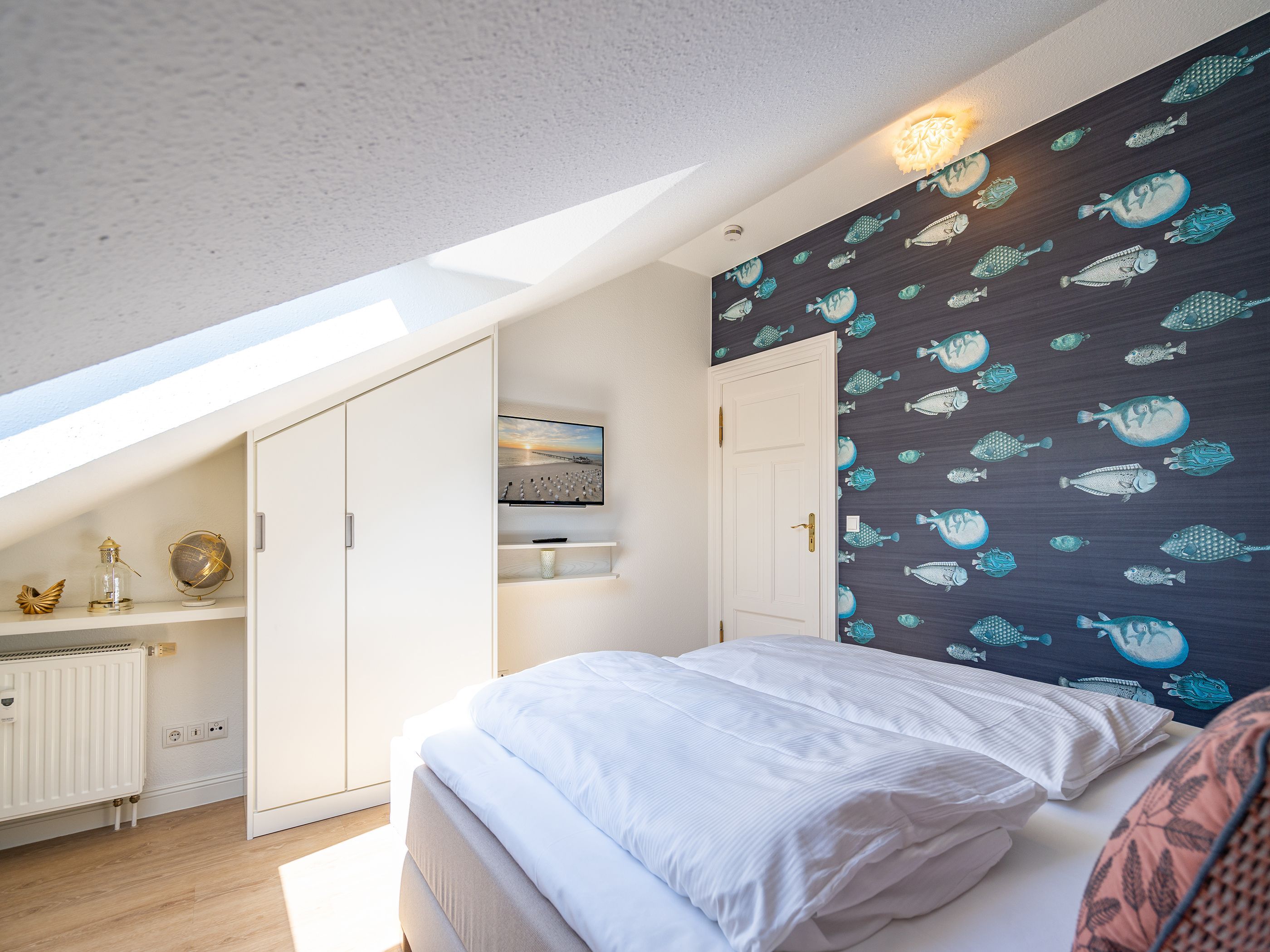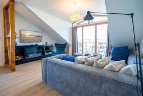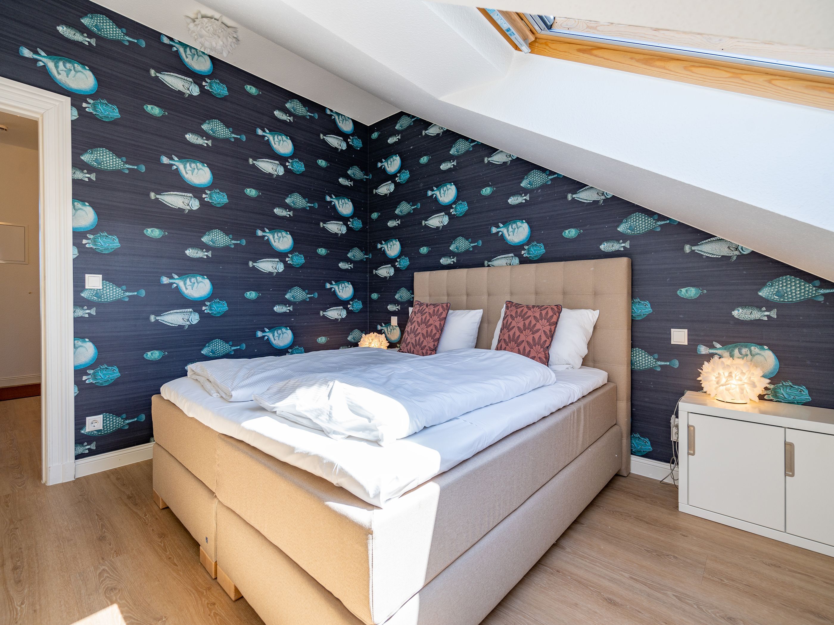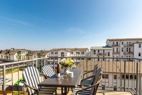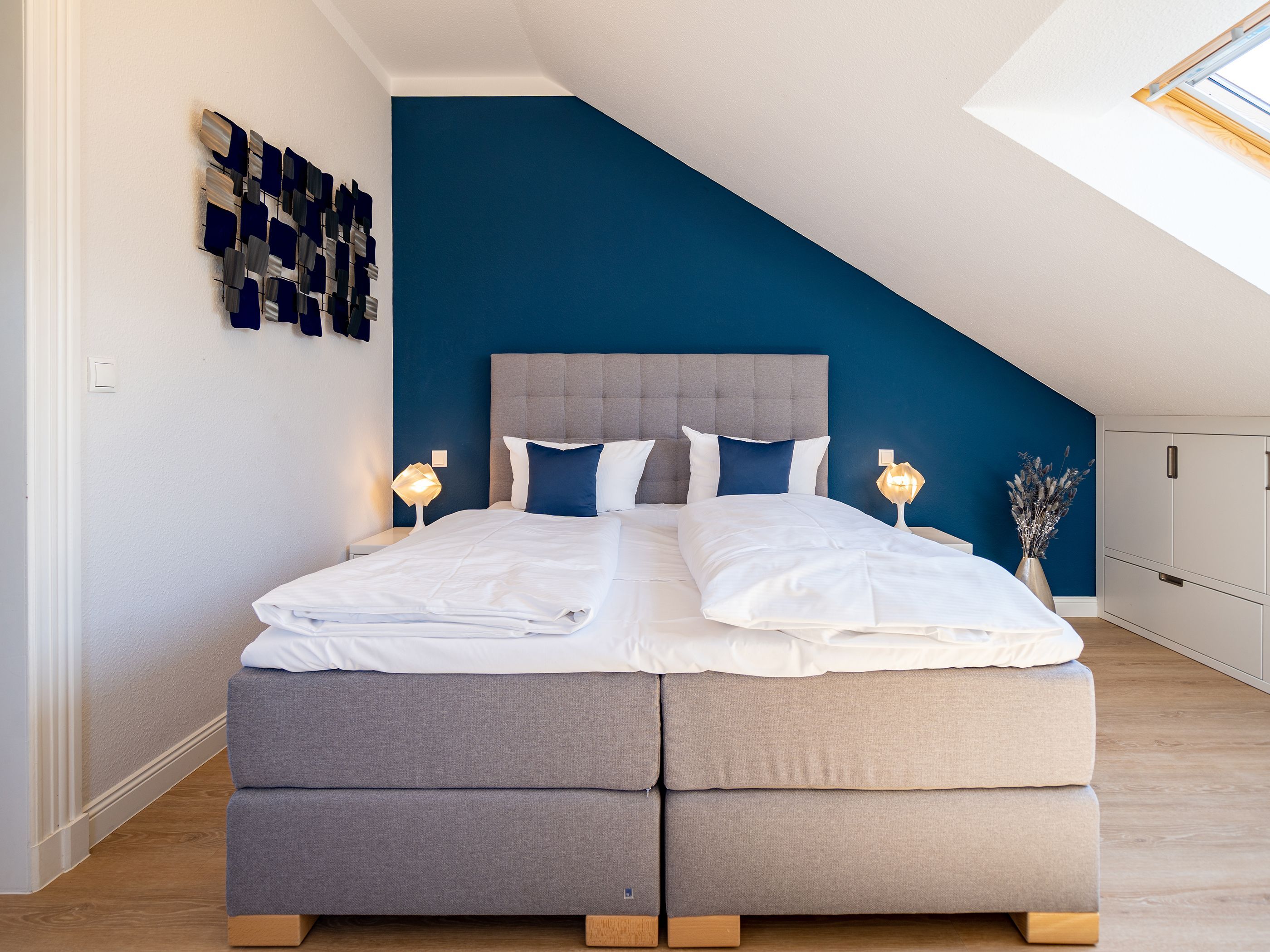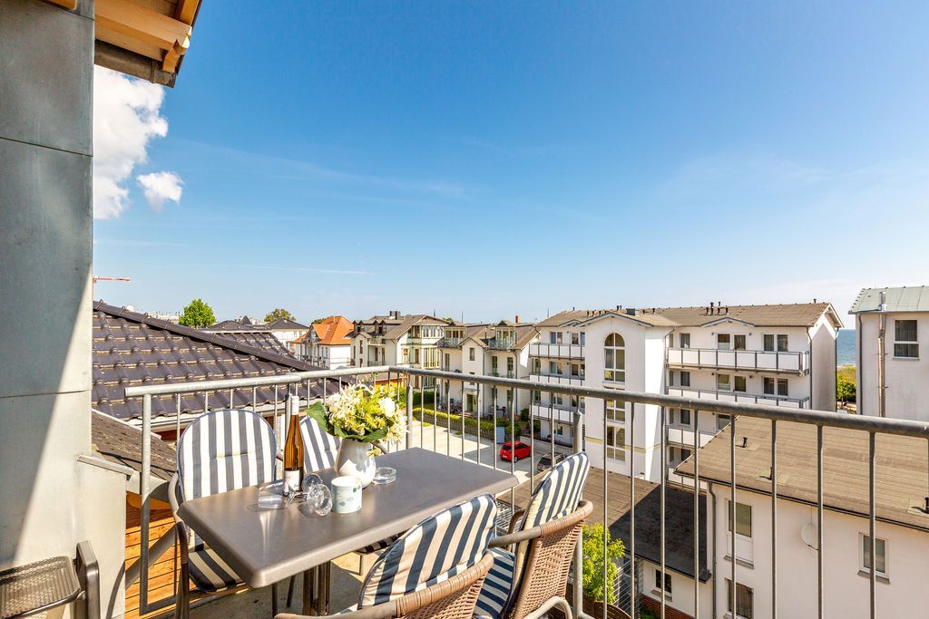 Verbringen Sie Ihren Urlaub im Obergeschoss der Villa Linquenda im Appartement 6 ( 72 qm) und lassen Sie sich von der bezaubernden Atmosphäre und der Usedomer Sonne verzaubern. Die Ferienwohnung bietet ausreichend Platz für 2 bis 4 Personen sowie ein Kleinkind (bis 3 Jahre). Die geschmackvolle und zeitlose Einrichtung sorgt für höchsten Wohnkomfort. Der große, offene Wohnbereich lädt zum Verweilen ein und bietet eine voll ausgestattete Küchenzeile sowie einen Essplatz für vier Personen. Entspannen Sie in der gemütlichen Sitzgruppe, genießen Sie Unterhaltung auf dem Flat-TV oder mit der Sonoro-Anlage oder lassen Sie den Abend vor dem Elektro-Kamin (mit Fernbedienung) ausklingen. Die zwei Schlafzimmer sind mit bequemen Boxspring-Doppelbetten (1,80 m x 2,00 m) ausgestattet und verfügen über zusätzliche Fernseher. Für Ihren Komfort sind die Betten bei Ihrer Ankunft bereits bezogen, und Handtücher liegen für Sie bereit (Erstausstattung). Für unsere kleinen Gäste stellen wir auf Wunsch ein Kinderreisebett (ohne zusätzliche Matratze und Bettzeug) und einen Kinderhochstuhl (gegen Aufpreis) zur Verfügung. Der große Balkon zur Meerseite bietet einen herrlichen Ausblick und Platz zum Entspannen. Das moderne Badezimmer ist mit einem Waschtisch, einer Dusche und einem WC mit Bidetbrause ausgestattet. Ein PKW-Stellplatz am Haus rundet das Angebot ab. Sie haben die Möglichkeit, ihre Fahrräder bequem in einem eigenen, abschließbaren Kellerabteil unterzustellen – perfekt für alle, die die Umgebung gern auf zwei Rädern erkunden!