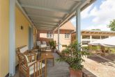 Ein besonderes Highlight auf dem Anwesen ist eine separate, 56 Quadratmeter große Orangerie mit einer kompletten Fensterfront, die einen unglaublich schönen Blick auf den Garten bietet. Der große Innenraum beherbergt einen Esstisch für 10 Personen, einen alten offenen Kamin (als Heizquelle für die kalte Jahreszeit) und eine gemütliche Sitzgruppe.