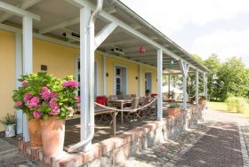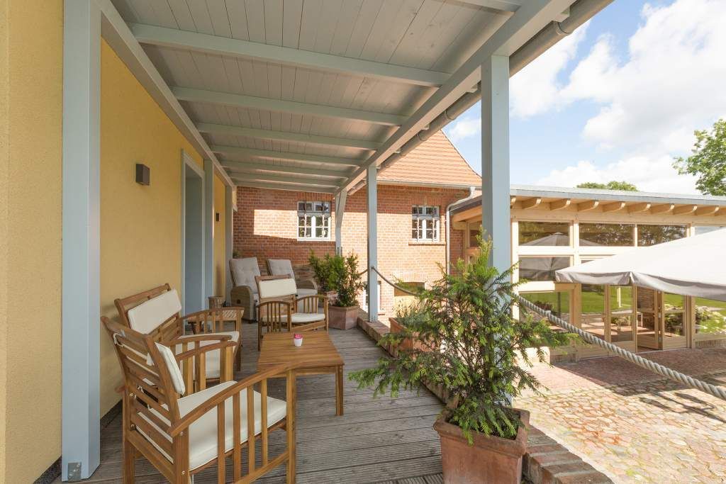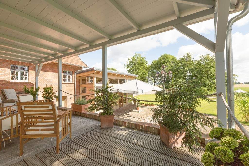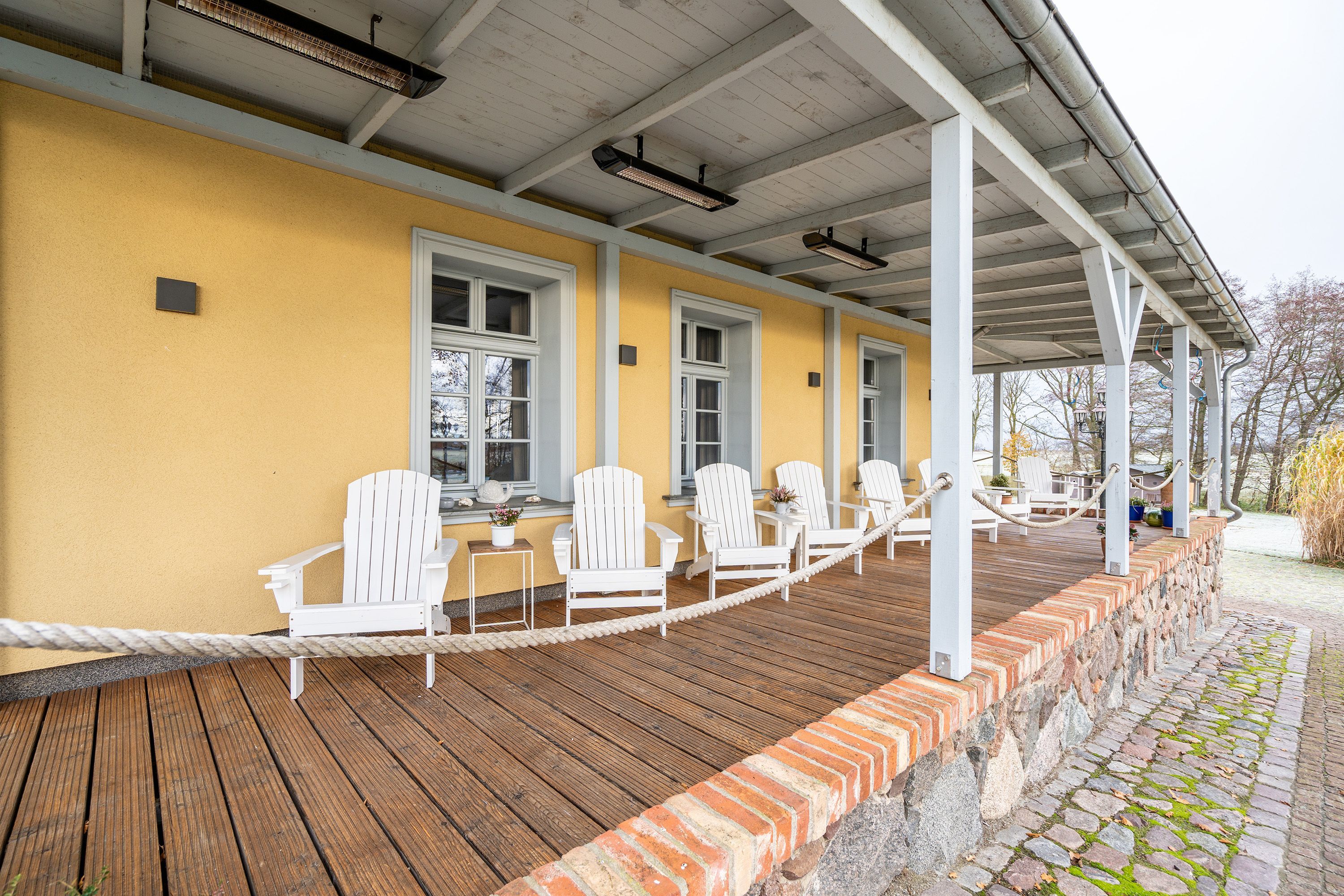 Umgeben von einer wunderschönen und weitläufigen Natur bietet das Anwesen Gut Landleben viel Raum für einen Urlaub in großer Gesellschaft. Egal, ob mit der Familie, Freunden oder Kindern auf dem weitläufigen Grundstück mit einem geräumigen Wohnhaus haben bis zu 10 Personen und 3 Kleinkinder im Alter von bis zu zwei Jahren im Kinderreisebett auf zwei Etagen ausreichend Platz für eine gemeinsame Auszeit. Bei der Ankunft empfängt Sie eine schöne, große und offene Veranda mit Tisch und Stühlen, auf der man laue Sommerabende ausgiebig genießen kann.