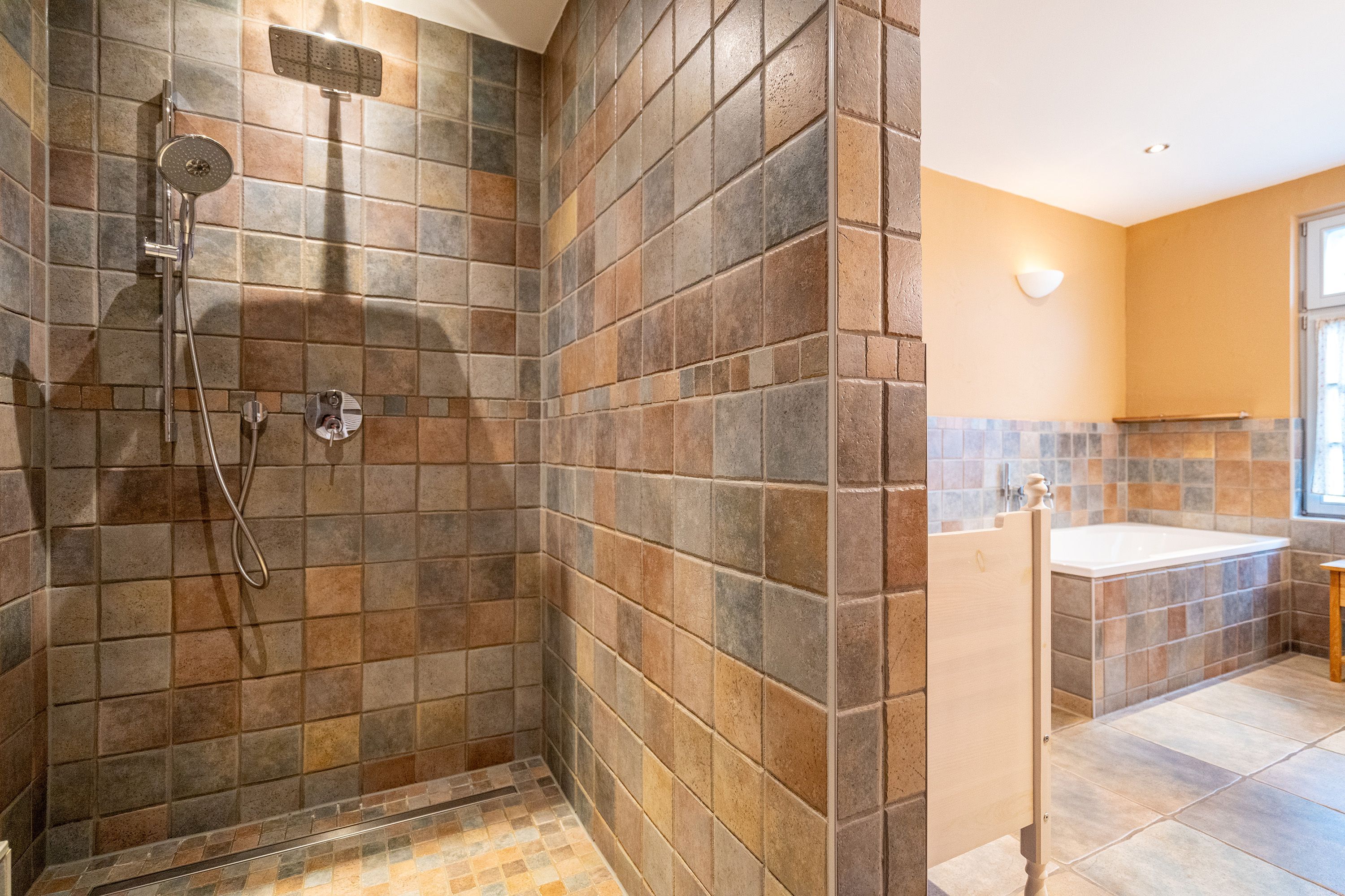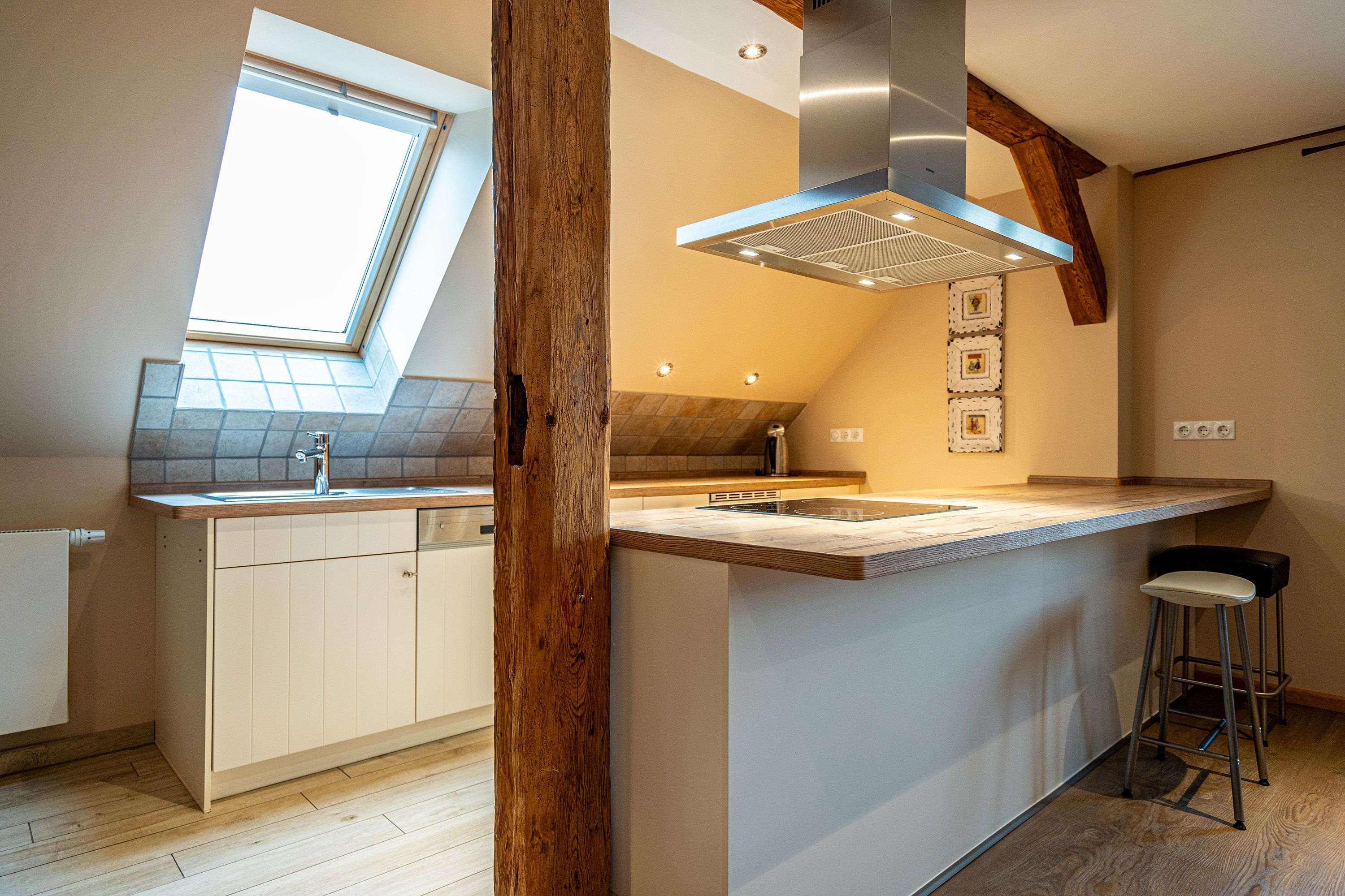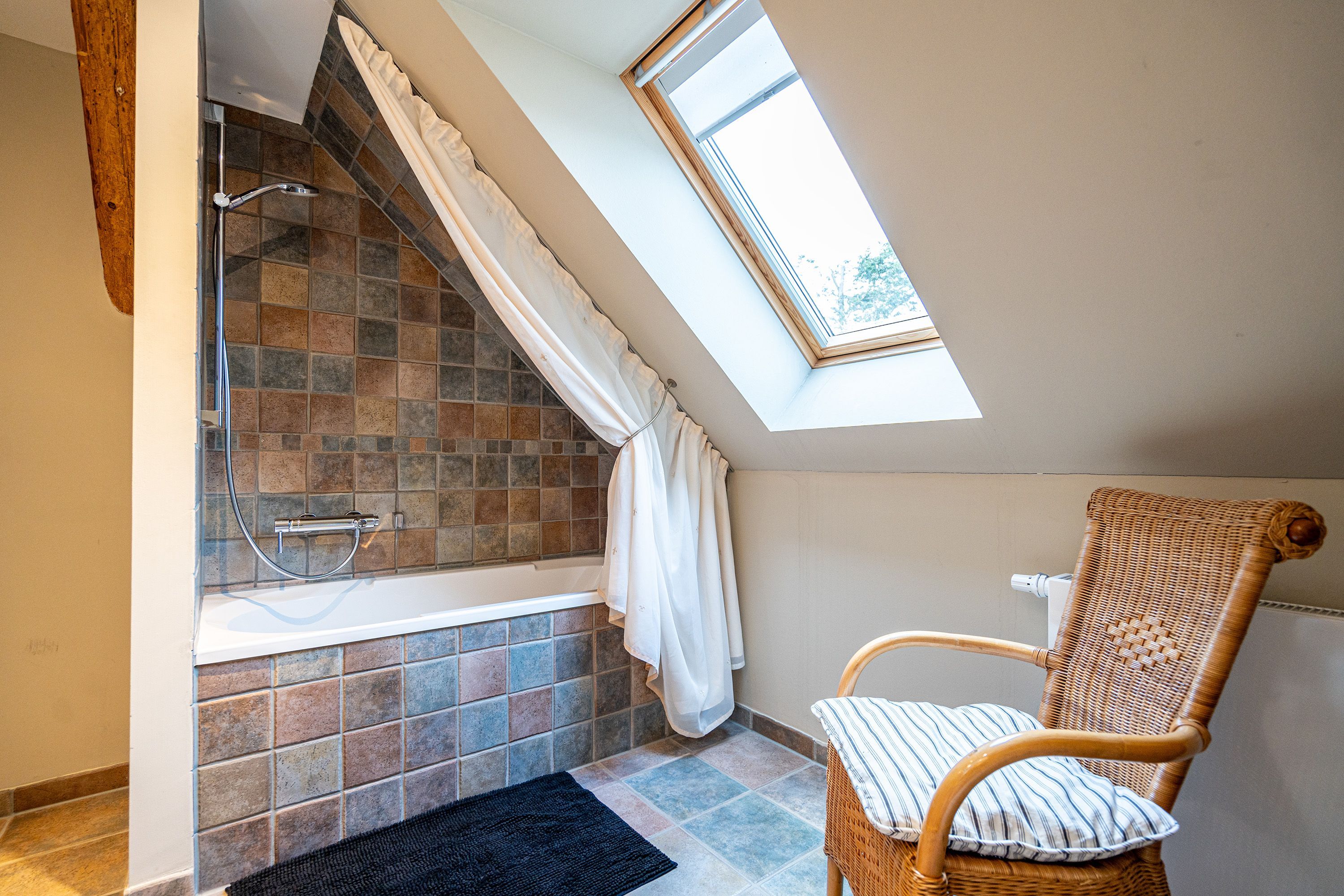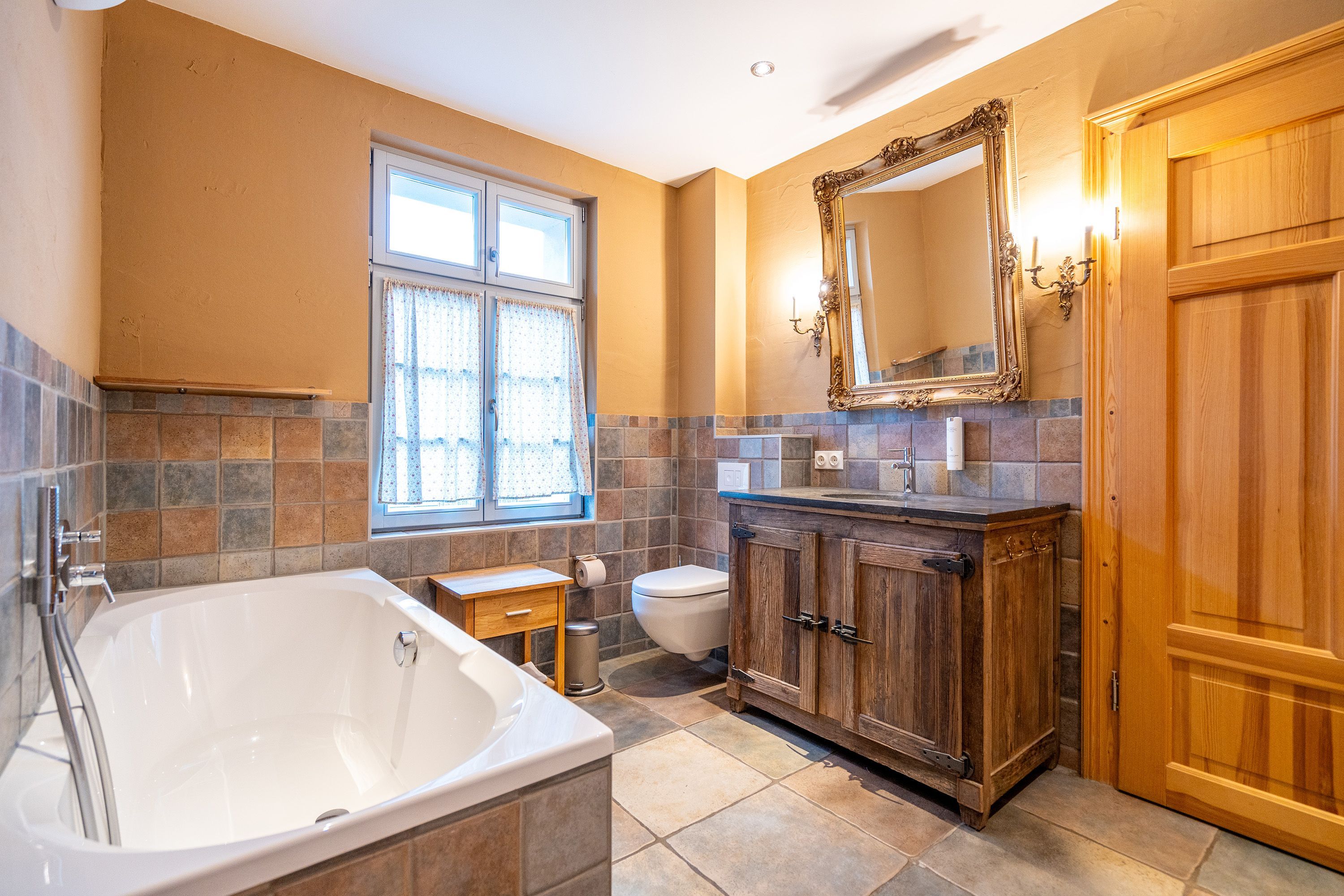 Im Erdgeschoss befinden sich auch zwei Schlafzimmer, eines mit einem großen Doppelboxspringbett (1,80 m x 2,00 m) und einem geräumigen Kleiderschrank, das andere ebenfalls mit einem Doppelboxspringbett (1,80 m x 2,00 m) und einem Zugang zum eigenen Bad mit Dusch-Badewanne, Waschtisch und WC. Ein weiteres Bad mit Dusche und WC befindet sich neben der Küche. Im ausgebauten Dachgeschoss gibt es zwei Schlafzimmer mit komfortablen Doppelbetten (1,80 m x 2,00 m) und jeweils einem eigenen Bad mit Duschbadewanne, Waschtisch und WC. Hier oben befinden sich außerdem zwei weitere Wohnbereiche mit Sofas und einer voll ausgestatteten offenen Küchenzeile (mit Backofen, Mikrowelle und Spülmaschine). Ein Wohnbereich führt zu einem kleinen Séparée mit zwei Einzelbetten (je 0,80 m x 2,20 m), während im zweiten Wohnbereich zusätzlich ein Daybed (als Aufbettung für eine weitere Person möglich) zu finden ist. Alle Betten sind allergikerfreundlich für einen gesunden Schlaf.?