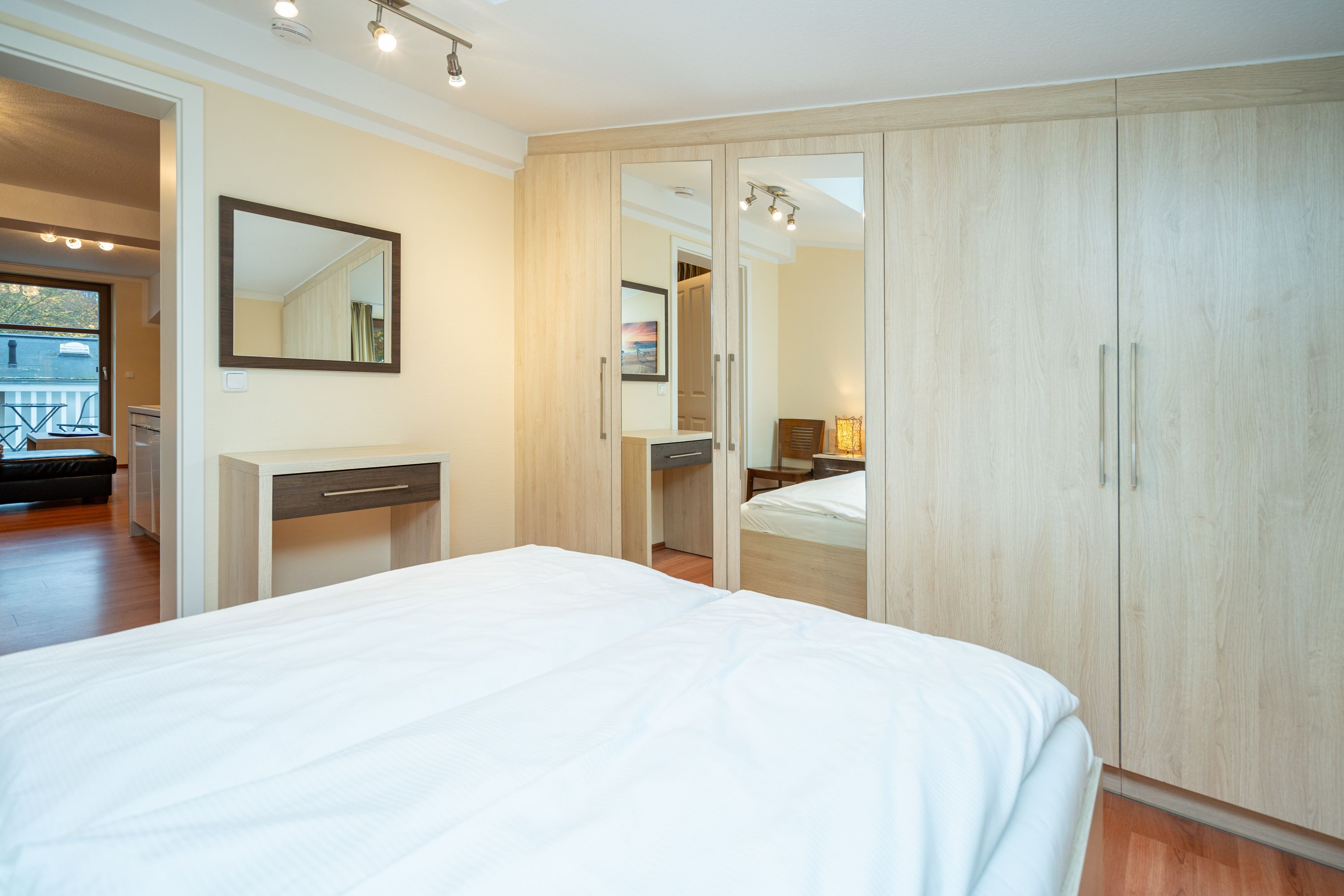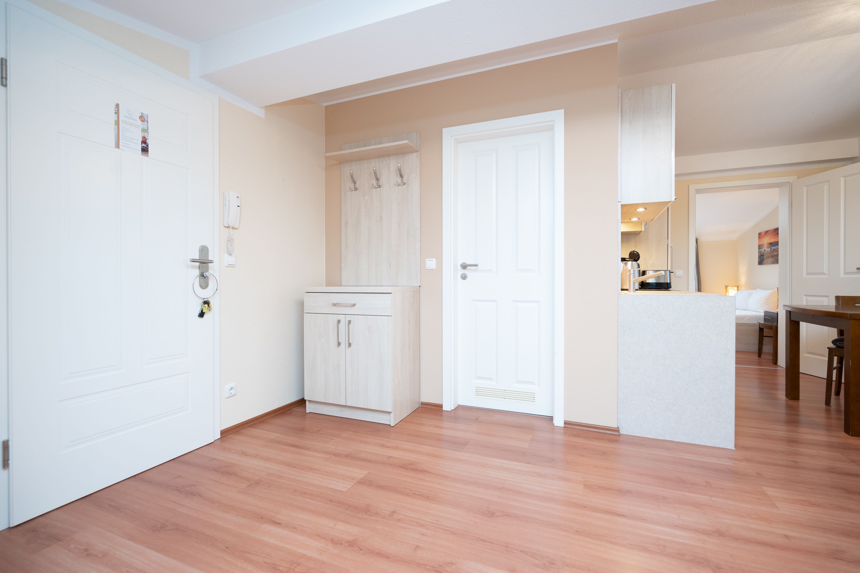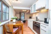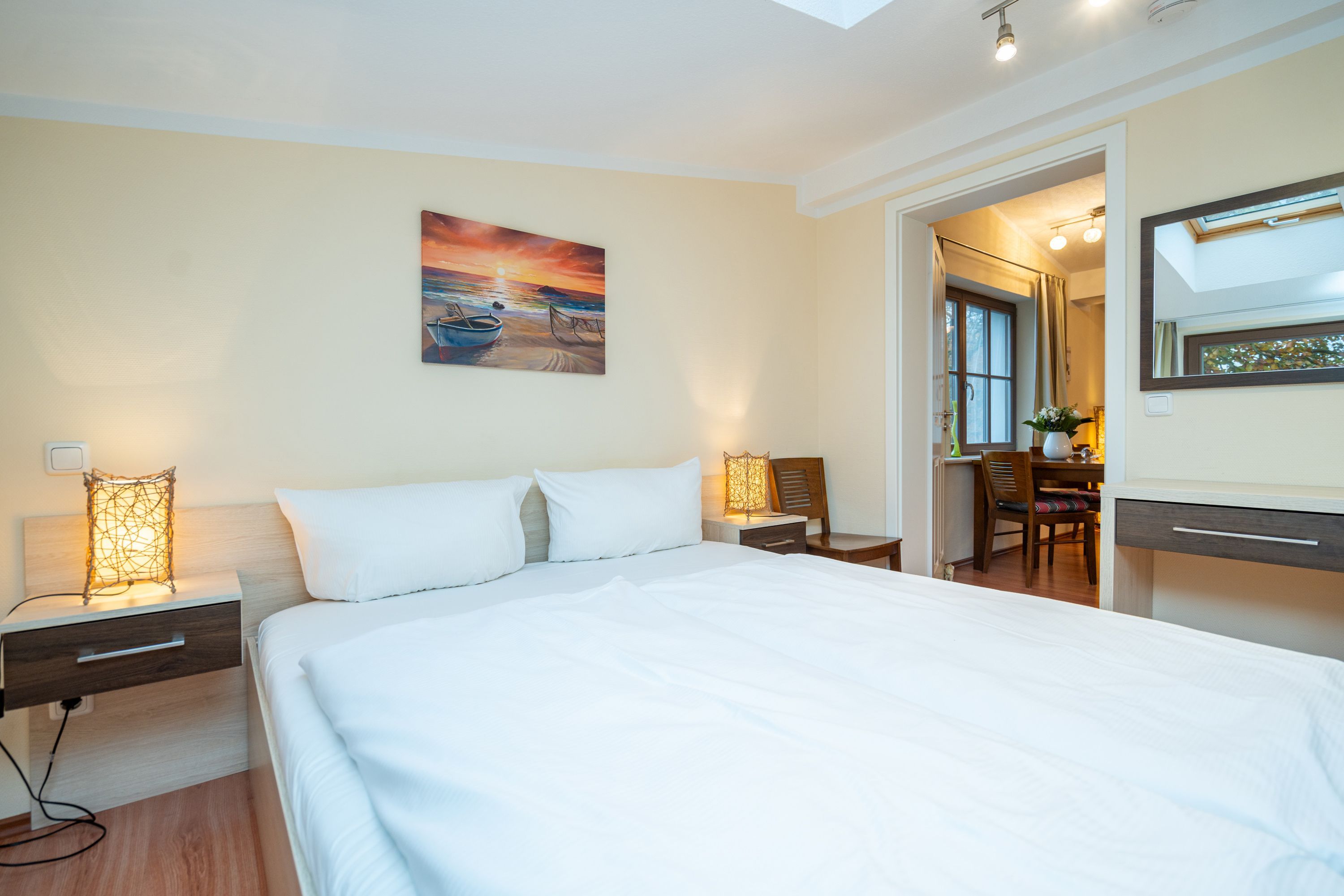 Klein, aber fein! Wohlfühlen von der ersten Minute an, das verspricht die Ferienwohnung 09 in der Villa Waldschloss für 2 Personen. Die helle, geschmackvolle Einrichtung wird Sie genauso begeistern, wie die Lage dieses Domizils. Es befindet sich im Dachgeschoss und ist nach Süden ausgerichtet, so dass Sie die Mittags- und Abendsonne auf Ihrem Balkon genießen können. An den Wohnbereich mit gemütlicher Sitzgruppe, schließt sich die offene, gut ausgestattete Küchenzeile mit Essplatz an. Nach einem erkundungsreichen Tag bietet das Schlafzimmer mit Doppelbett und großem Einbauschrank eine erholsame Nacht. Ihr Bad ist mit einer Dusche ausgestattet. Das WLAN-Netz im Haus kann kostenfrei genutzt werden.