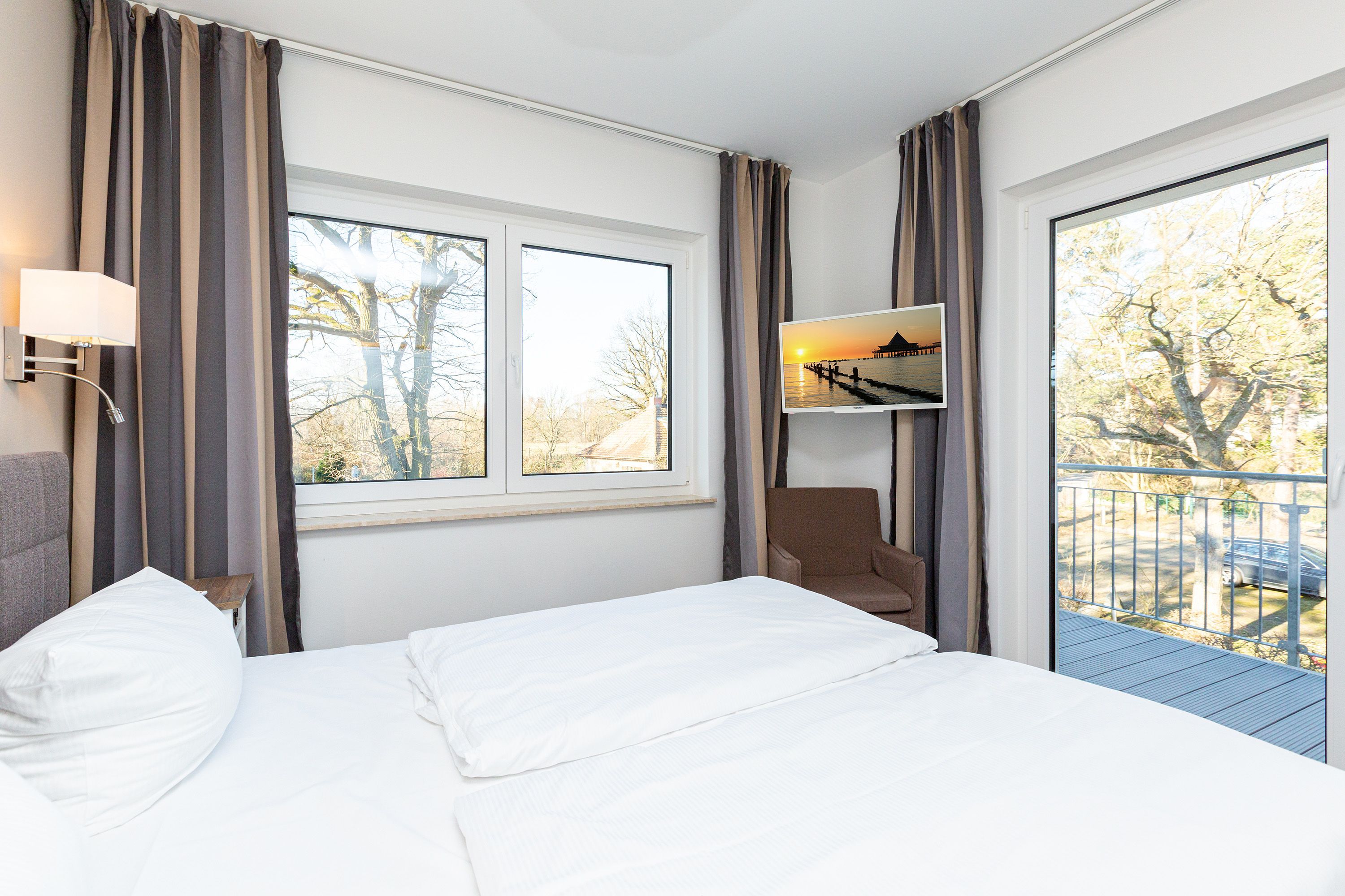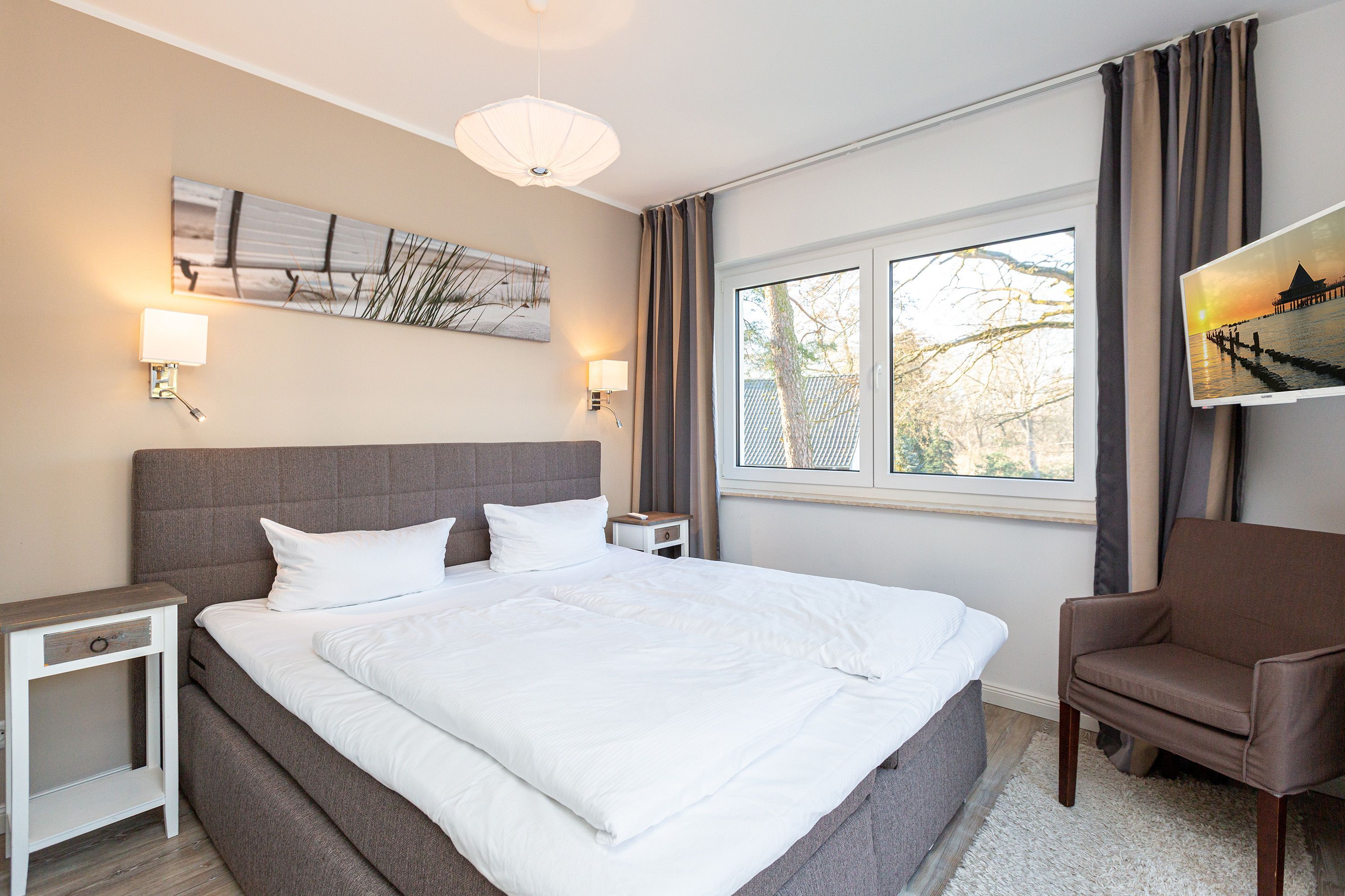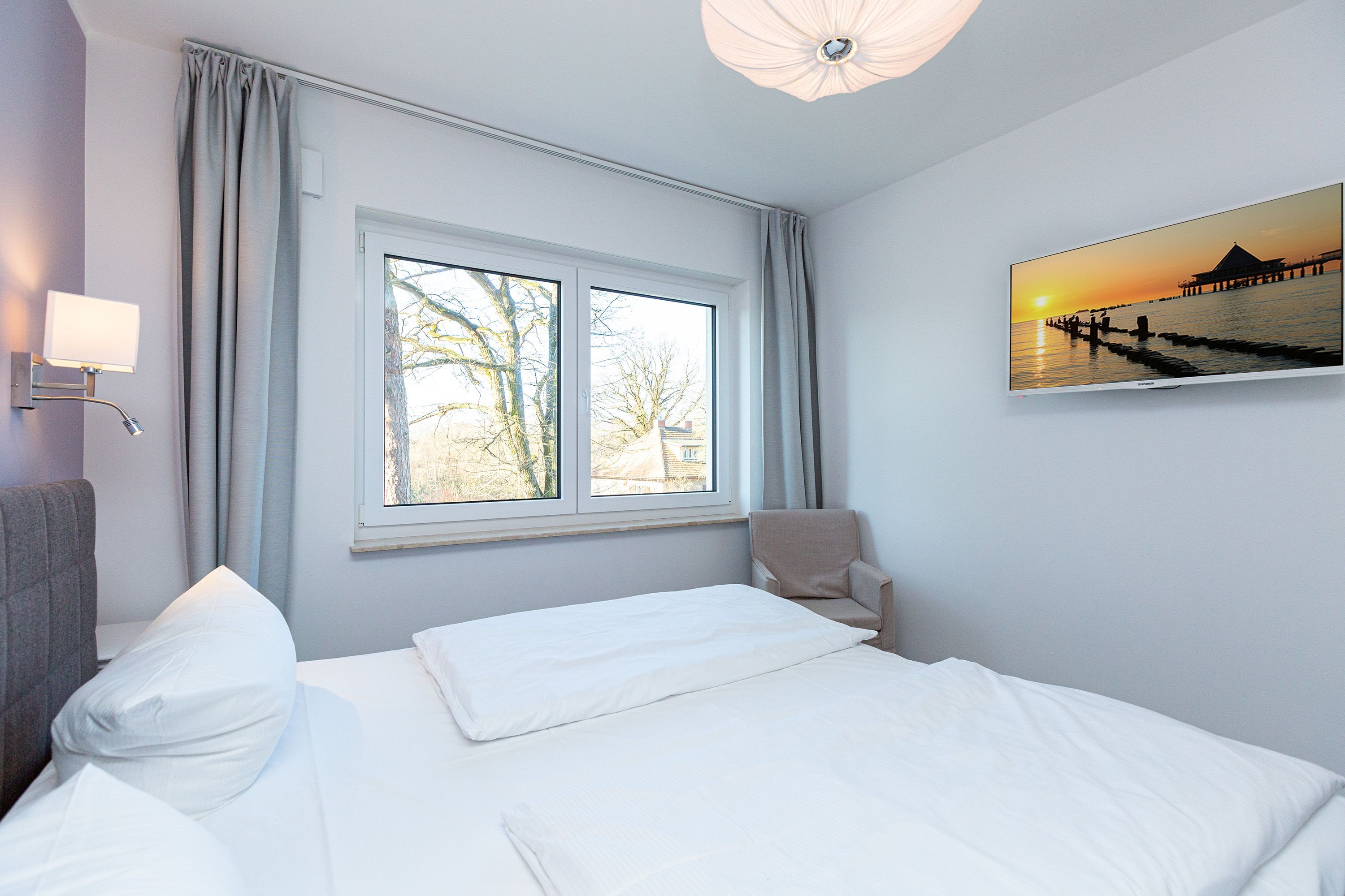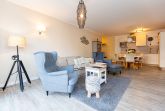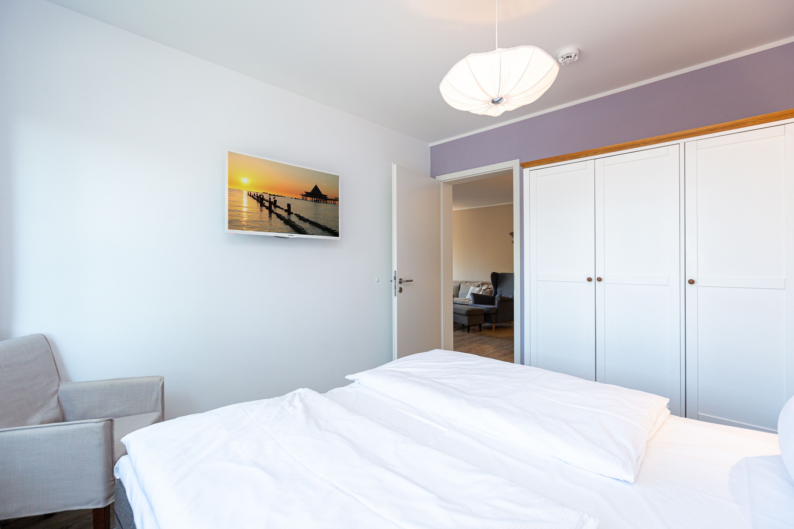 Erholen Sie sich in dieser, im Landhausstil gestalteten, 3-Raum-Ferienwohnung (67 qm) für 2 bis 4 Personen und ein Kleinkind (bis 2 Jahre im Kinderreisebett). Der Eingangsbereich mit Flurgarderobe geht über in die offene, komplett ausgestattete Küche mit rundem, schönen Essplatz. Hier schließt sich der gemütliche Wohnbereich an. Die bequeme Couch und der Flat-TV sind für entspannte TV-Abende bestens geeignet. Ein moderner Elektrokamin sorgt per Knopfdruck für eine kuschlige Wohlfühlatmosphäre. Zwei Schlafzimmer mit bequemen Doppelboxspringbetten (1,80m x 2,00m), Flat-TV (1x mit integriertem DVD-Player) und jeweils geräumigen Schrank sorgen für erholsamen Schlaf. Auf dem Süd-Westbalkon (Zugang vom Wohnbereich und aus einem Schlafzimmer) genießen Sie in den Nachmittags- und Abendstunden die Usedomer Sonne. Ein großes Duschbad mit WC ergänzt das Domizil. Für Ihren Komfort sind die Betten bei der Anreise bezogen und Handtücher liegen bereit. Das WLAN-Netz im Haus kann kostenfrei genutzt werden. Ein PKW-Stellplatz steht in der in der Tiefgarage (max. Einfahrtshöhe 1,93 m) zur Verfügung.