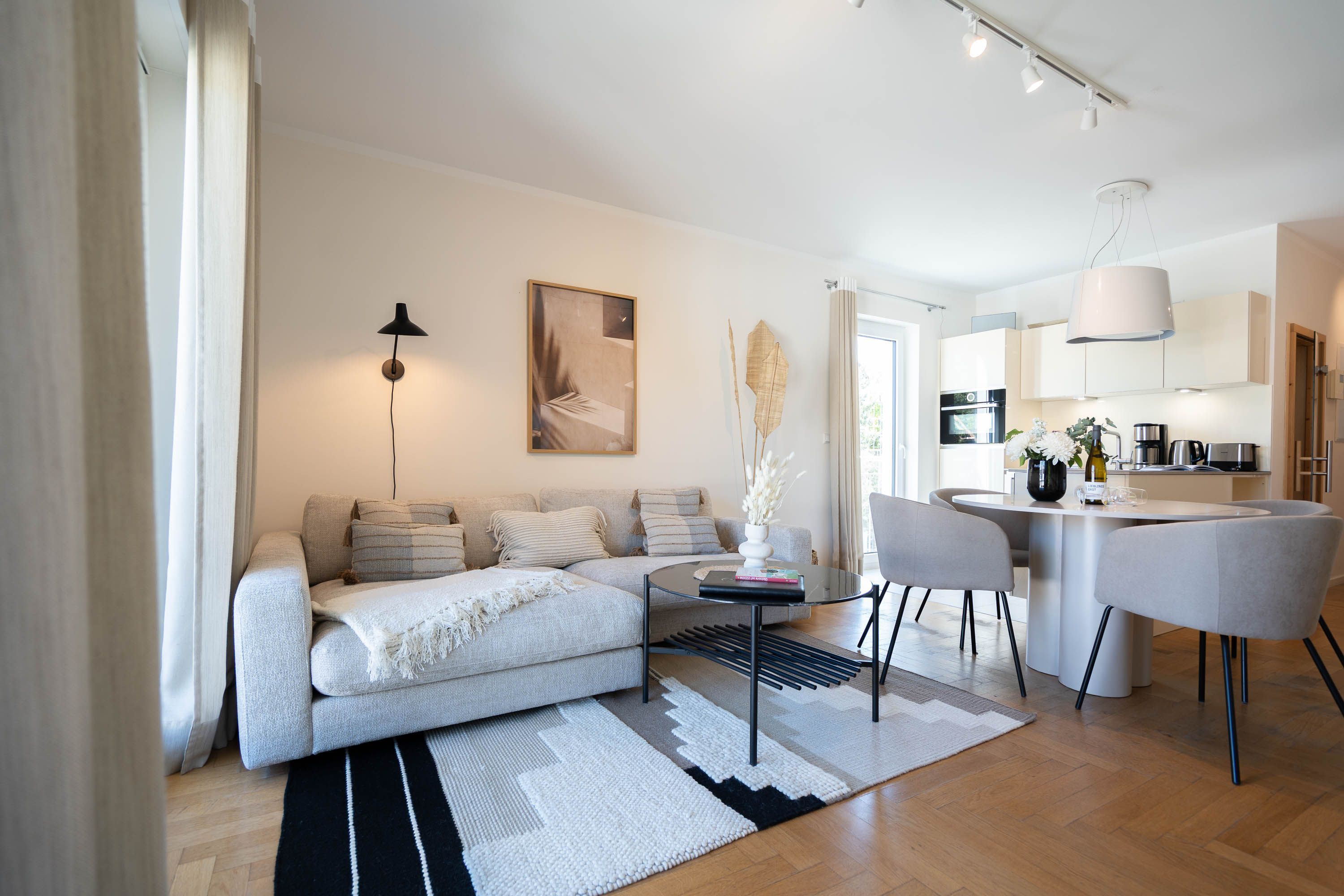 Ein Domizil für Anspruchsvolle und Genießer! Freuen Sie sich auf ein wunderschönes Urlaubsdomizil, denn die Dünenresidenz Heringsdorf verbindet den zeitgemäßen Komfort eines Neubaus mit einer strandnahen Lage. Eine Tiefgarage (max. Einfahrtshöhe 1,93 m) und ein Aufzug im Haus sind hier selbstverständlich. Helle, geschmackvoll designte 2- und 3-Raum-Appartements mit Balkonen oder Terrassen laden zum Erholen ein. Die Dachgeschosswohnungen überzeugen mit großzügigen Dachterrassen und schönen Ausblicken. Aus einigen Wohnungen kann man sogar durch die Dünenbepflanzung das Meer schimmern sehen. Als besonderes Highlight verfügen die Wohnungen über eine Sauna und/oder einen Elektrokamin, der per Knopfdruck Gemütlichkeit zaubert. Außerdem sind alle Appartements mit Fußbodenheizung und elektrische Rollläden ausgestattet.