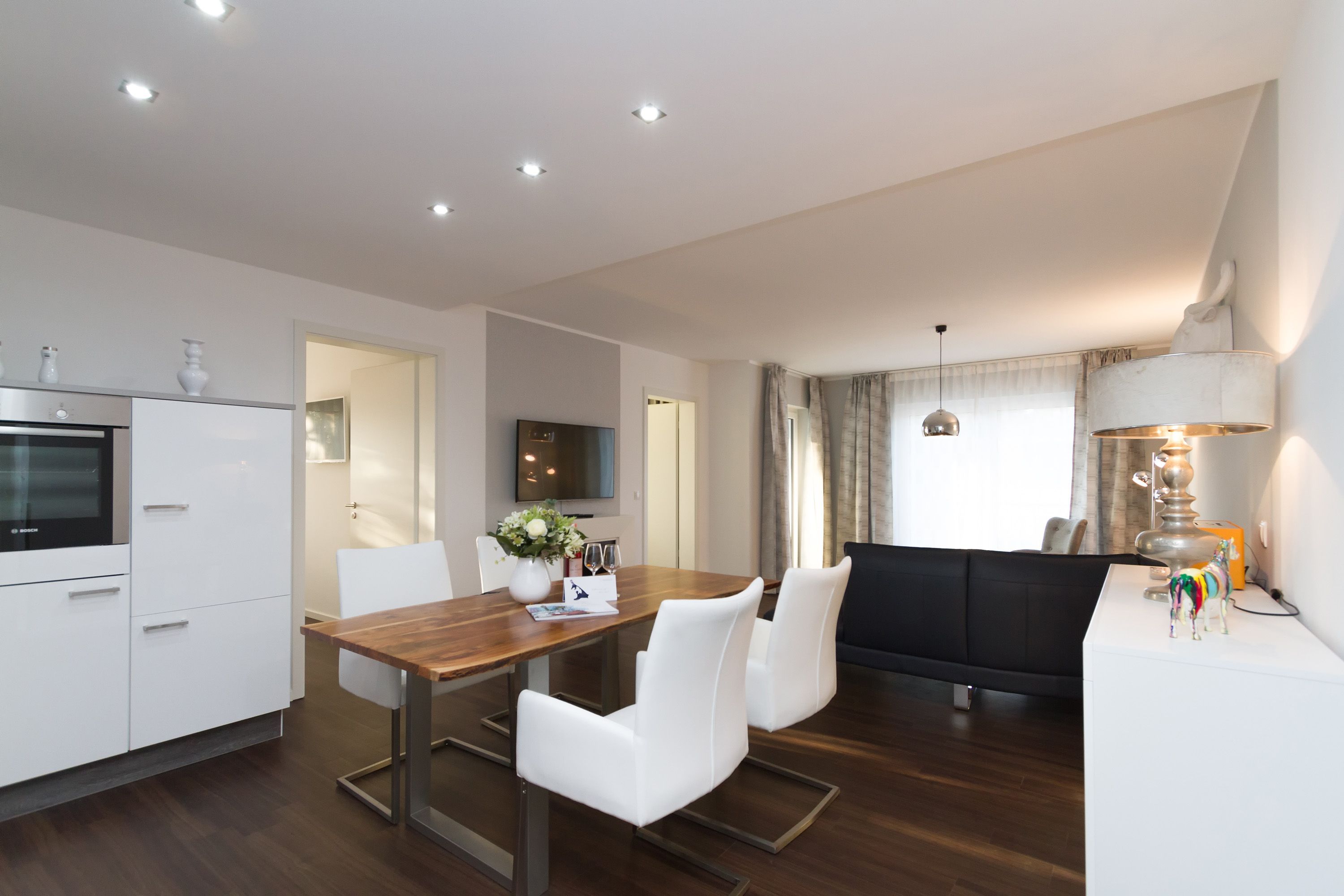 Eine frische & moderne Urlaubswelt, die durch ein geschmackvolles Design und die komfortable Ausstattung überzeugt, erwartet Sie im Appartement 14. In dem großzügigen 3-Raum-Appartement (68 qm), das von einem Inneneinrichter gestaltet wurde, finden 4 Personen und ein Kleinkind (im Babyreisebett) Platz zum Erholen. Der Eingangsbereich mit Flurgarderobe geht über in die offene, komplett ausgestattete Küche mit großem, schönen Essplatz. Hier schließt sich der gemütliche Wohnbereich an. Die loungige Couch ist für entspannte TV-Abende bestens geeignet, denn ein Flat-TV und eine Musikanlage mit Ipod-Docking-Station dürfen hier natürlich nicht fehlen. Ein moderner Elektrokamin sorgt per Knopfdruck für eine kuschlige Wohlfühlatmosphäre. Zwei Schlafzimmer mit bequemen Doppelboxspringbetten (1,80m x 2,00m), Flat-TV (1x mit DVD Player) und jeweils großem Schrank sorgen für erholsamen Schlaf. Auf dem Süd-Westbalkon (Zugang vom Wohnbereich und aus einem Schlafzimmer) genießen Sie in den Nachmittags- und Abendstunden die Usedomer Sonne. Ein großes Duschbad mit WC ergänzt das Domizil. Für Ihren Komfort sind die Betten bei der Anreise bezogen und Handtücher liegen bereit. Für kleine Gäste kann ein Kinderreisebett und ein Kinderhochstuhl ( gegen Gebühr) bestellt werden. Ein Pkw-Stellplatz steht in der Tiefgarage (max. Einfahrtshöhe 1,93 m) zur Verfügung. Das WAN-Netz kann kostenfrei genutzt werden.