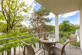 Ein Domizil für Anspruchsvolle und Genießer! Freuen Sie sich auf ein wunderschönes Urlaubsdomizil, denn die Dünenresidenz Heringsdorf verbindet den zeitgemäßen Komfort eines Neubaus mit einer strandnahen Lage. Eine Tiefgarage (max. Einfahrtshöhe 1,93 m) und ein Aufzug im Haus sind hier selbstverständlich. Helle, geschmackvoll designte 2- und 3-Raum-Appartements mit Balkonen oder Terrassen laden zum Erholen ein. Die Dachgeschosswohnungen überzeugen mit großzügigen Dachterrassen und schönen Ausblicken. Aus einigen Wohnungen kann man sogar durch die Dünenbepflanzung das Meer schimmern sehen. Als besonderes Highlight verfügen die Wohnungen über eine Sauna und/oder einen Elektrokamin, der per Knopfdruck Gemütlichkeit zaubert. Außerdem sind alle Appartements mit Fußbodenheizung und elektrische Rolläden ausgestattet.