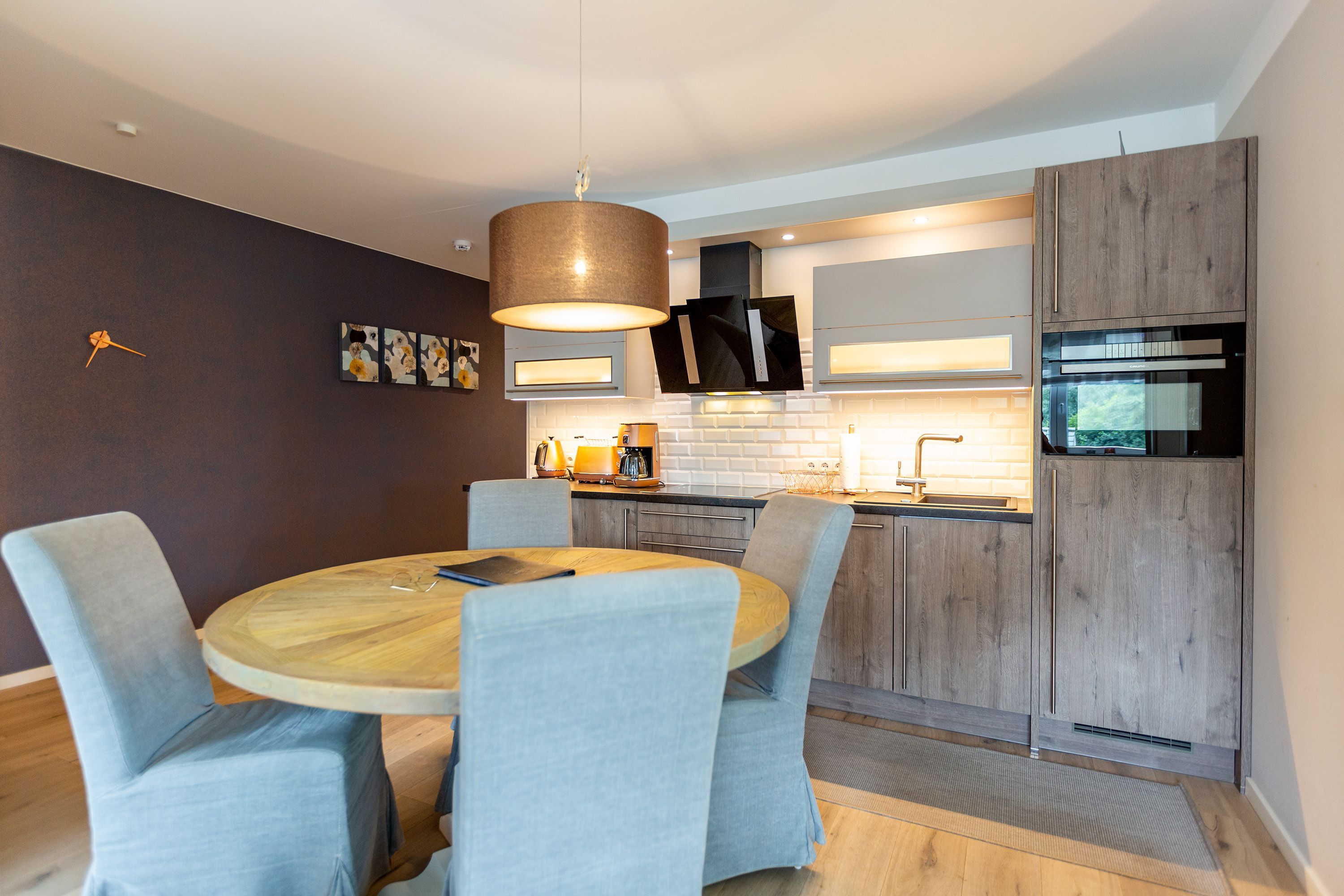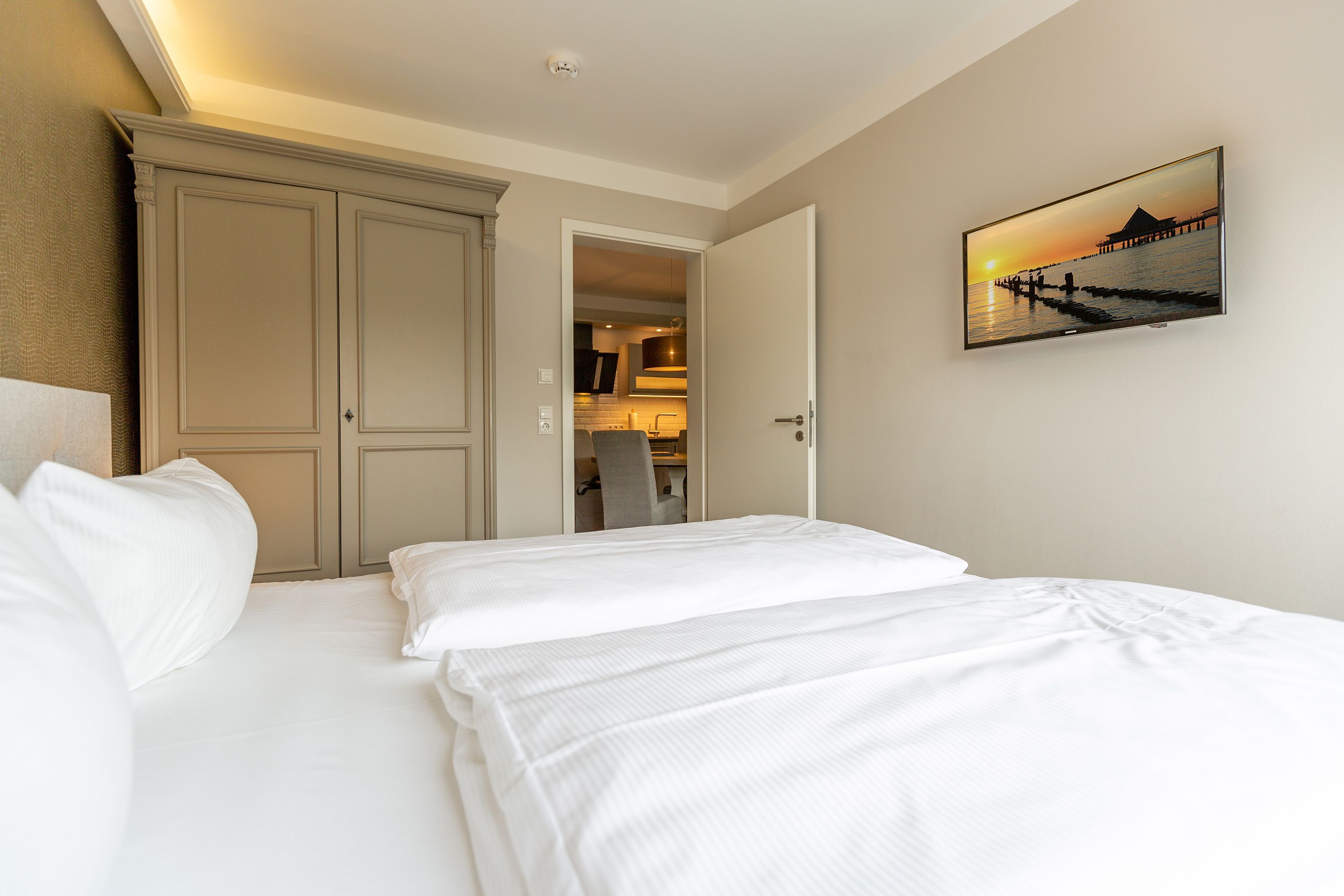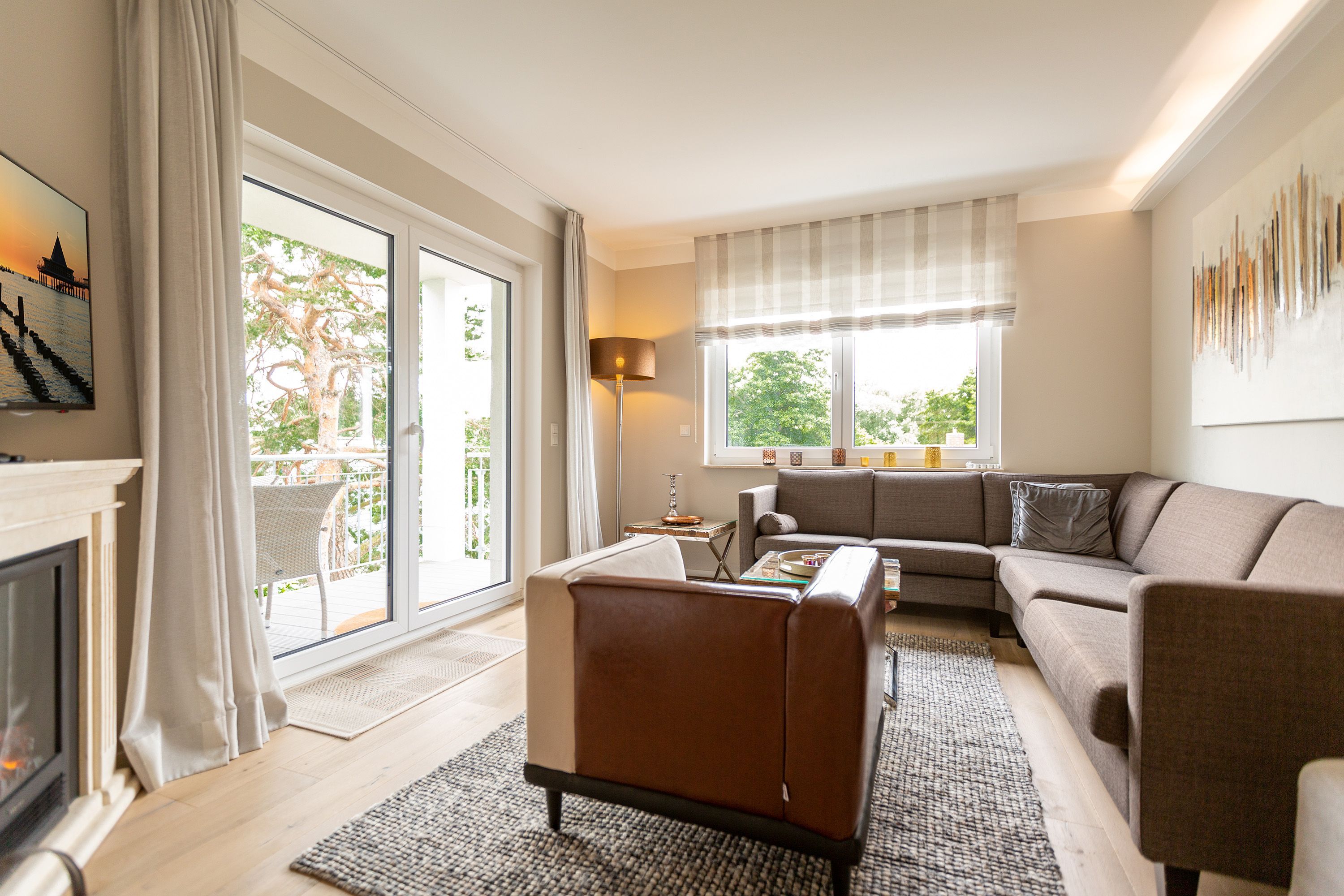 Sie lieben das Besondere? Sie schätzen Design und Geschmack? Willkommen im Appartement 17! Freuen Sie sich auf ein von Innenarchitektenhand designtes Wohnkonzept, dass überzeugt und begeistert. Geschmackvolles Design, wertige Stoffe und abgestimmte Farben sorgen für Hochwertigkeit, Stil und Behaglichkeit. Ein ideales Urlaubziel für bis zu 4 Personen. Schon beim Eintreten empfängt Sie der große, stylische Eingangsbereich. Zentrales Herz der Wohnung ist die moderne, komplett ausgestattete Küche (u.a. mit Kapselmaschine von Bosch für Tassimo Kapseln) mit tollem Essplatz, der nicht nur perfekt zum Dinieren, sondern auch ideal als lebendige Kommunikationsinsel dient. Der helle, lichtdurchflutete Wohnbereich ist loungig, cool und gemütlich zugleich. Auf Ihrer stylischen Sofainsel lässt es sich herrlich lümmeln und relaxen. Ein moderner Elektrokamin (mit Heizmöglichkeit) schafft per Knopfdruck eine kuschlige Wohlfühlatmosphäre. Auch die weitere technische Ausstattung des Appartements ist ebenfalls sehr überzeugend: insgesamt 3 Flat-TV's (Wohnzimmer sowie jedes Schlafzimmer) sowie Mini-Hifianlage mit iPod-Dock verstehen sich von selbst. Beide, sehr geschmackvoll gestaltete Schlafzimmer empfangen Sie mit komfortablen Doppelboxspringbetten (1,80m x 2,00m) und sorgen für entspannte Nächte, von einem haben Sie einen seitlichen Blick zur Ostsee. Die Betten sind bei Anreise bezogen und Handtücher liegen bereit (Erstausstattung). Das schicke Wellnessbad bietet neben der großen Dusche eine moderne Sauna, ein besonderes Highlight nicht nur in der Nebensaison. Der Südbalkon, selbstverständlich mit wertigen Gartenmöbel ausgestattet, bietet schöne Ausblicke auf die Umgebung der Maxim-Gorki-Straße. Auch die Ostsee schimmert durch die Kiefern der Dünen. Sie haben Ihr perfektes Design-Domizil ganz nahe am Meer gefunden! Ein PKW-Stellplatz steht in der Tiefgarage zur Verfügung (max. Einfahrtshöhe 1,93 m). Das WLAN-Netz ist kostenfrei nutzbar. Ihre Fahrräder können Sie gern im wohnungseigenen Kellerraum abstellen.