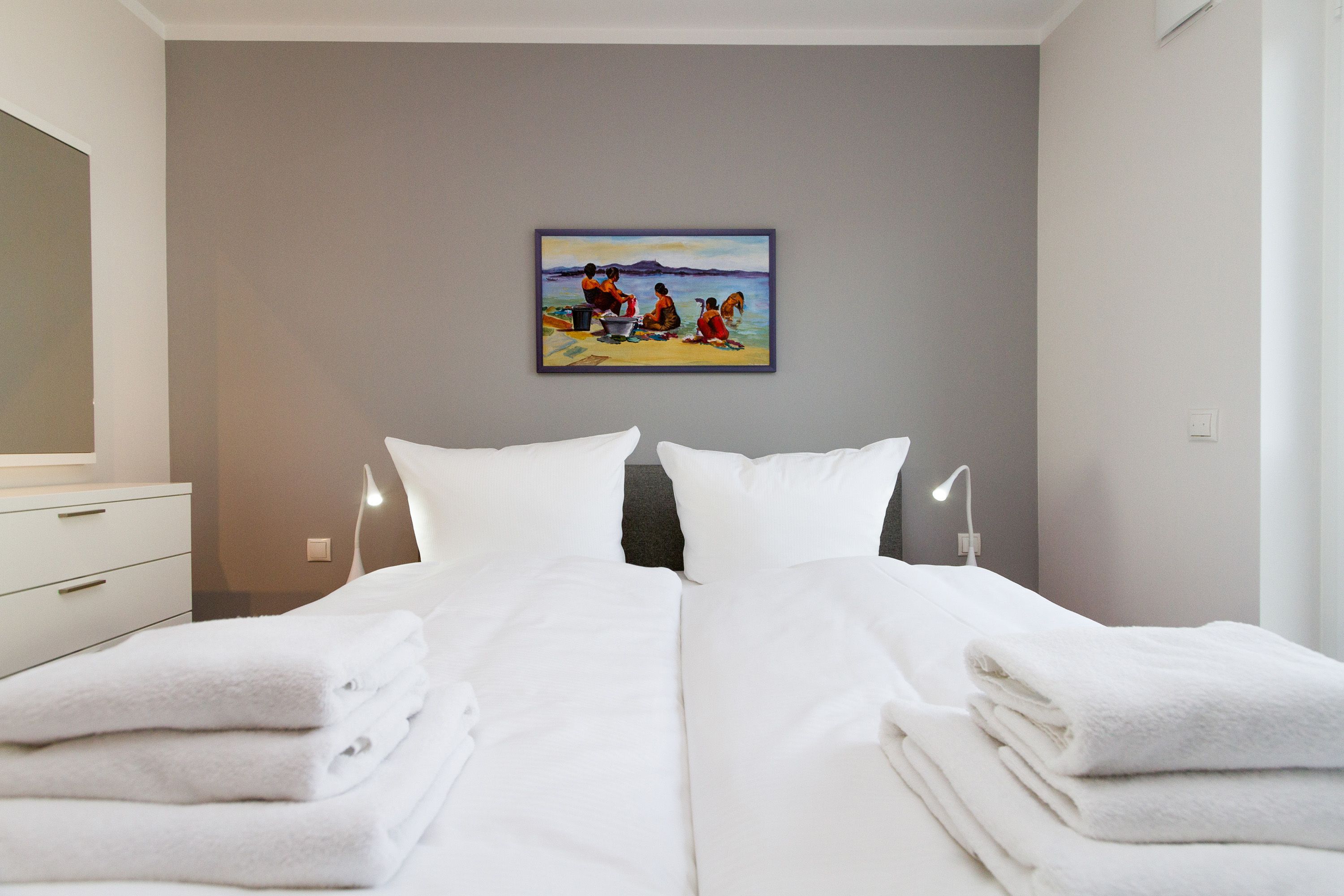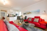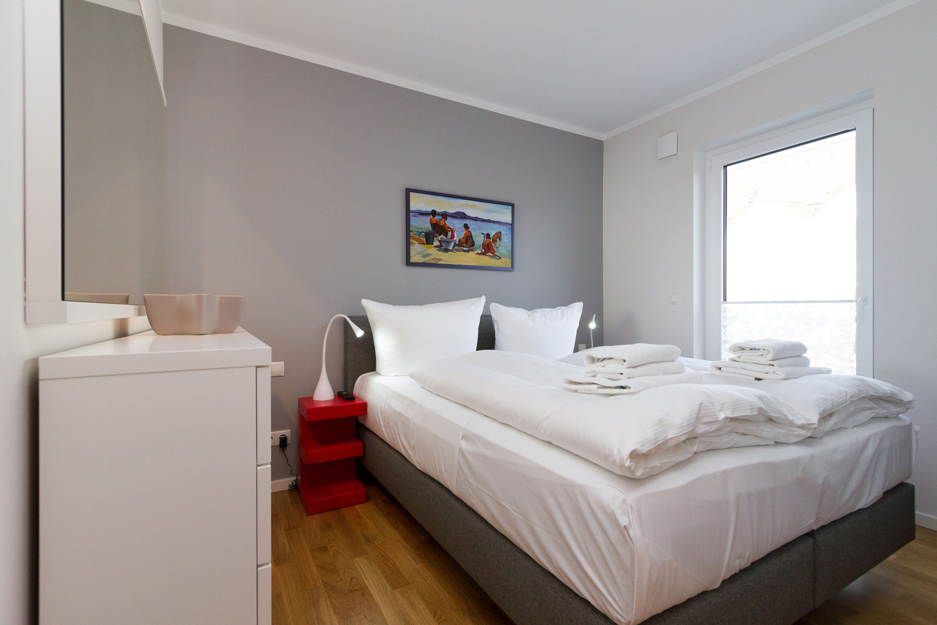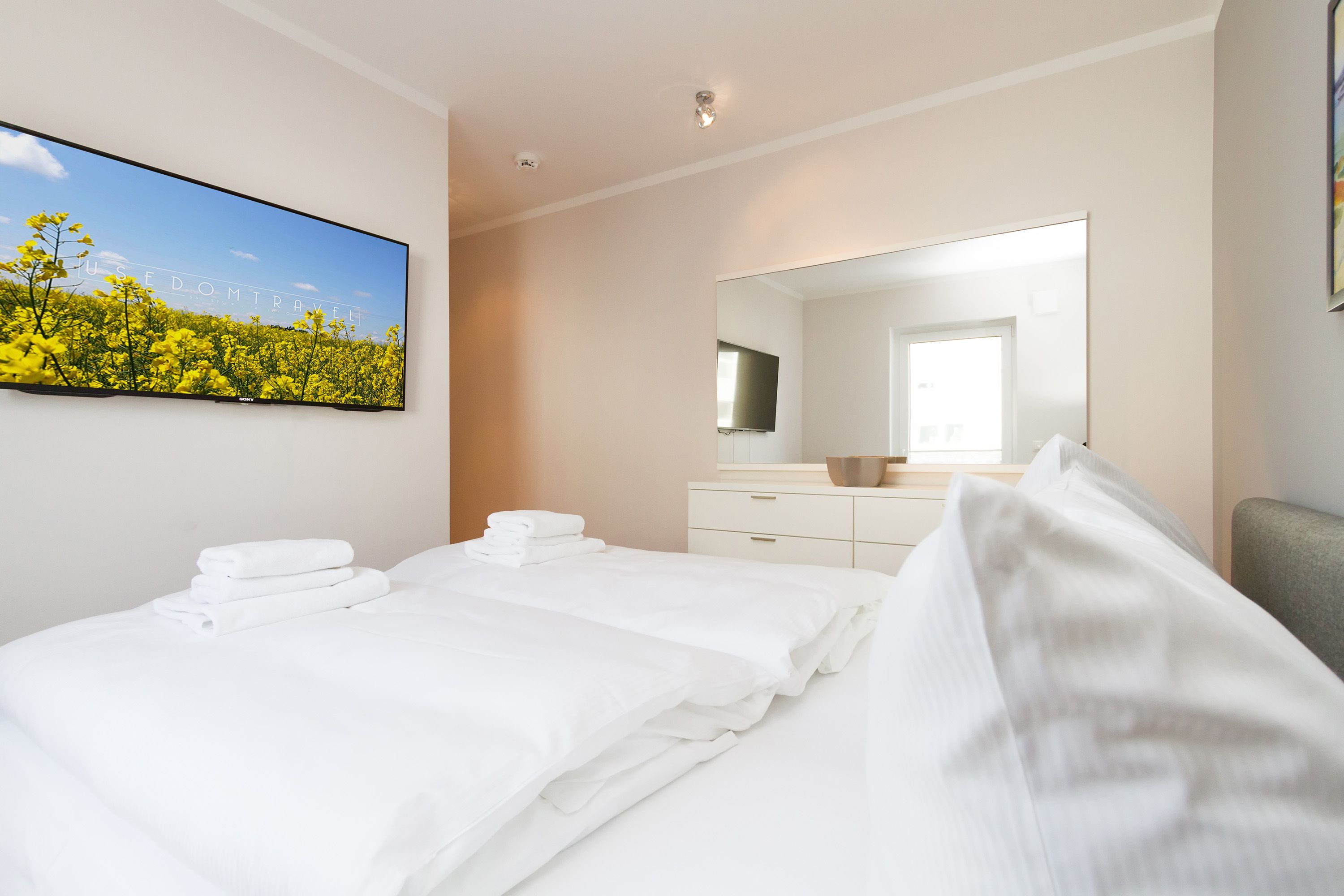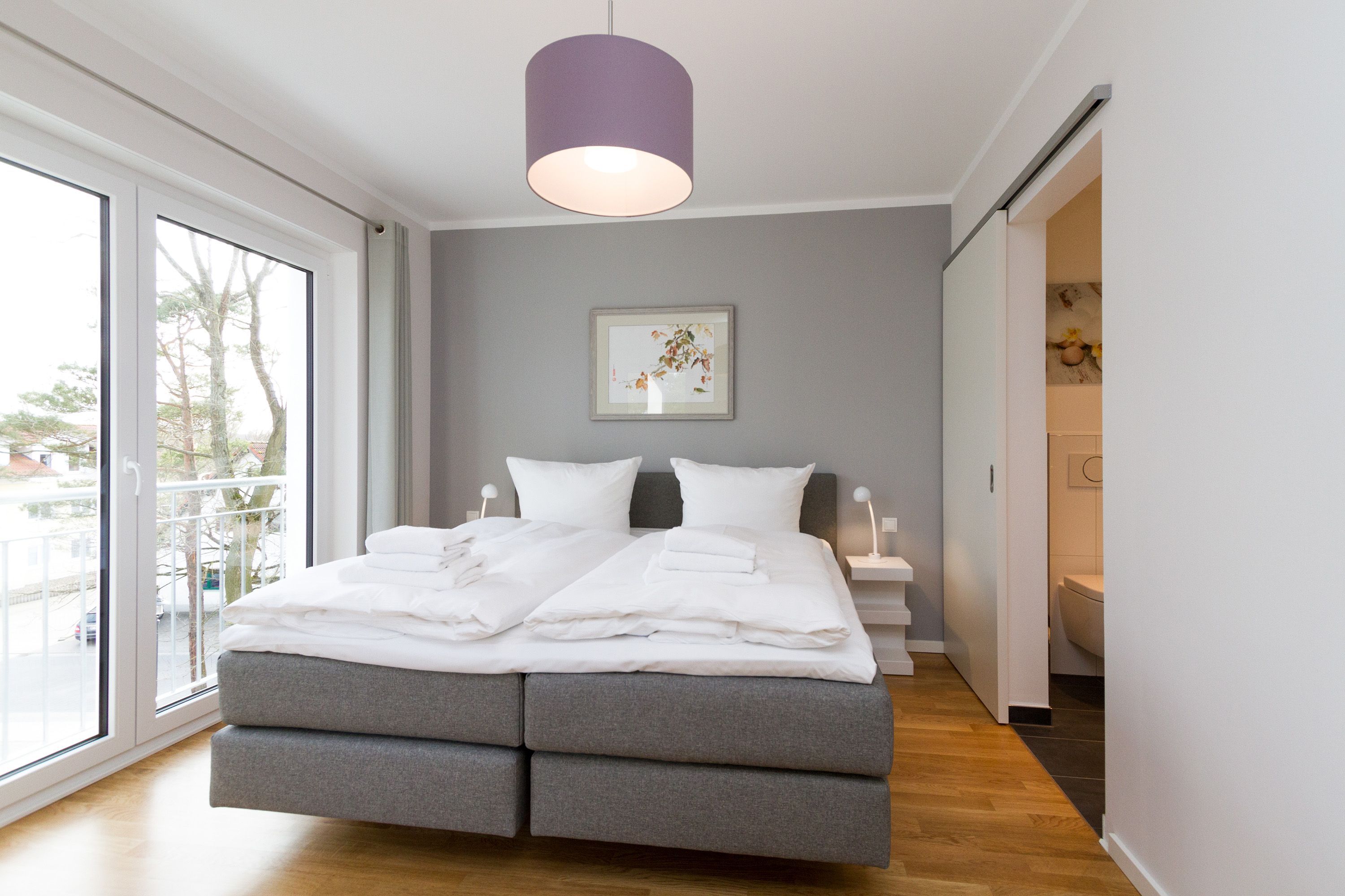 Klare Linie und kräftige Farben, ausgesuchte Materialien und ein modernes Design überzeugen im Appartement 18. Eintreten und Wohlfühlen ist hier die Devise, denn der Wohlfühlfaktor kommt hier nicht zu kurz! Die 3-Raum-Ferienwohnung (62 qm) für 4 Personen inklusive Kleinkind befindet sich im 2. Obergeschoss der Dünenresidenz. Schon beim Eintreten offeriert sich der helle Wohnbereich, ausgestattet mit zwei modernen Ledersofas und Flat-TV. Die angrenzende, offene Küche mit Essplatz fügt sich harmonisch ein und ist natürlich komplett ausgestattet. Zwei Schlafzimmer mit jeweils eigenem Bad bieten einen idealen Rückzugsort. Das erste Schlafzimmer verfügt über ein komfortables Doppelboxspringbett (1,80m x 2,00m), ein kleines Duschbad und Zugang zum Balkon. Das zweite Schlafzimmer wartet mit einem bequemen Doppelboxspringbett (1,60m x 2,00m) und Flat-TV auf, hier ist eine eigene Sauna im Duschbad integriert. Die Usedomer Sonne genießen Sie schon beim Frühstück auf dem Ostbalkon, ausgestattet mit Gartenmöbeln. Hier kann man bei ein bisschen Meerblick wunderbar Relaxen. Für Ihren Komfort sind die Betten bei der Anreise bezogen und Handtücher liegen bereit. Ein Pkw-Stellplatz steht in der Tiefgarage zur Verfügung (max. Einfahrtshöhe 1,93 m). Das Wlan-Netz kann kostenlos genutzt werden.