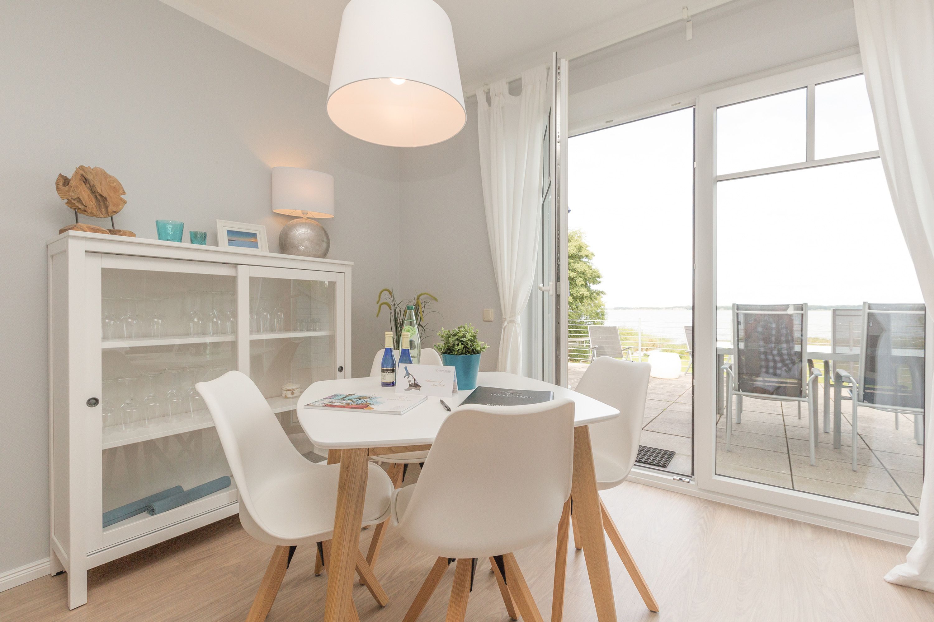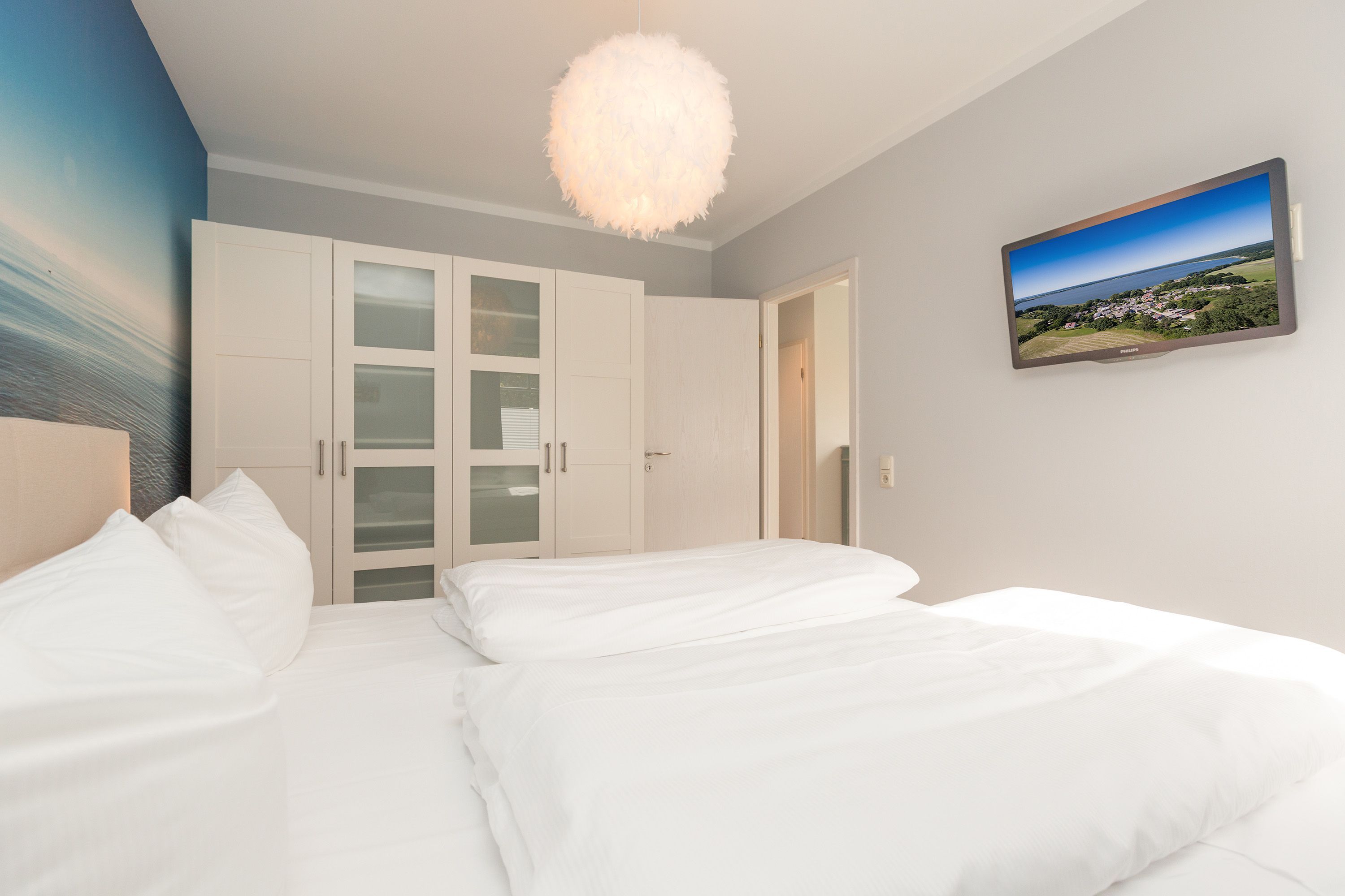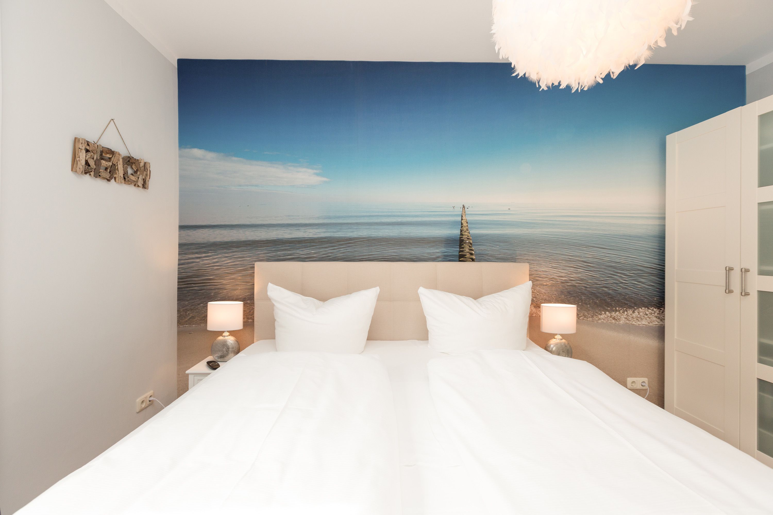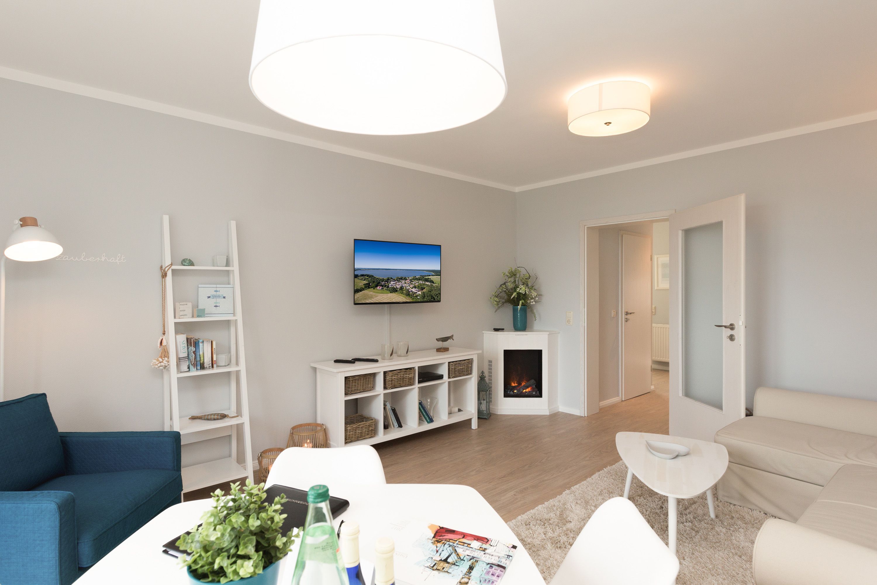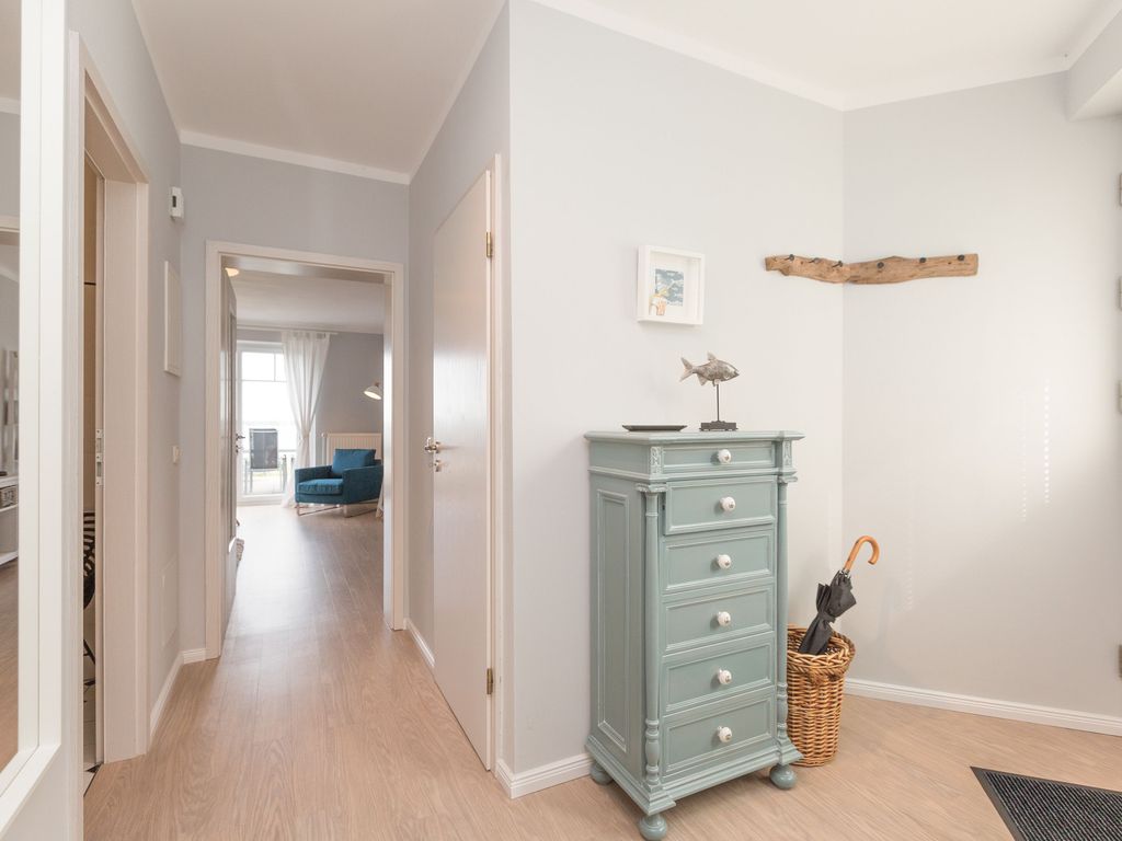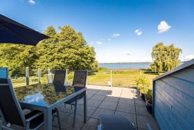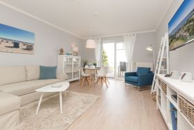 Für Seeblickliebhaber und Ruhesuchende, für Naturbegeisterte und Schönerwohnenwoller! Unser neues Domizil im Haus am Schmollensee in Sellin, einem kleinen Ortsteil vom Seebad Bansin, wird Sie begeistern. Frisch renoviert, empfängt die moderne 2-Raum-Ferienwohnung (50 qm) für 2 Personen seine Gäste. Durch die Hanglage erreichen Sie Ihr Appartement fast stufenlos, genießen aber zum See hin den wunderschönen, erhöhten Ausblick. Der freie Blick auf den Schmollensee ist einfach fantastisch! Doch auch innen punktet Ihr Domizil mit moderner, geschmackvoller Einrichtung. Das helle Wohnzimmer mit gemütlicher Sitzgruppe wird ergänzt durch den schönen Essplatz, der schon beim morgendlichen Frühstück mit tollem Seeblick aufwartet. Ein Elektrokamin zaubert per Knopfdruck ein kleines Feuer - kuscheln Sie sich ein und genießen Sie Ihr modernes Entertainment Programm mit Flat-TV und Blue-Ray-Player. Das Schlafzimmer ist mit einem komfortablen Doppelbett (1,80 x 2,00 m) und zusätzlichem Flat-TV eingerichtet. Die kleine, aber feine Küche ist komplett ausgestattet. Das moderne Bad verfügt über eine Dusche und ein WC. Ein weiteres Highlight der Wohnung ist die riesige Süd-Westterrasse mit Sitzgruppe und Sonnenliegen. Hier ist ein idealer Platz zum Relaxen oder um die heimischen Seeadler zu bewundern. Selbstverständlich sind die Betten bei der Anreise bezogen und Handtücher liegen bereit. Für kleine Gäste steht ein Kinderreisebett (bitte eigene Bettwäsche mitbringen) und ein Kinderhochstuhl zur Verfügung. An alle Hunde-Liebhaber: hier sind Sie mit Ihrem geliebten Vierbeiner sehr herzlich willkommen!