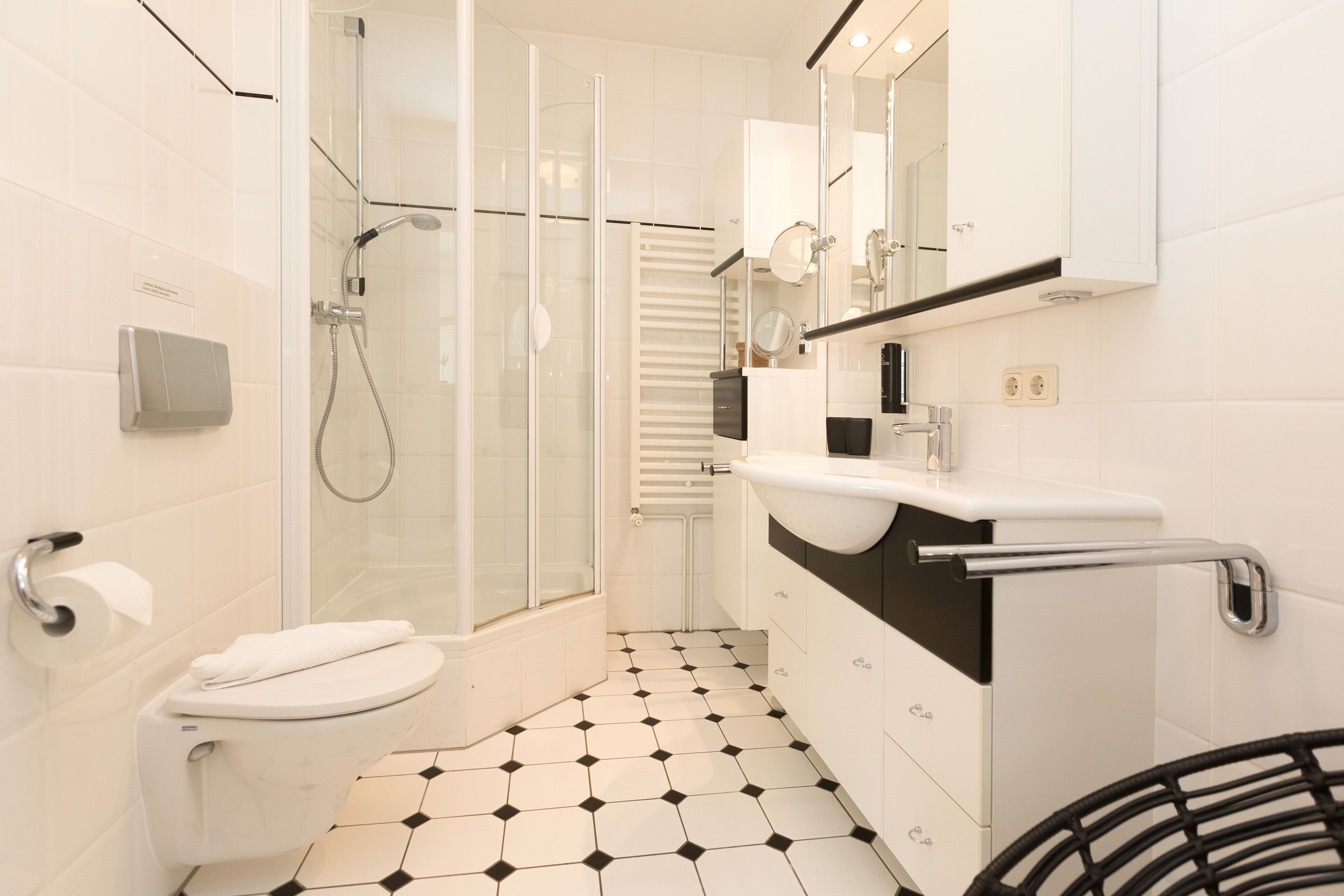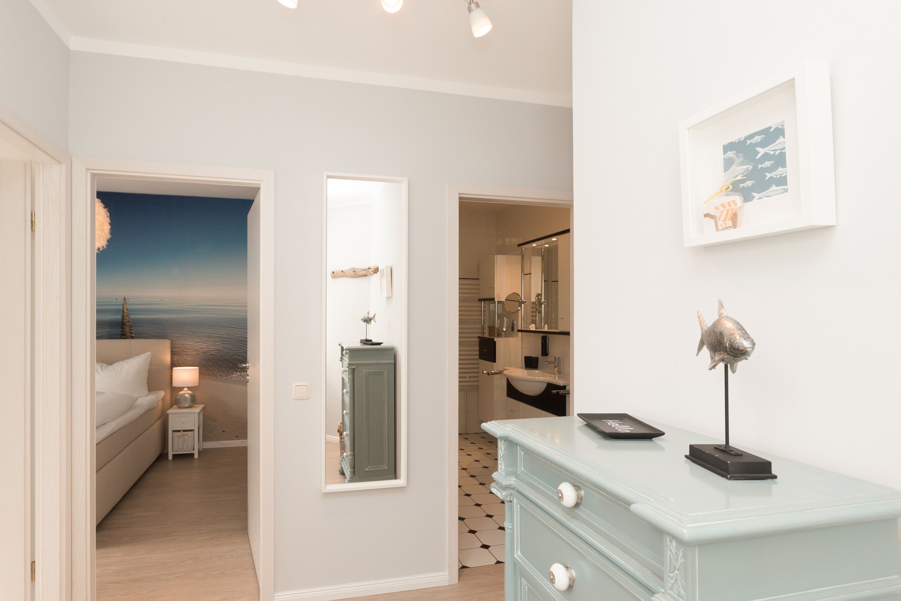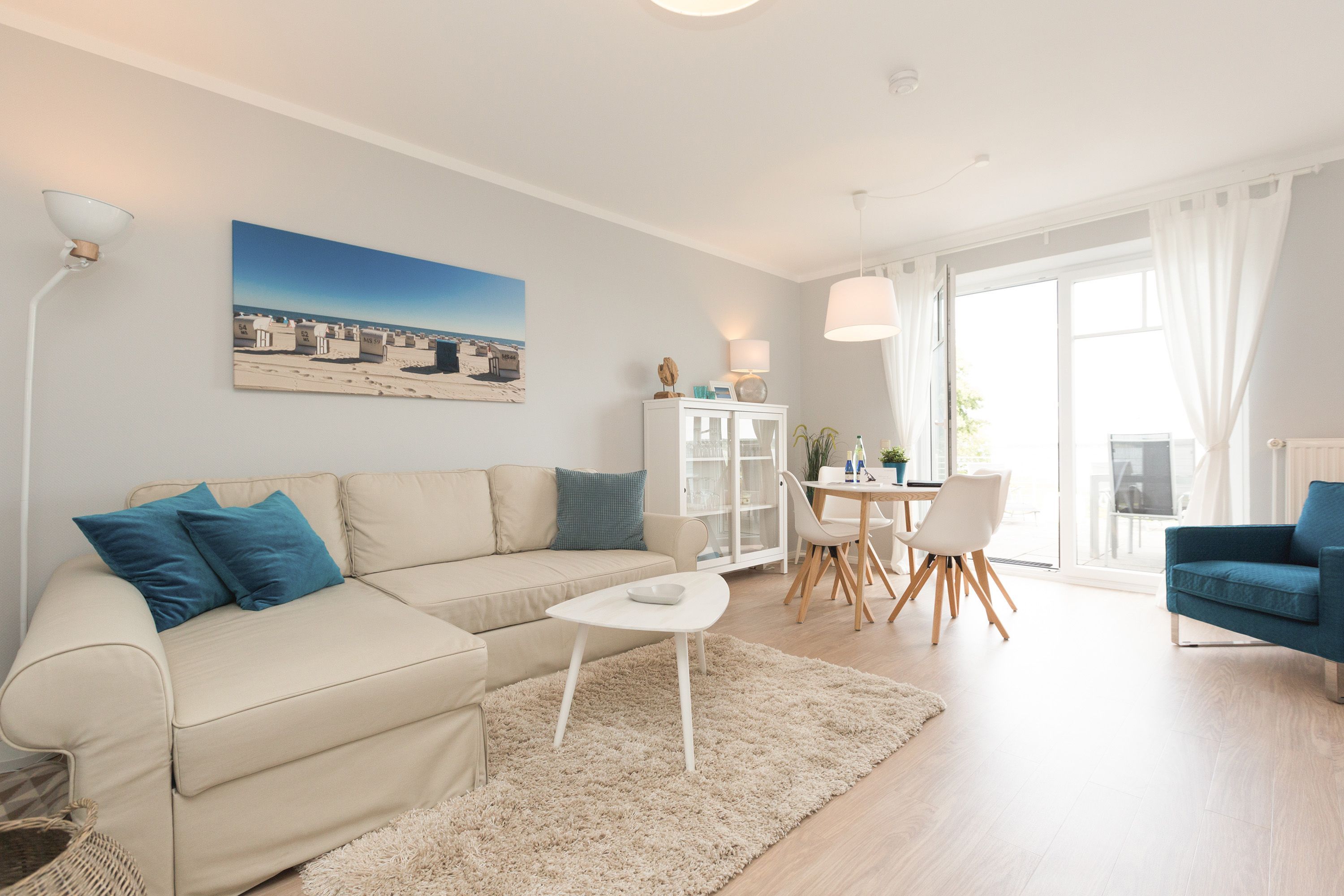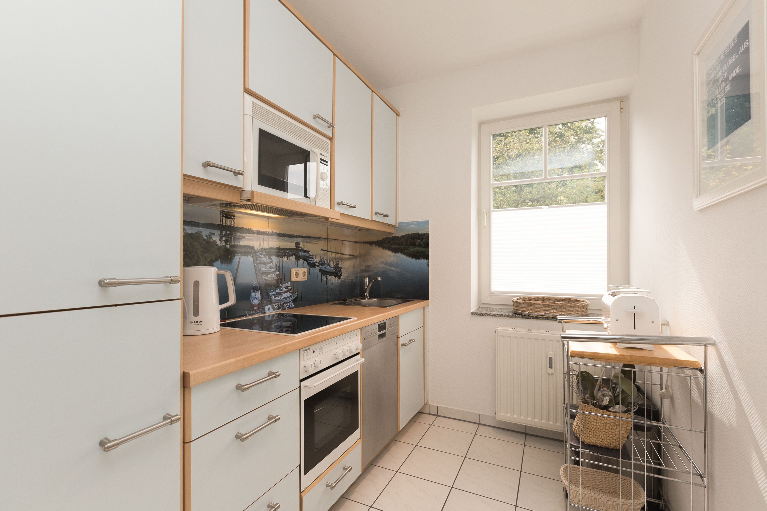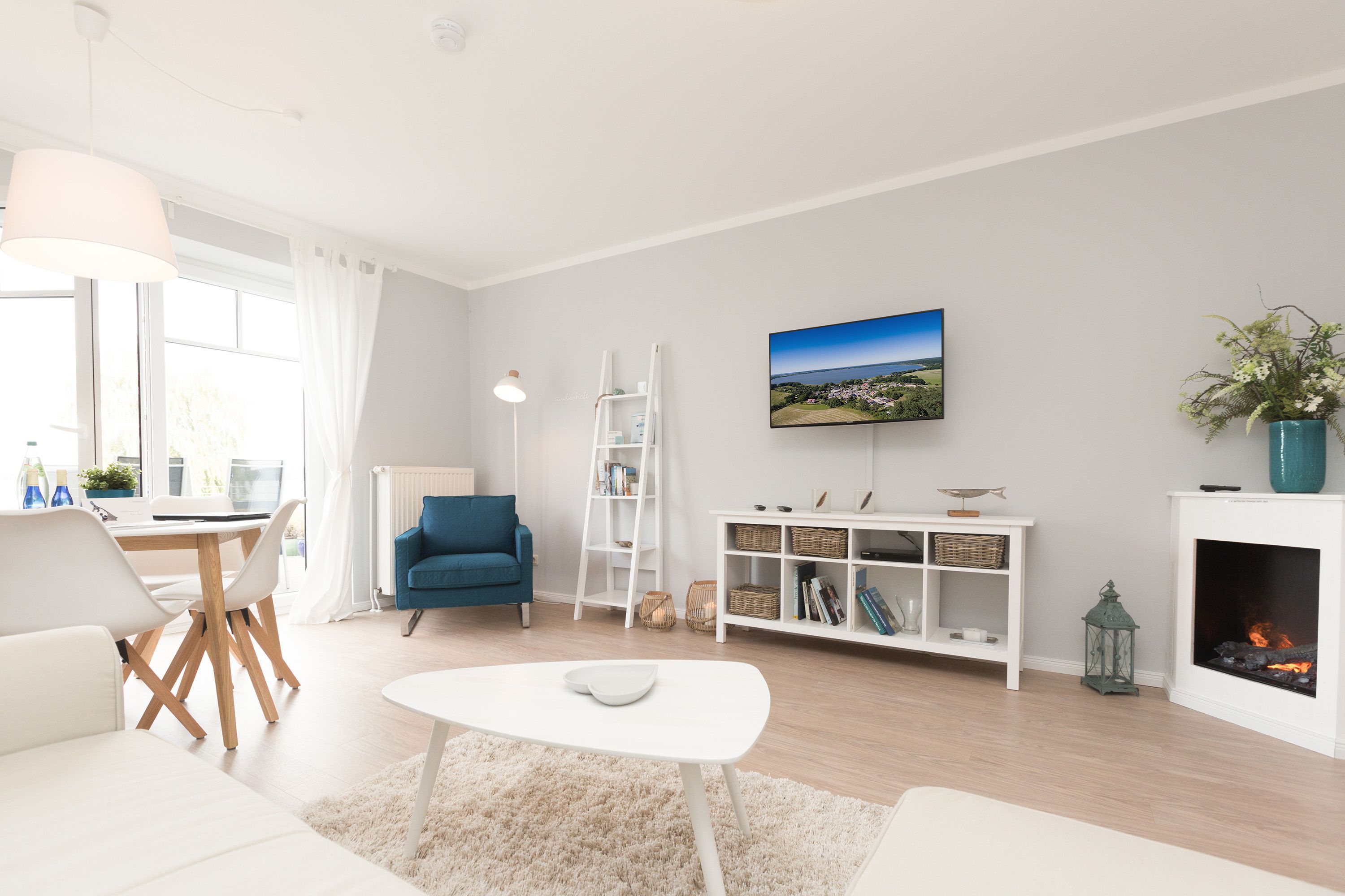 Für Seeblickliebhaber und Ruhesuchende, für Naturbegeisterte und Schönerwohnenwoller! Unser neues Domizil im Haus am Schmollensee in Sellin, einem kleinen Ortsteil vom Seebad Bansin, wird Sie begeistern. Frisch renoviert, empfängt die moderne 2-Raum-Ferienwohnung (50 qm) für 2 Personen seine Gäste. Durch die Hanglage erreichen Sie Ihr Appartement fast stufenlos, genießen aber zum See hin den wunderschönen, erhöhten Ausblick. Der freie Blick auf den Schmollensee ist einfach fantastisch! Doch auch innen punktet Ihr Domizil mit moderner, geschmackvoller Einrichtung. Das helle Wohnzimmer mit gemütlicher Sitzgruppe wird ergänzt durch den schönen Essplatz, der schon beim morgendlichen Frühstück mit tollem Seeblick aufwartet. Ein Elektrokamin zaubert per Knopfdruck ein kleines Feuer - kuscheln Sie sich ein und genießen Sie Ihr modernes Entertainment Programm mit Flat-TV und Blue-Ray-Player. Das Schlafzimmer ist mit einem komfortablen Doppelbett (1,80 x 2,00 m) und zusätzlichem Flat-TV eingerichtet. Die kleine, aber feine Küche ist komplett ausgestattet. Das moderne Bad verfügt über eine Dusche und ein WC. Ein weiteres Highlight der Wohnung ist die riesige Süd-Westterrasse mit Sitzgruppe und Sonnenliegen. Hier ist ein idealer Platz zum Relaxen oder um die heimischen Seeadler zu bewundern. Selbstverständlich sind die Betten bei der Anreise bezogen und Handtücher liegen bereit. Für kleine Gäste steht ein Kinderreisebett (bitte eigene Bettwäsche mitbringen) und ein Kinderhochstuhl zur Verfügung. An alle Hunde-Liebhaber: hier sind Sie mit Ihrem geliebten Vierbeiner sehr herzlich willkommen!